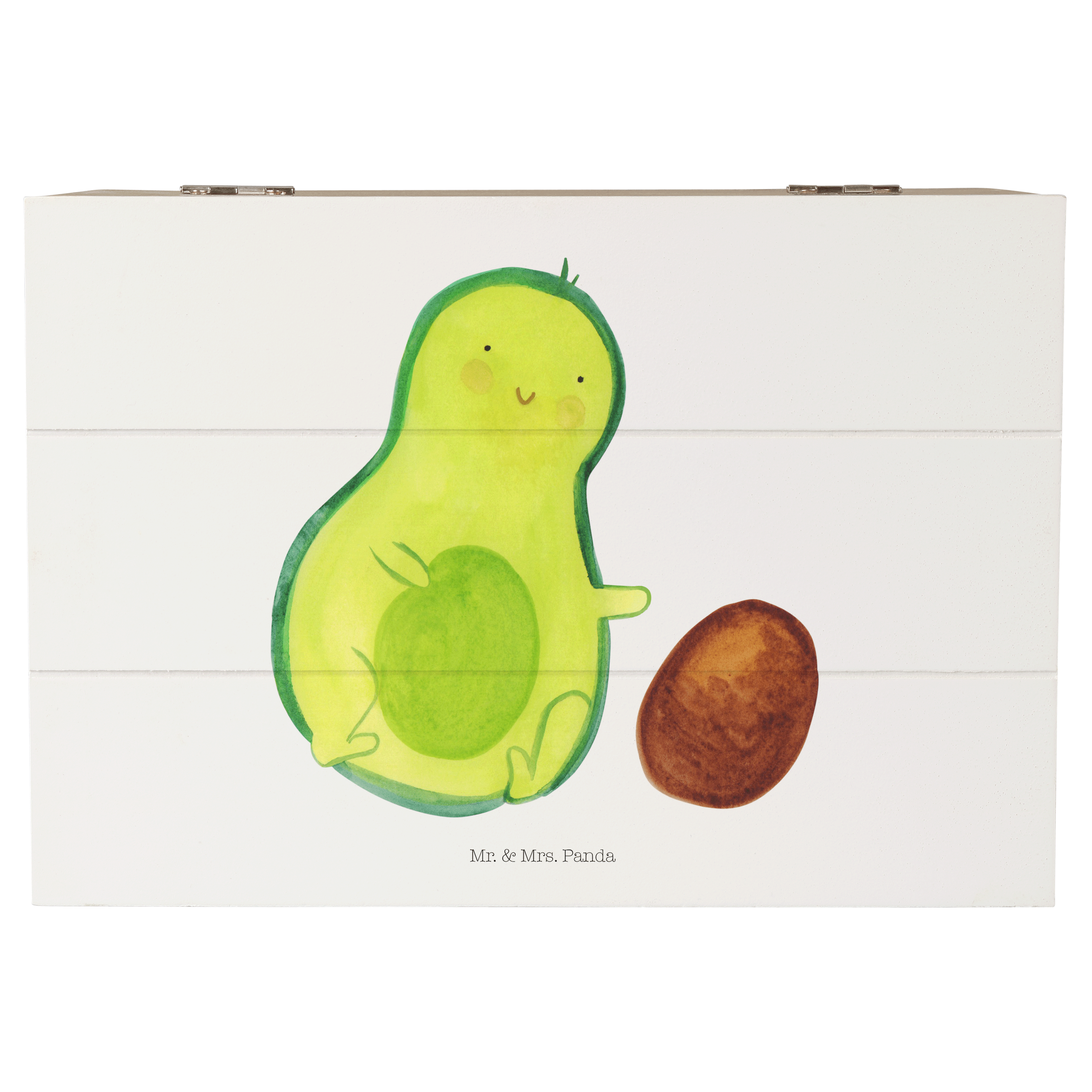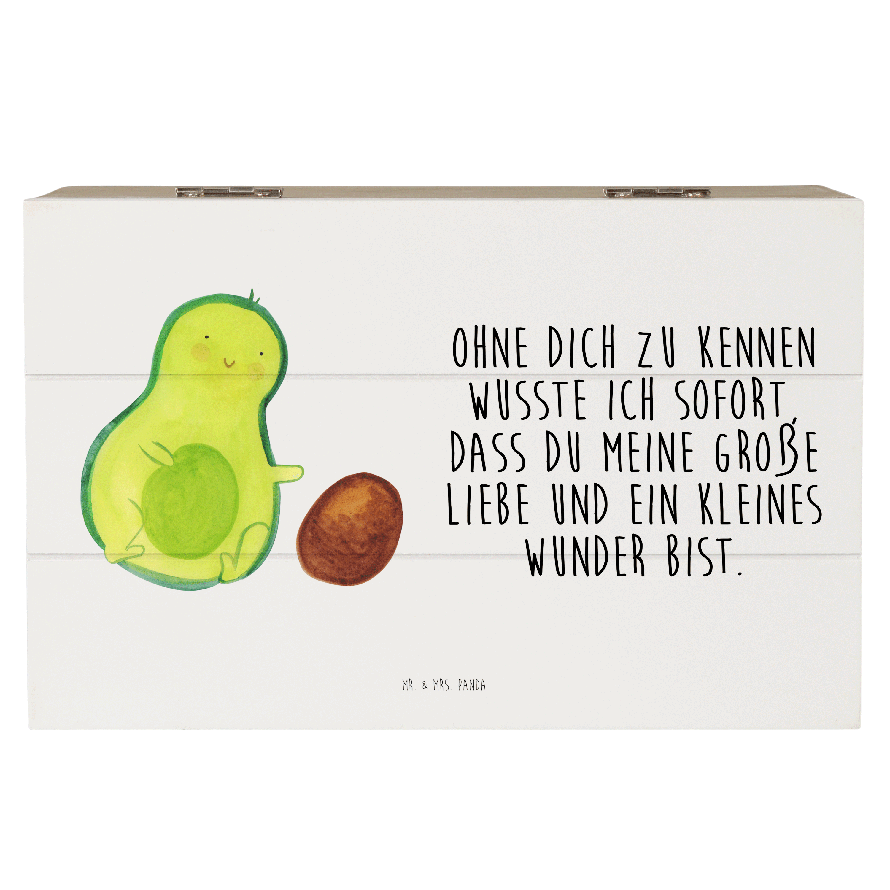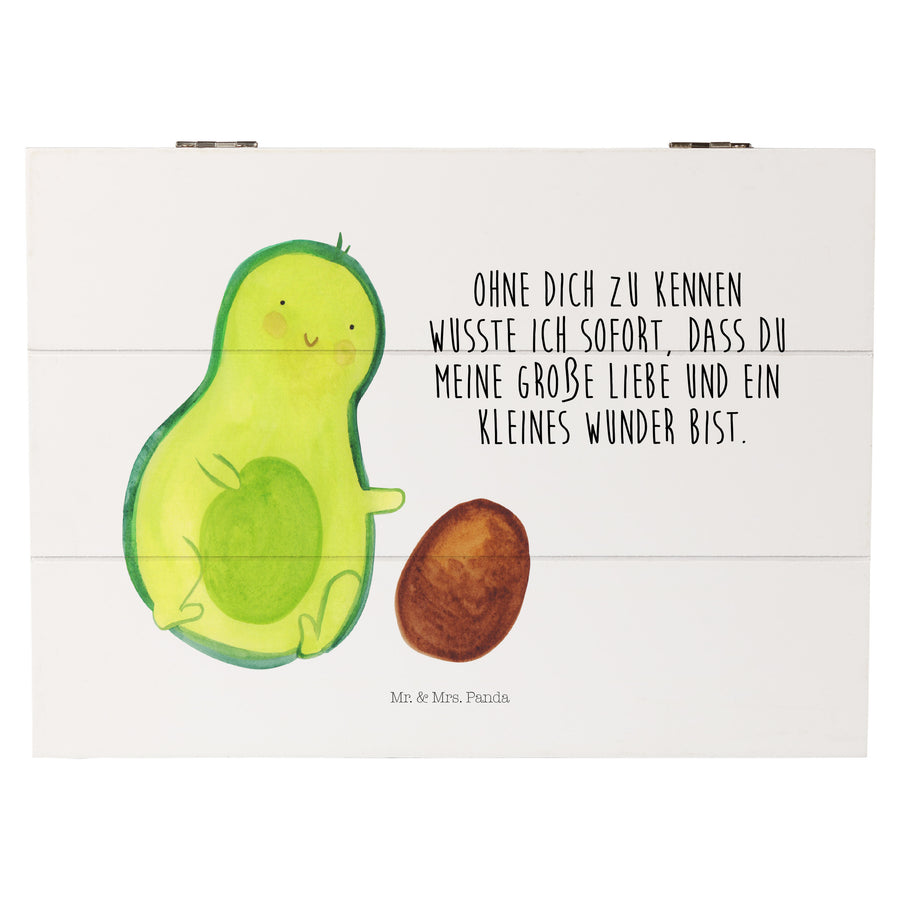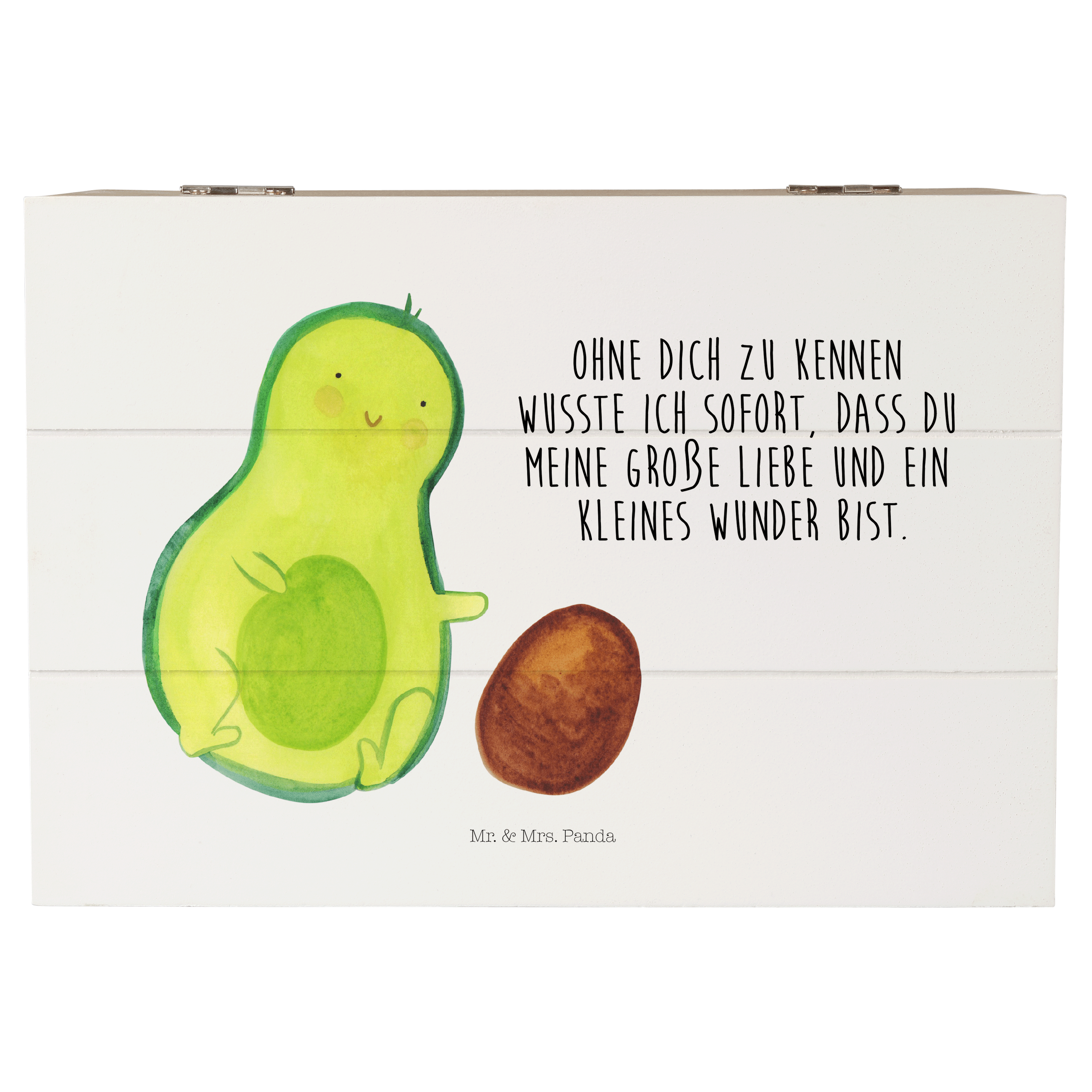 Holzkiste Avocado rollt Kern - 25 x 18 cm - mit Spruch - Weiß