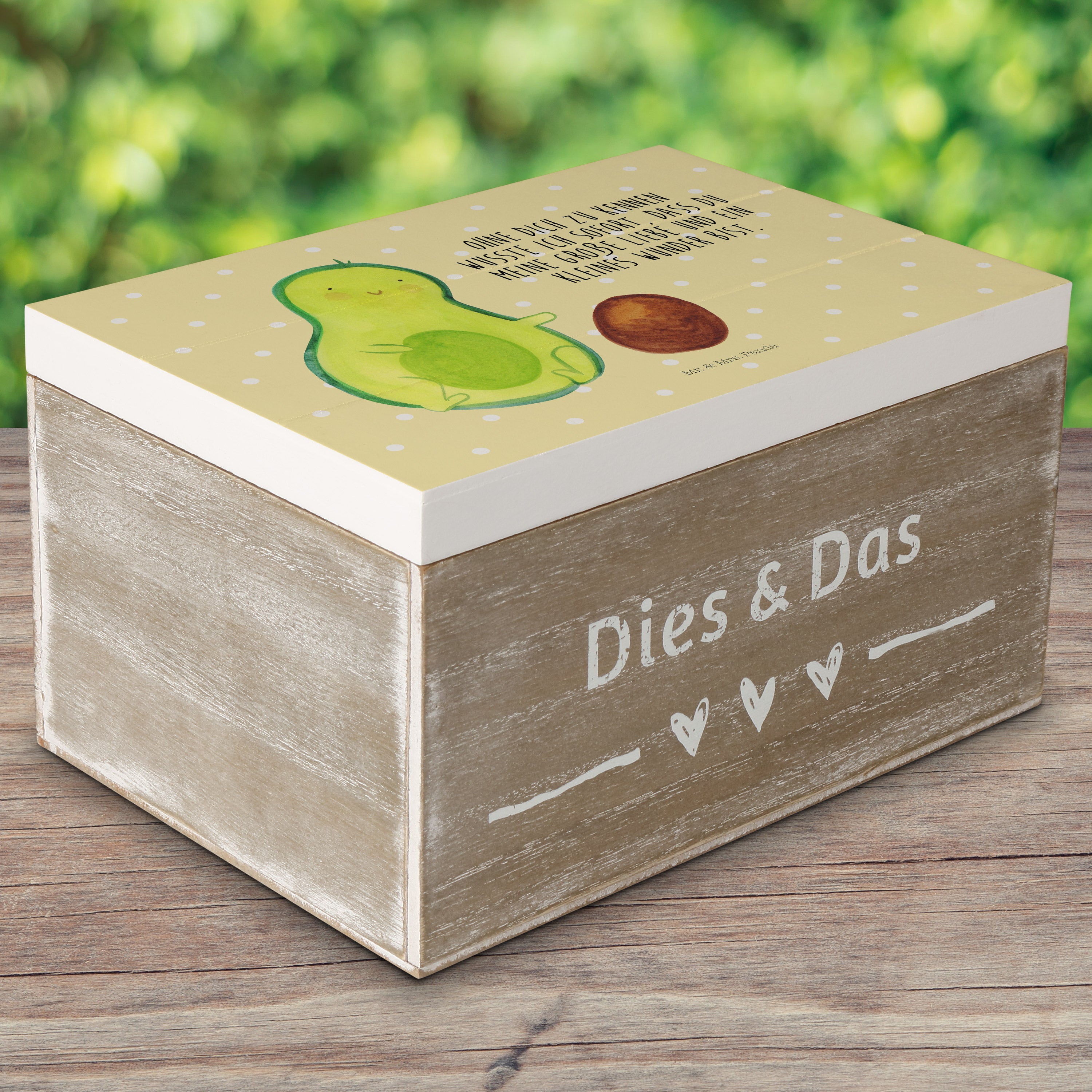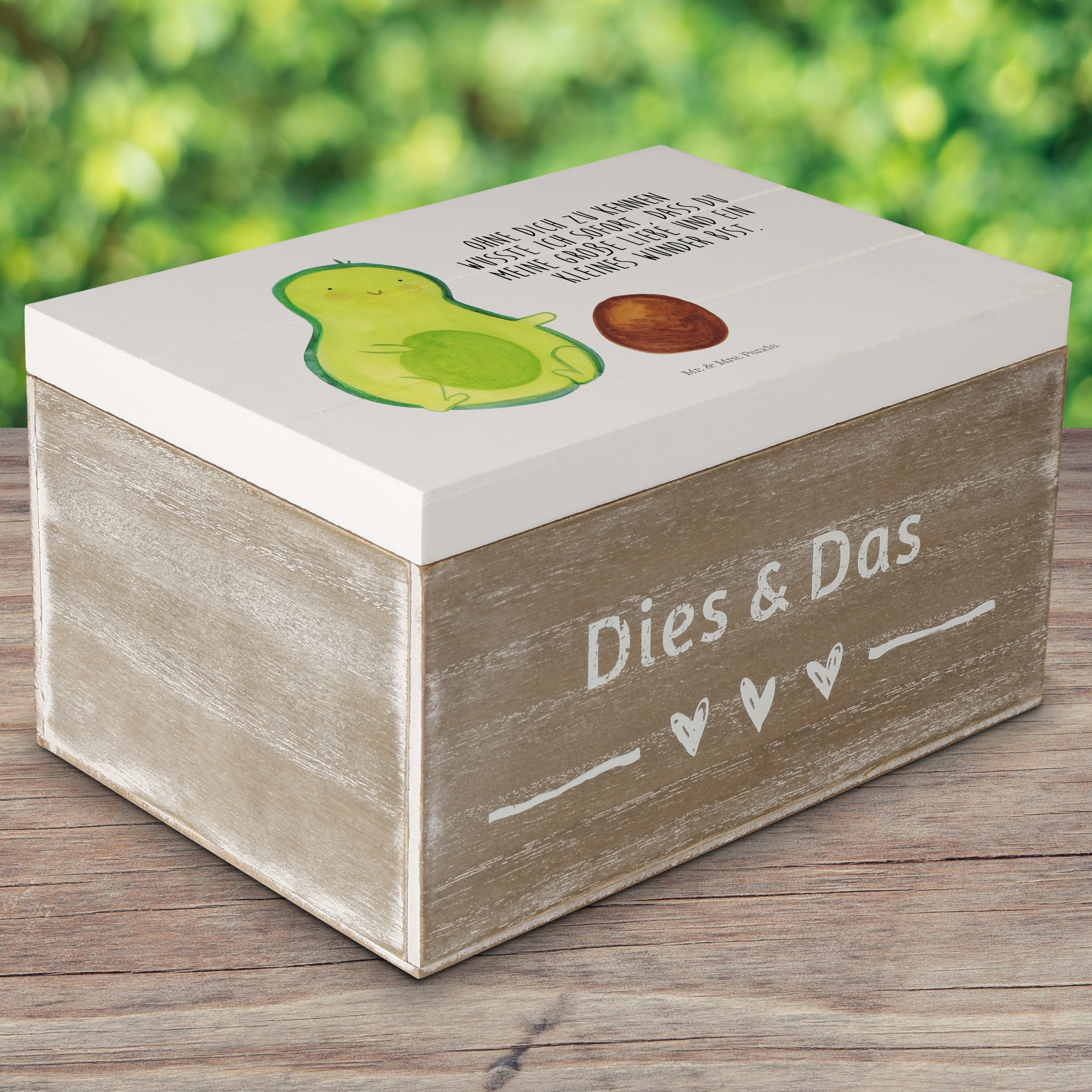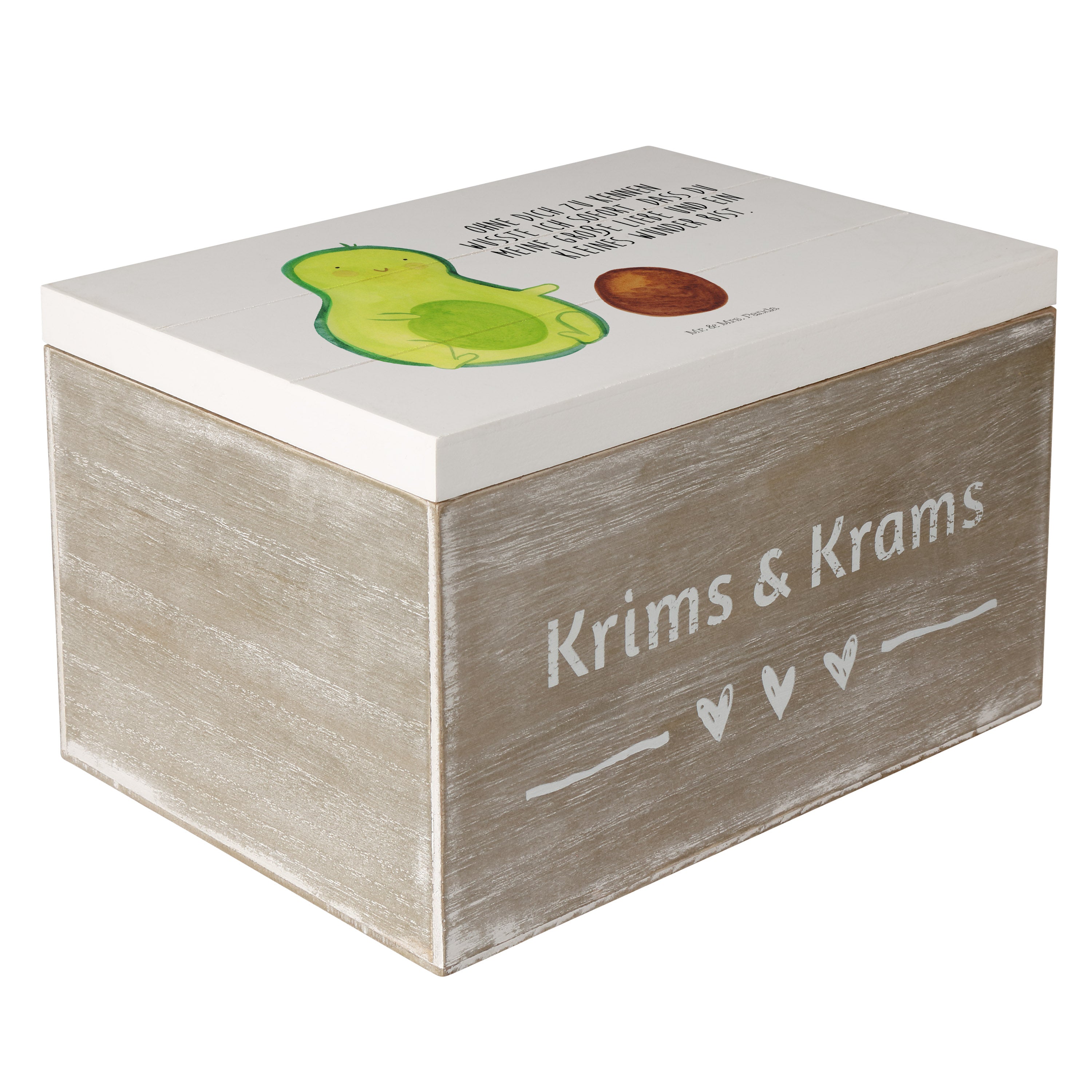 Holzkiste Avocado rollt Kern - 25 x 18 cm - mit Spruch - Weiß