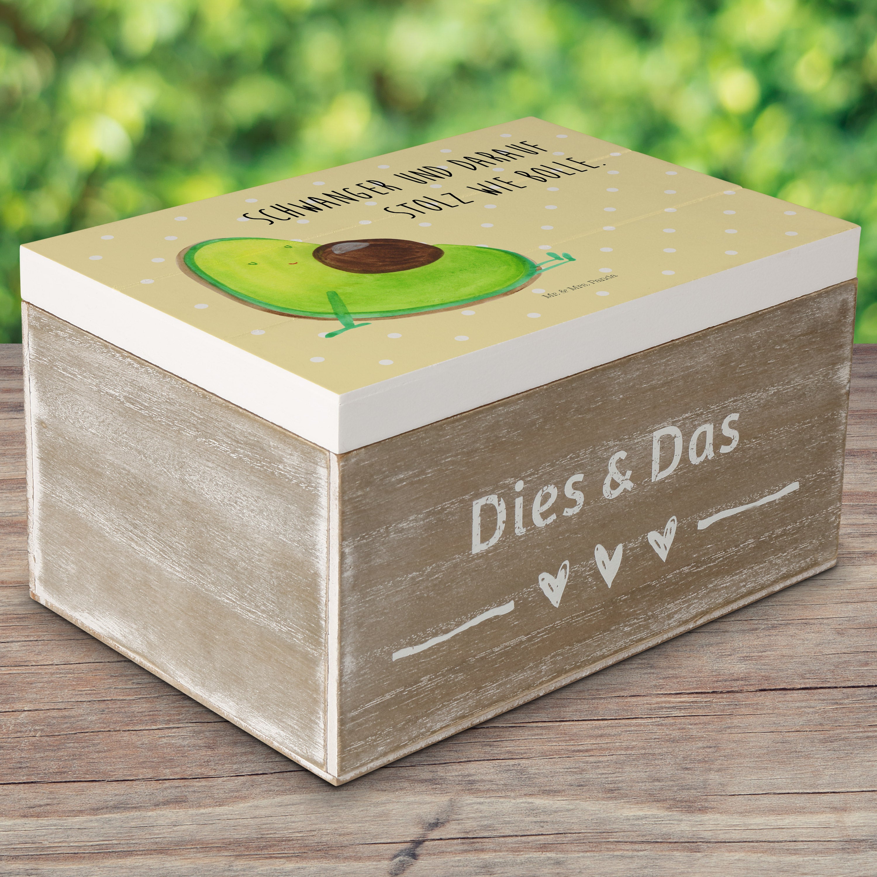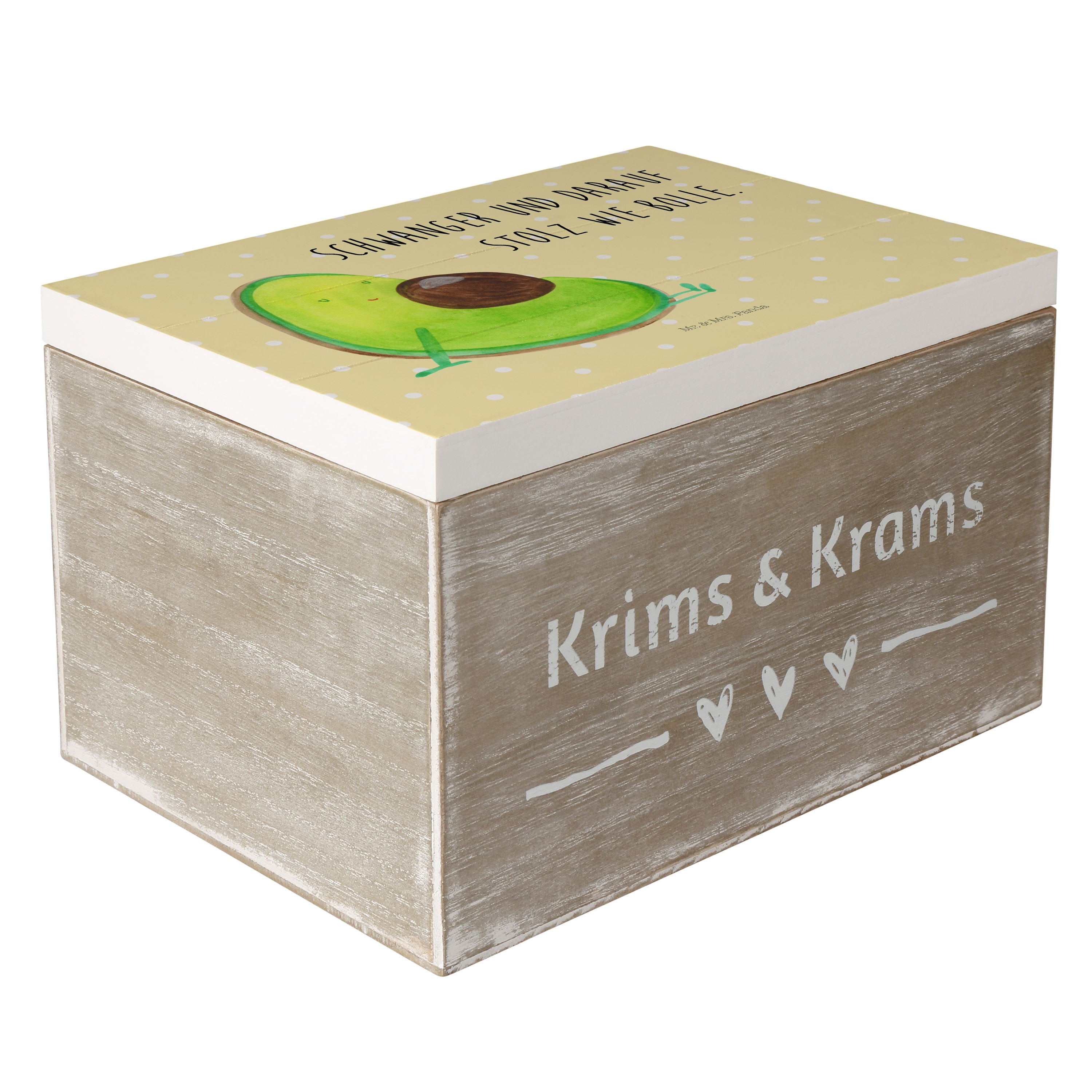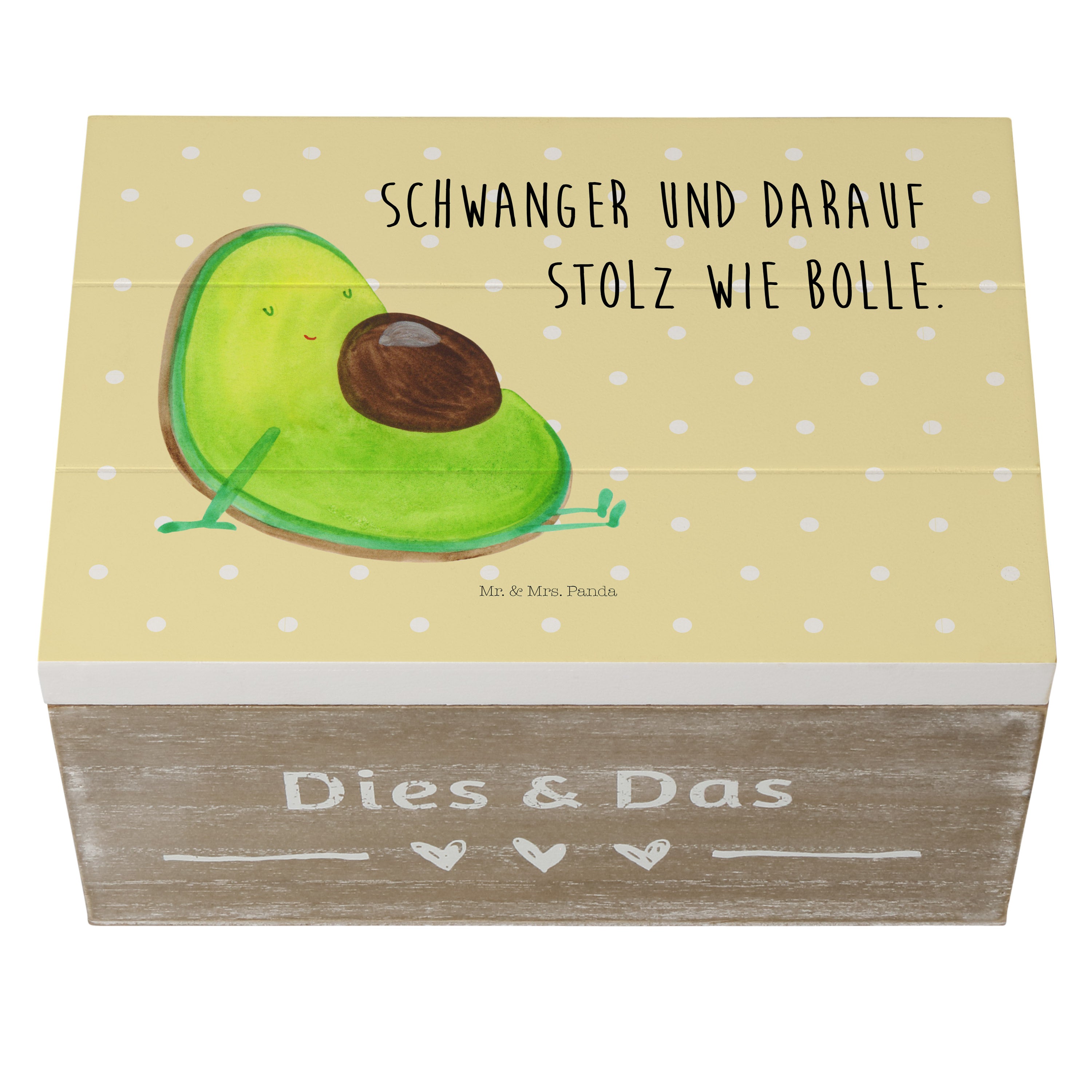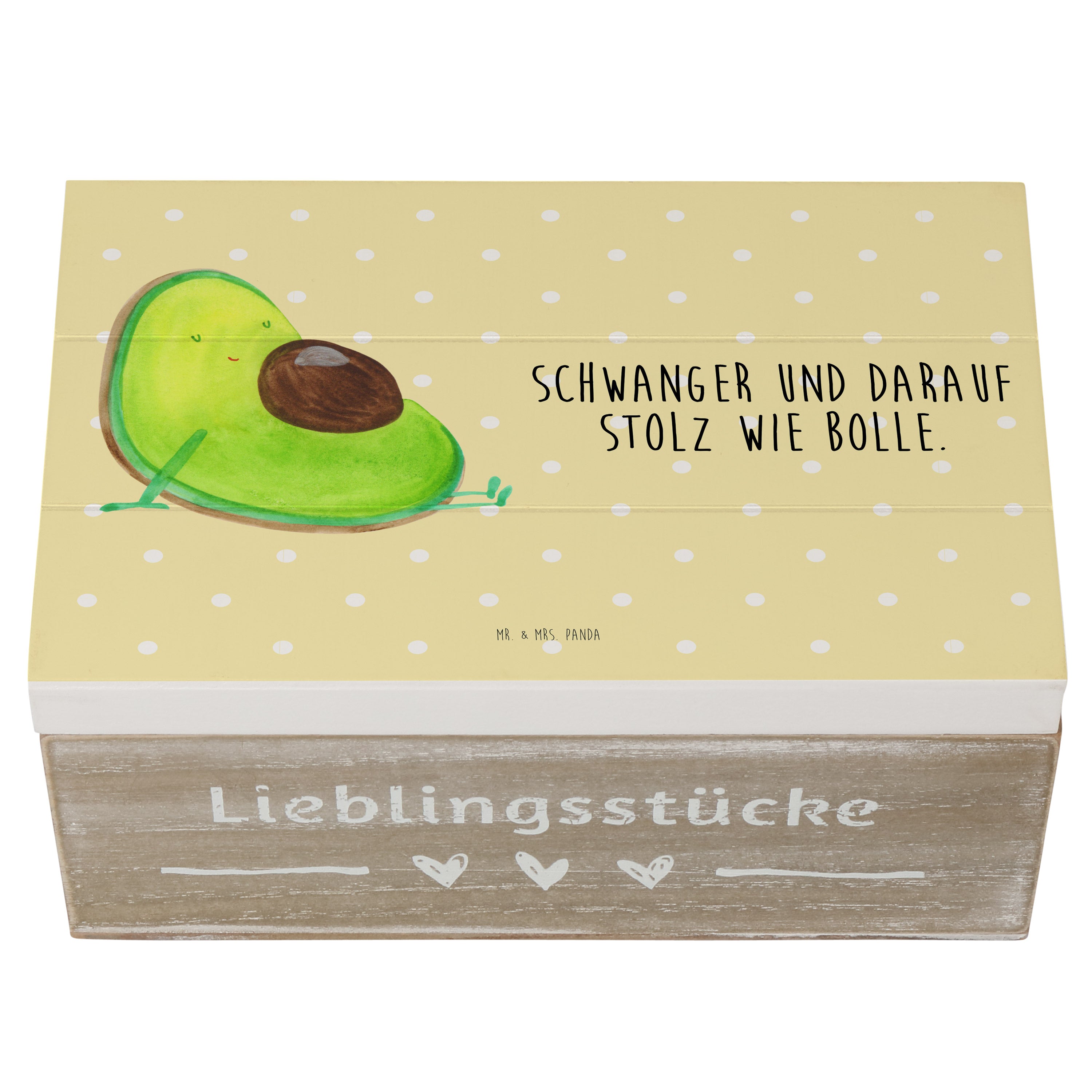 Holzkiste Avocado schwanger - 25 x 18 cm - mit Spruch - Gelb Pastell