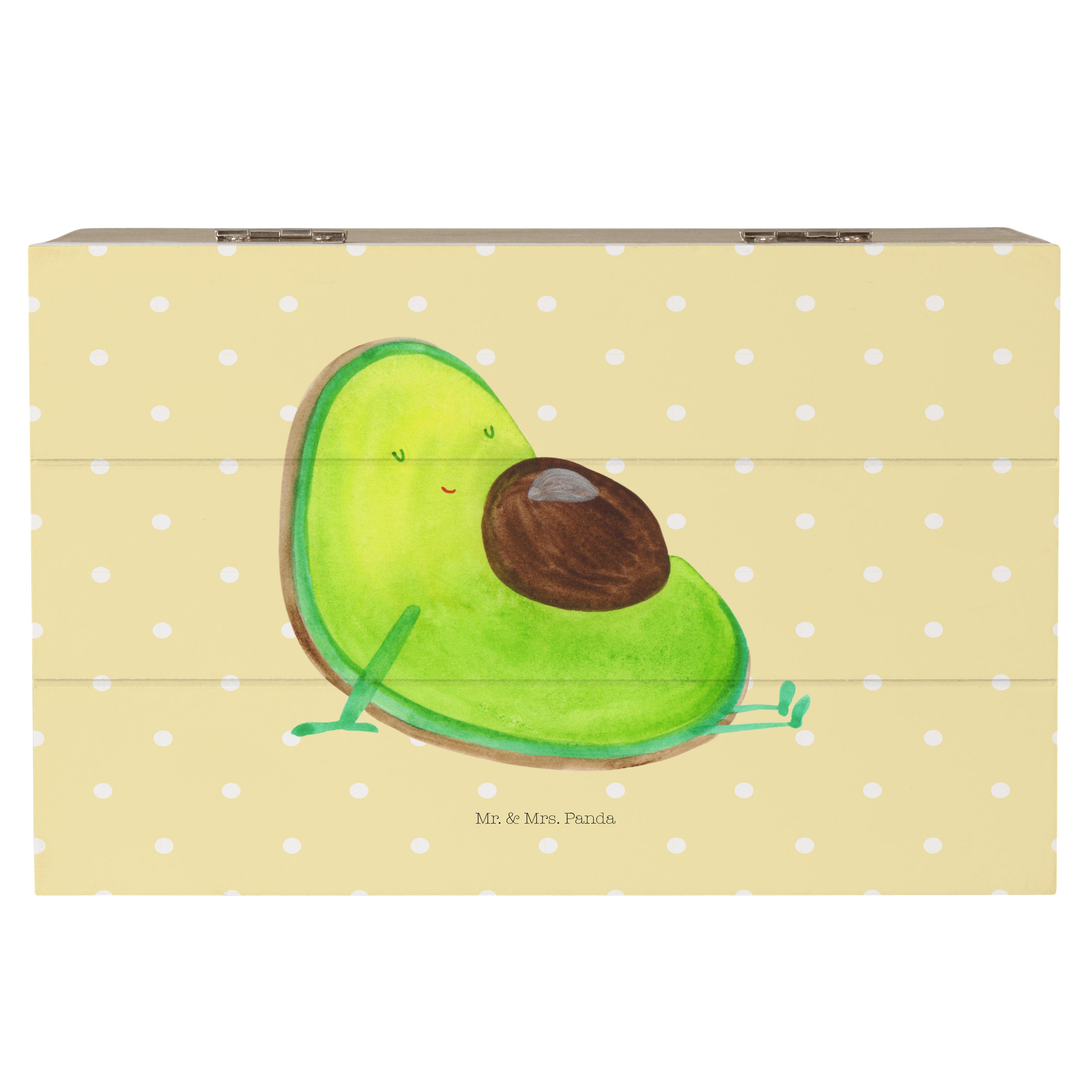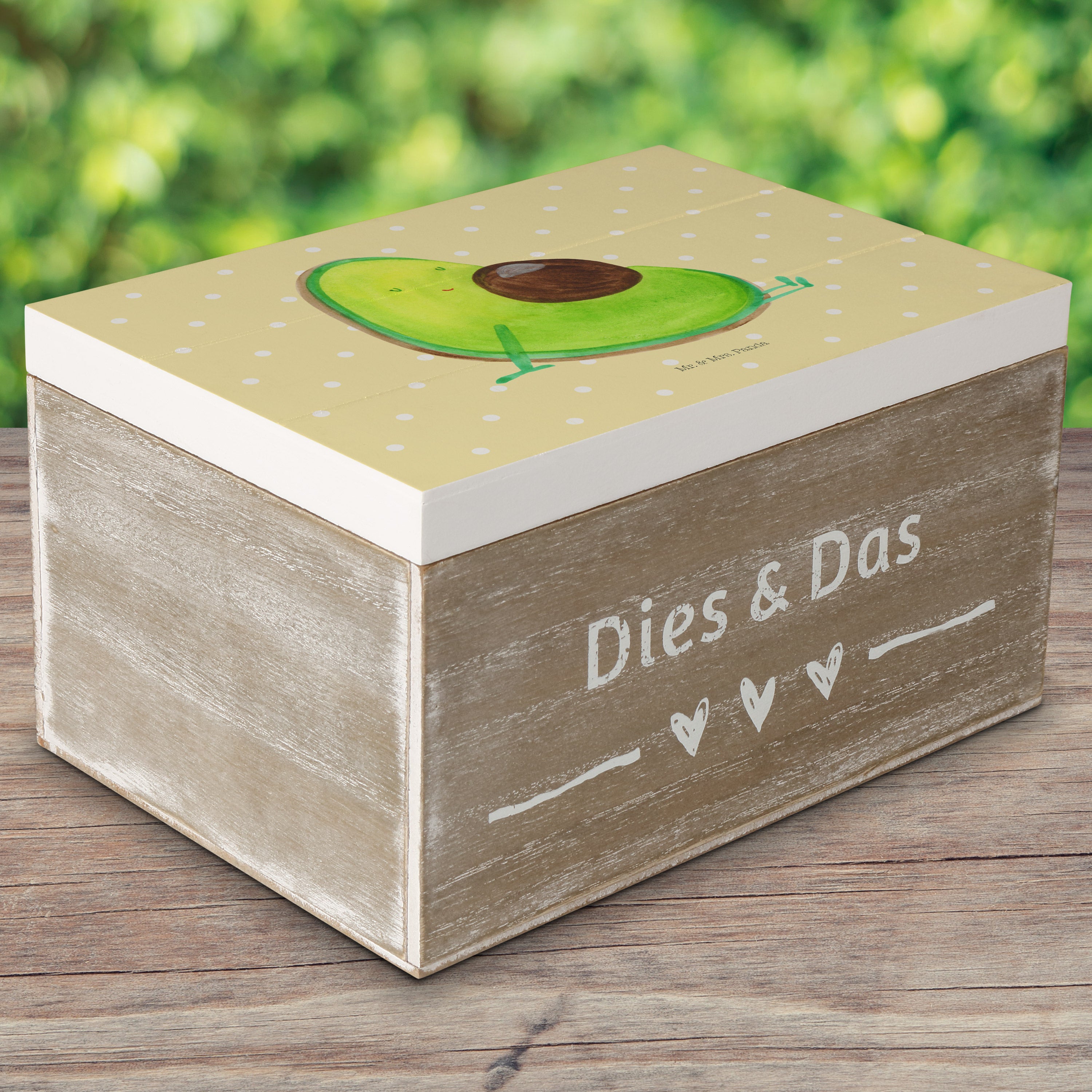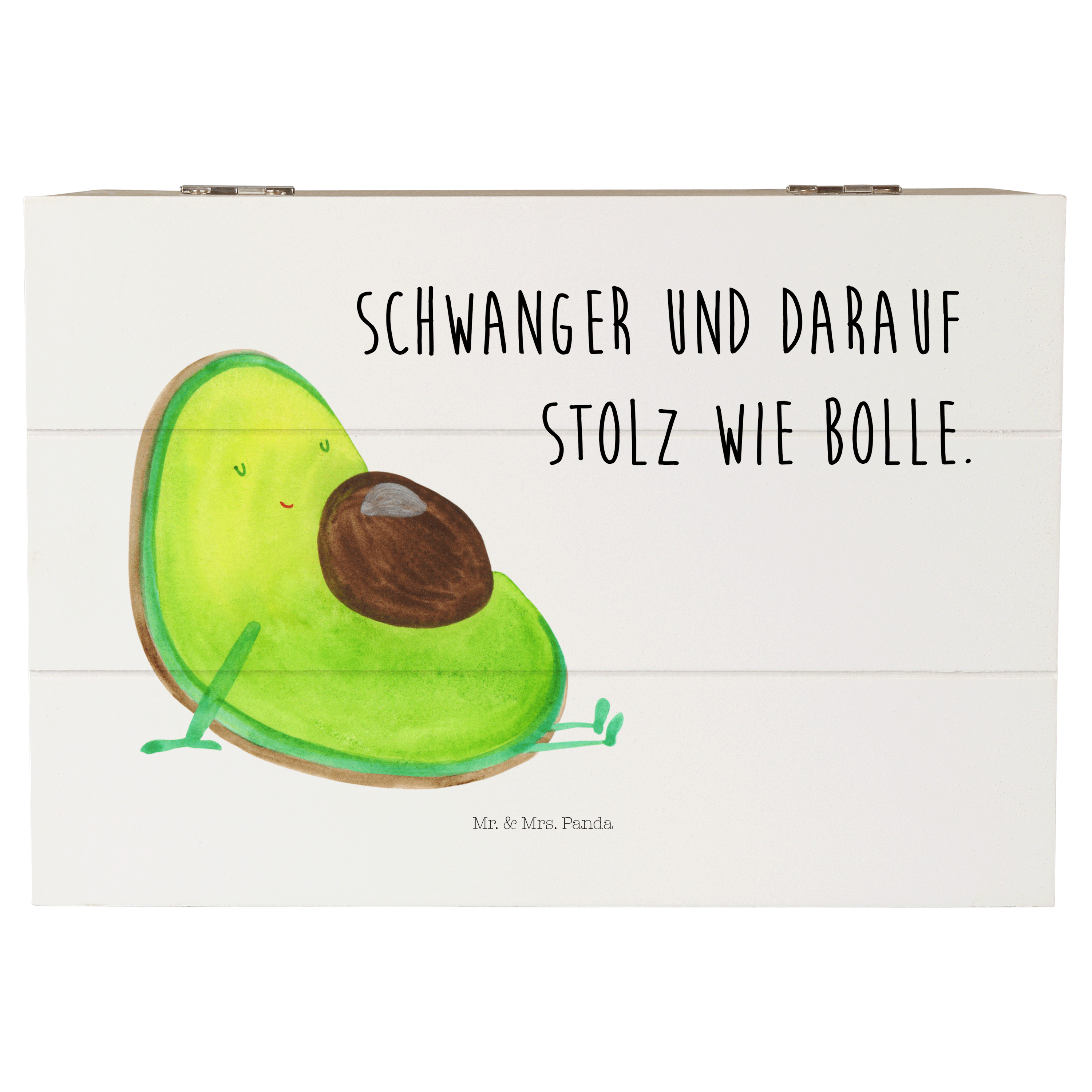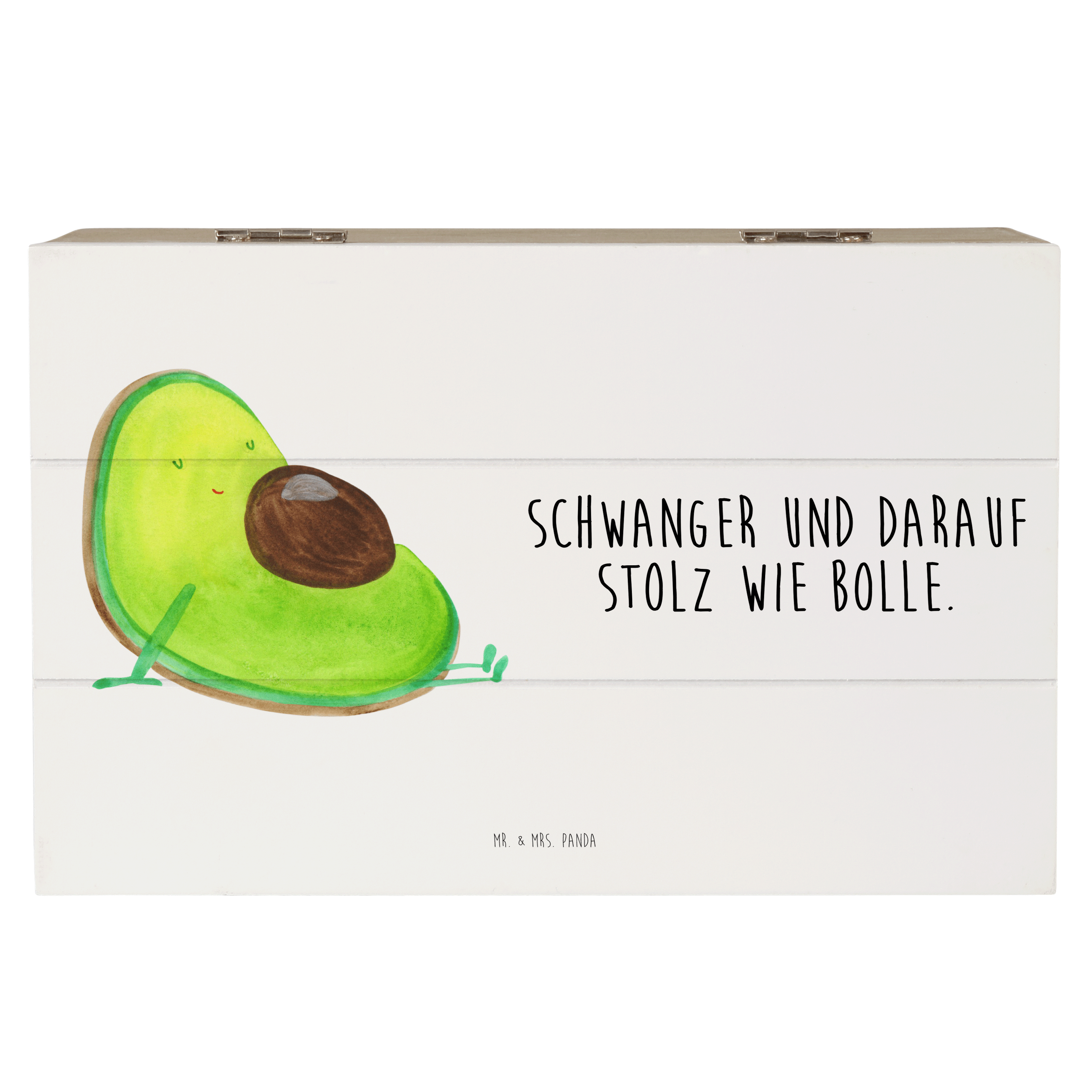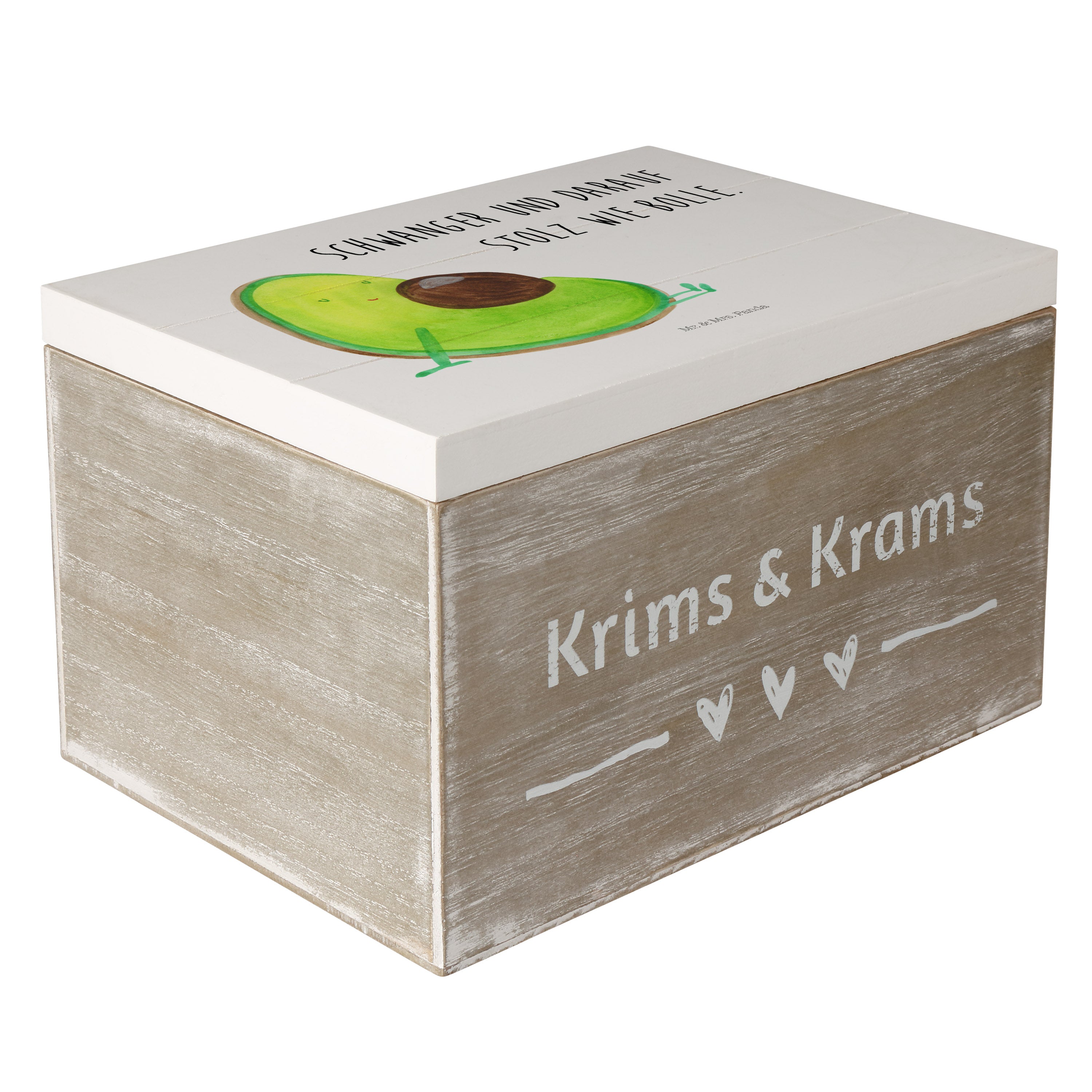 Holzkiste Avocado schwanger - 25 x 18 cm - mit Spruch - Gelb Pastell