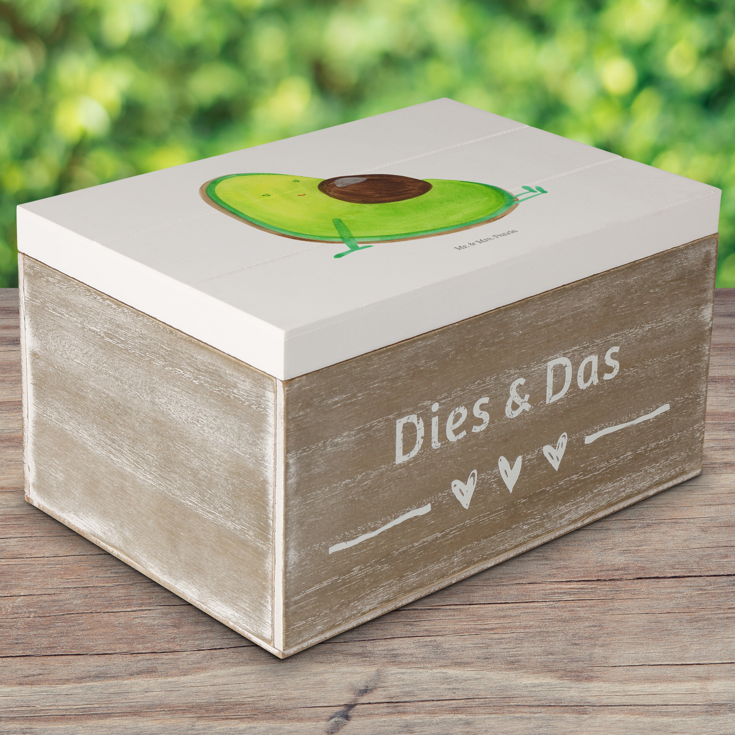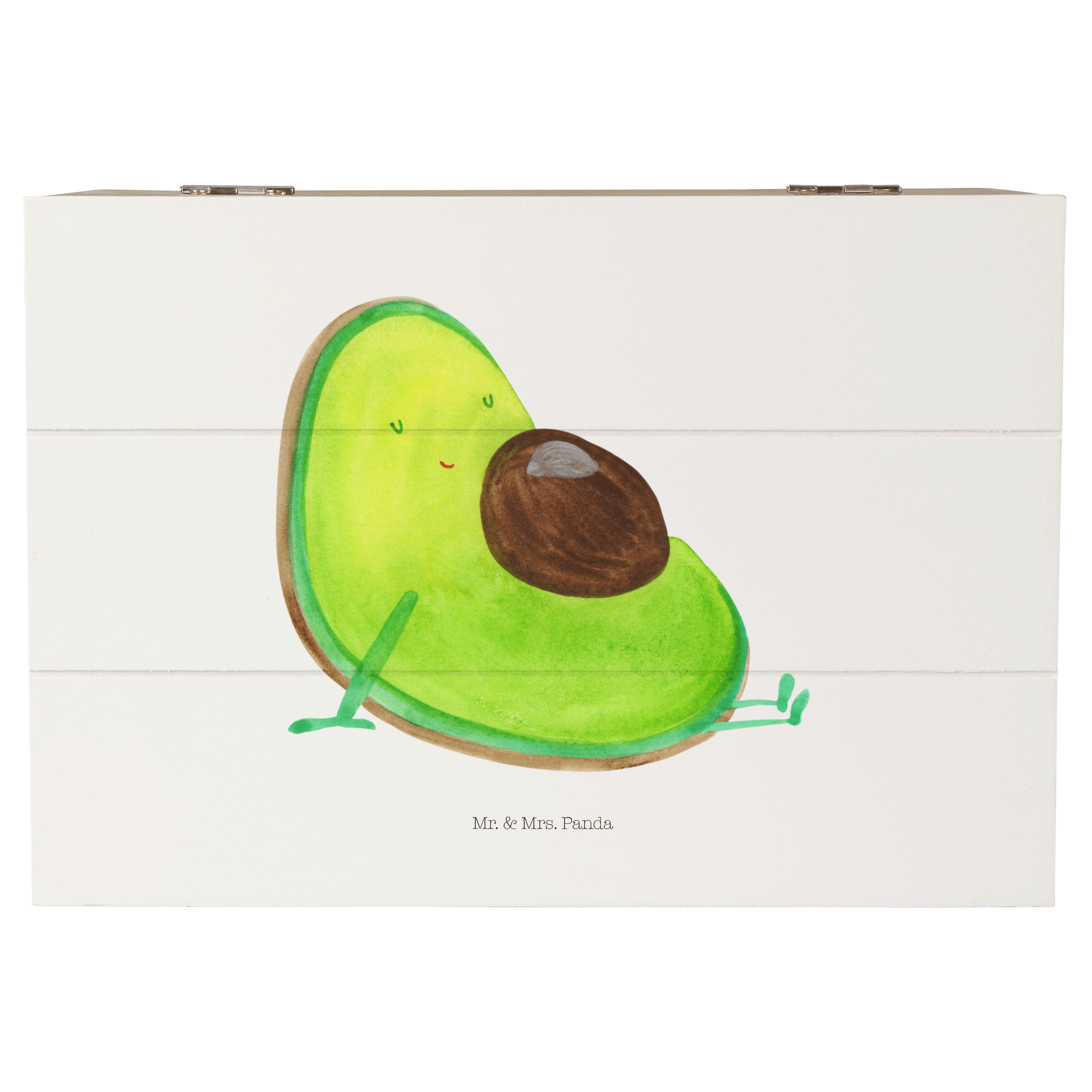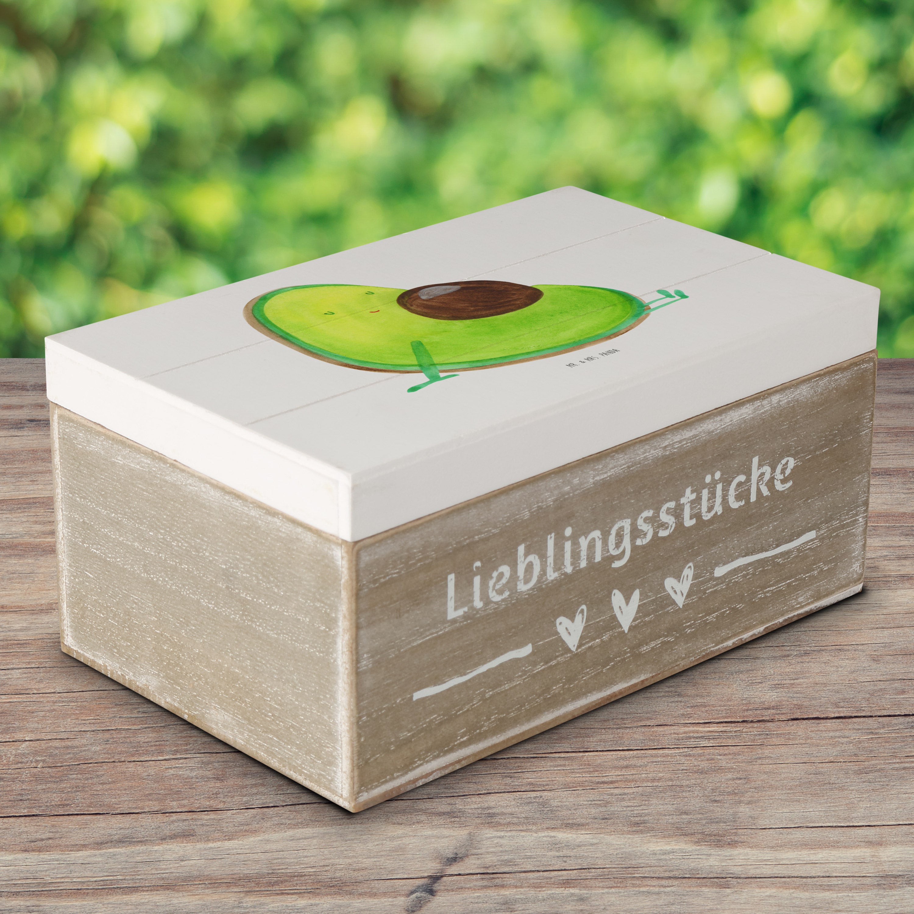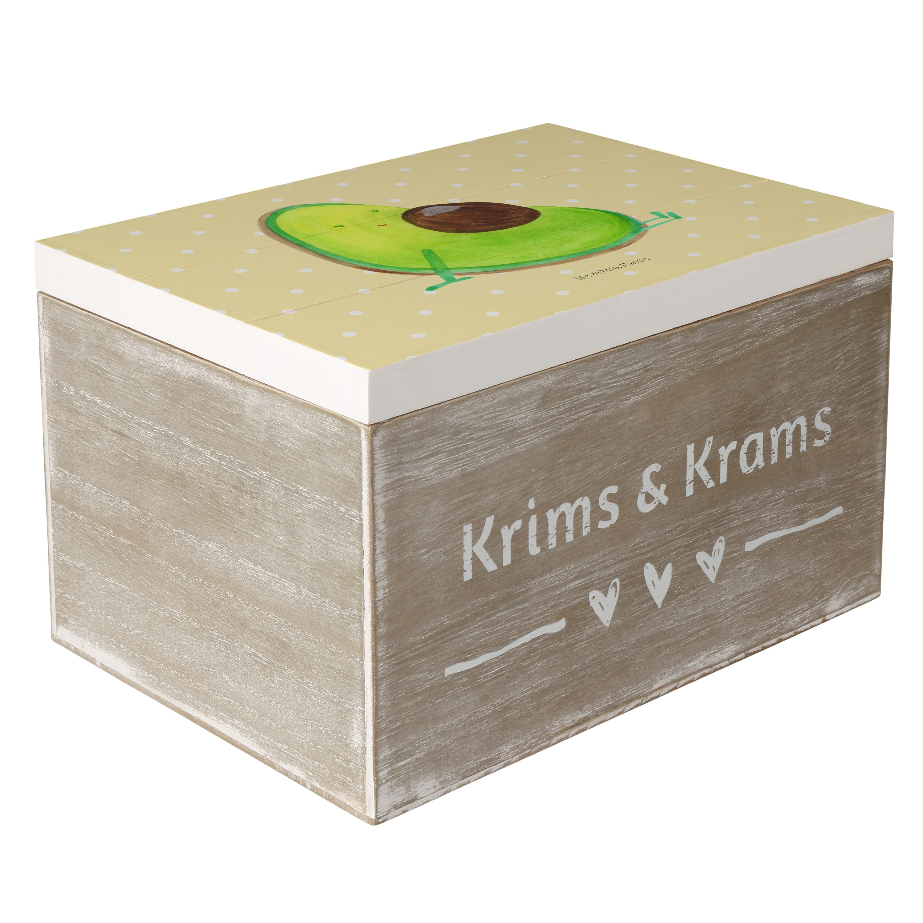 Holzkiste Avocado schwanger - 25 x 18 cm - mit Spruch - Gelb Pastell