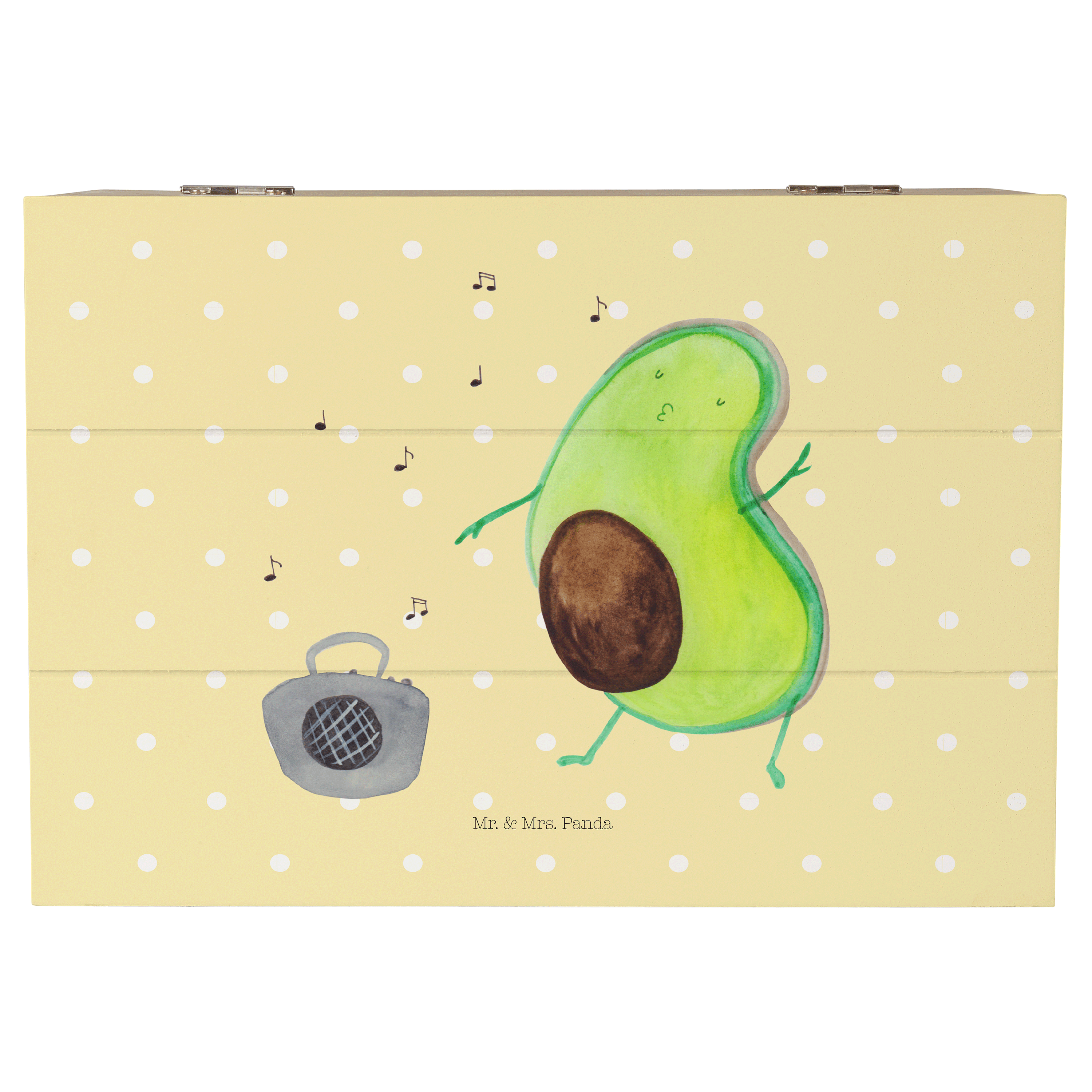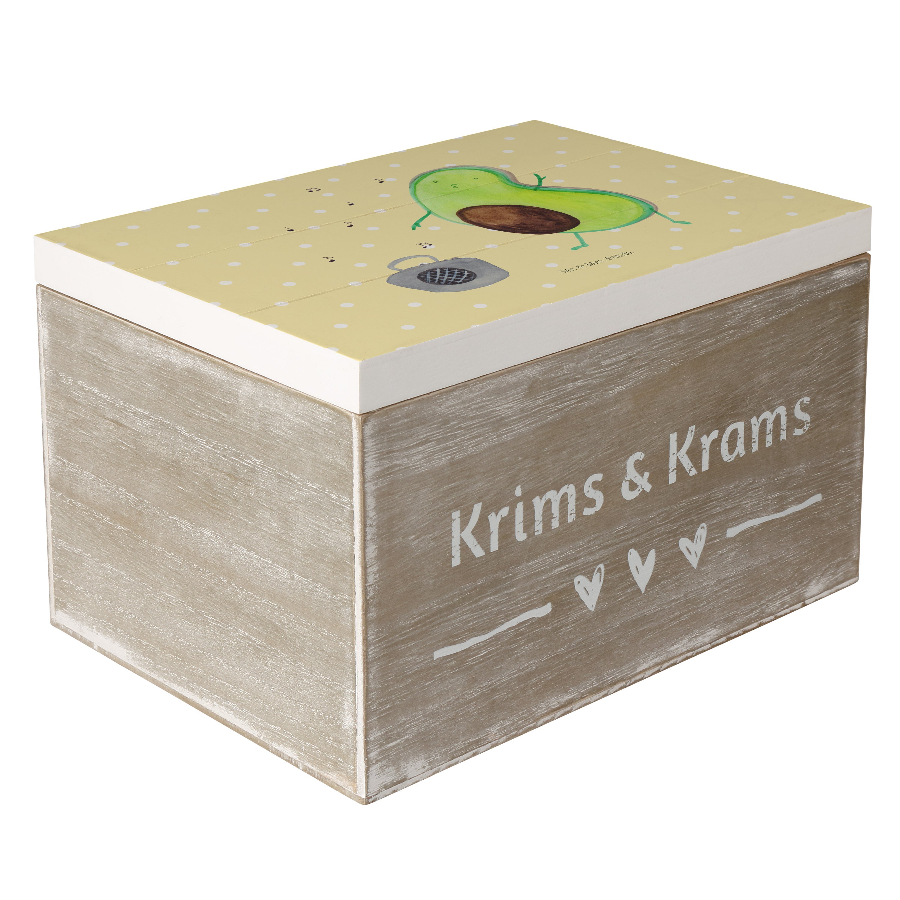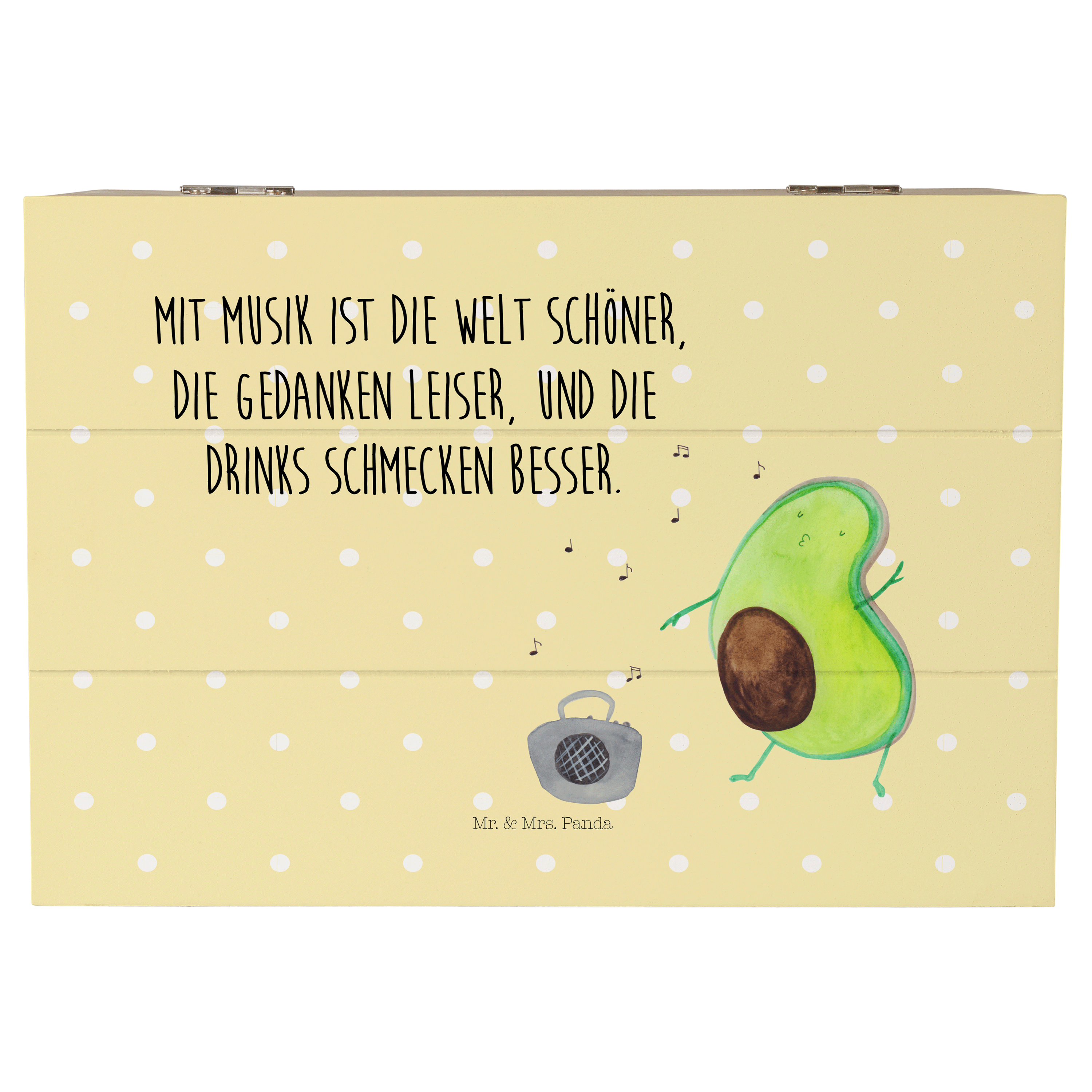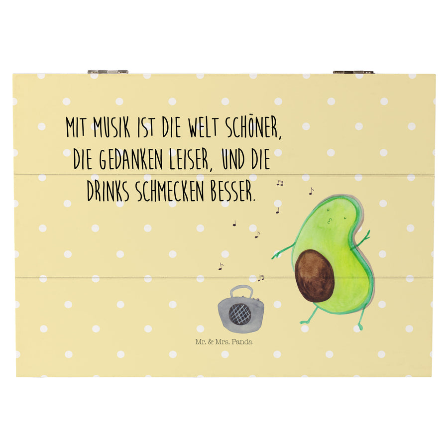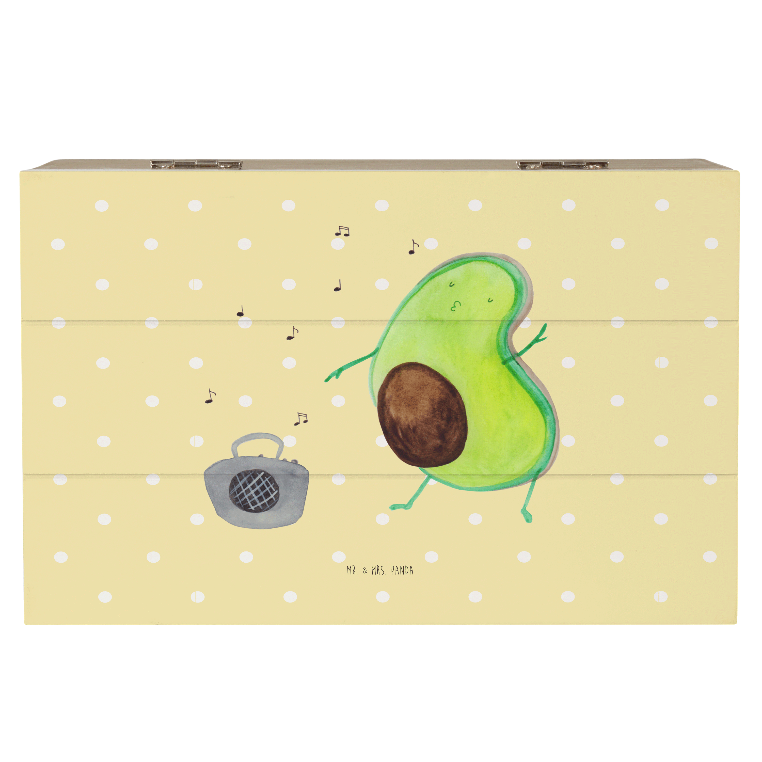 Holzkiste Avocado tanzt - 25 x 18 cm - mit Spruch - Gelb Pastell