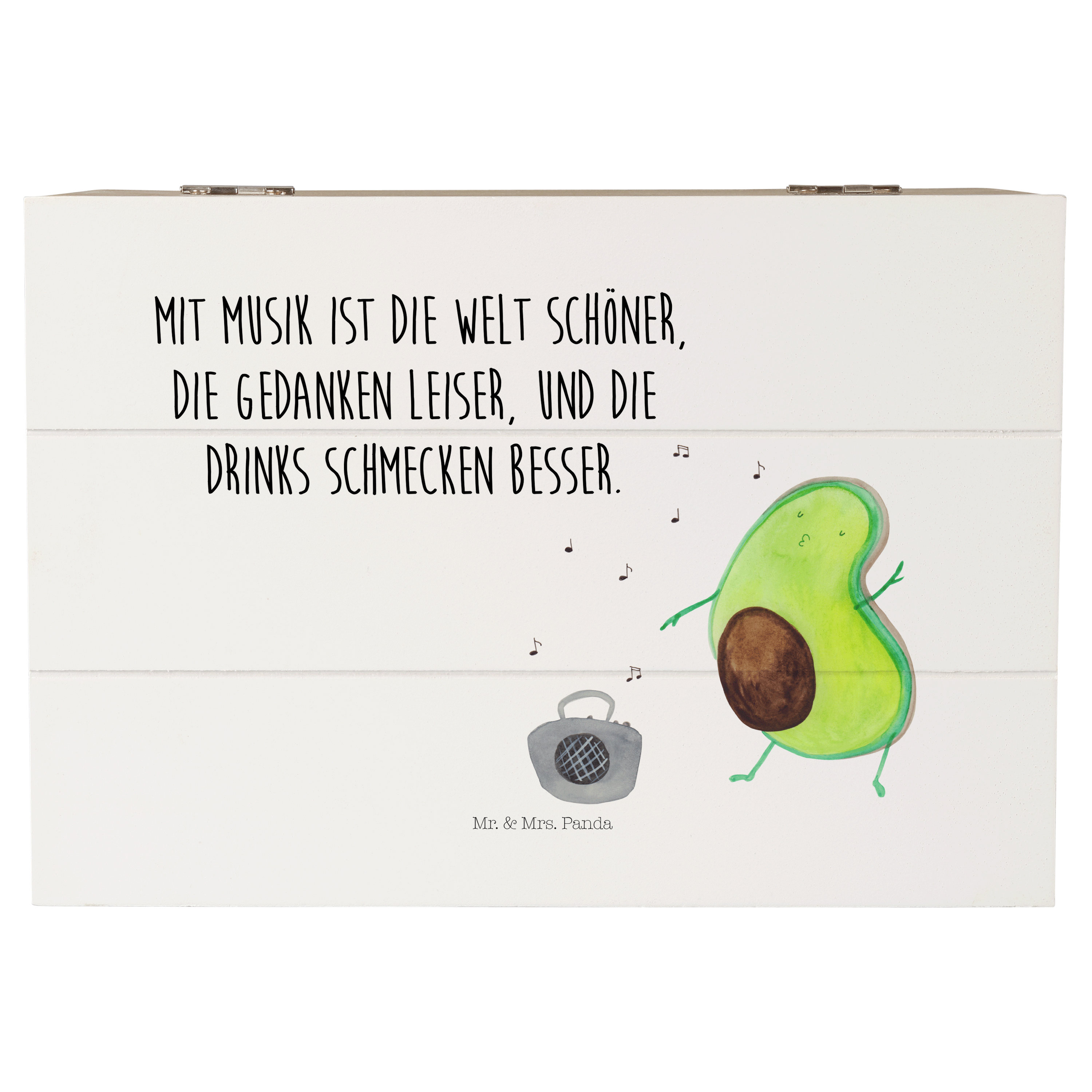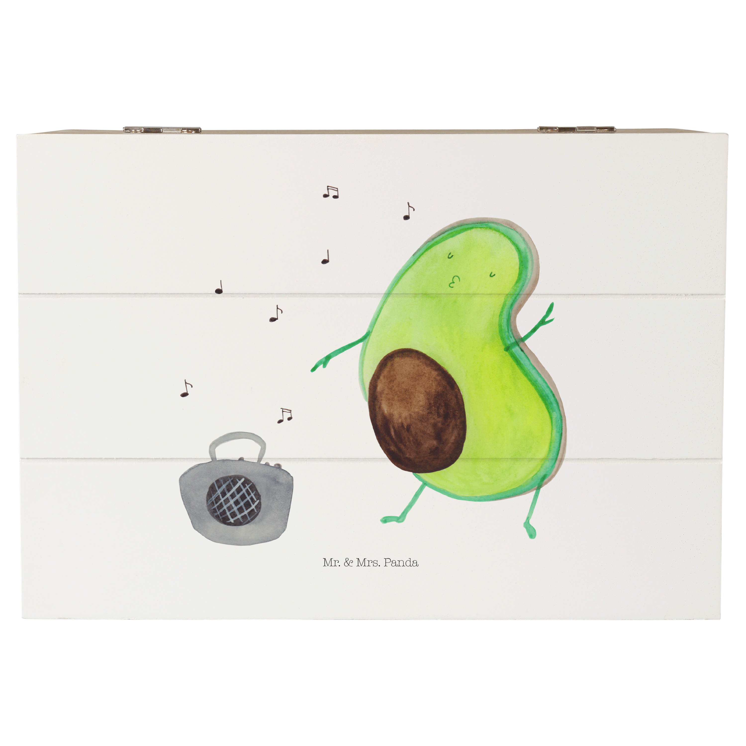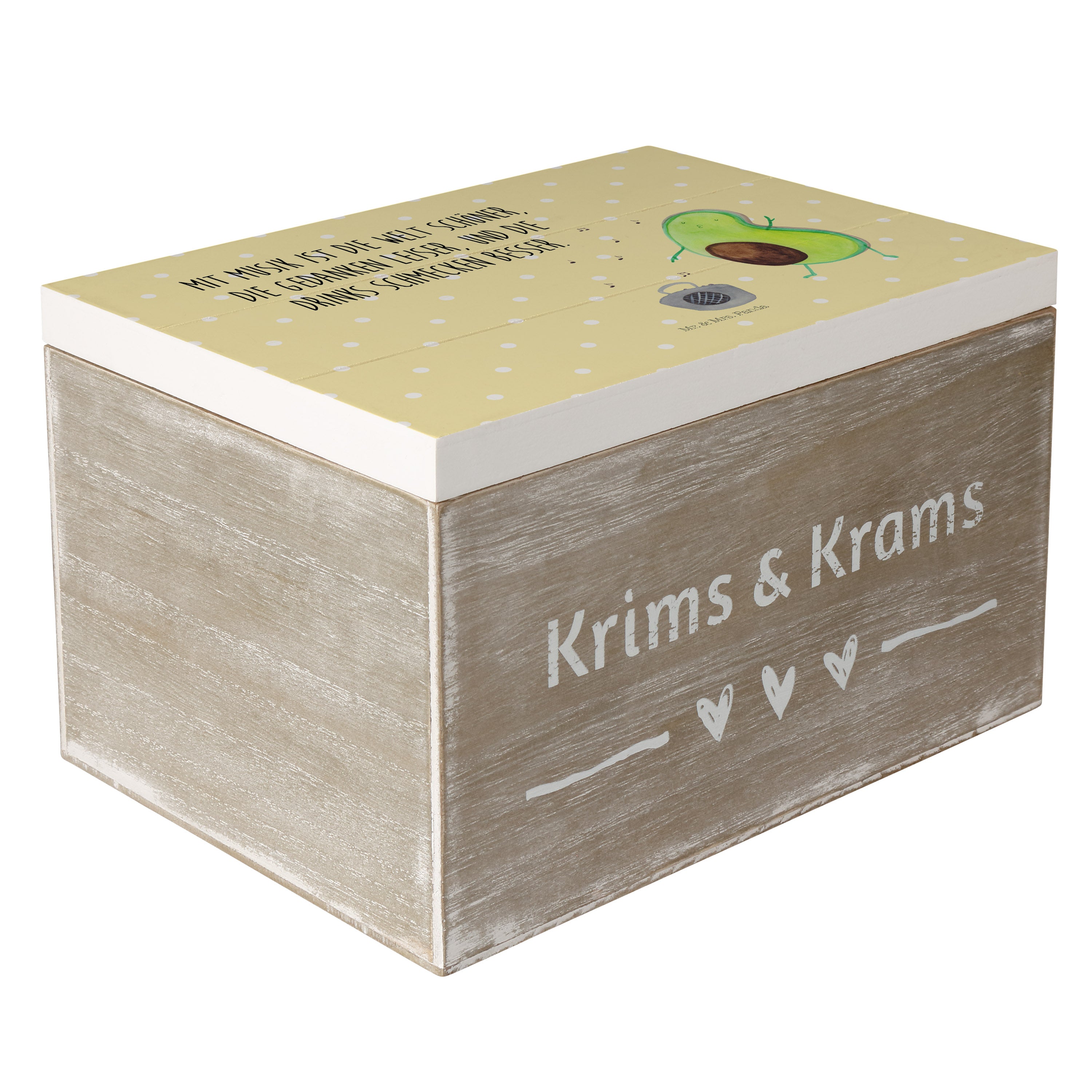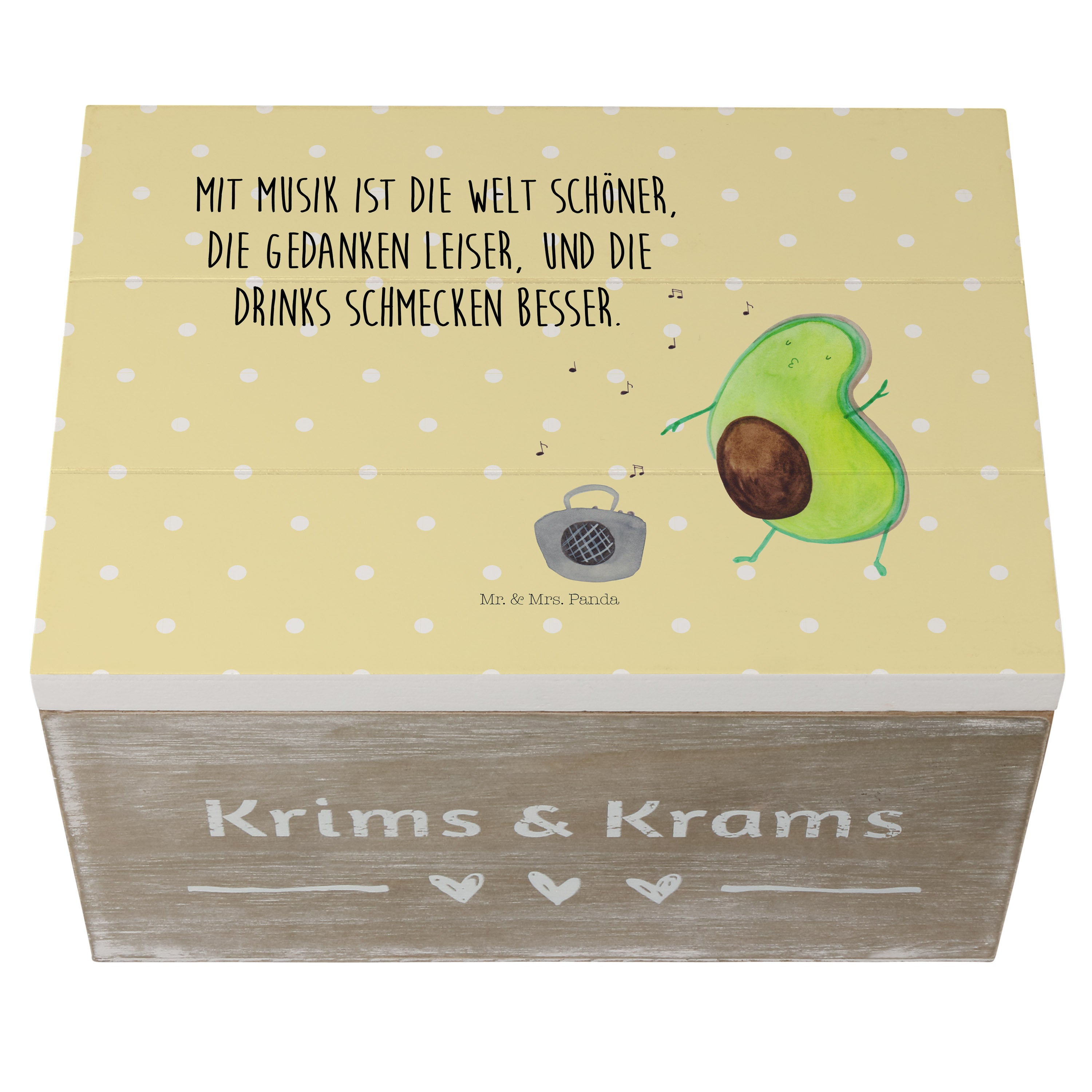 Holzkiste Avocado tanzt - 25 x 18 cm - mit Spruch - Gelb Pastell