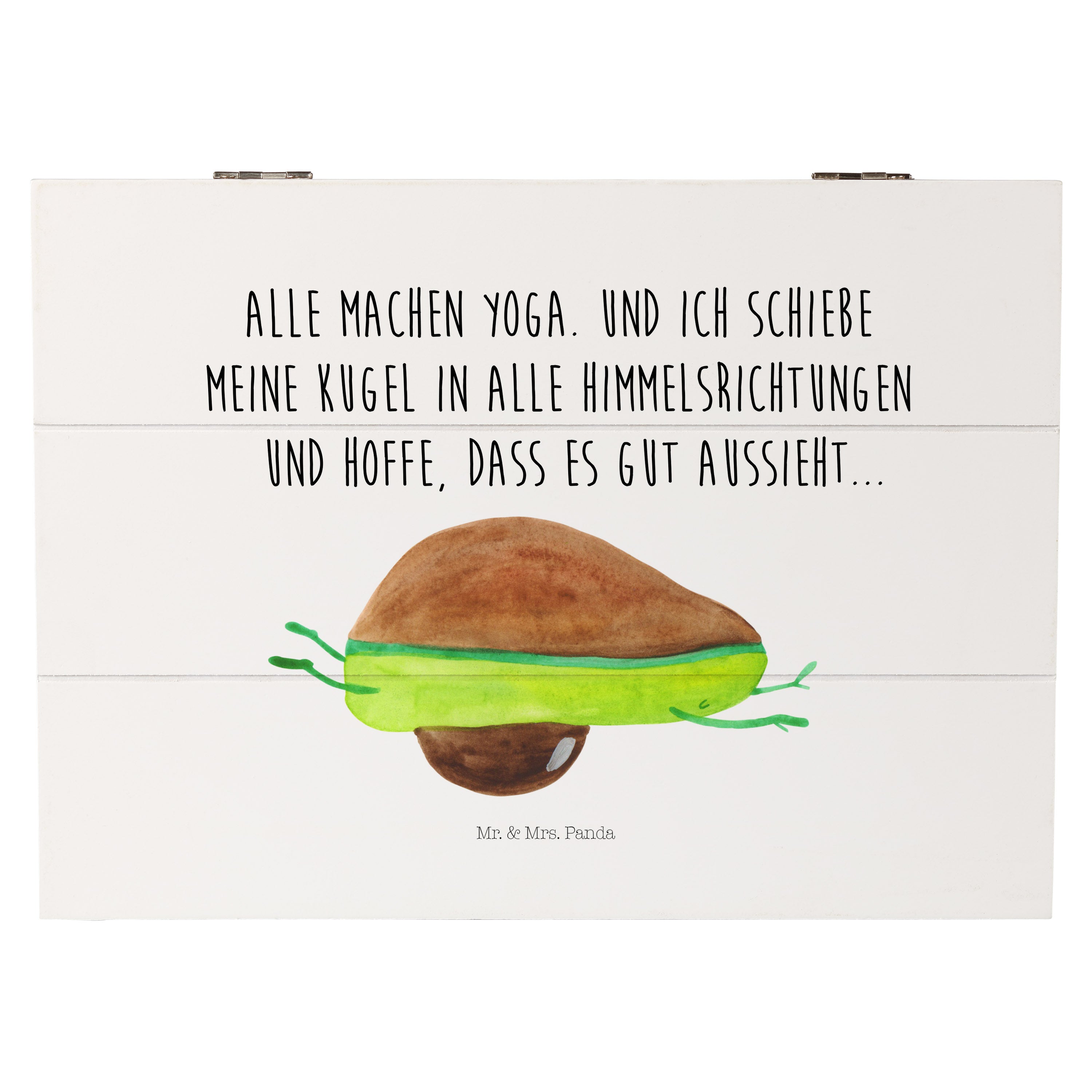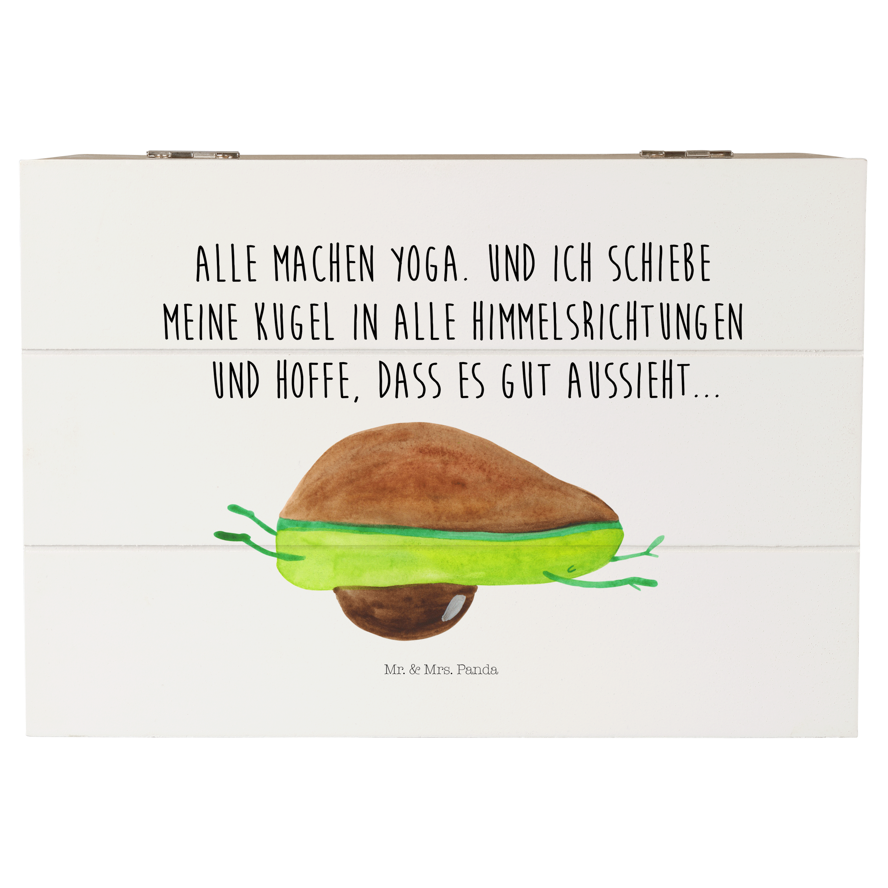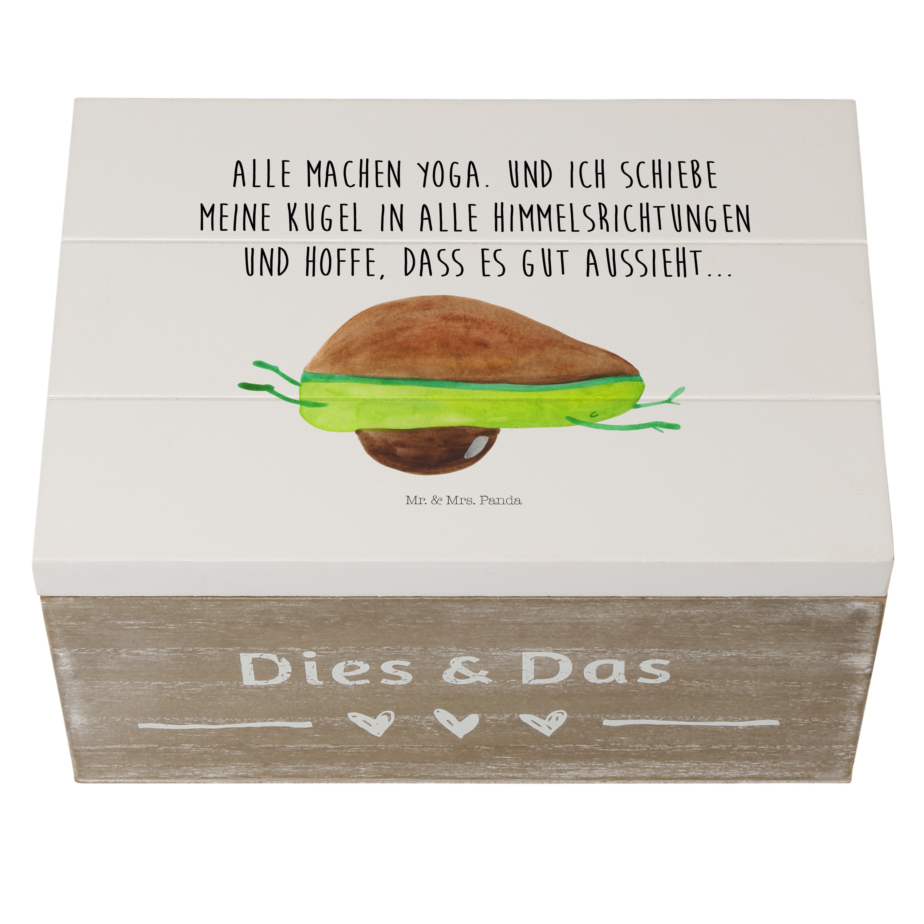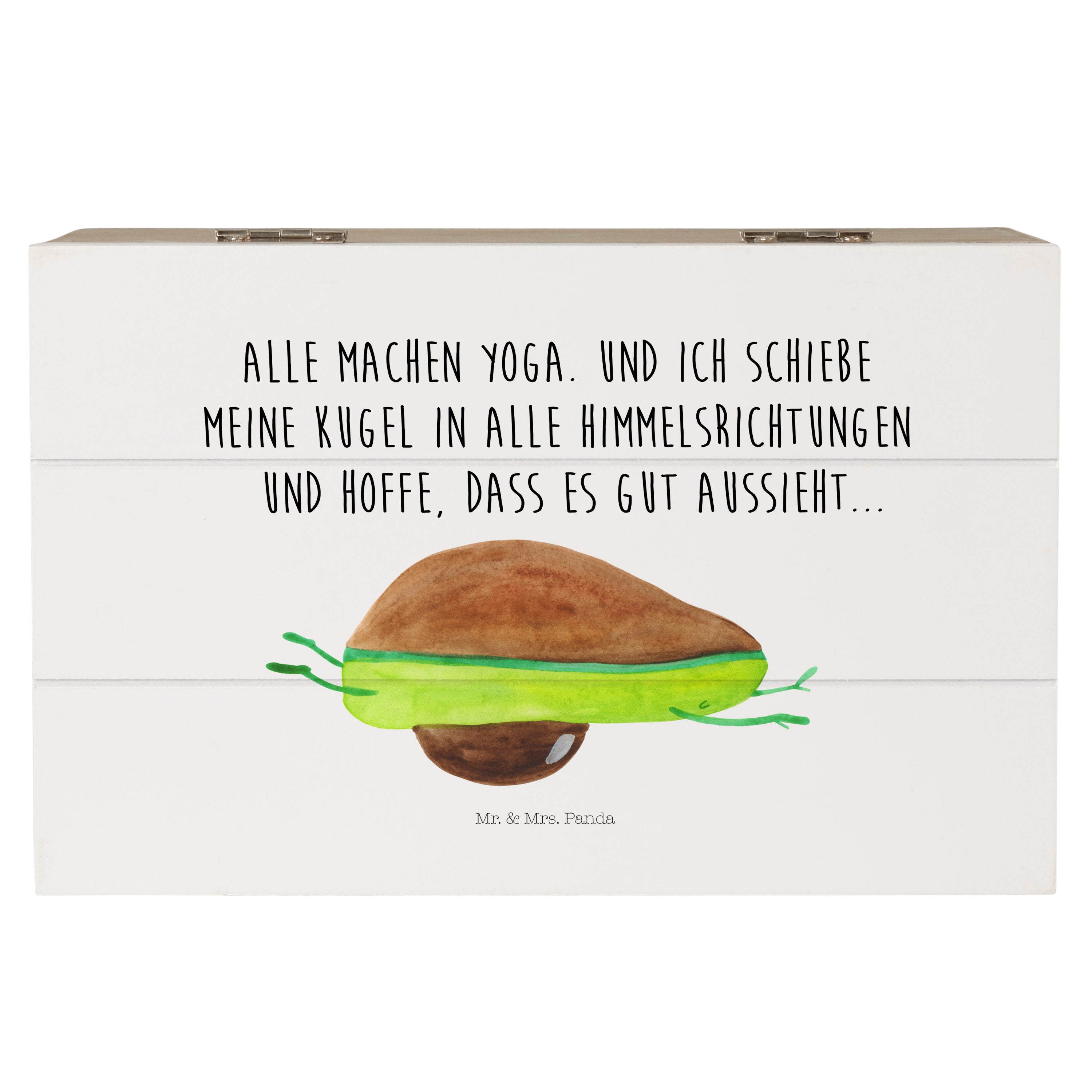 Holzkiste Avocado Yoga - 25 x 18 cm - mit Spruch - Weiß