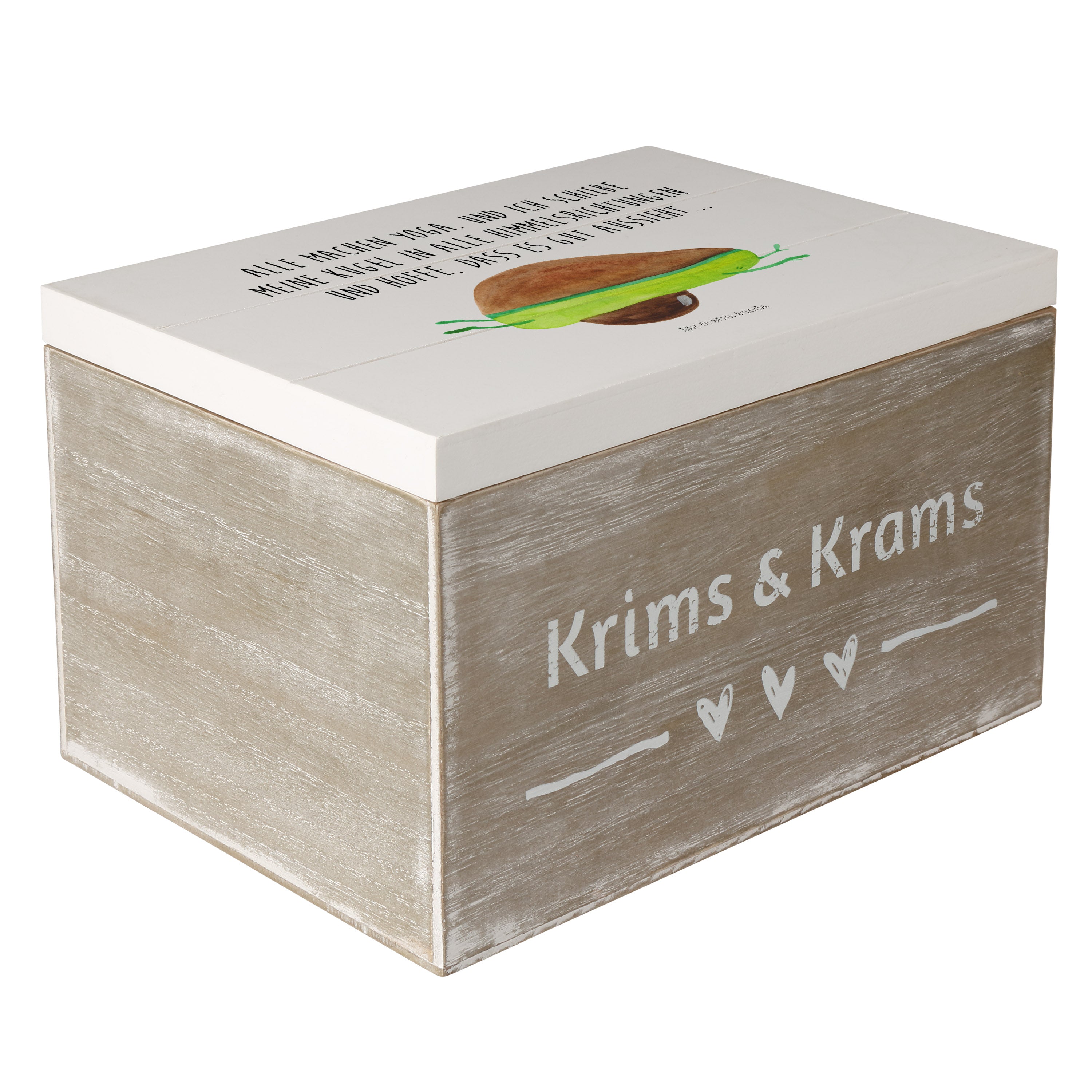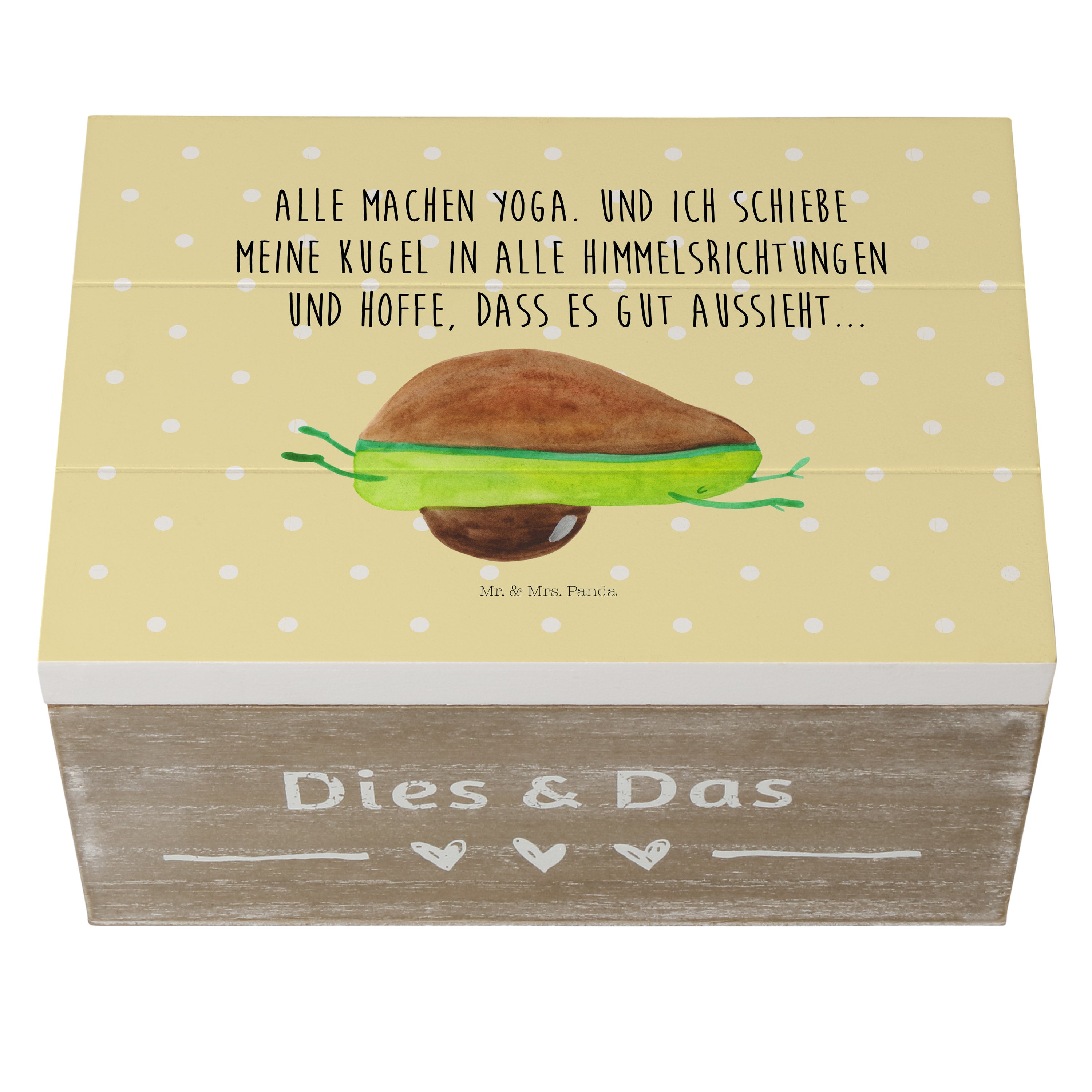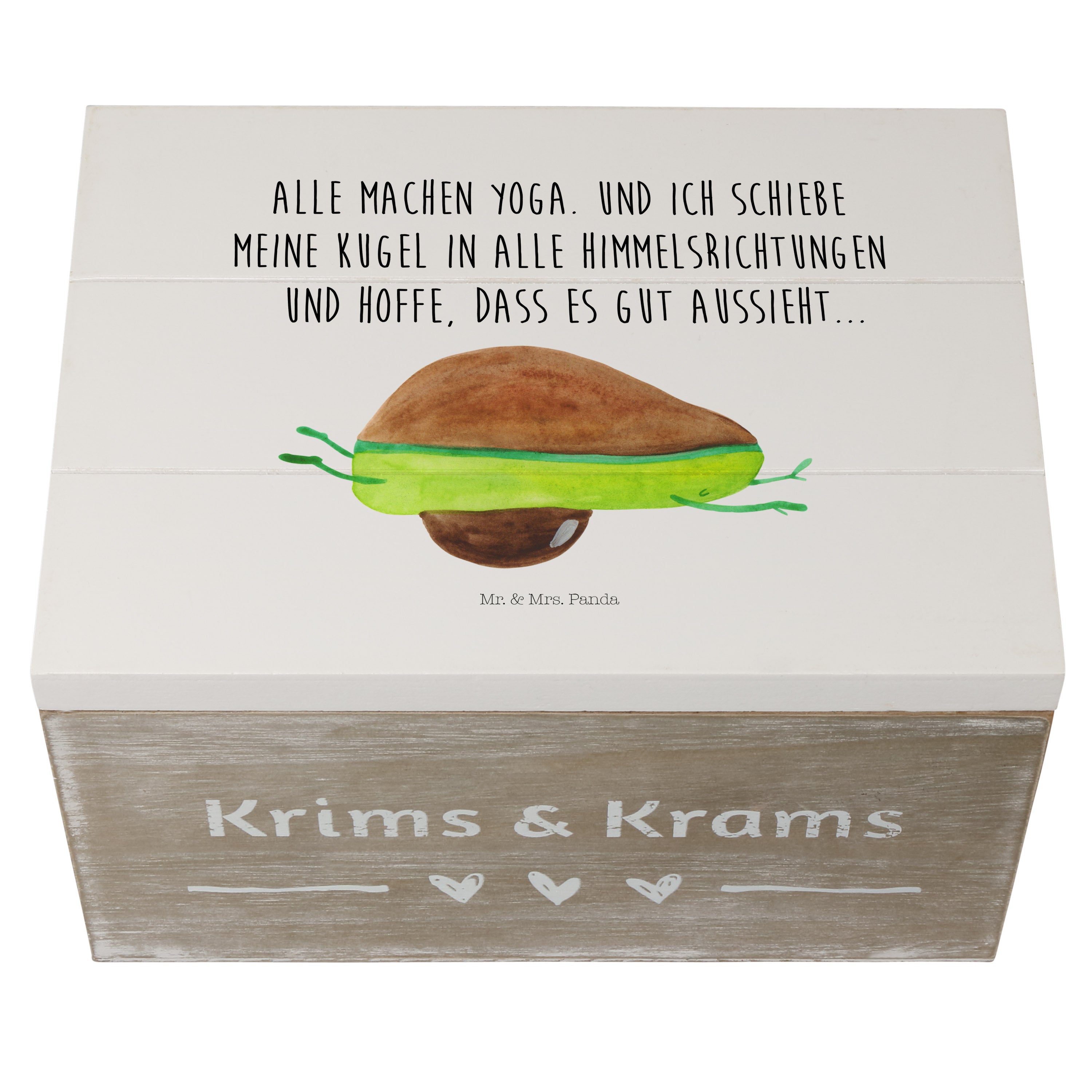 Holzkiste Avocado Yoga - 25 x 18 cm - mit Spruch - Weiß