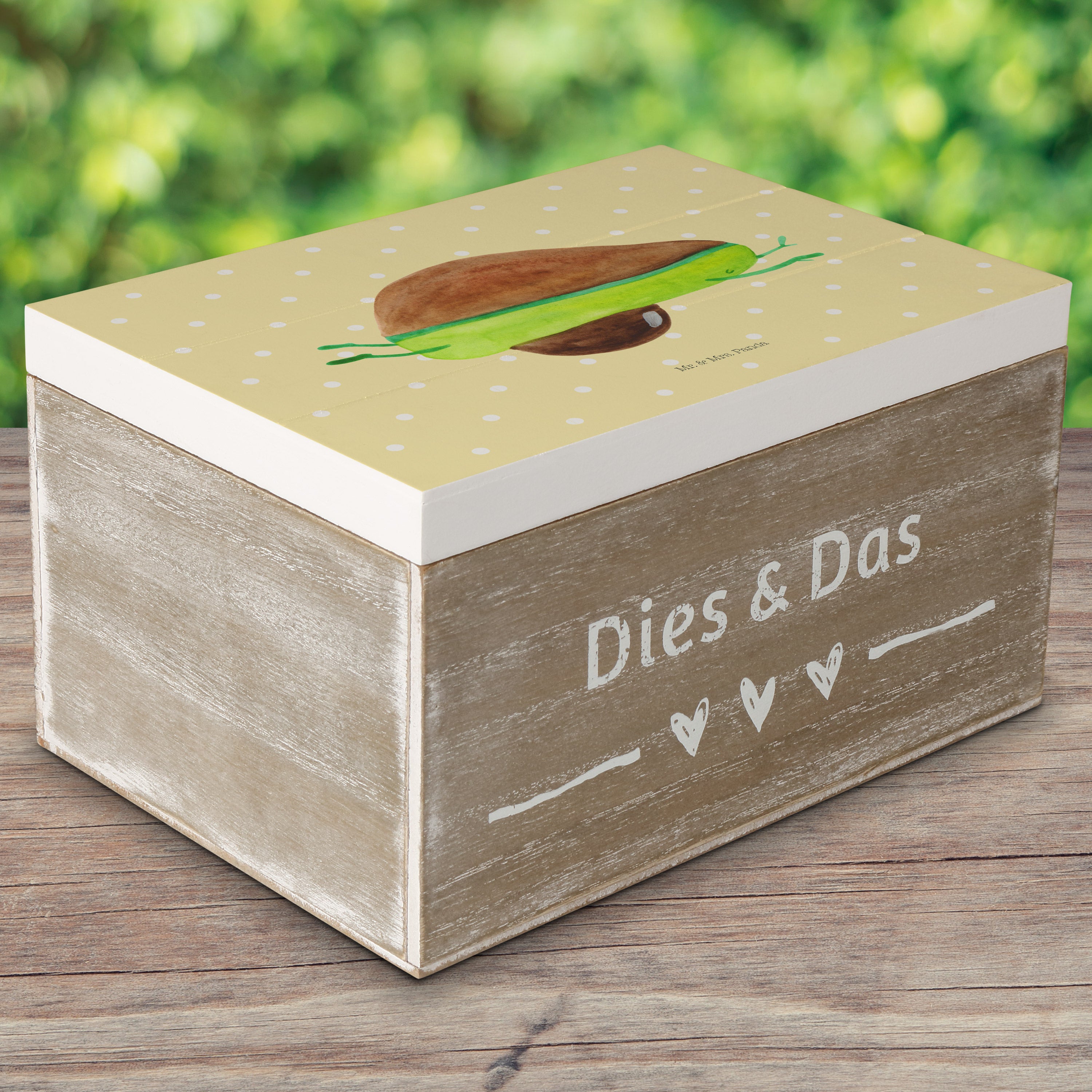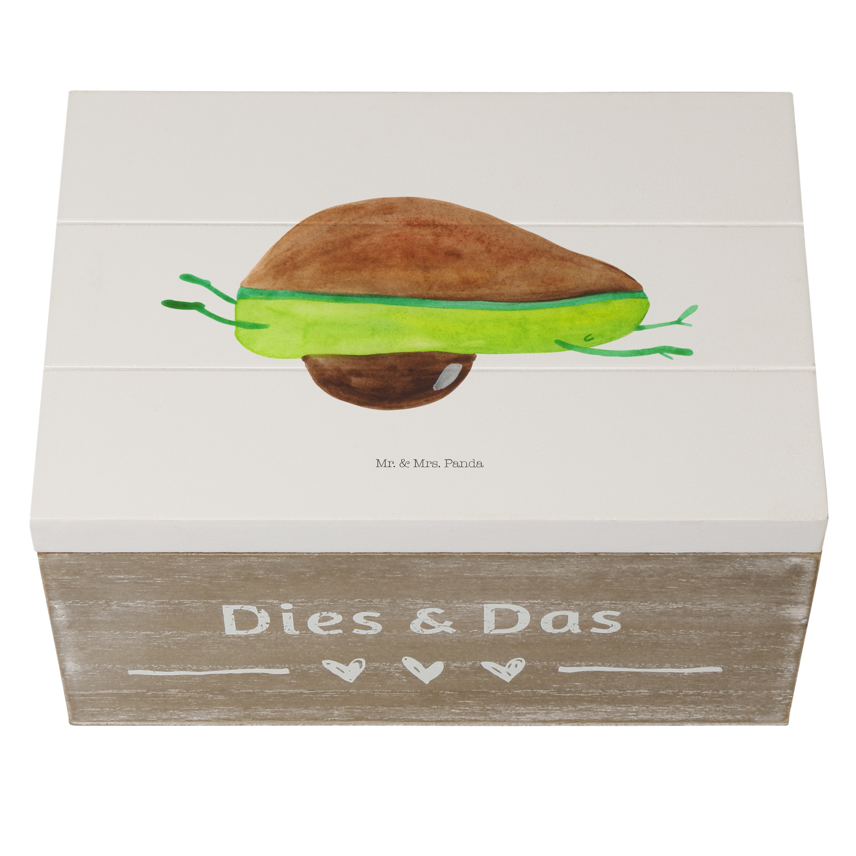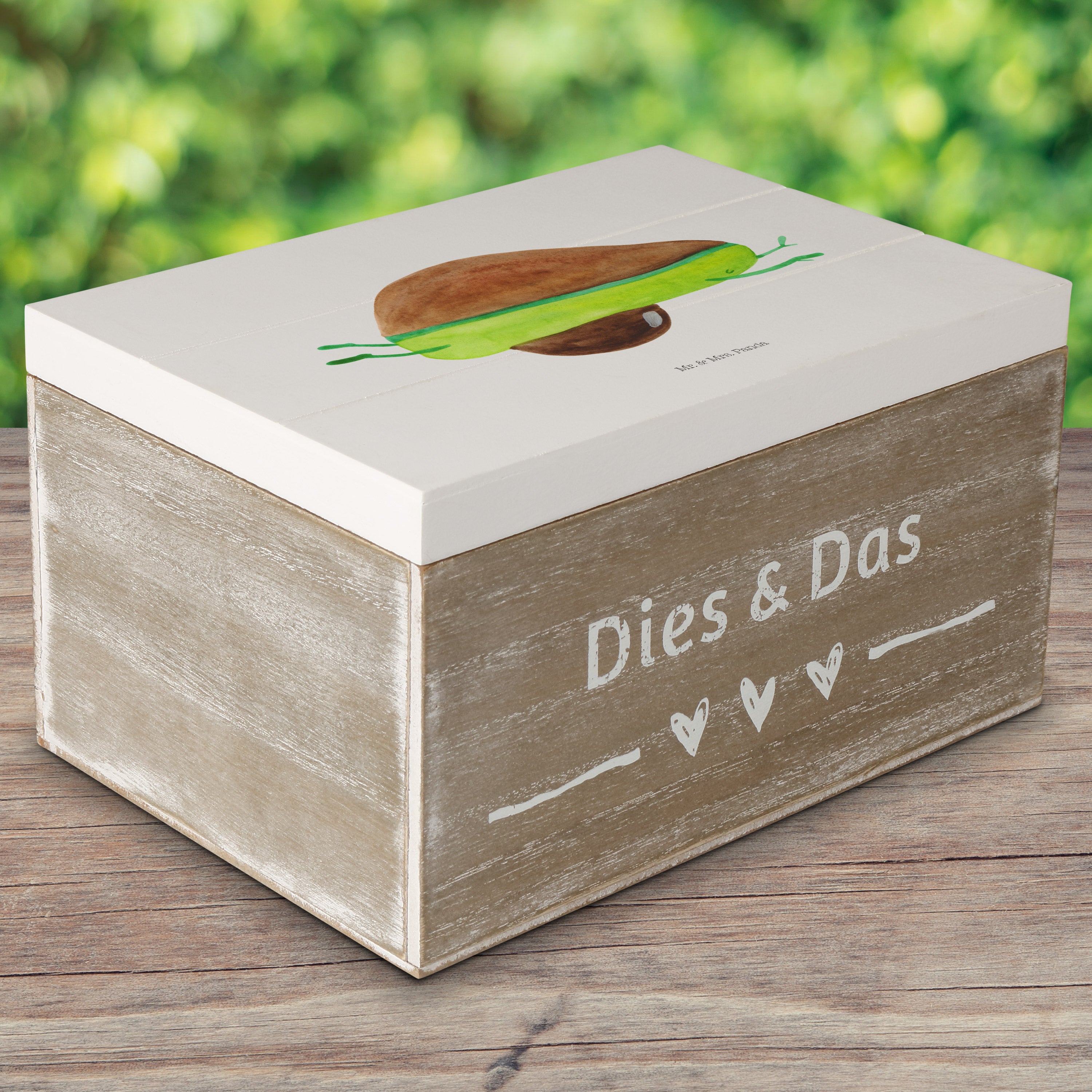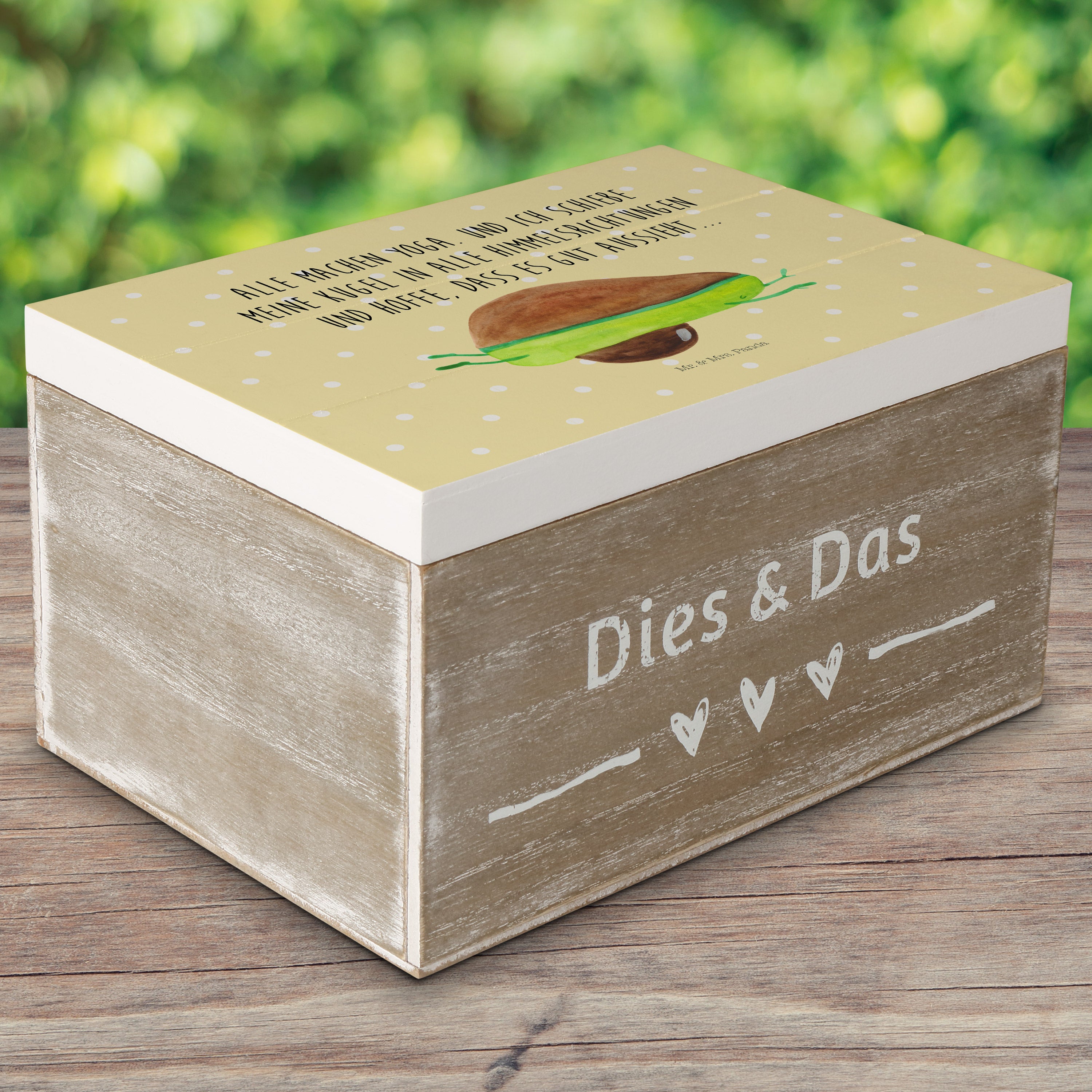 Holzkiste Avocado Yoga - 25 x 18 cm - mit Spruch - Weiß