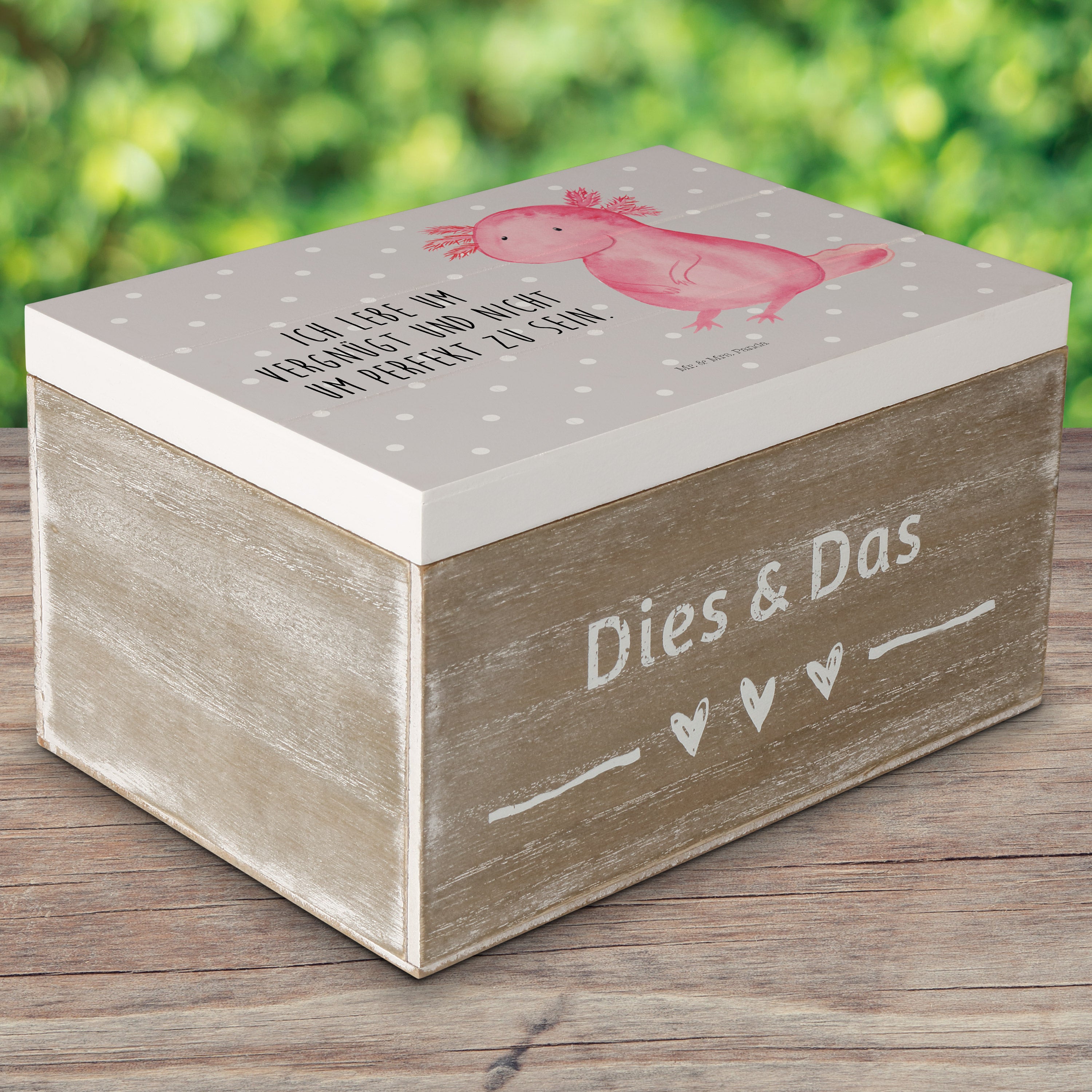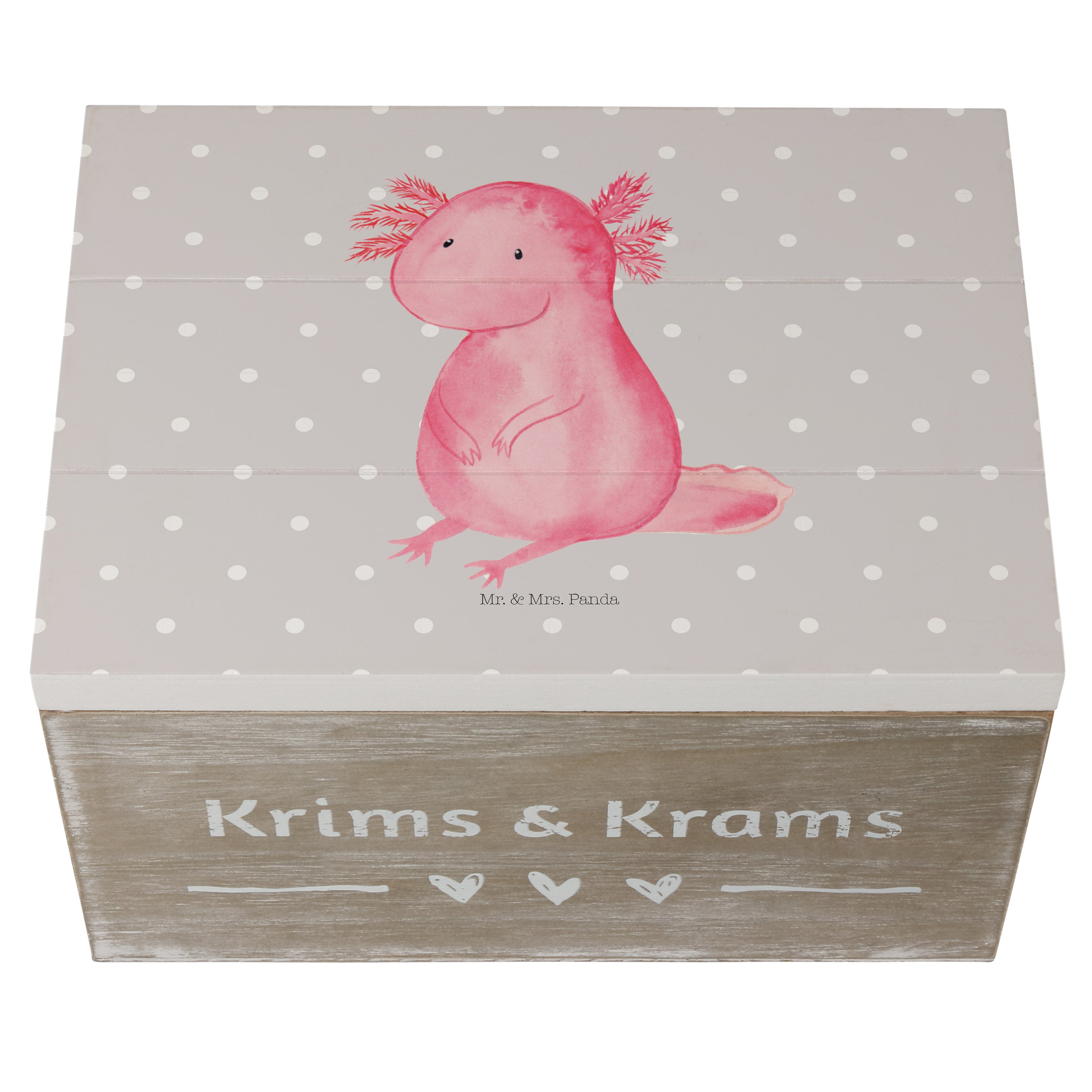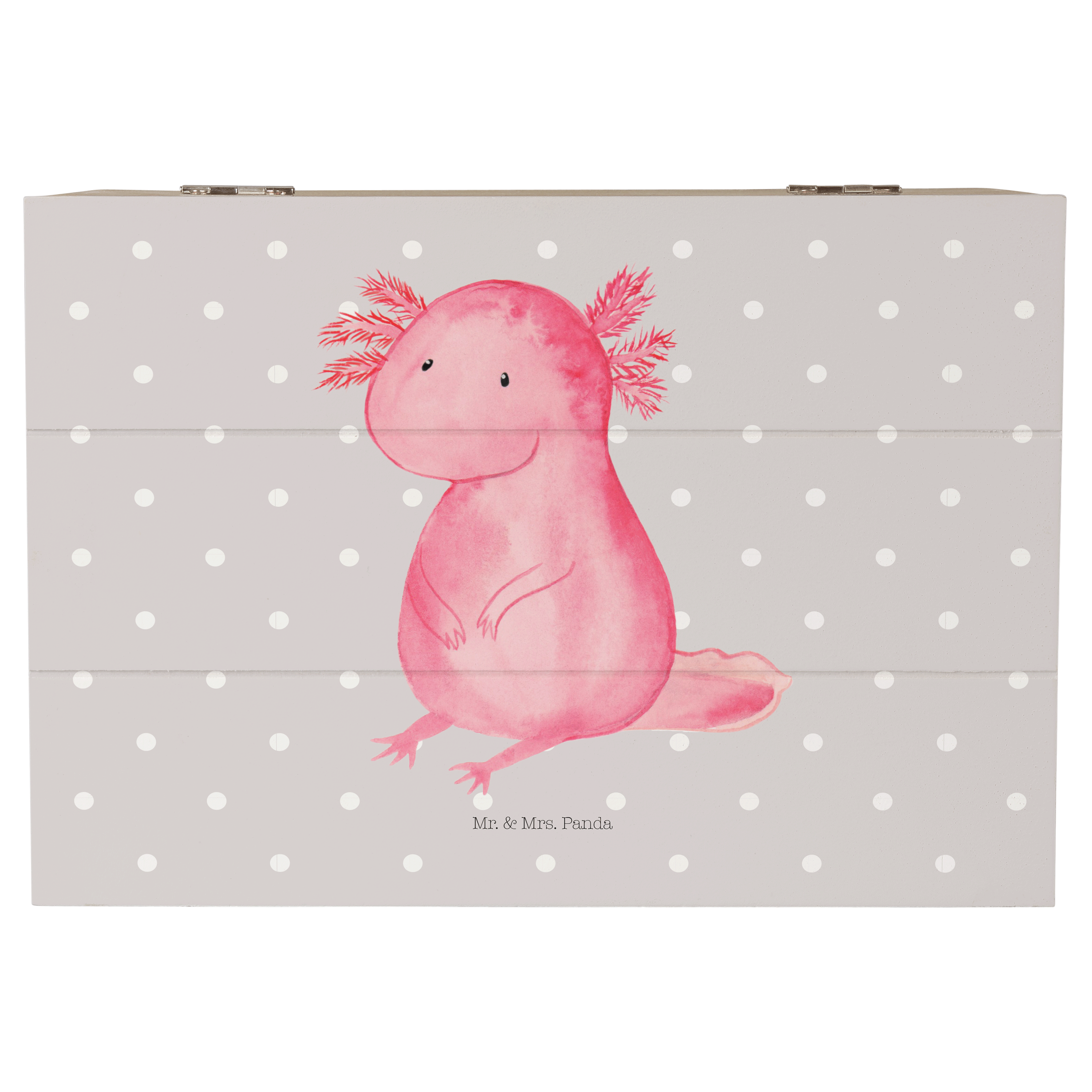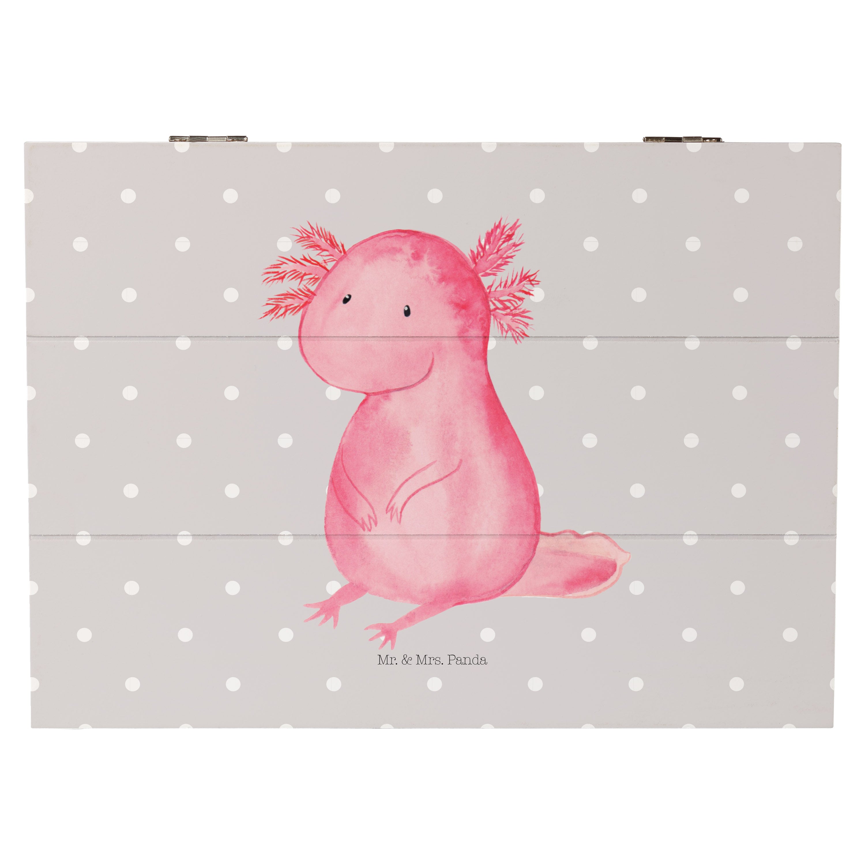 Holzkiste Axolotl - 25 x 18 cm - mit Spruch - Grau Pastell