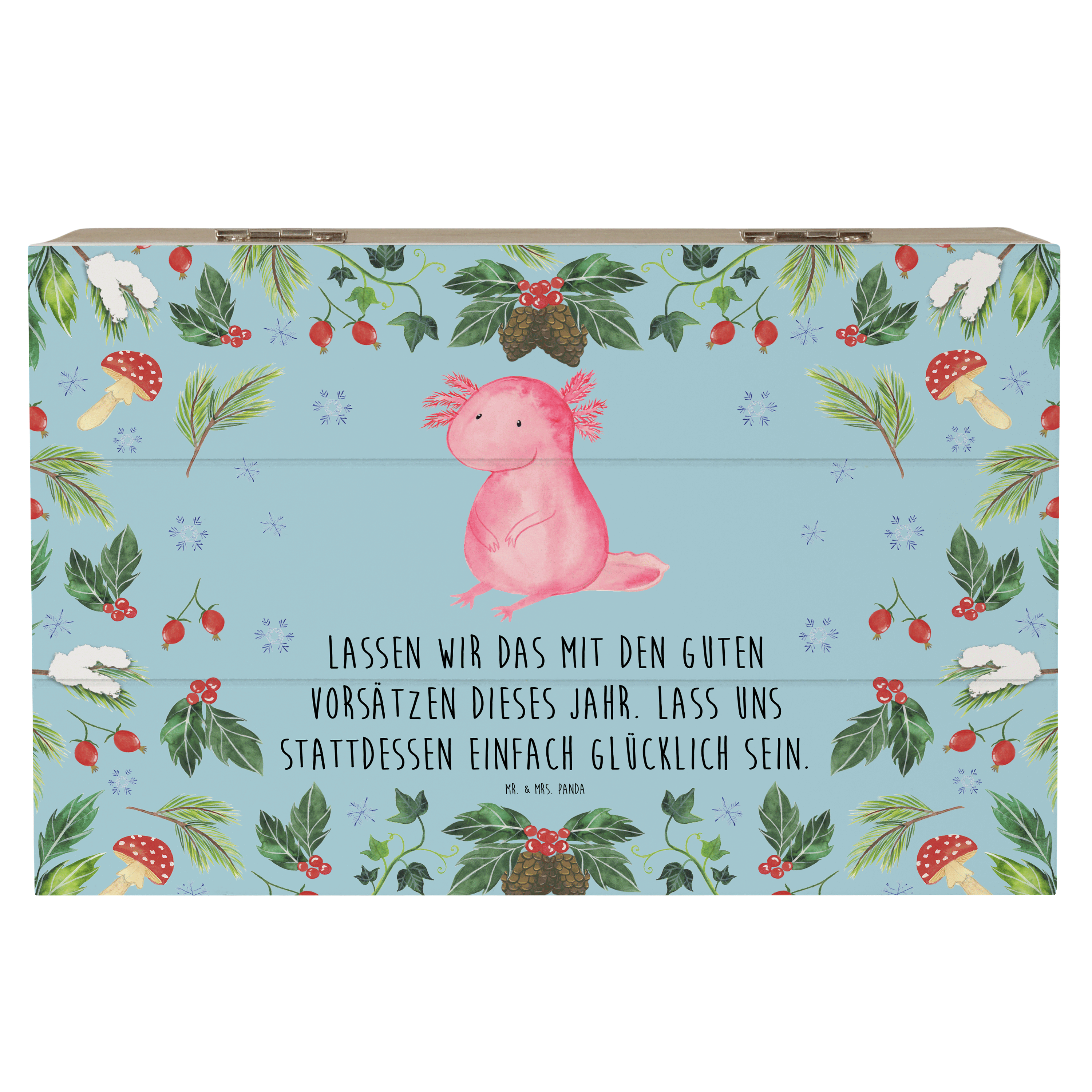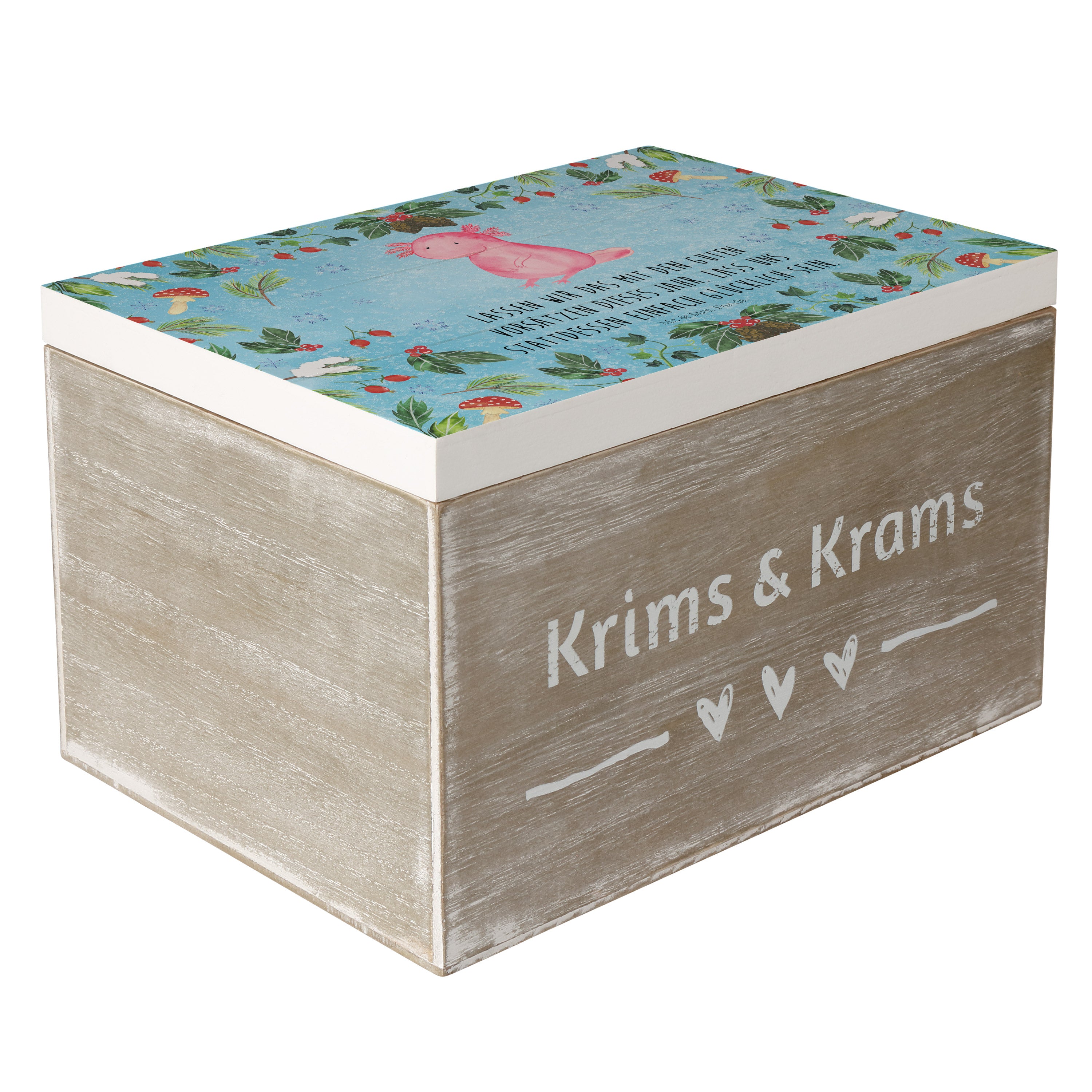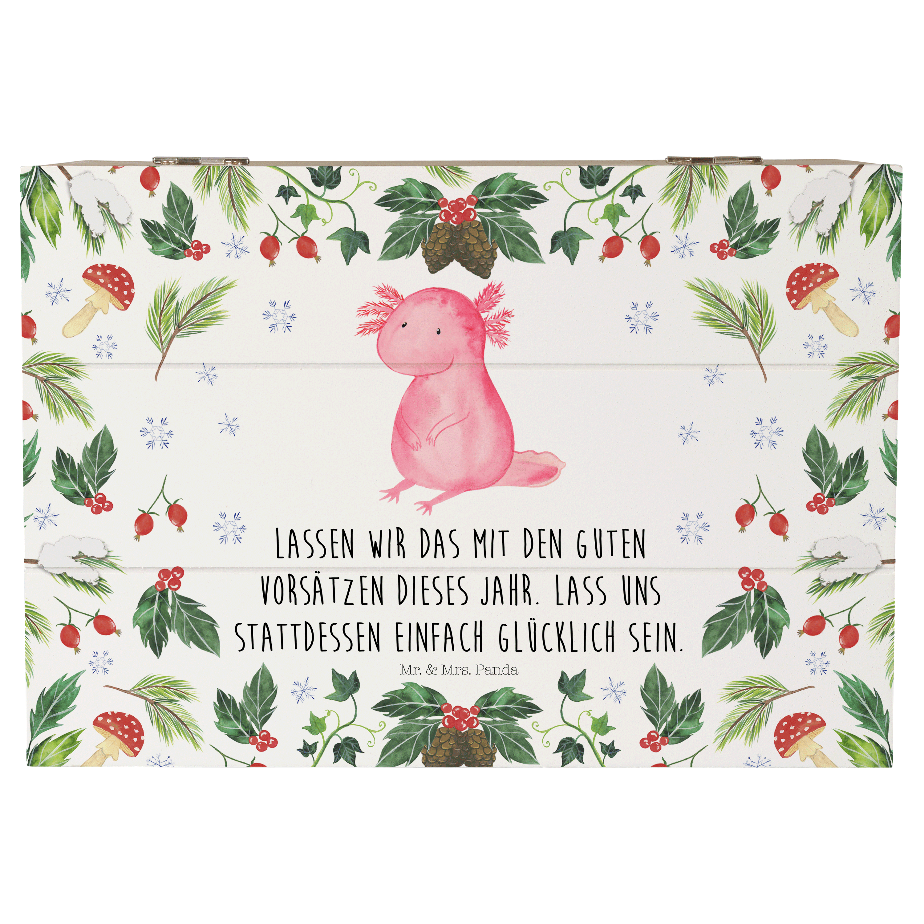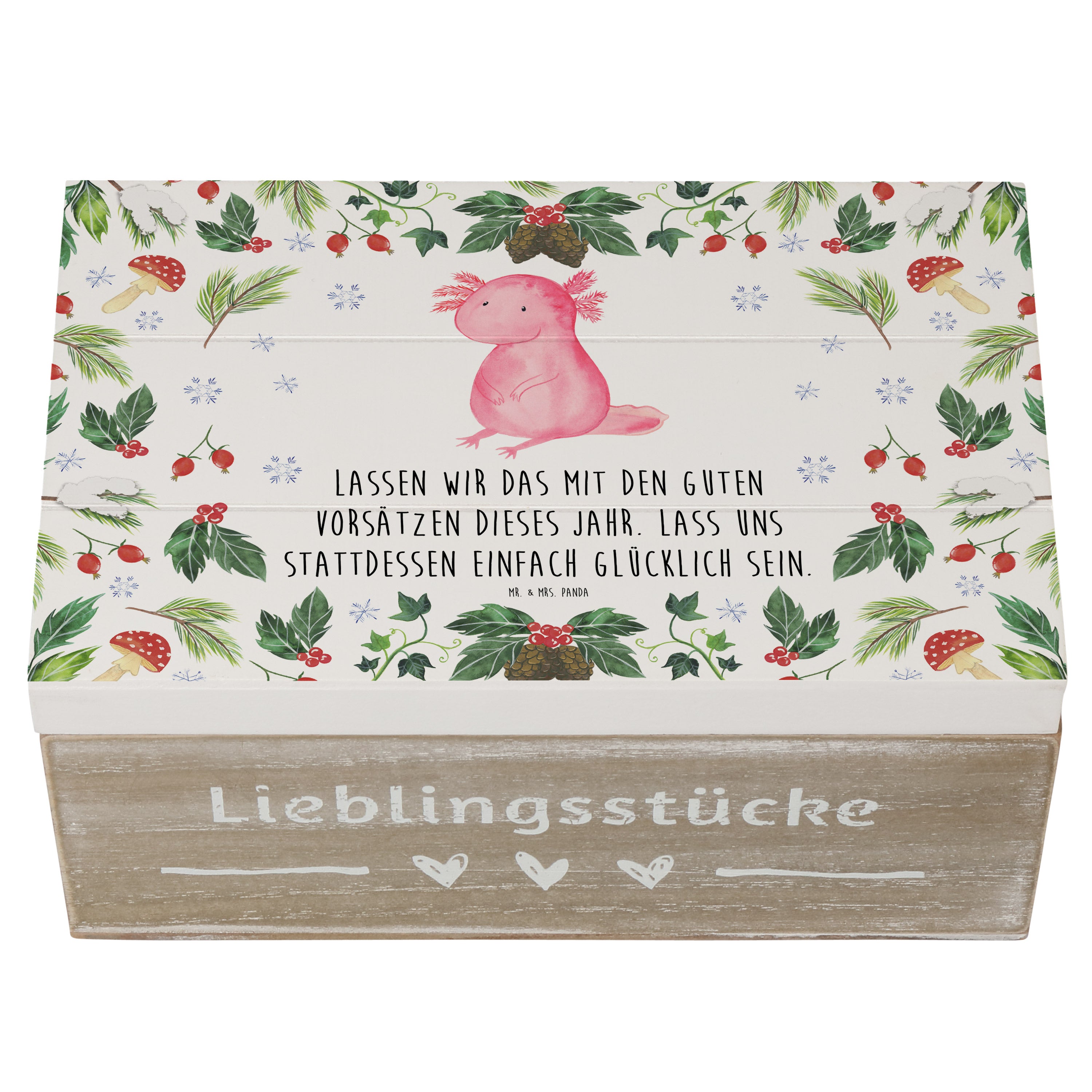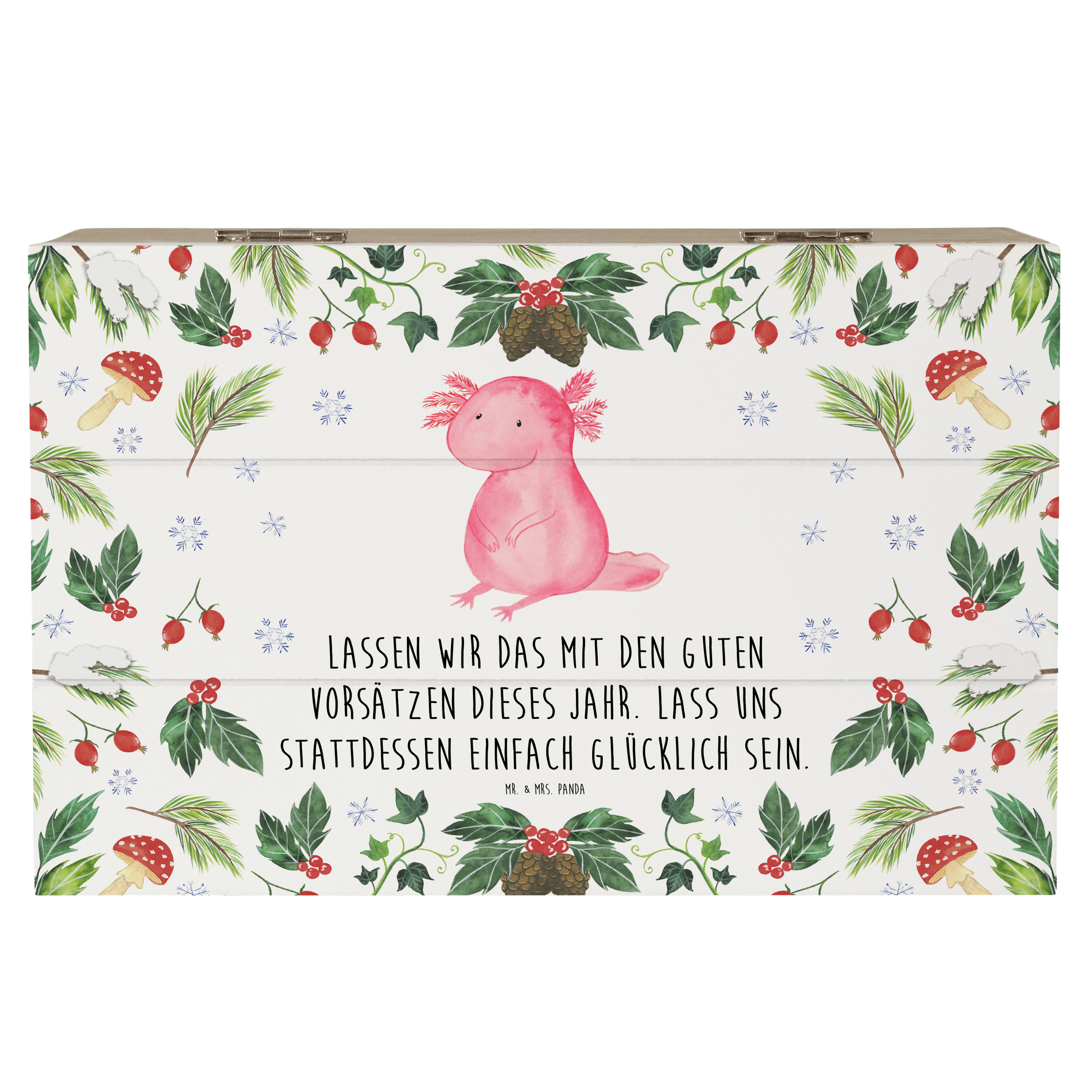 Holzkiste Axolotl Glücklich - 25 x 18 cm - mit Spruch - Weiß
