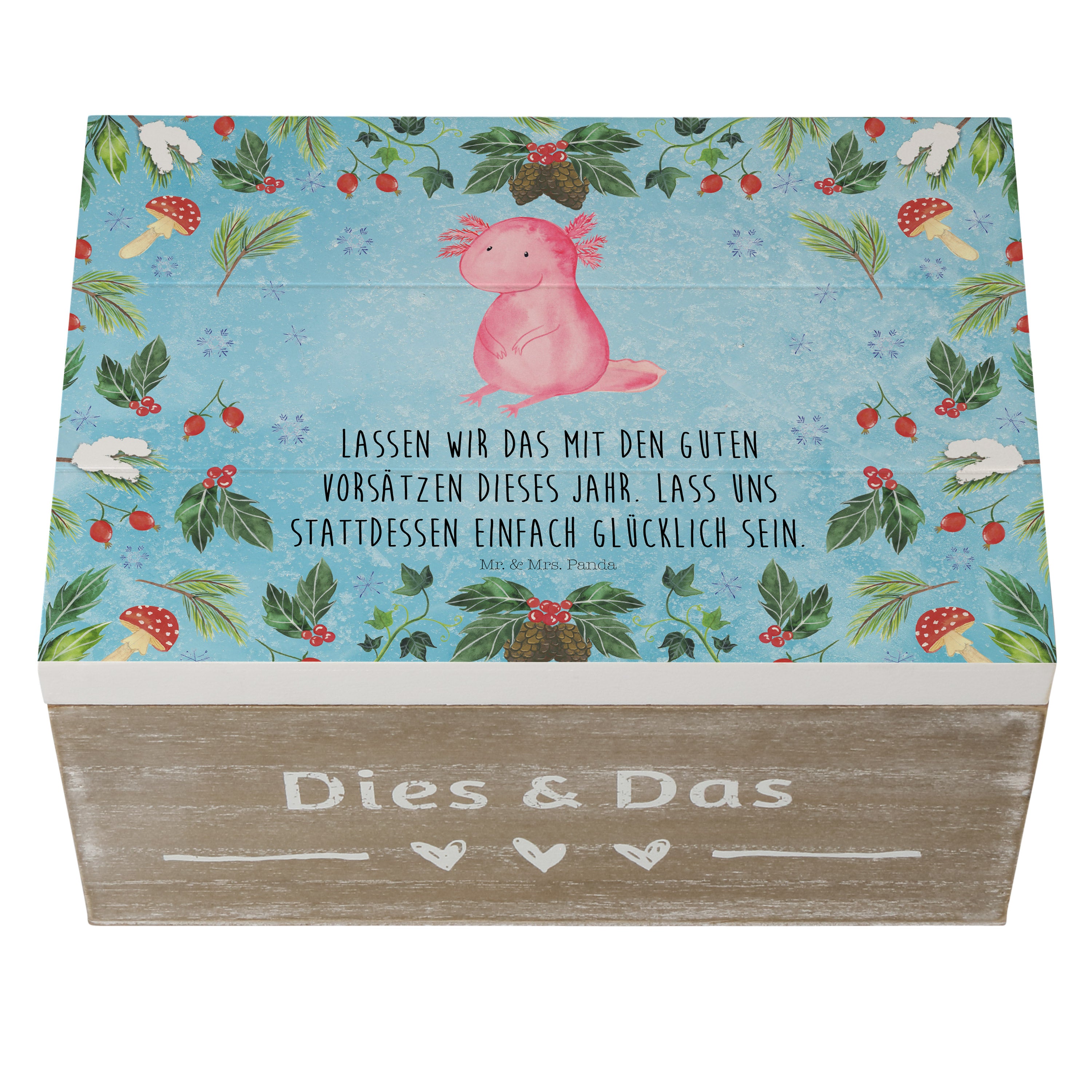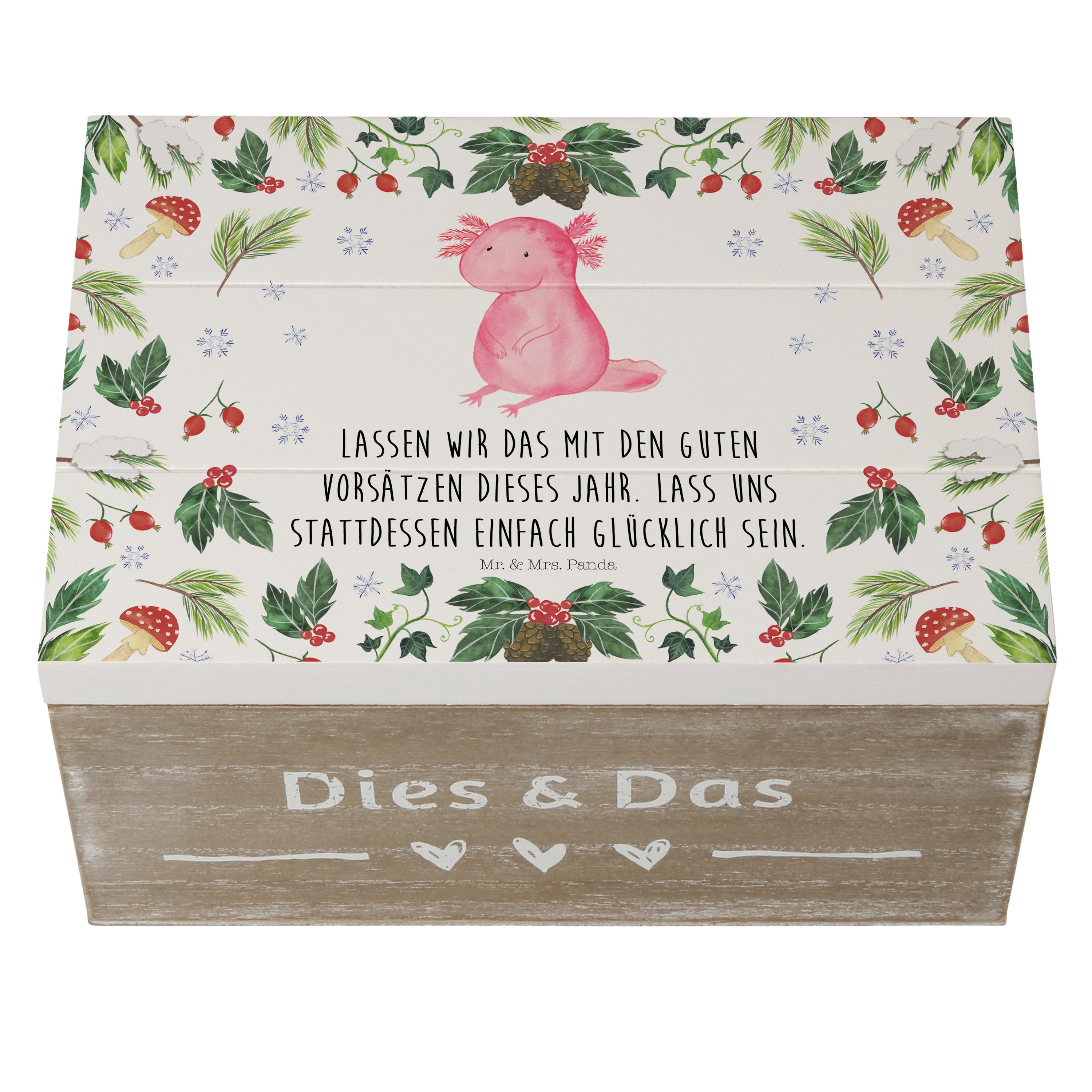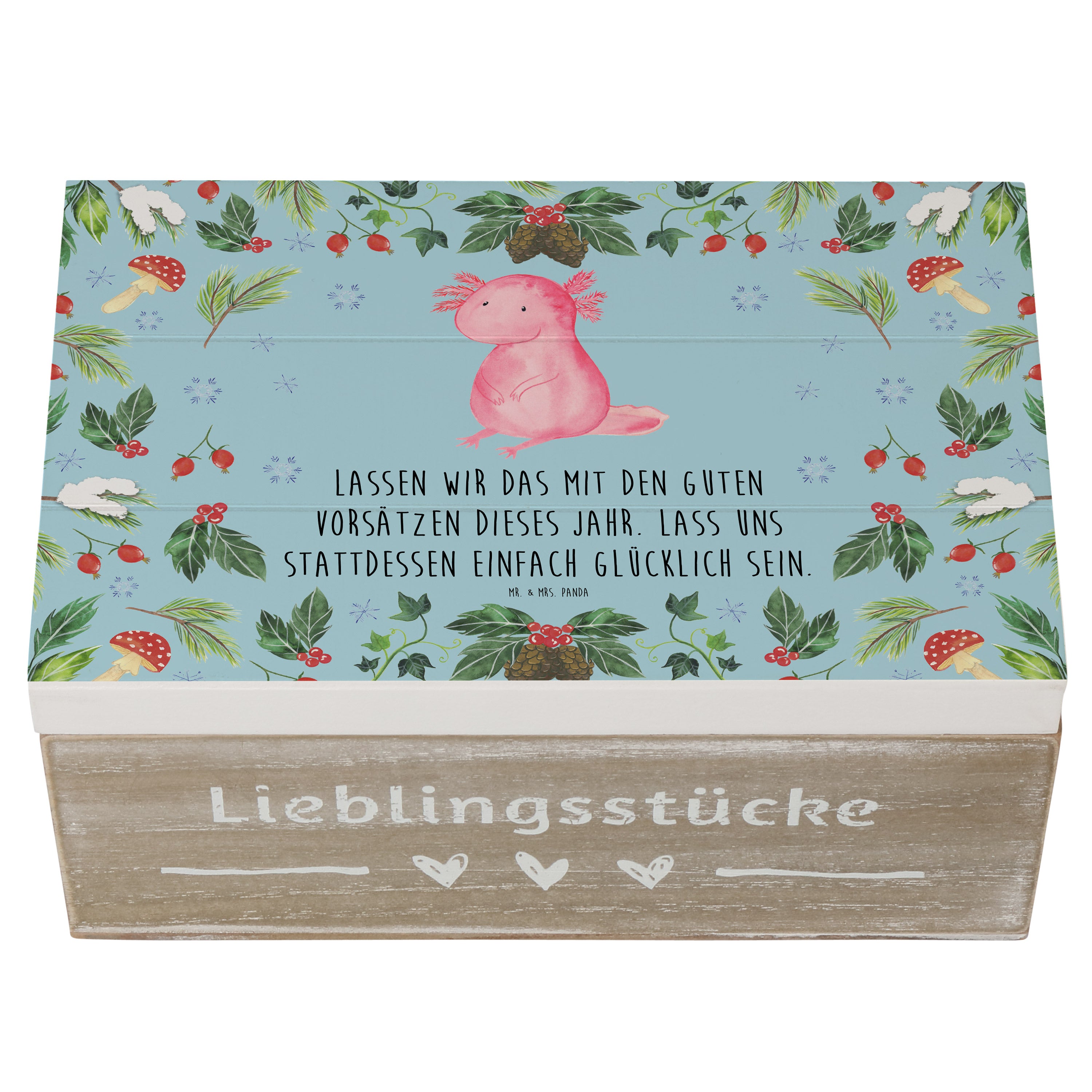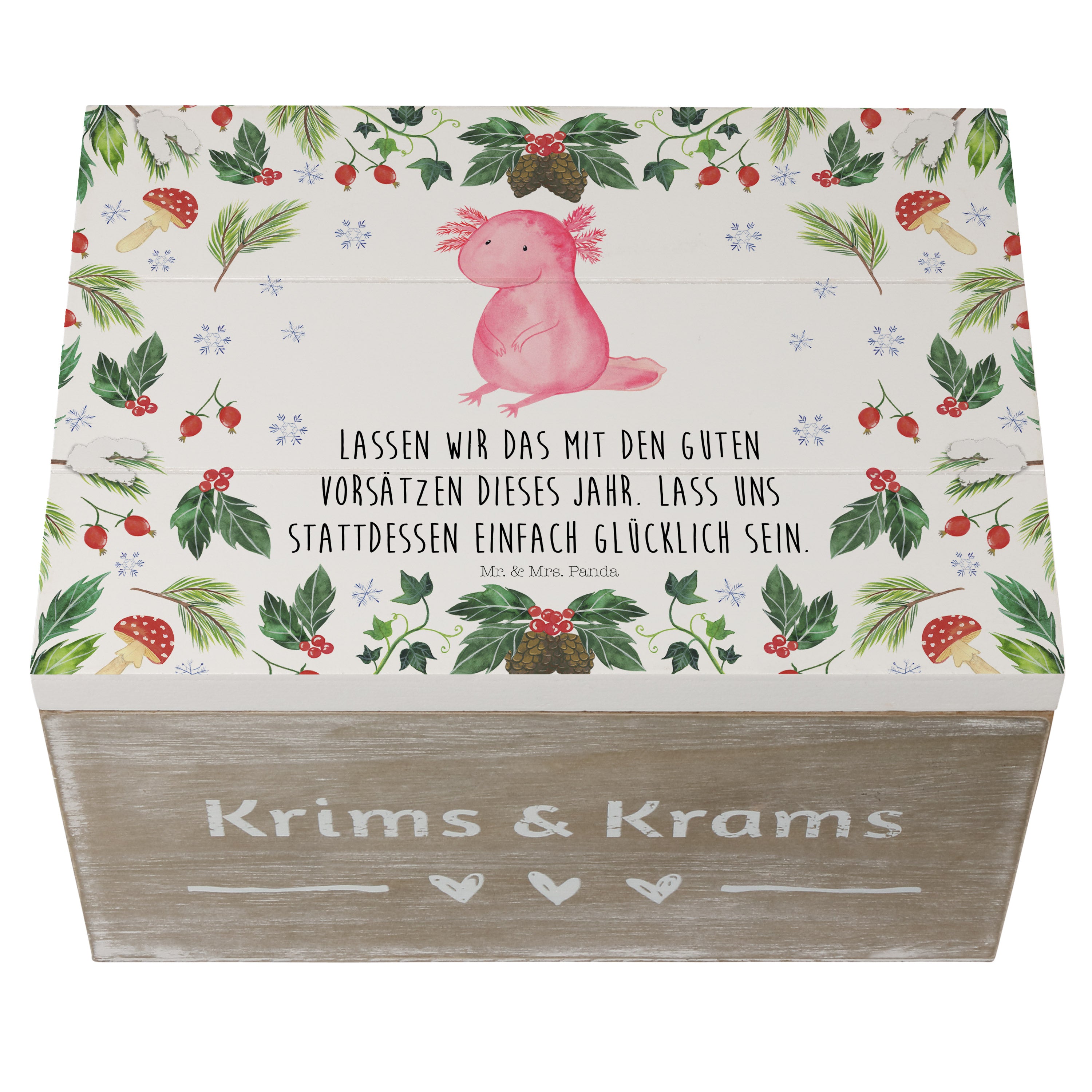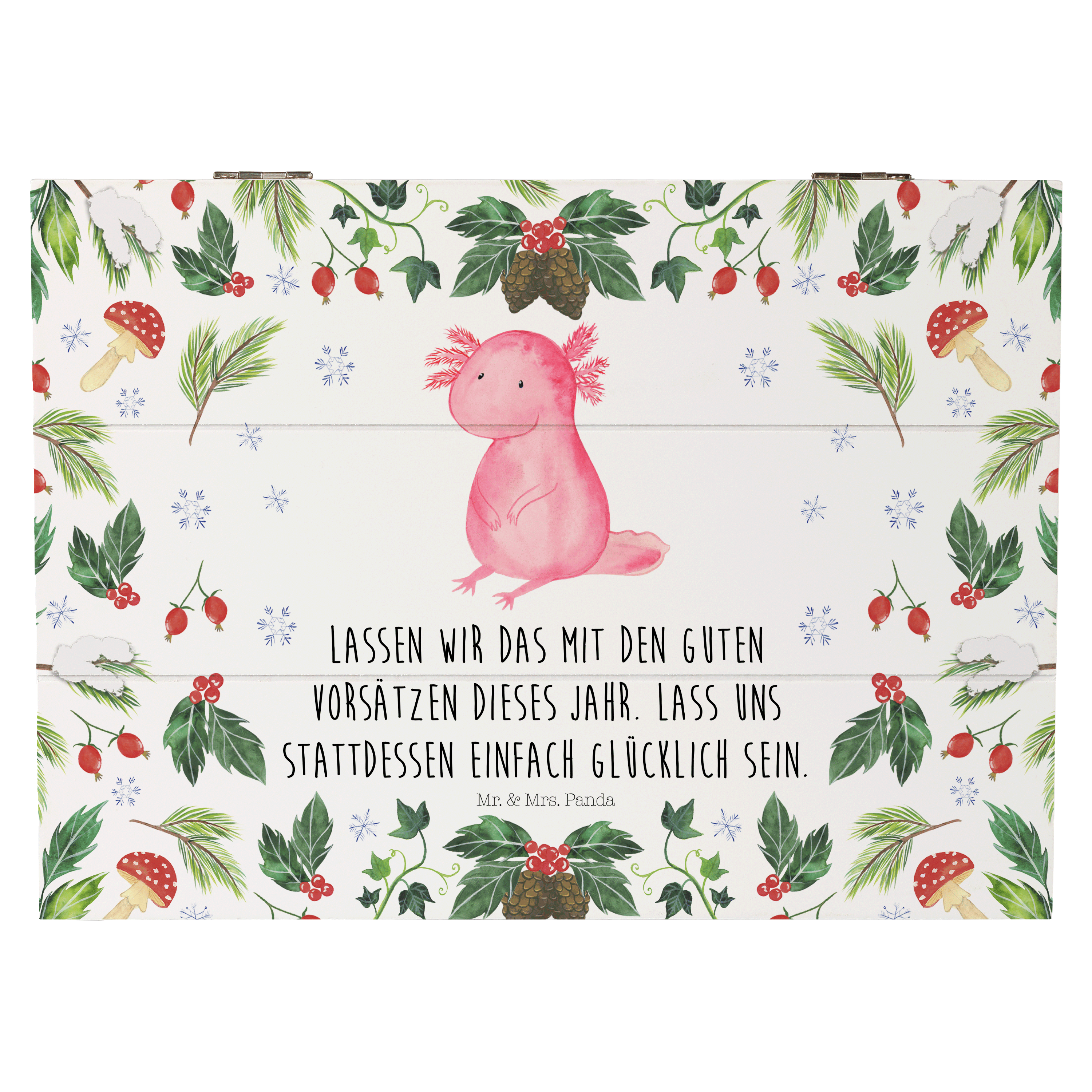 Holzkiste Axolotl Glücklich - 25 x 18 cm - mit Spruch - Weiß