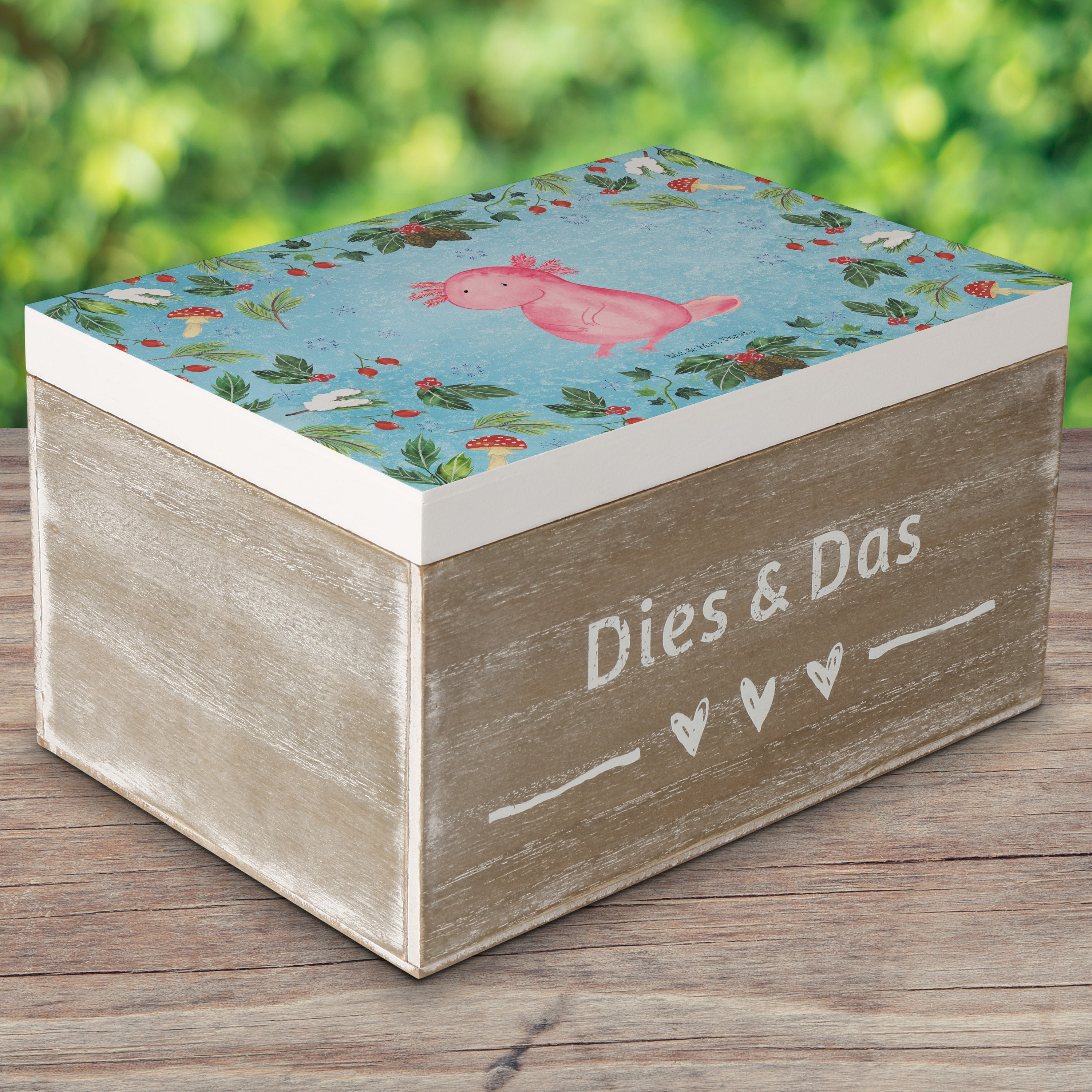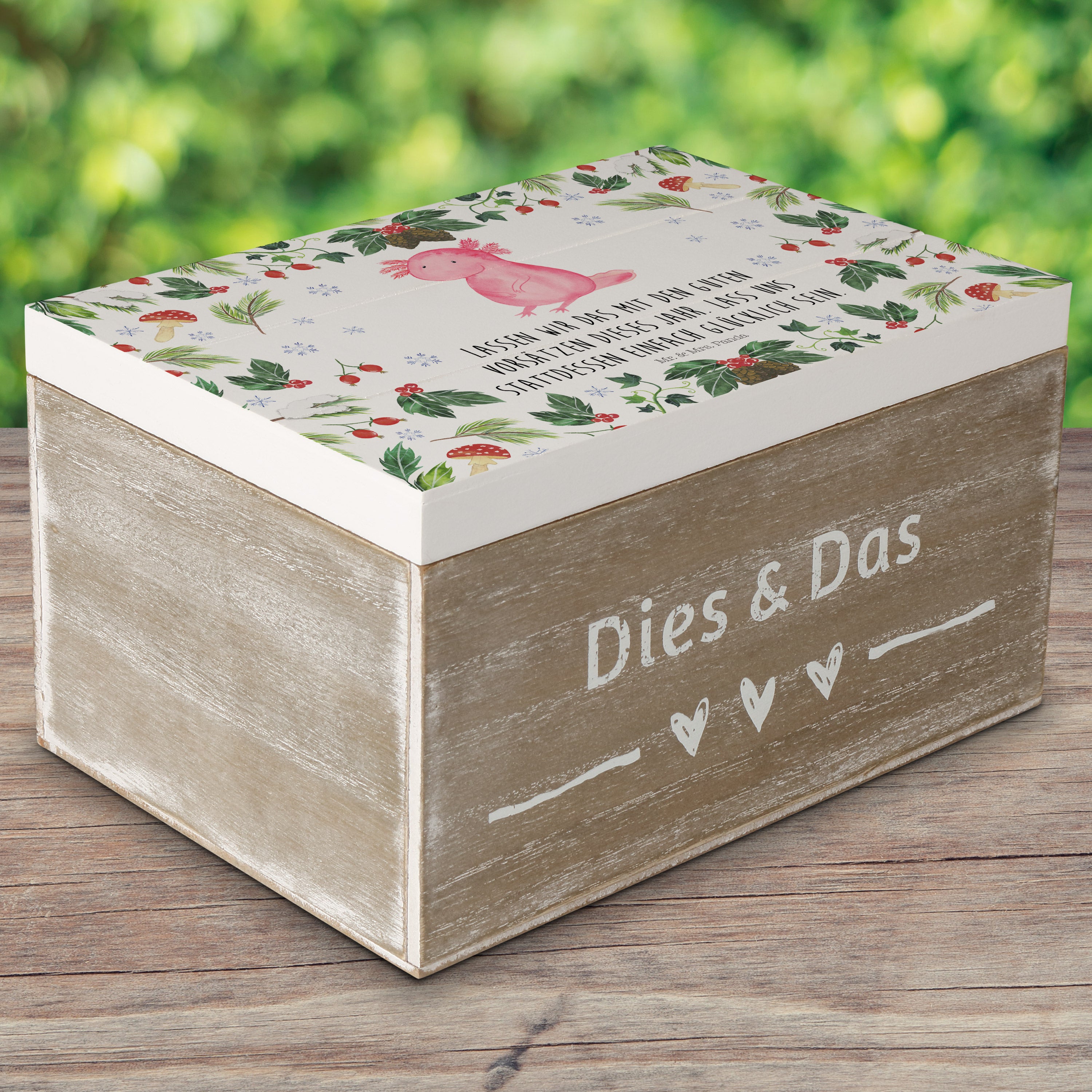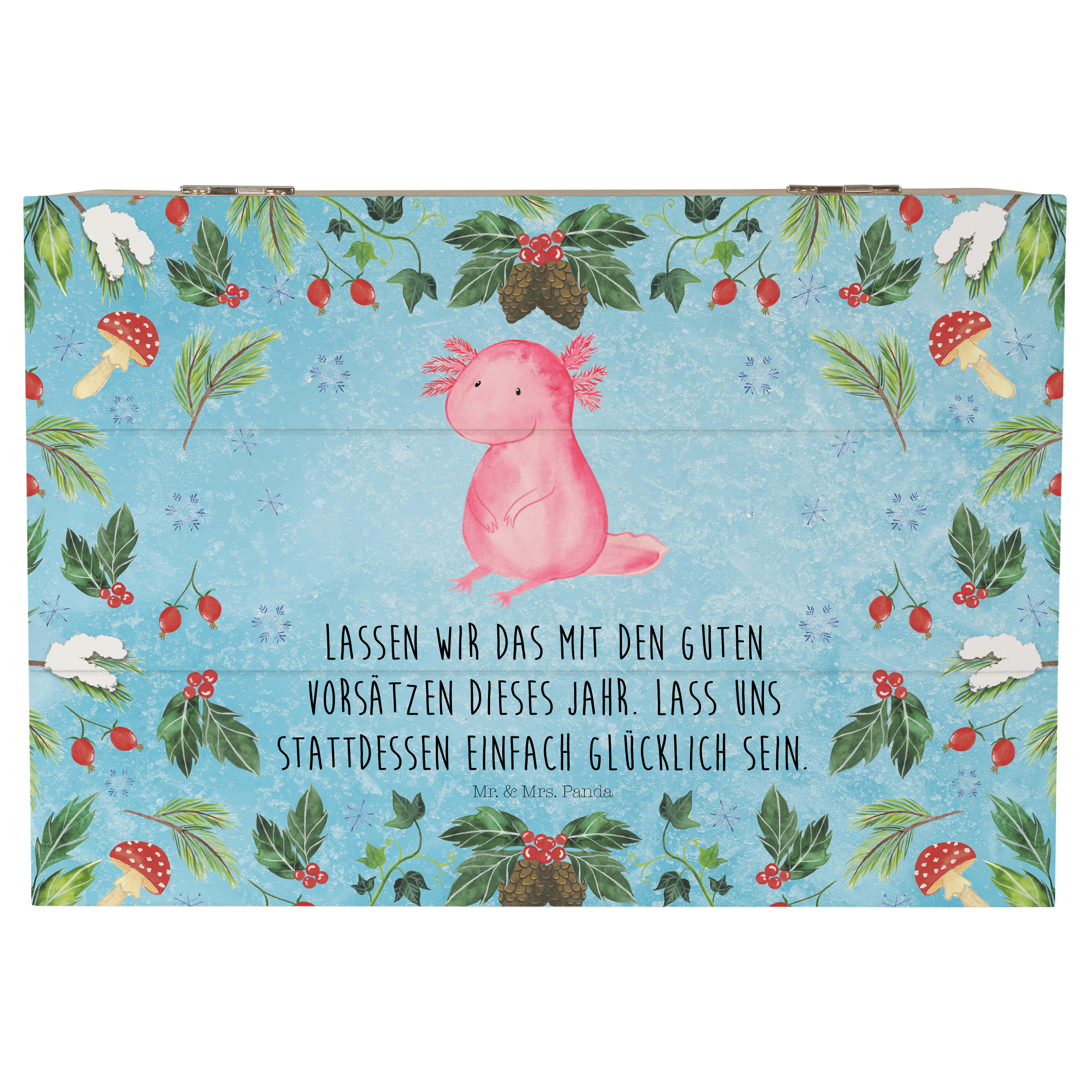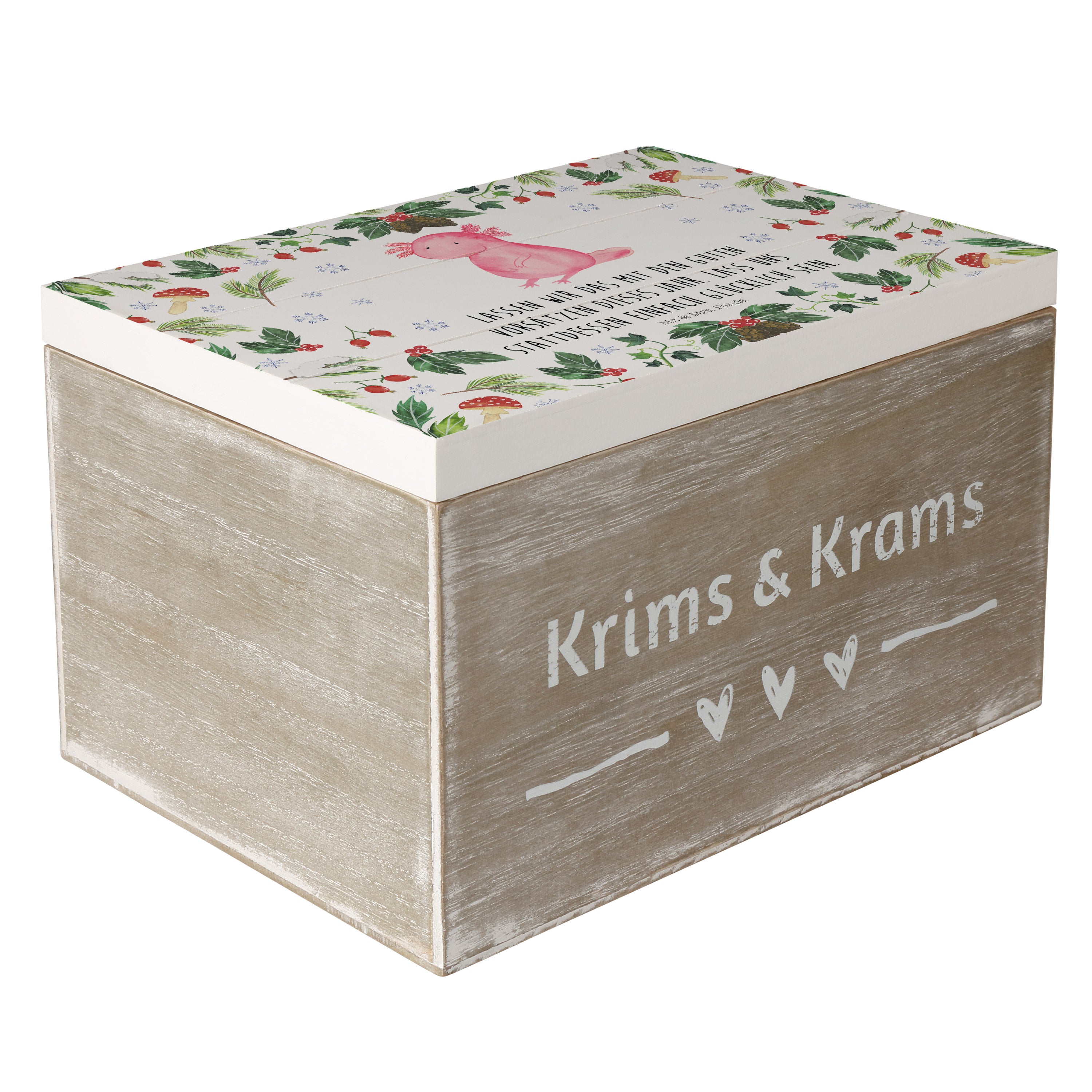 Holzkiste Axolotl Glücklich - 25 x 18 cm - mit Spruch - Weiß