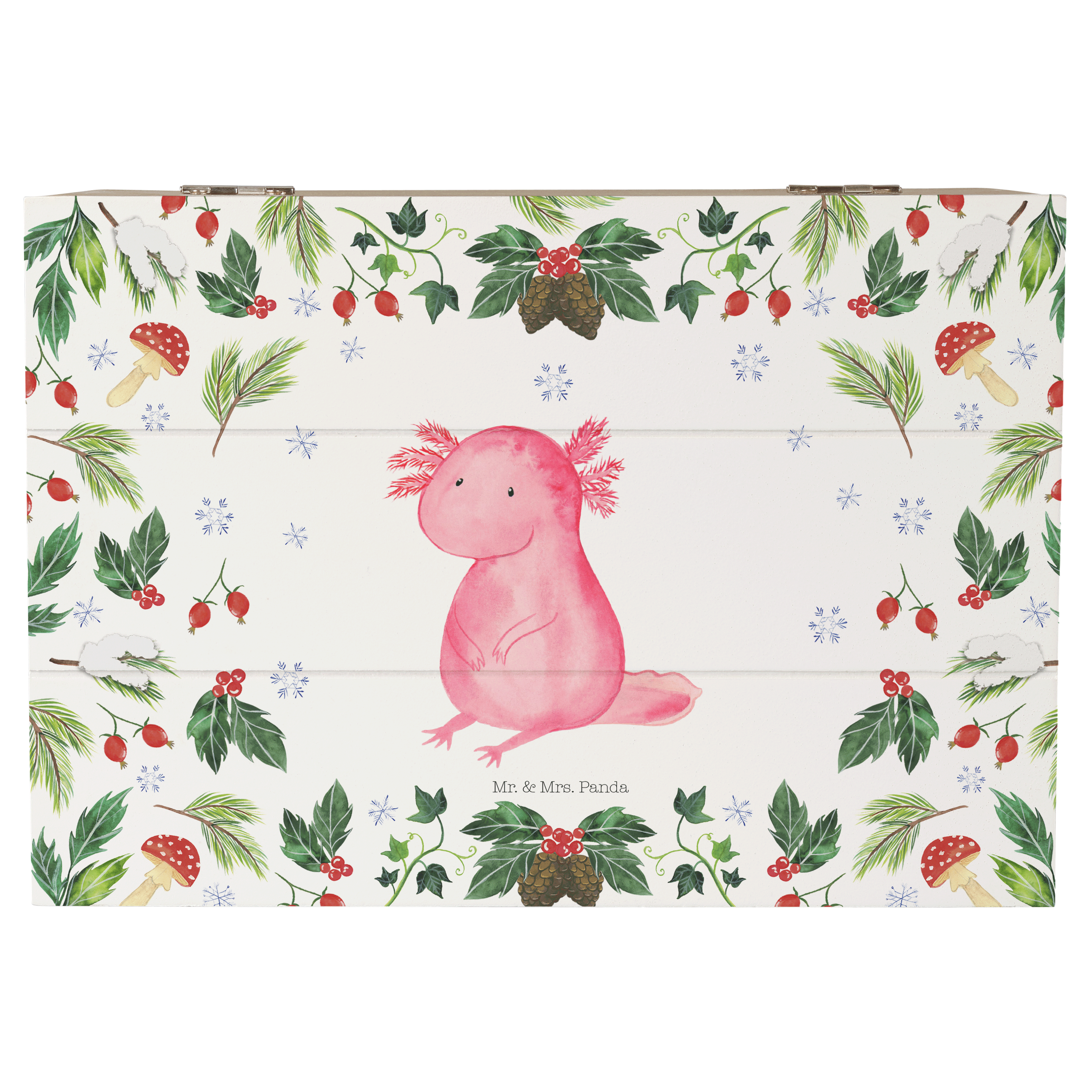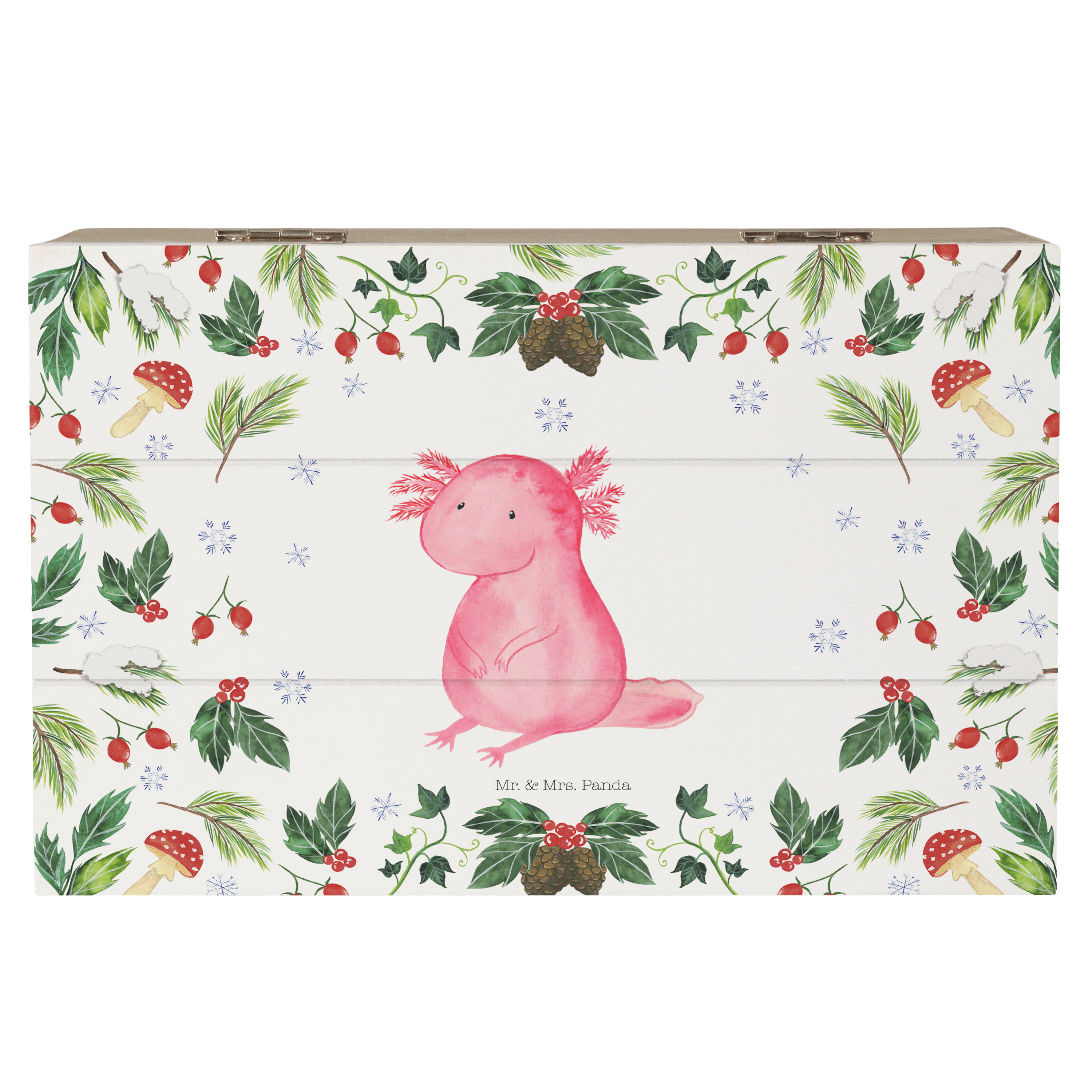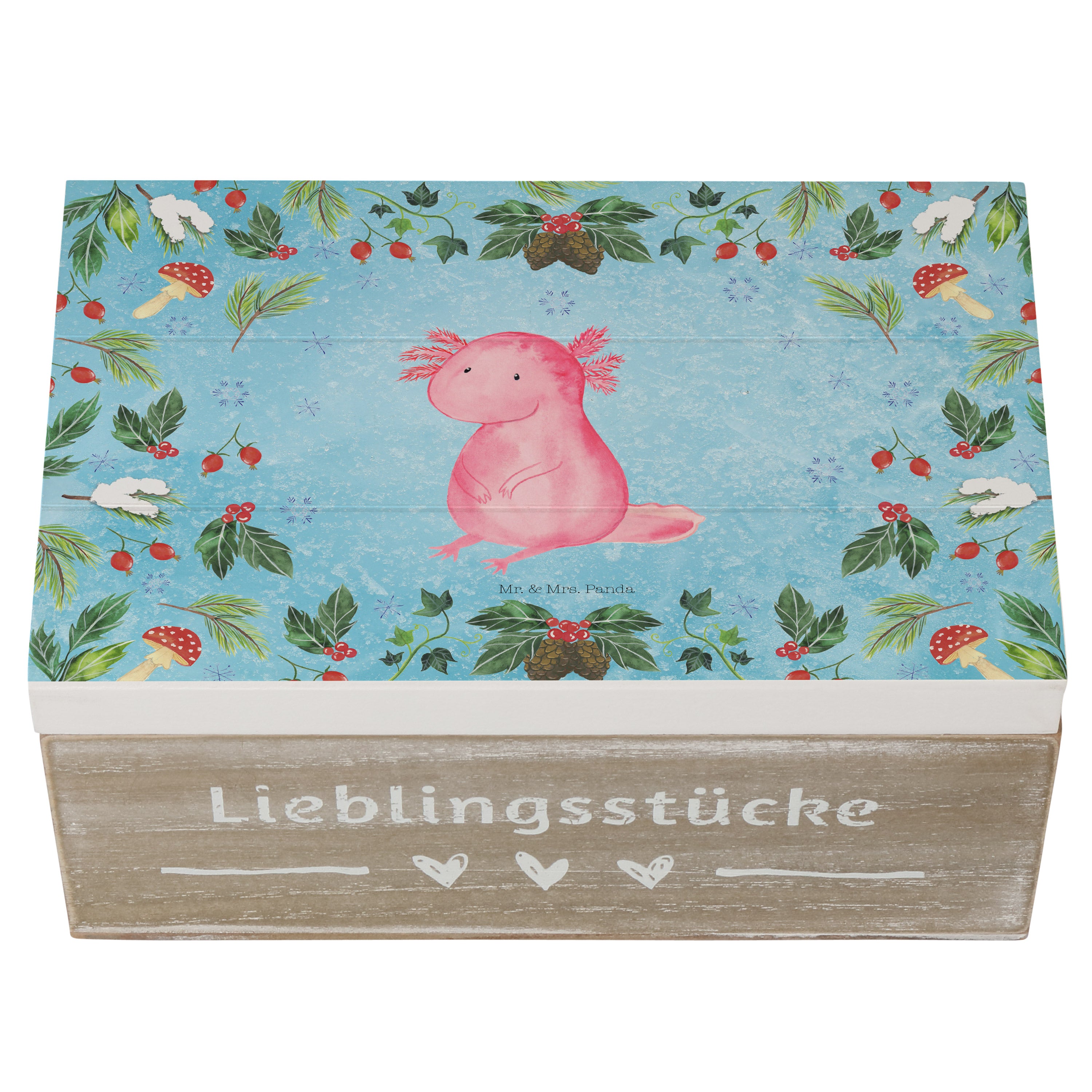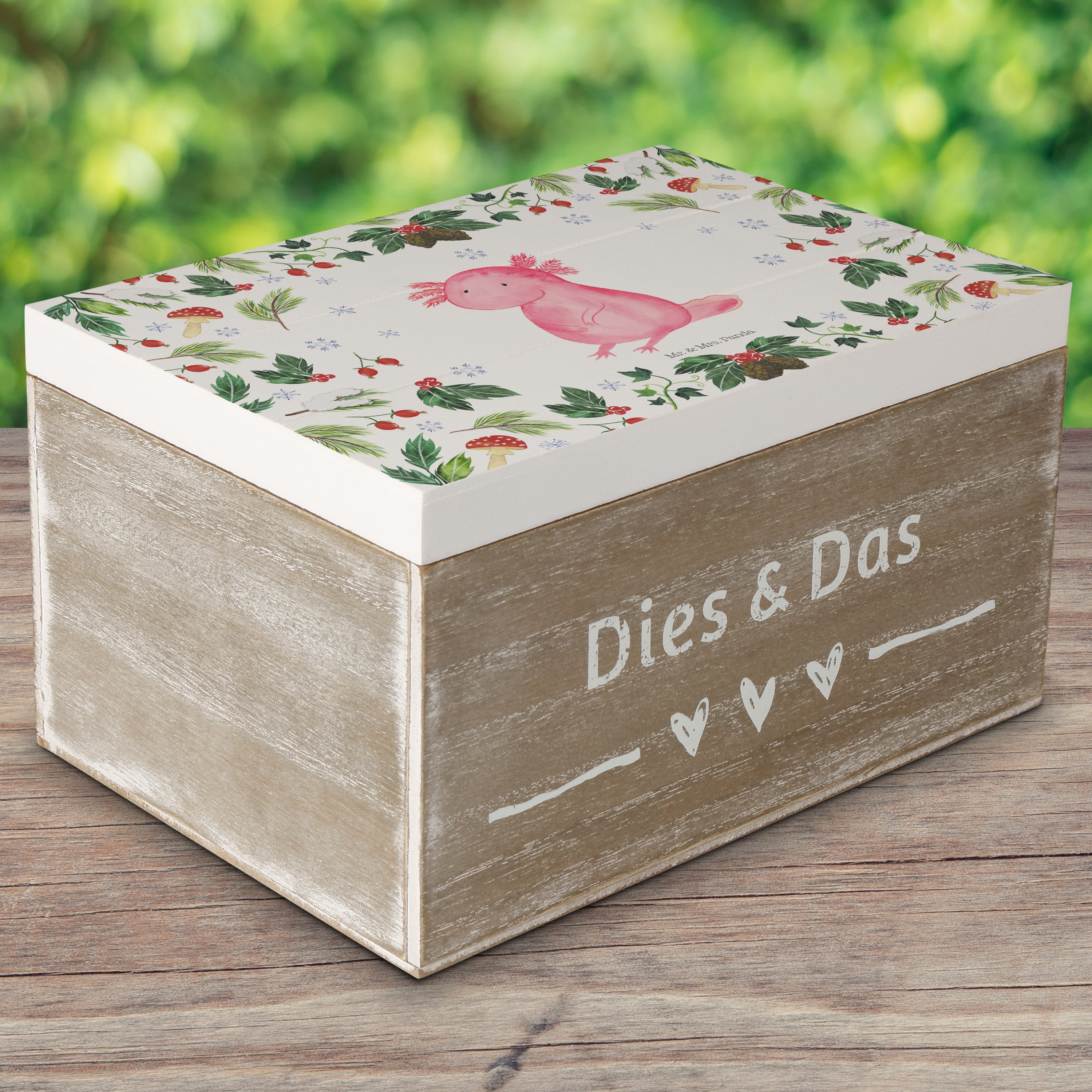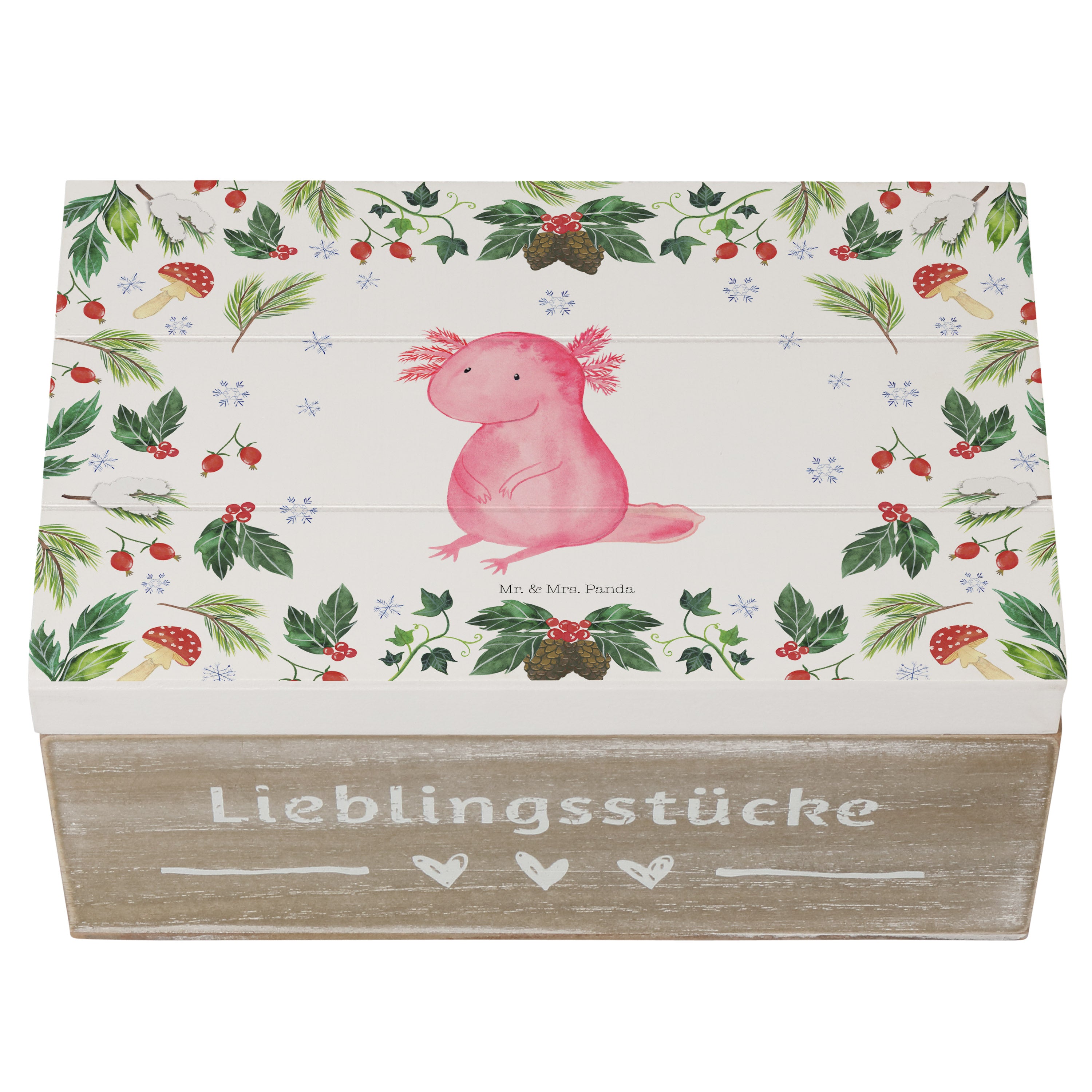Holzkiste Axolotl Glücklich - 25 x 18 cm - mit Spruch - Weiß