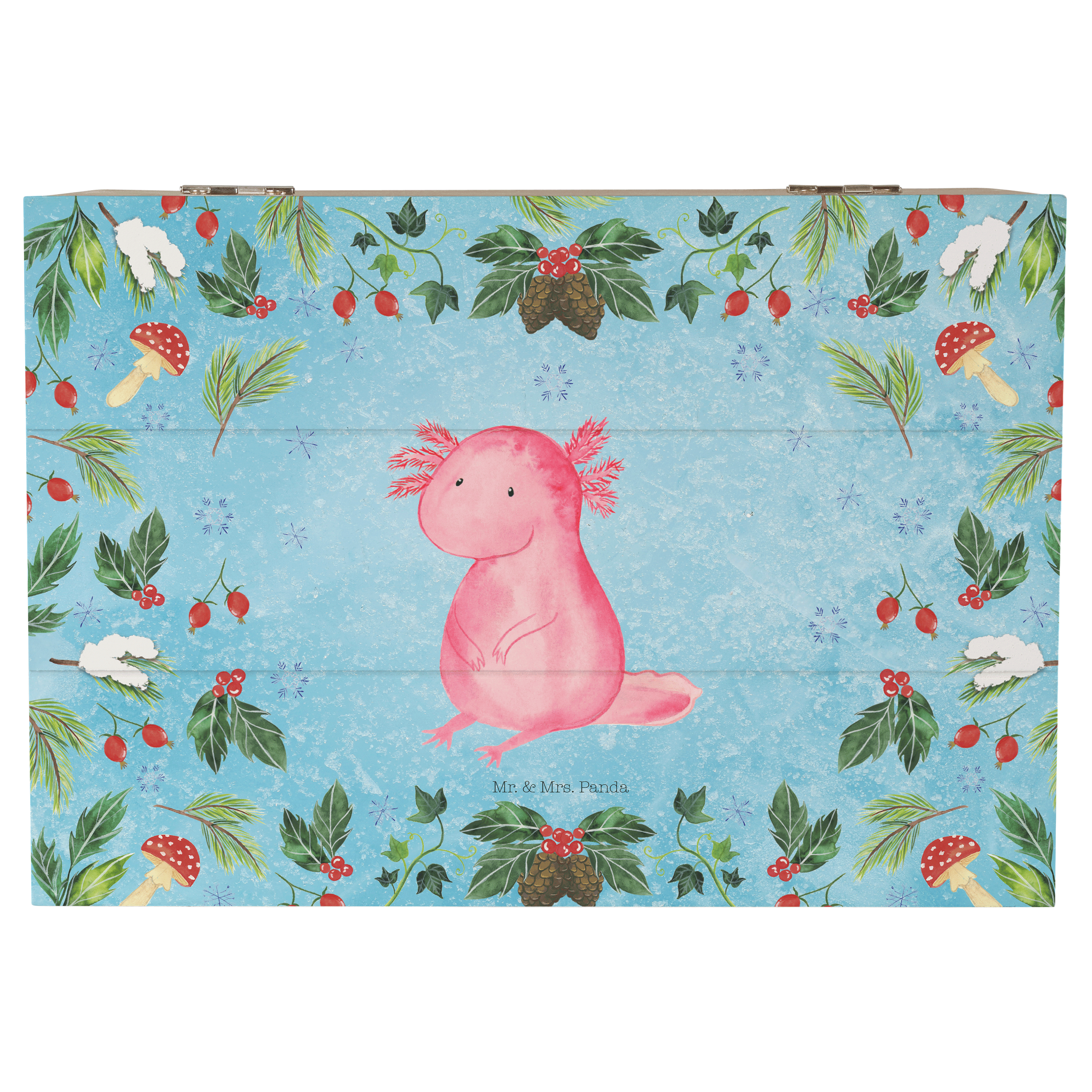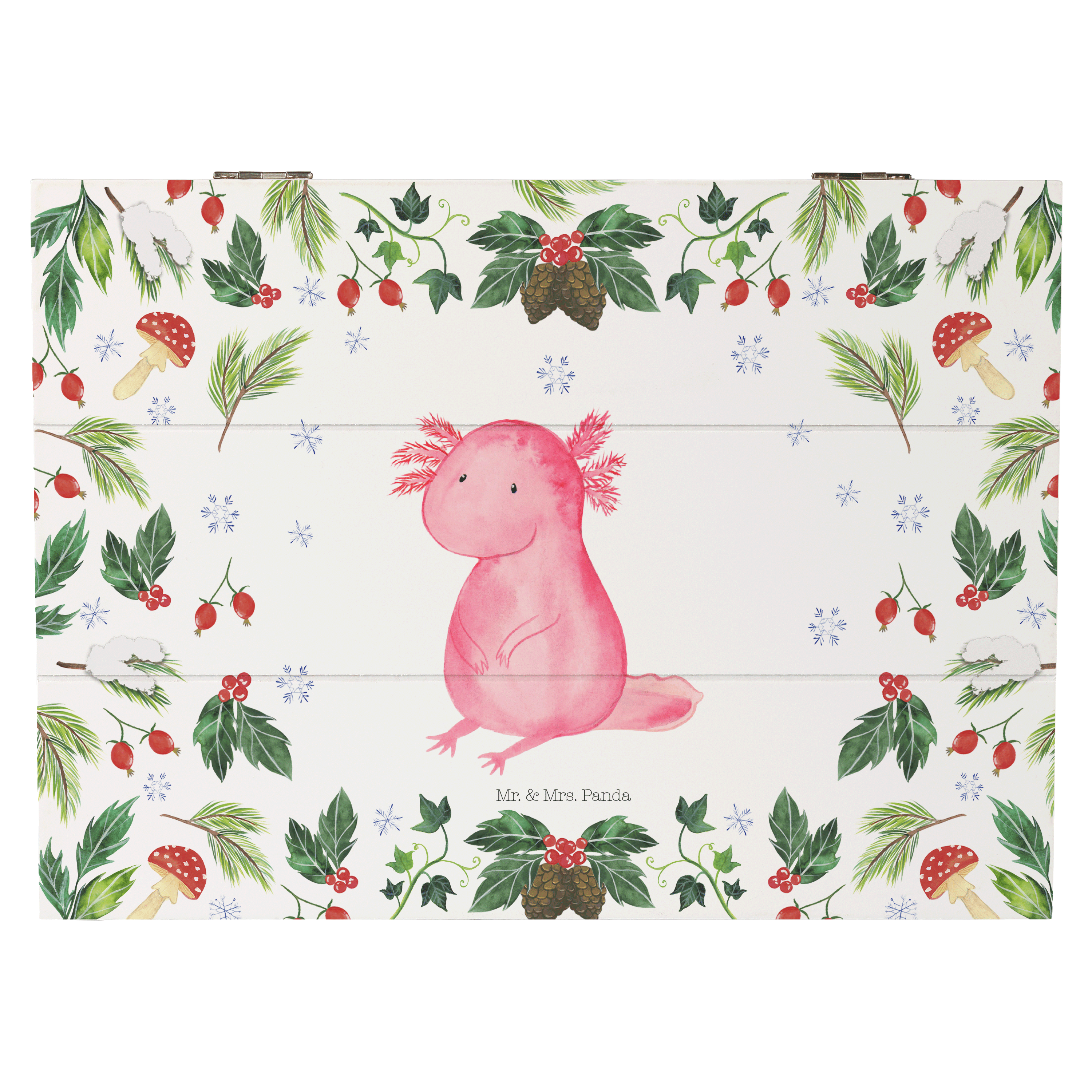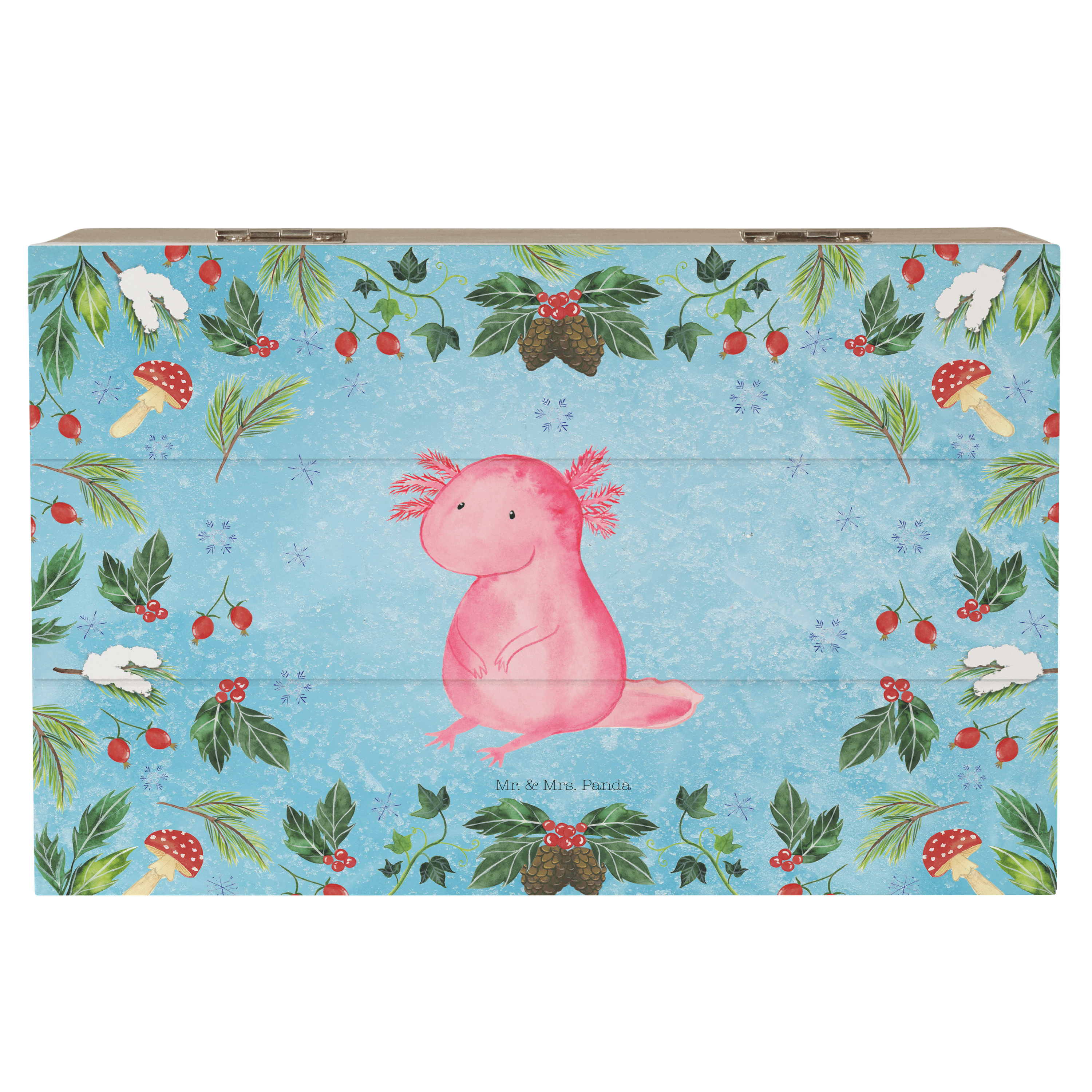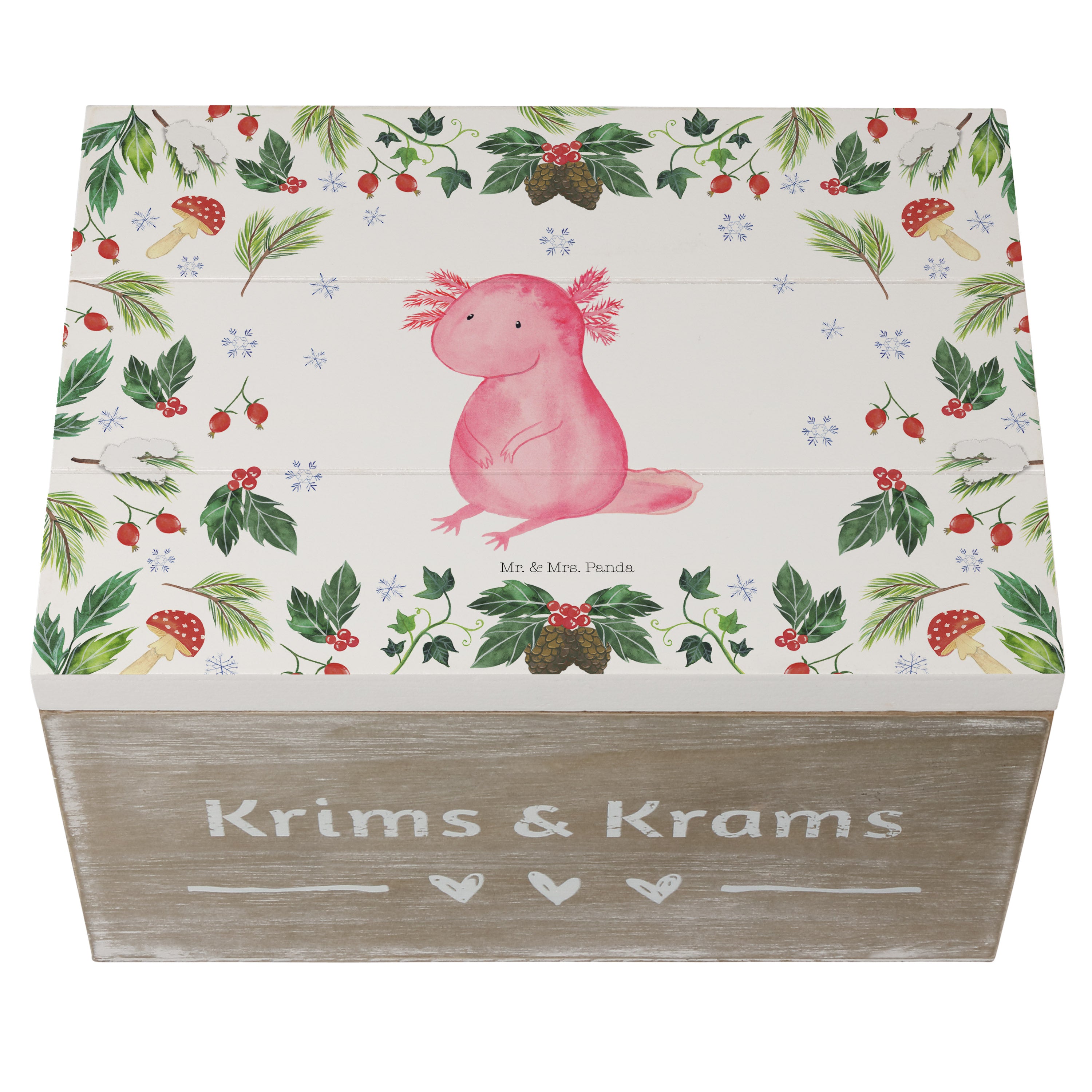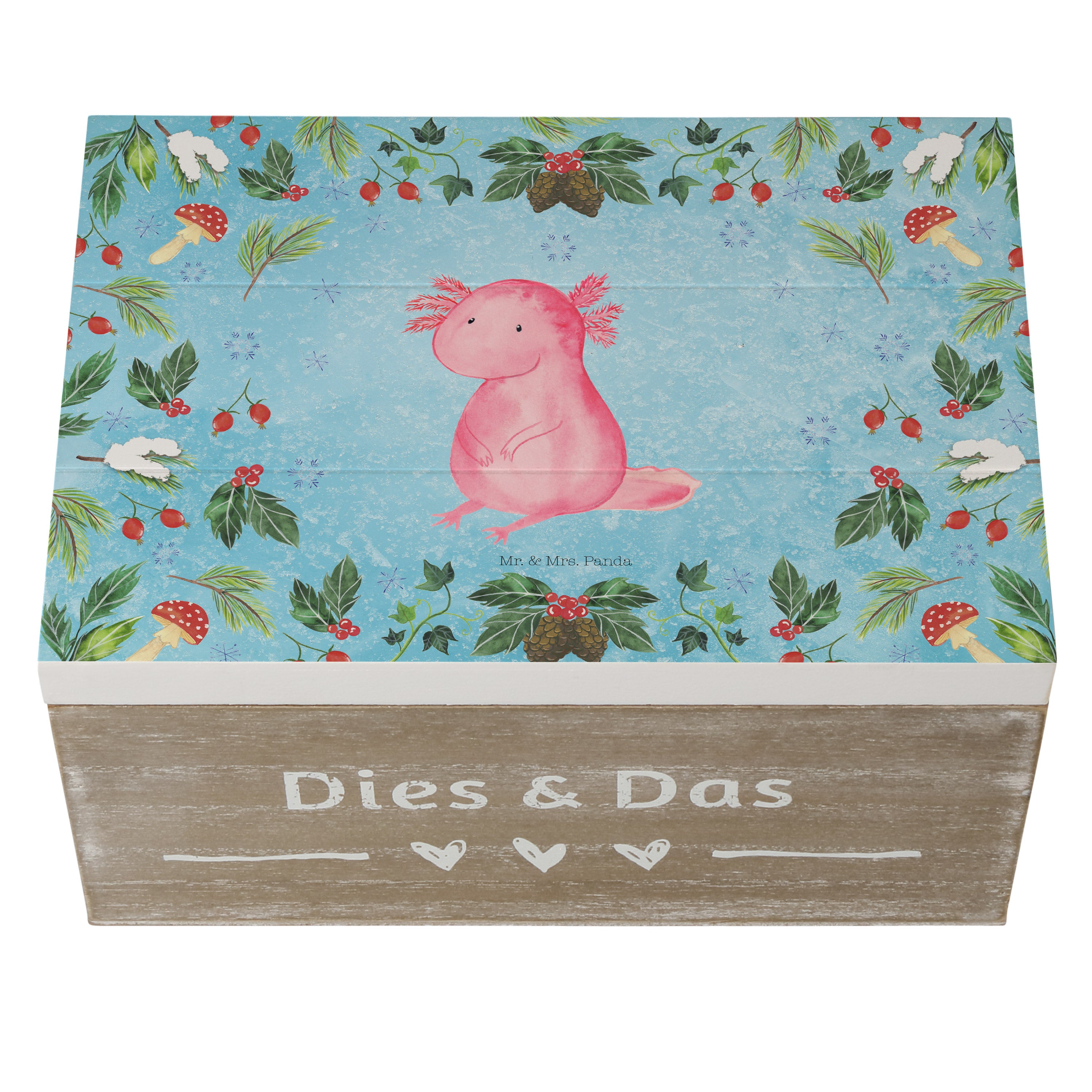 Holzkiste Axolotl Glücklich - 25 x 18 cm - mit Spruch - Weiß