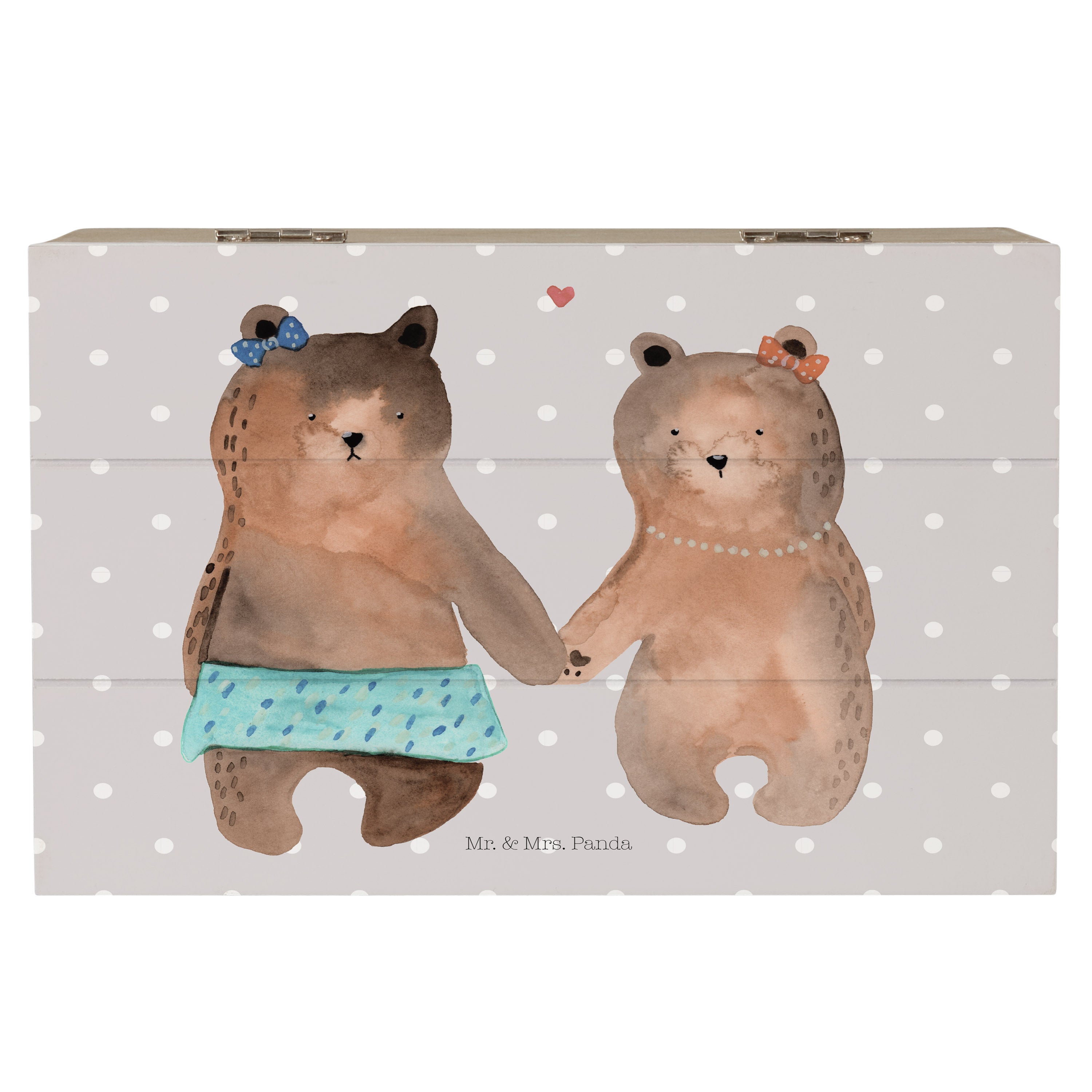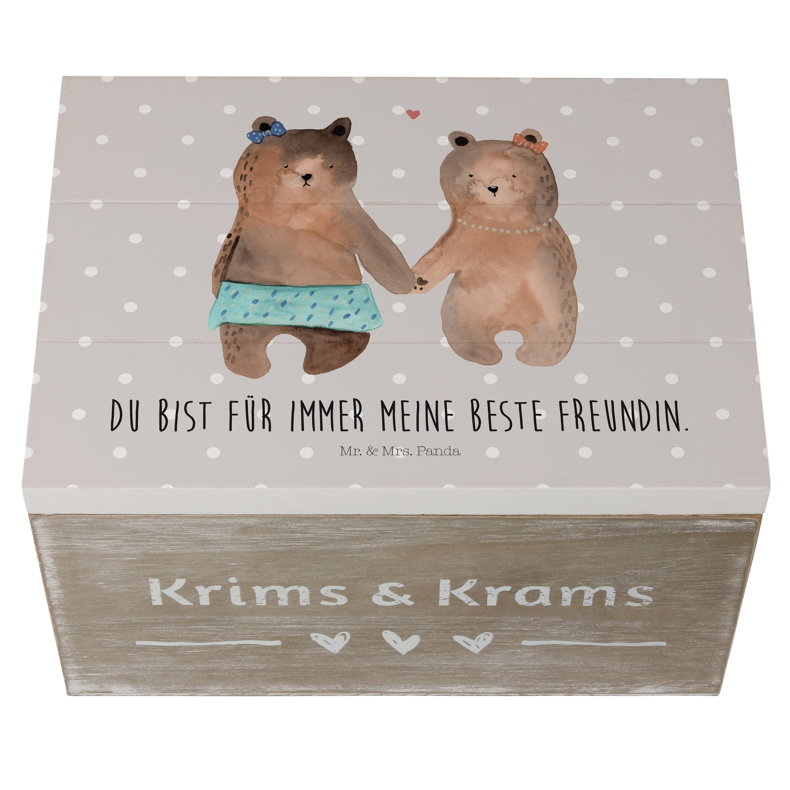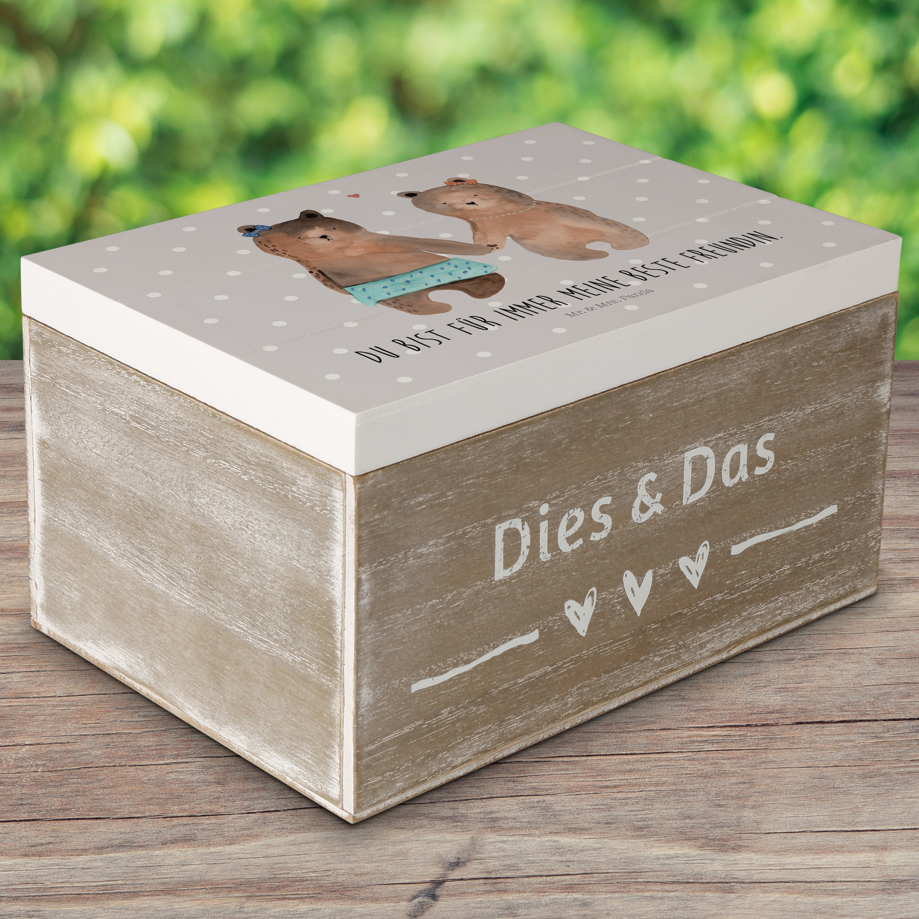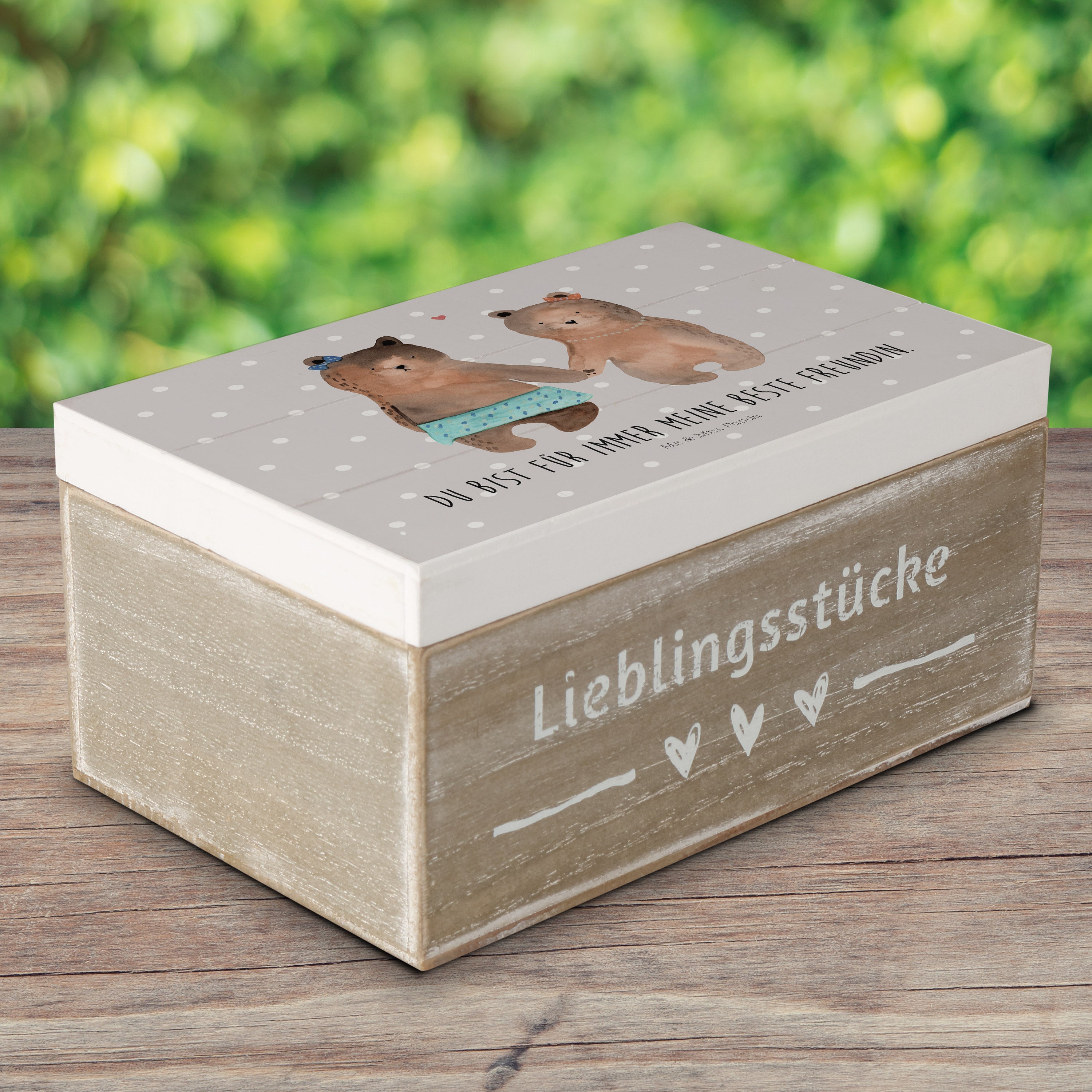 Holzkiste Bär Freundin - 25 x 18 cm - mit Spruch - Grau Pastell