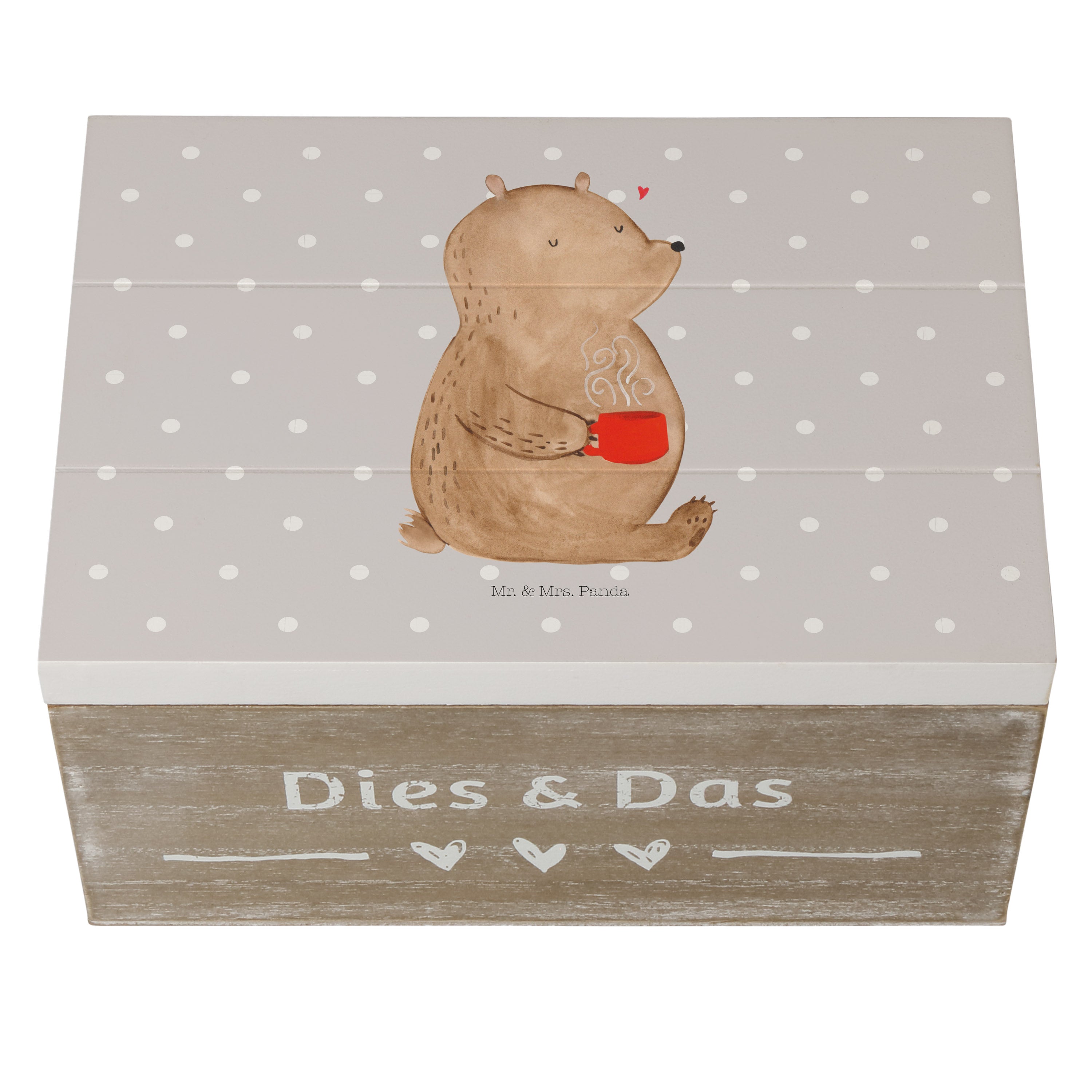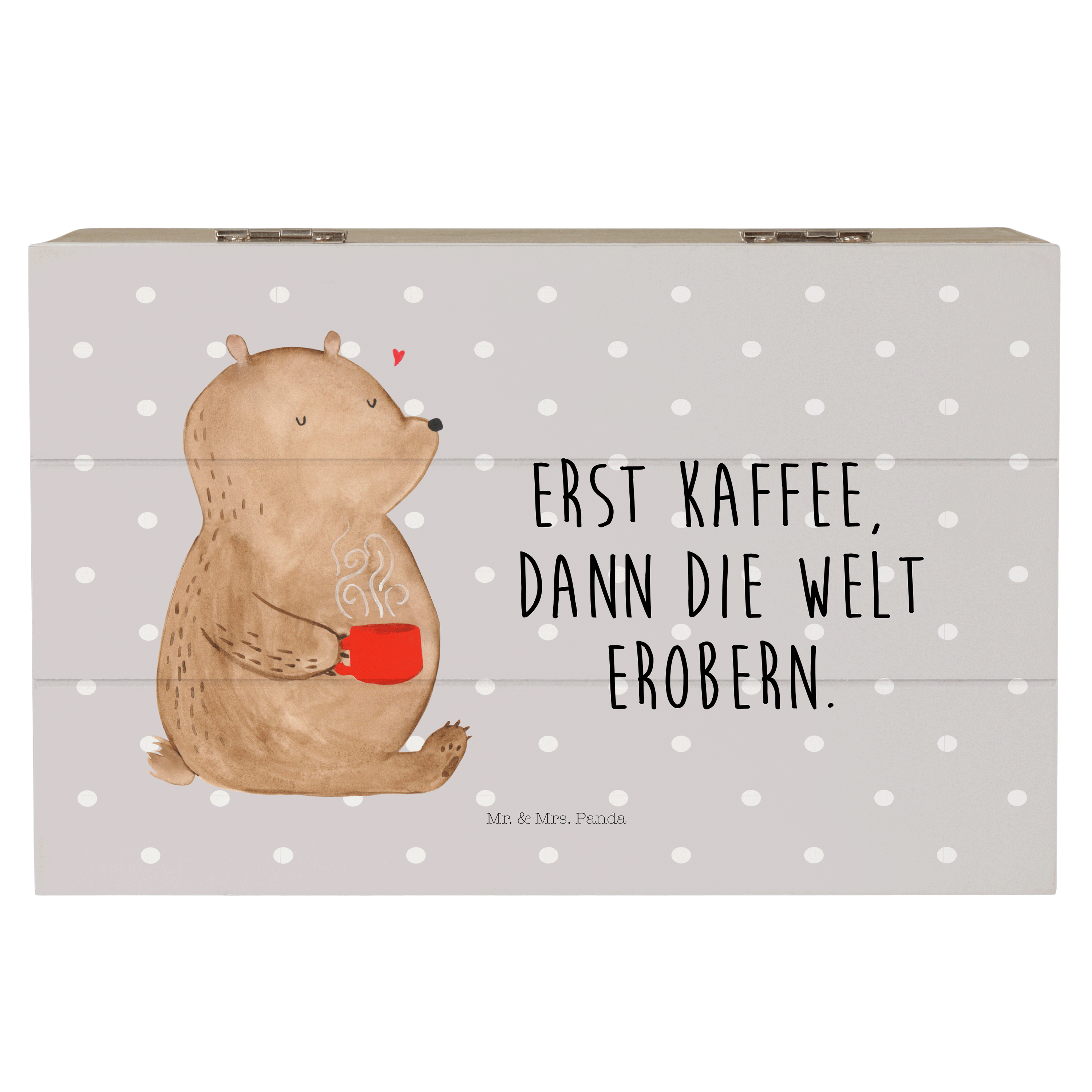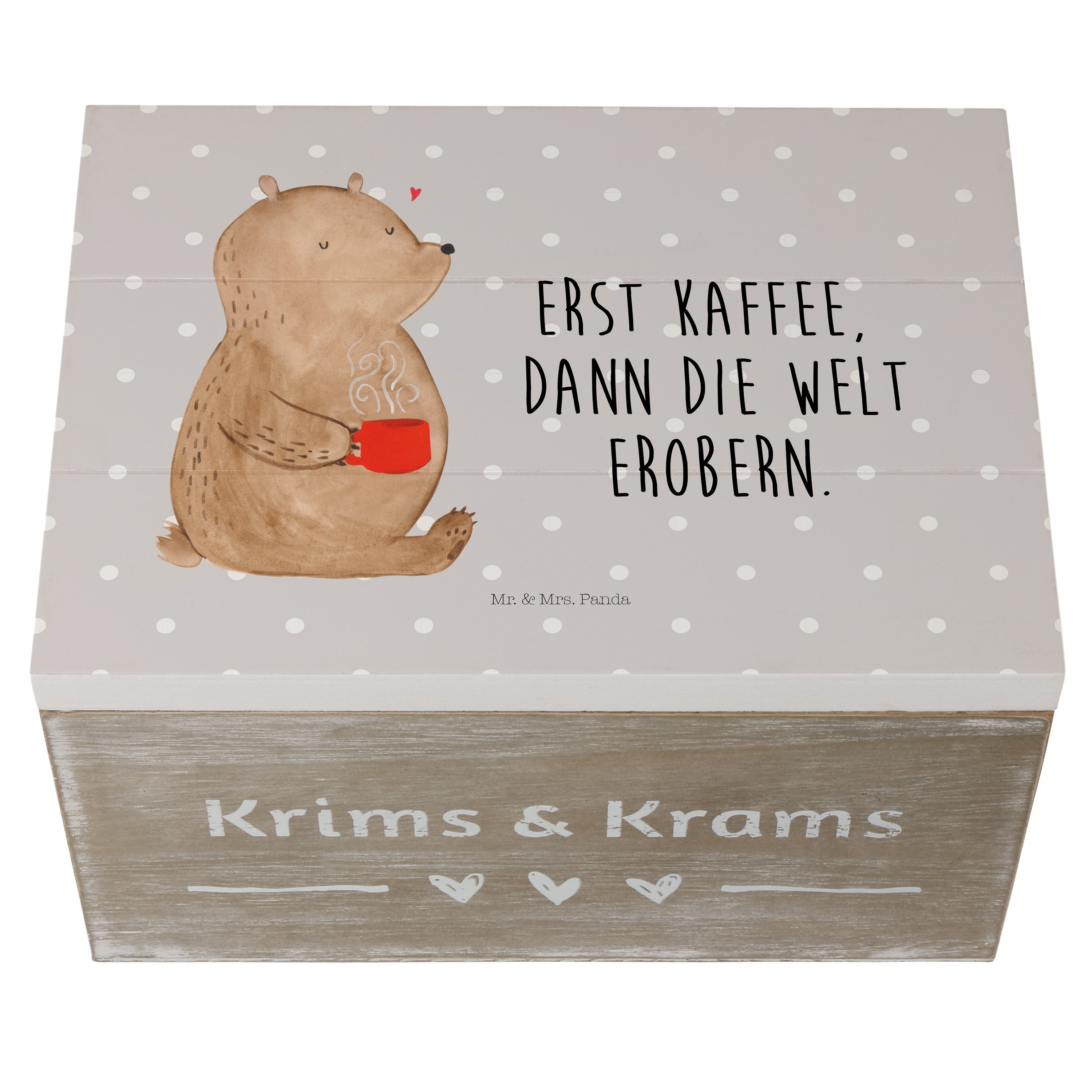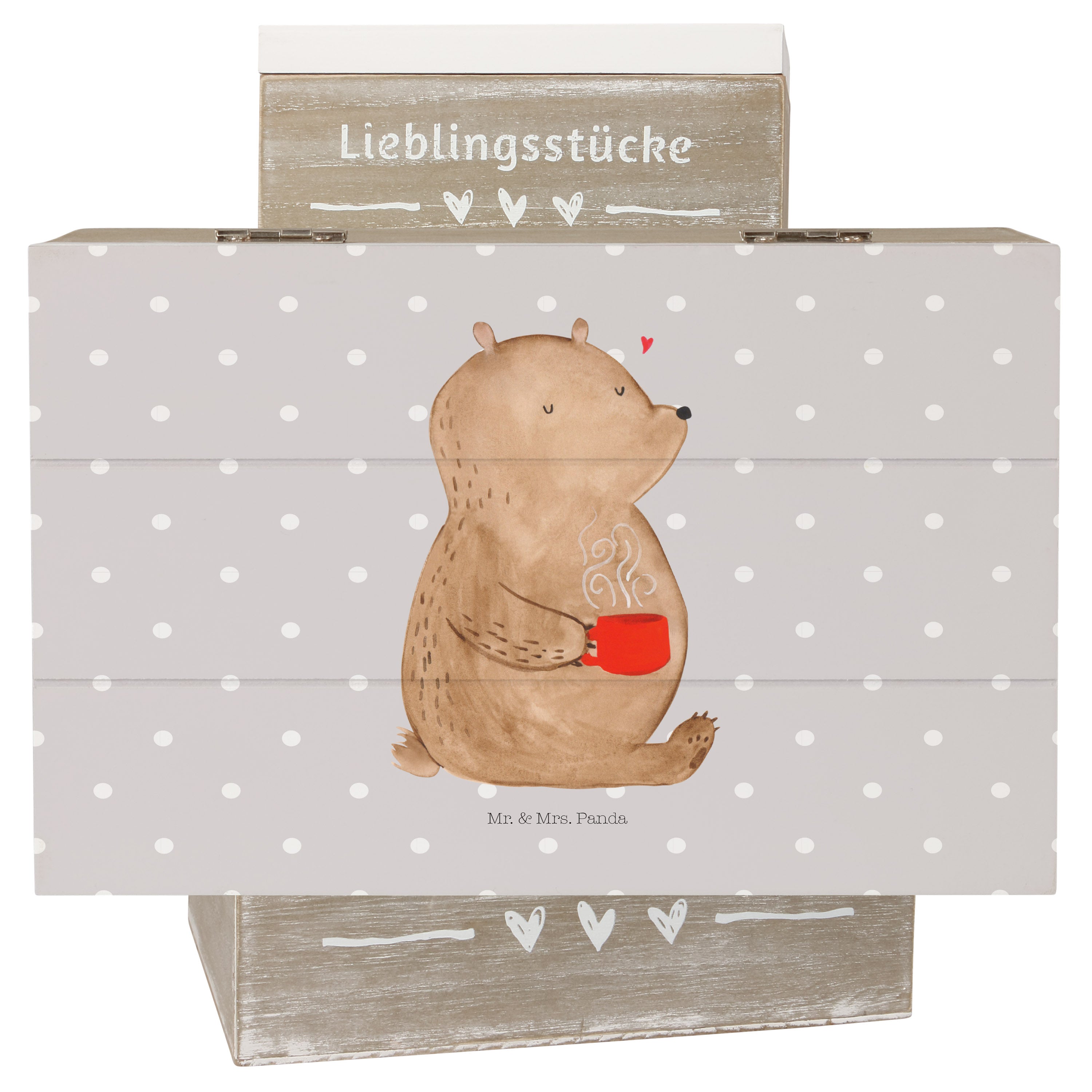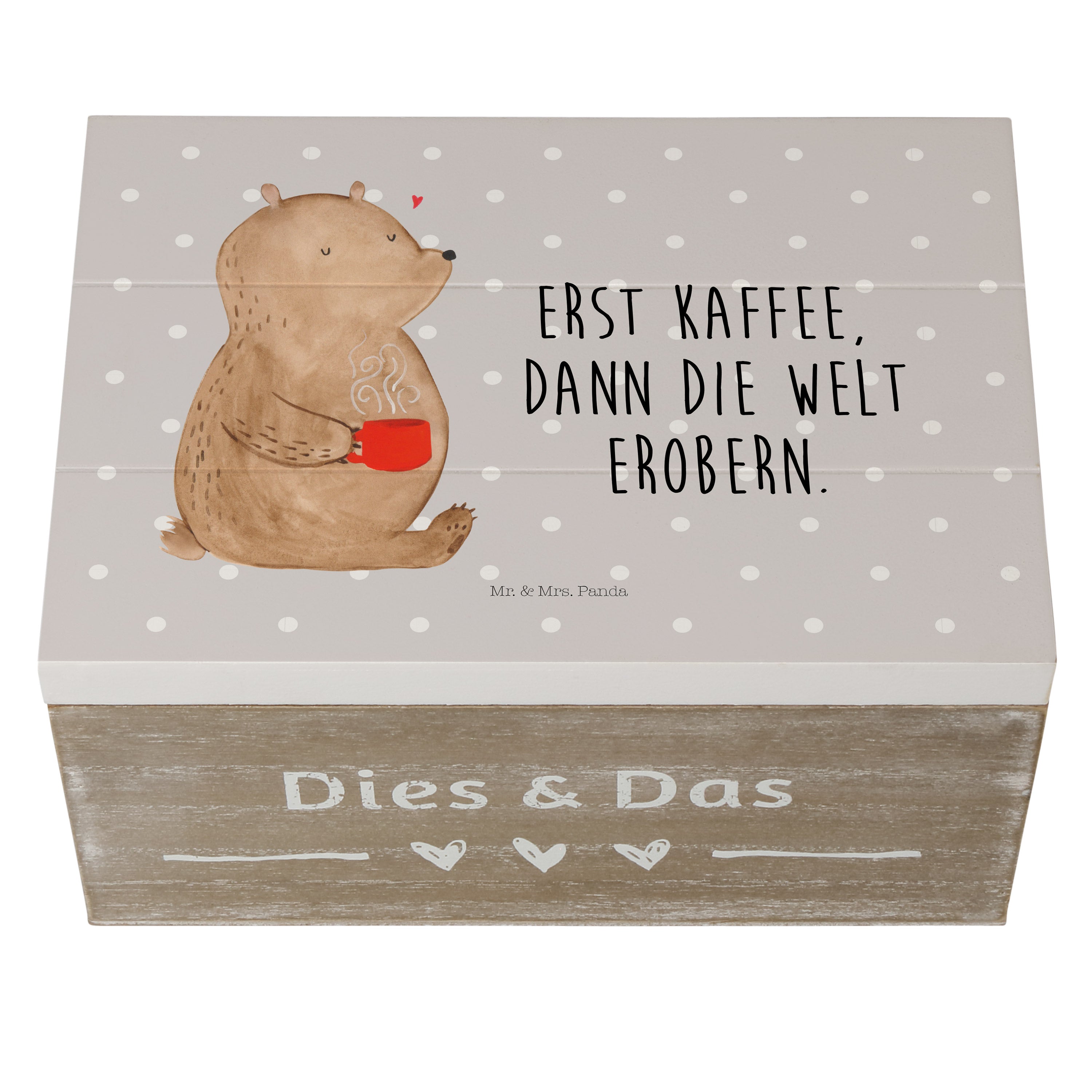 Holzkiste Bär Kaffee - 25 x 18 cm - mit Spruch - Grau Pastell