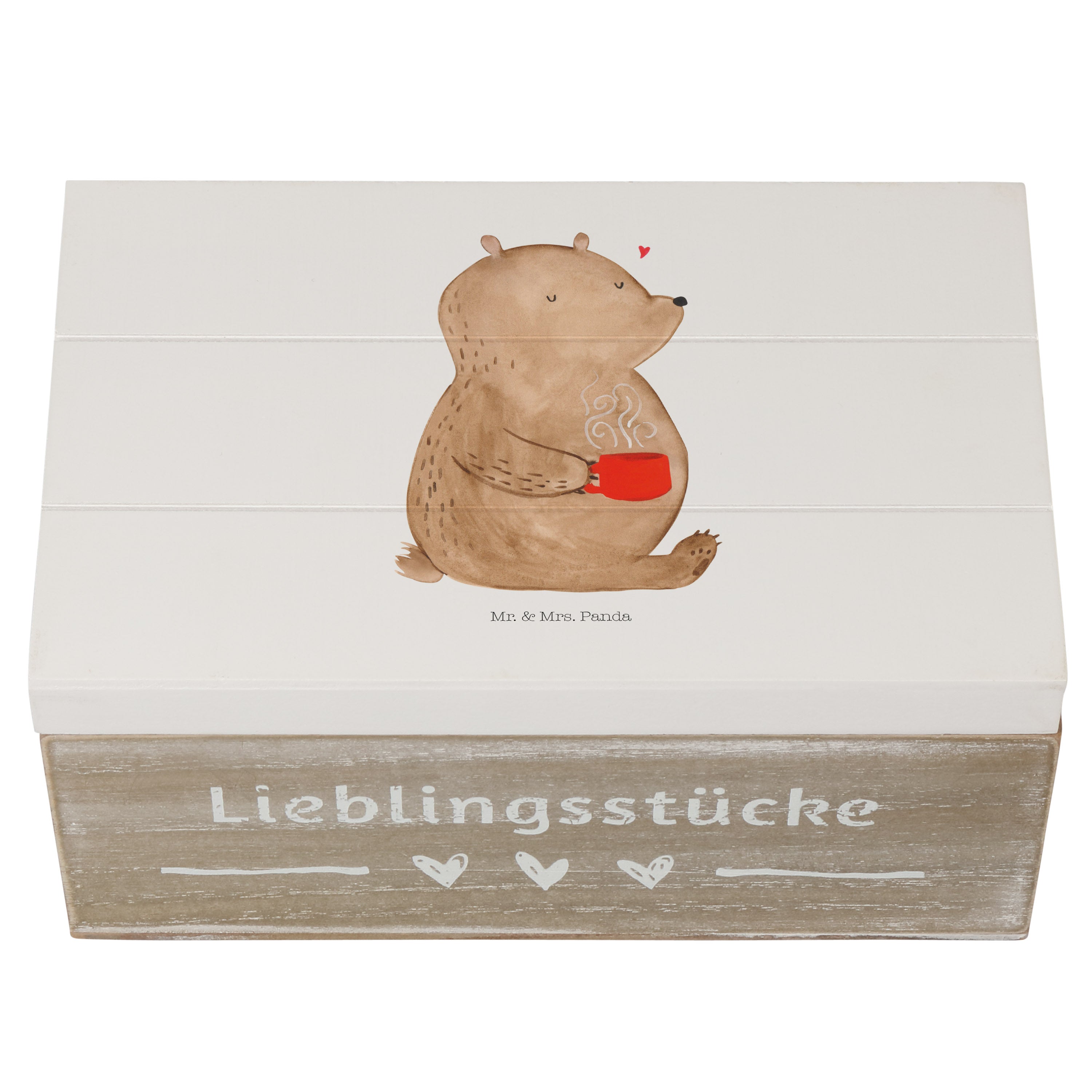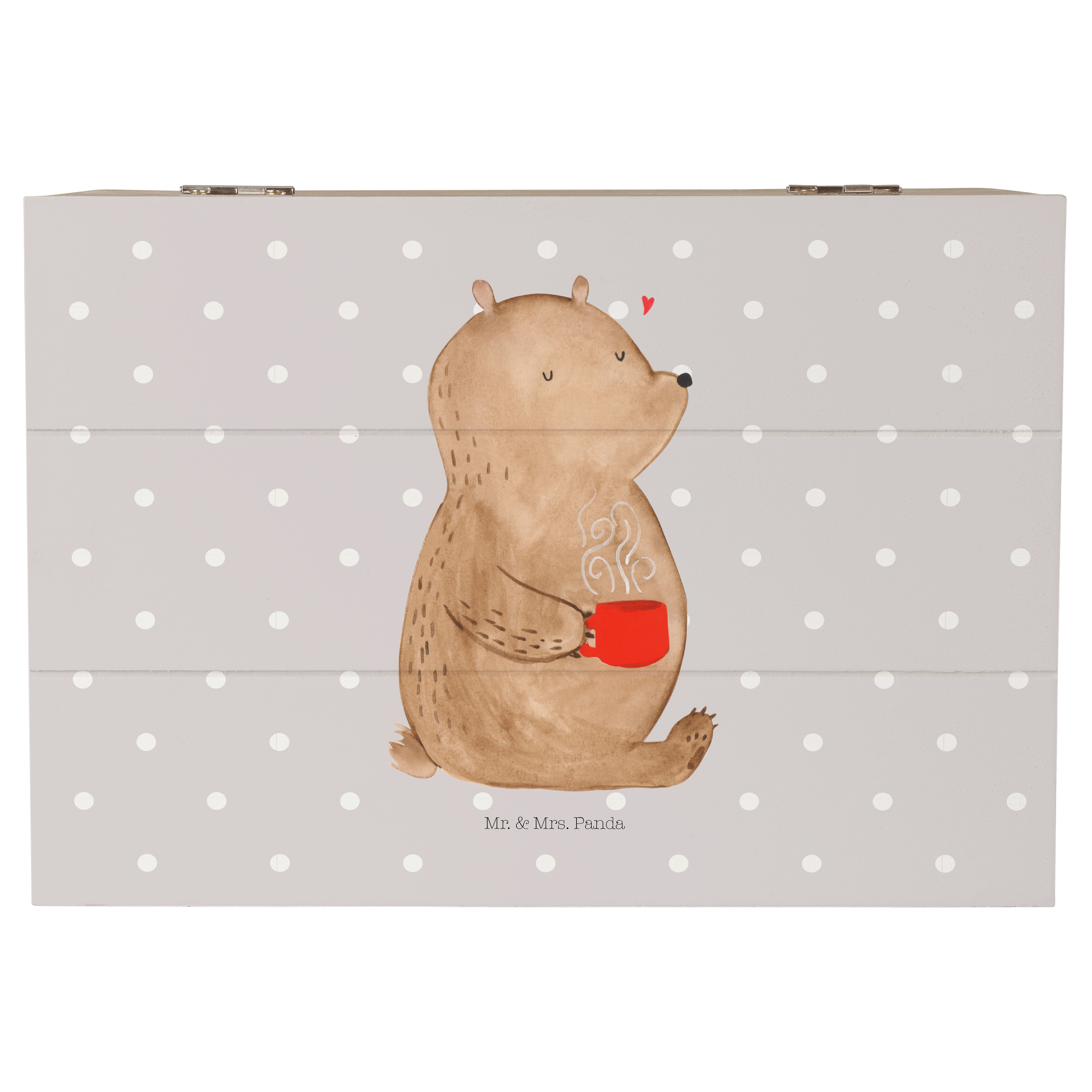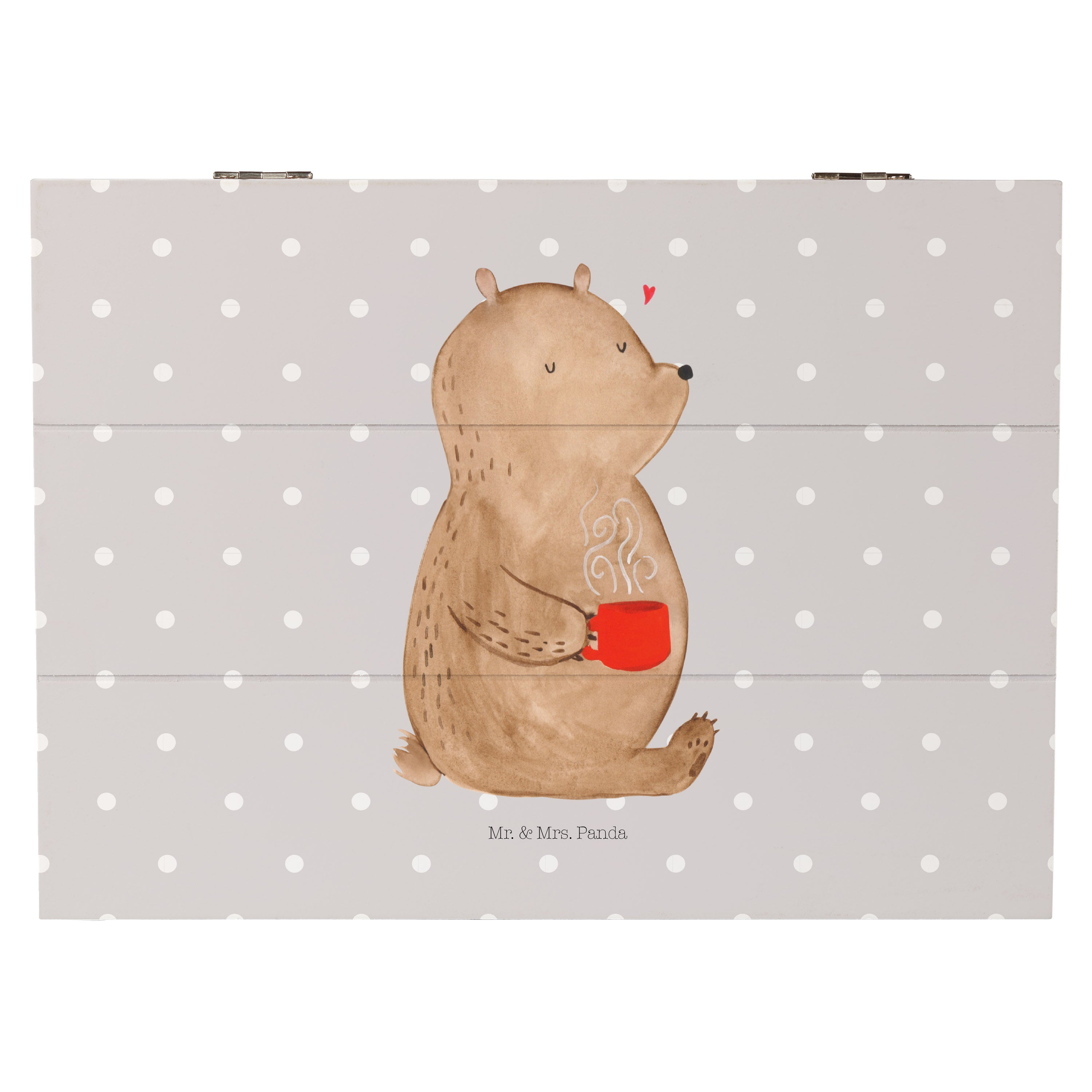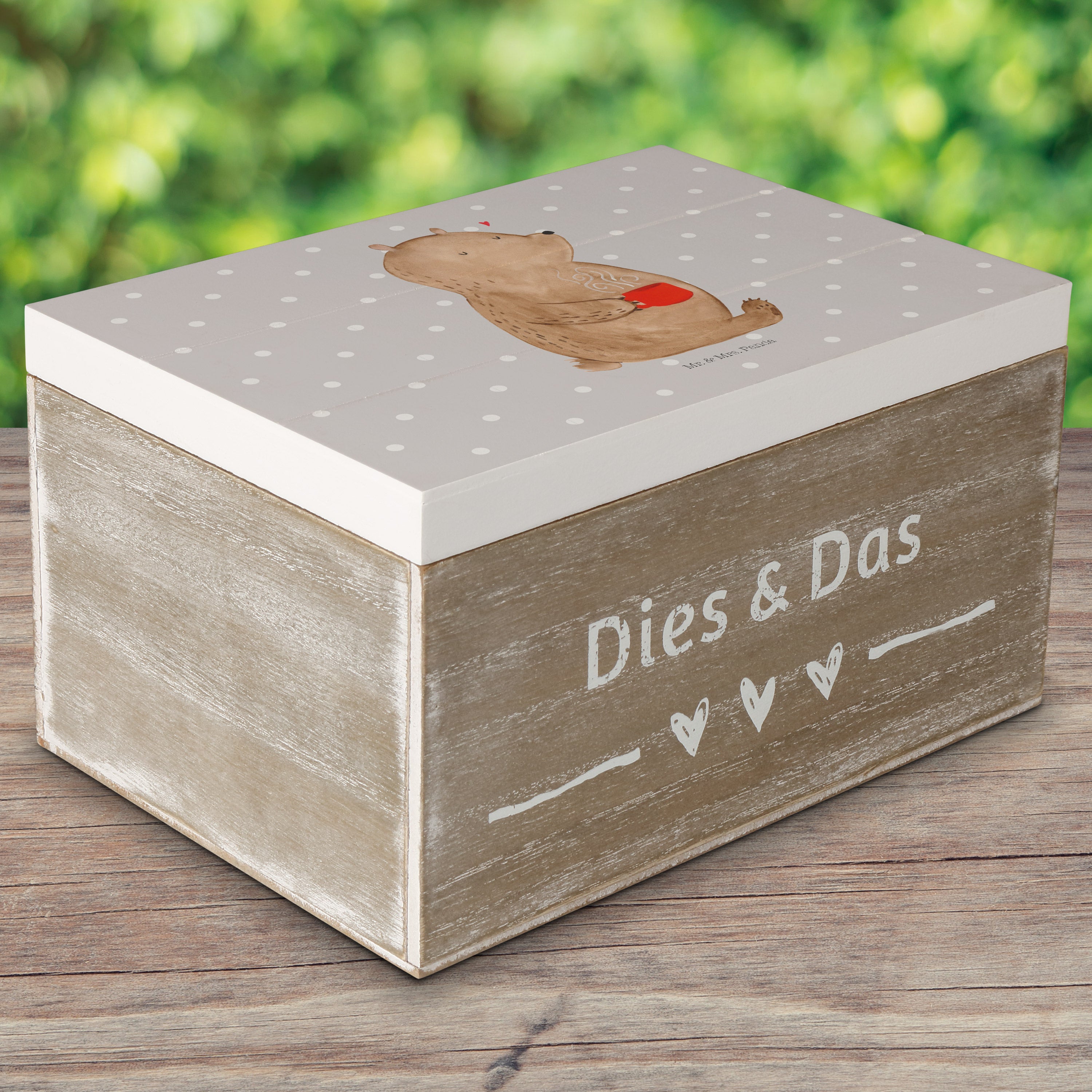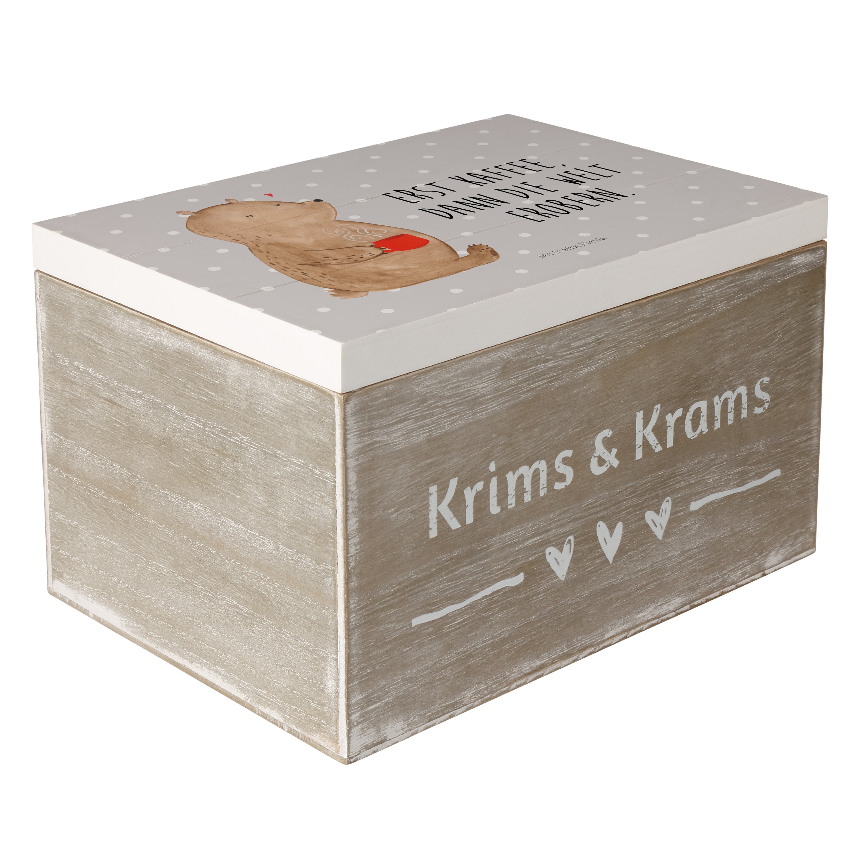 Holzkiste Bär Kaffee - 25 x 18 cm - mit Spruch - Grau Pastell