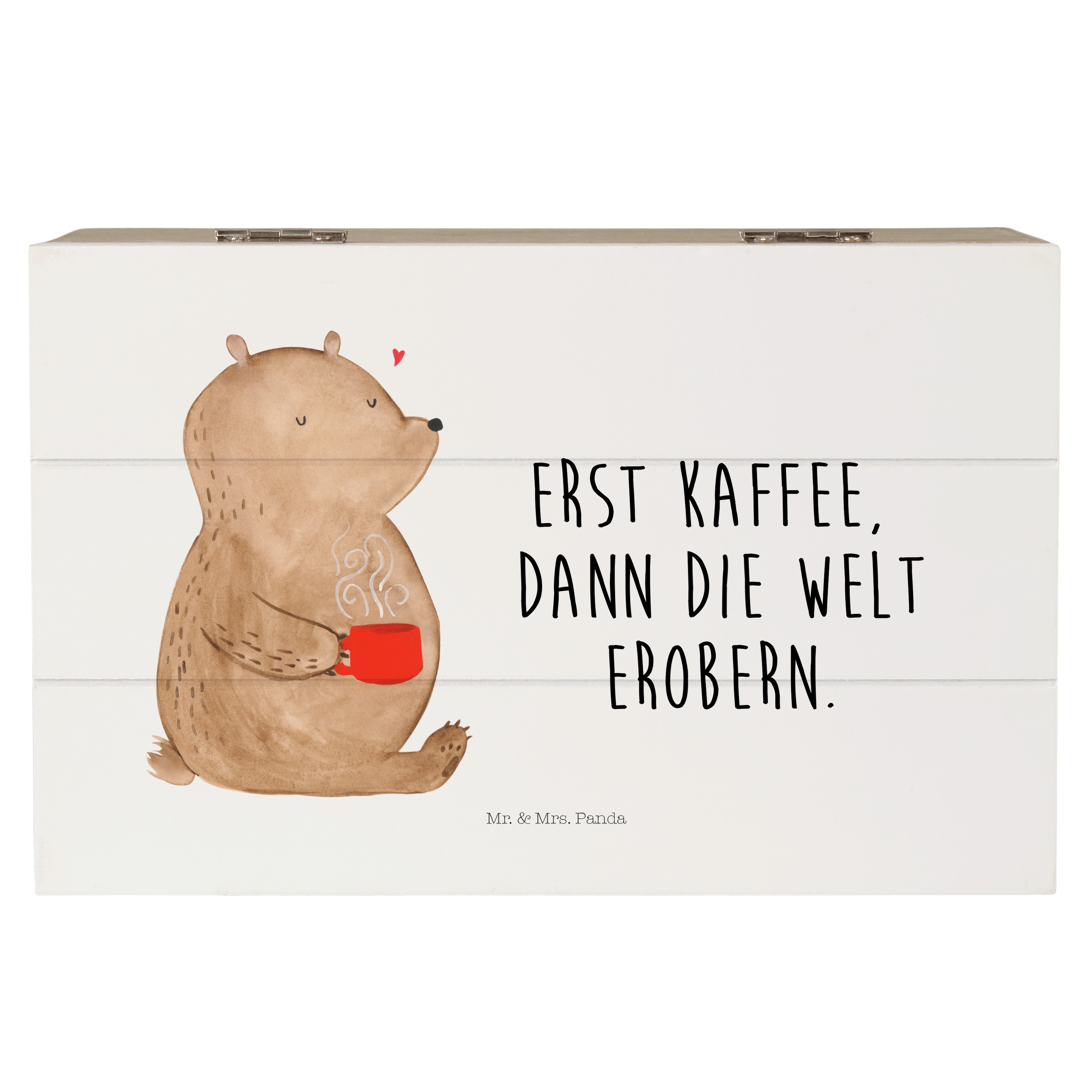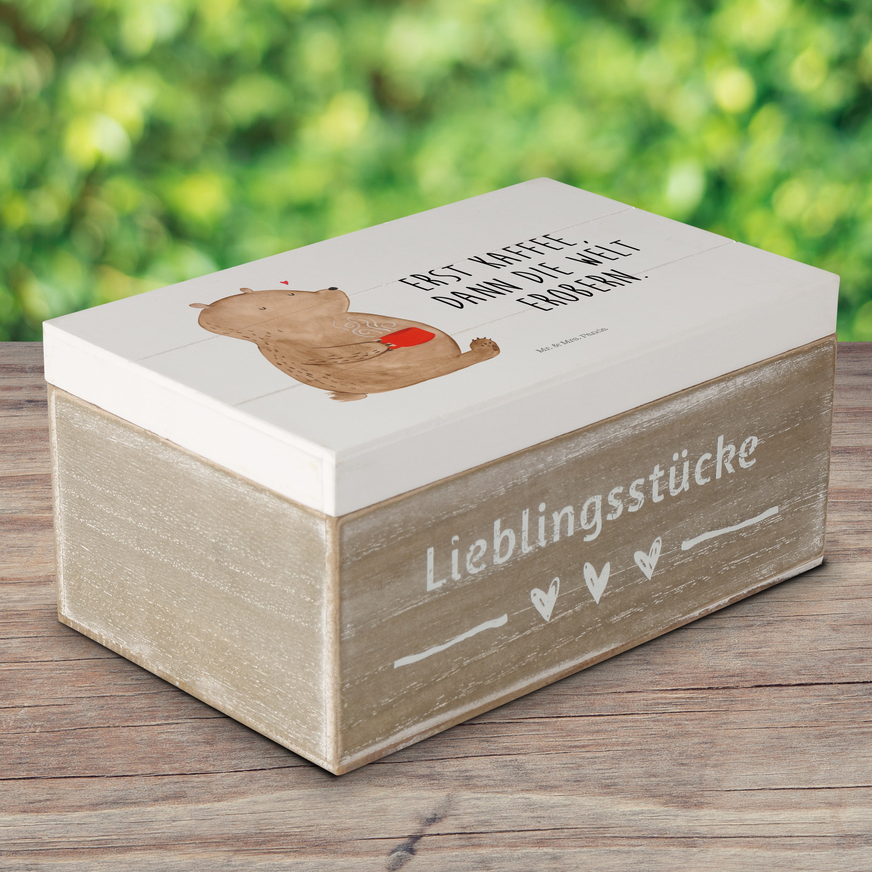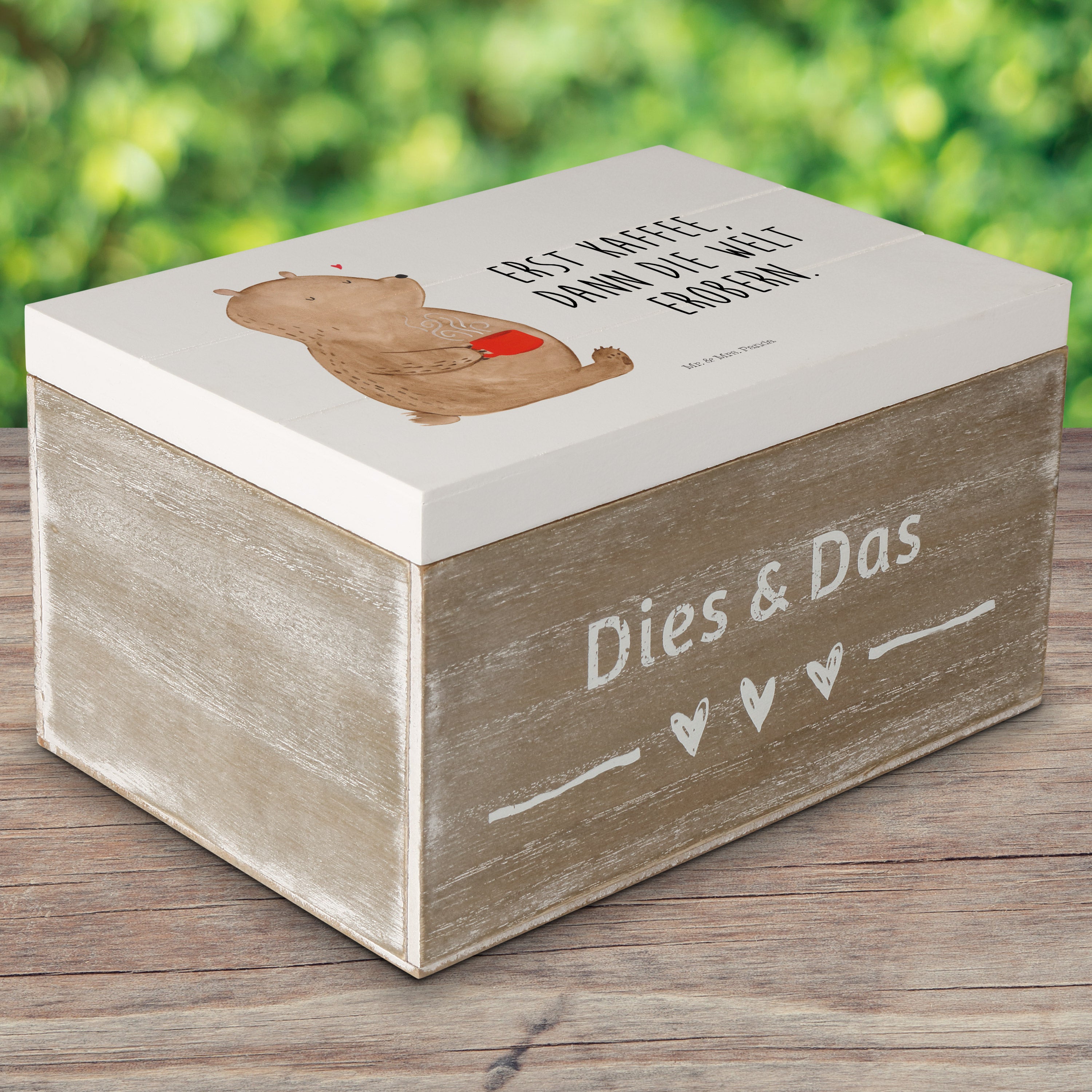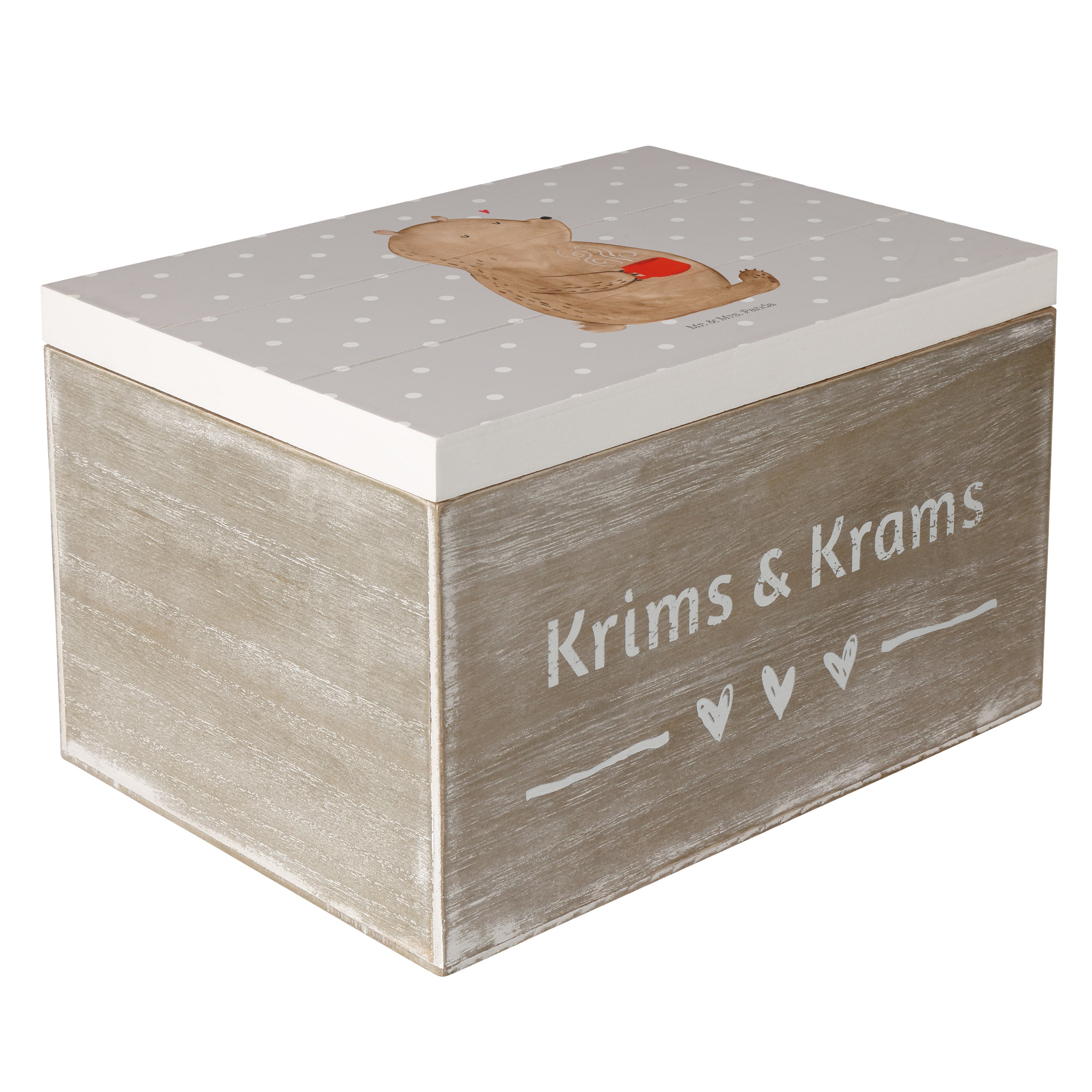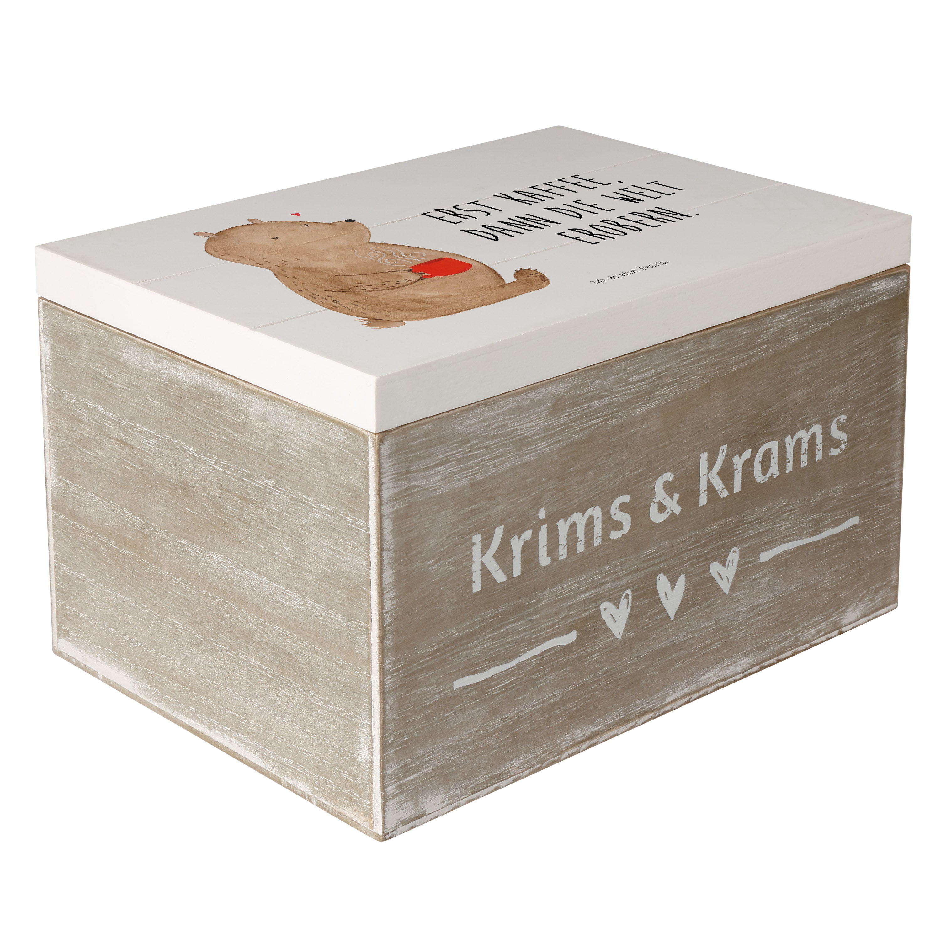 Holzkiste Bär Kaffee - 25 x 18 cm - mit Spruch - Grau Pastell