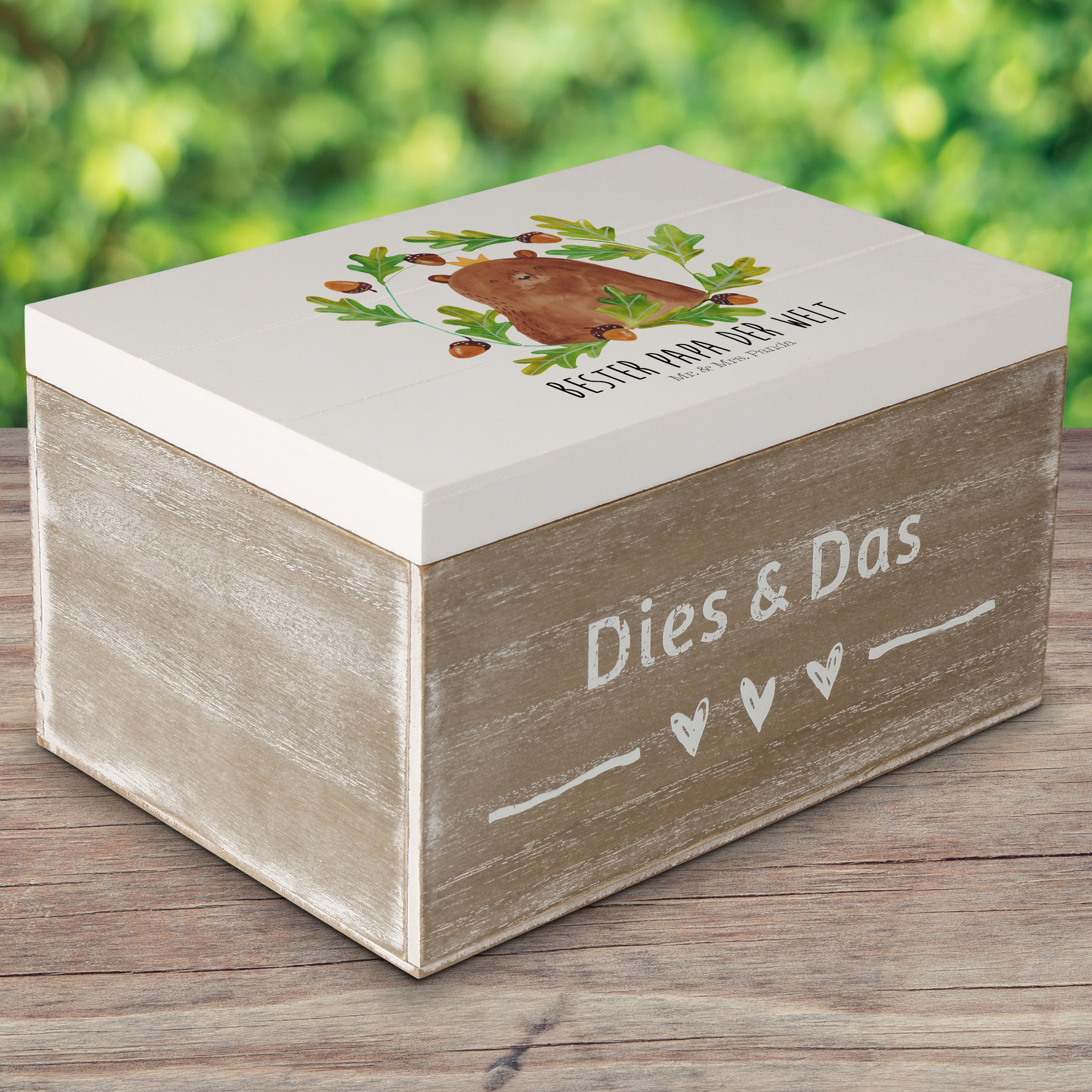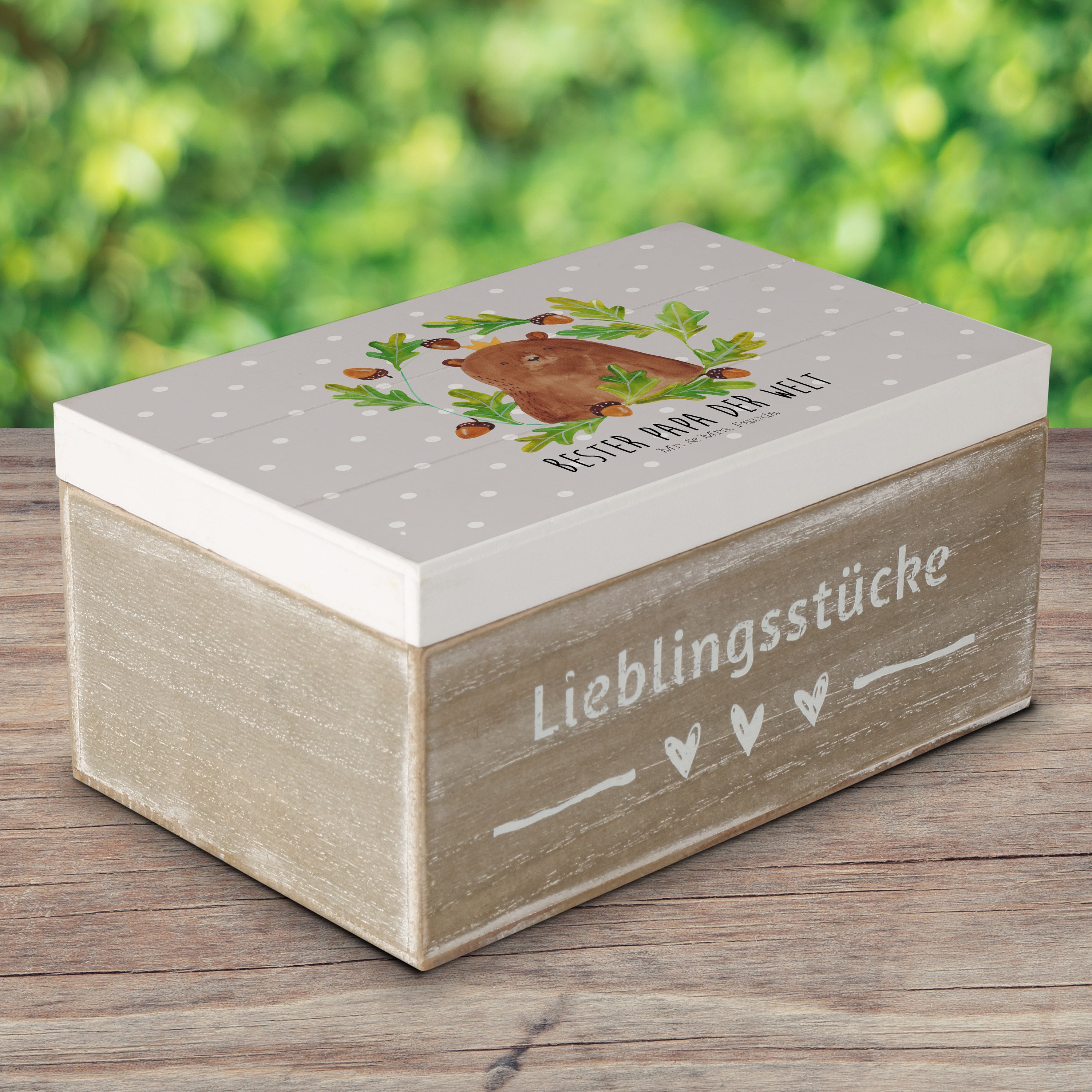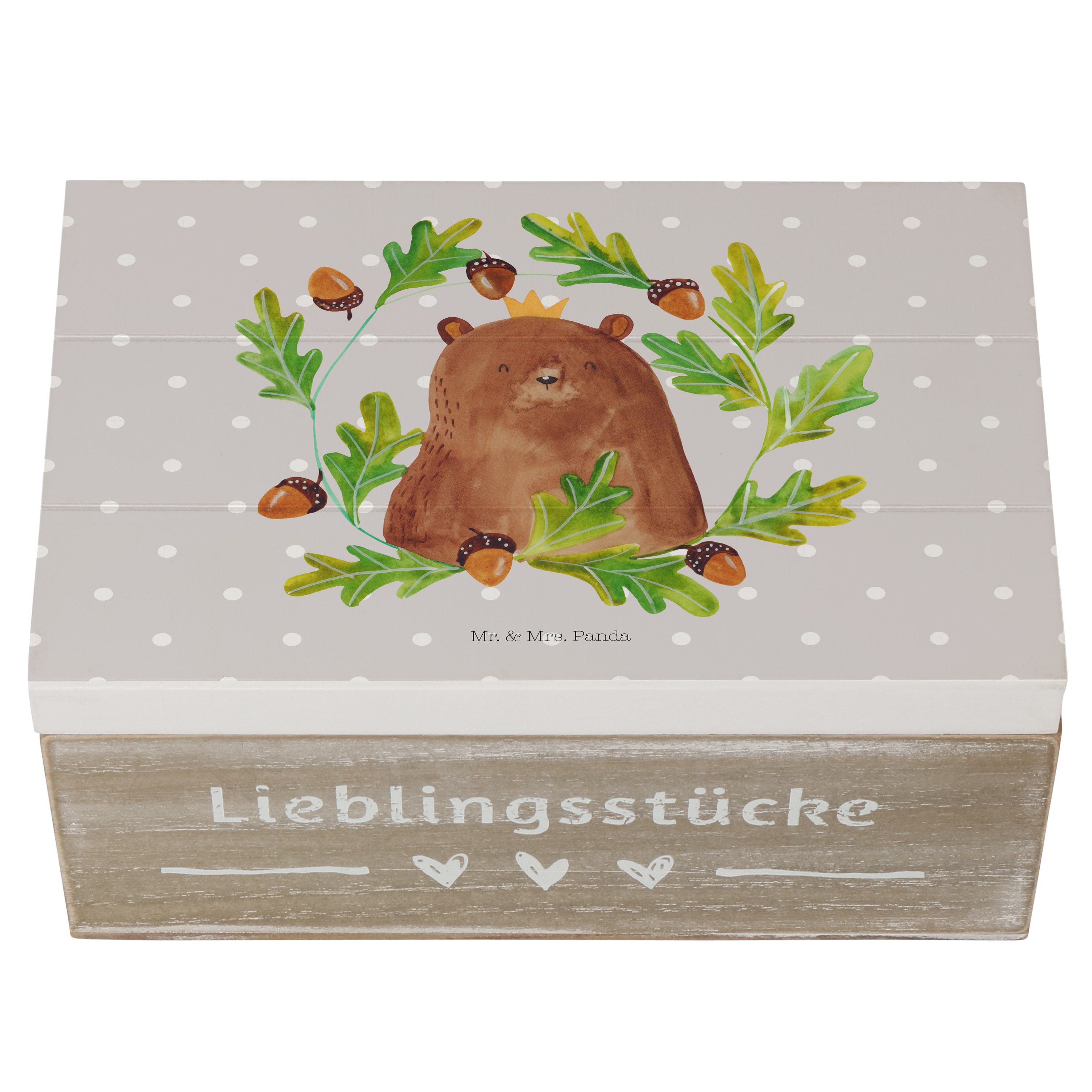 Holzkiste Bär König - 25 x 18 cm - mit Spruch - Grau Pastell