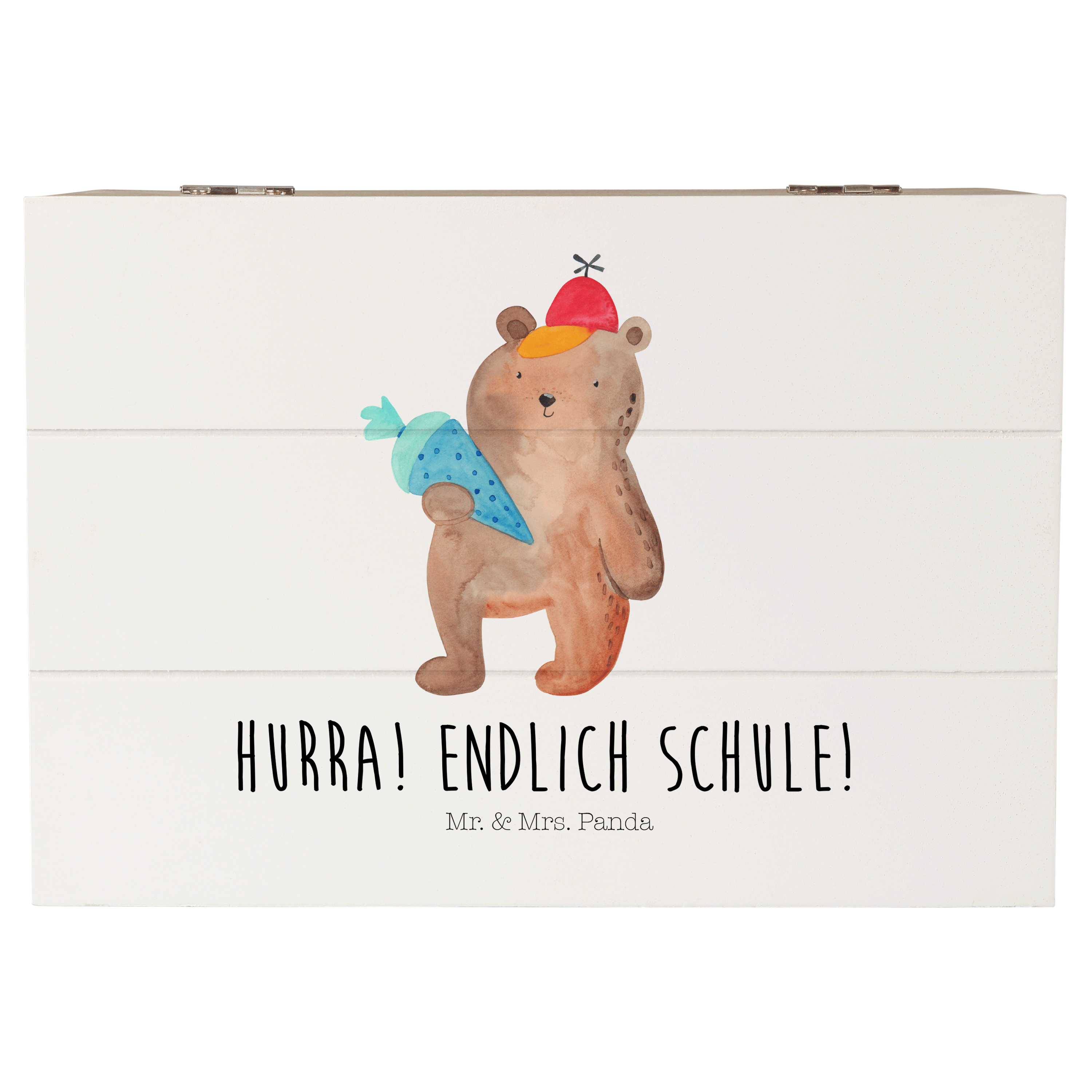 Mit unserem Bär mit Schultüte-Motiv hast du immer einen treuen Begleiter an deiner Seite, der dich an deinen aufregenden ersten Schultag erinnert. Der süße Bär hält stolz seine prall gefüllte Schultüte in der Hand und lächelt dir entgegen. Lass dich von seiner Freude und Zuversicht anstecken und starte selbstbewusst in deine Schulzeit.