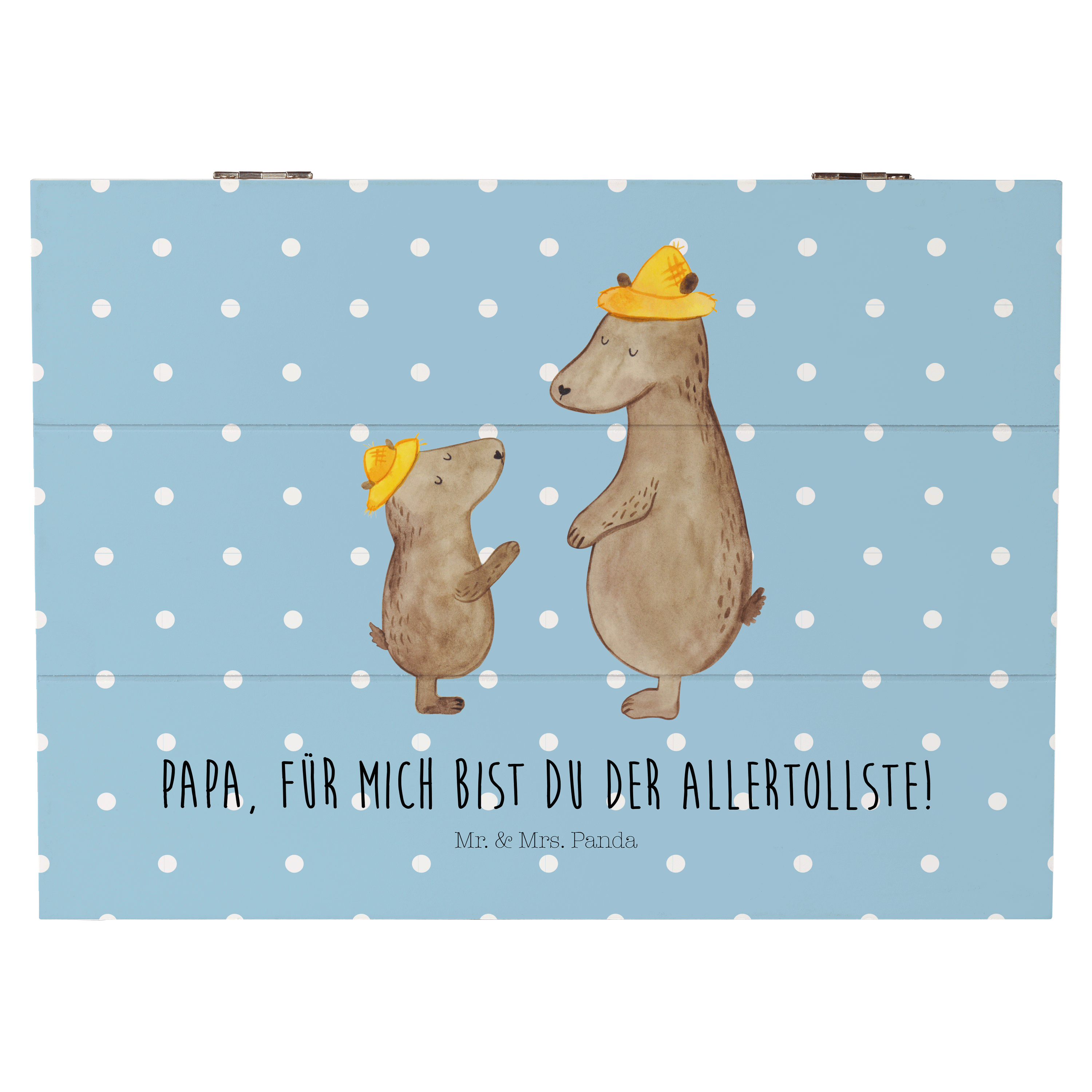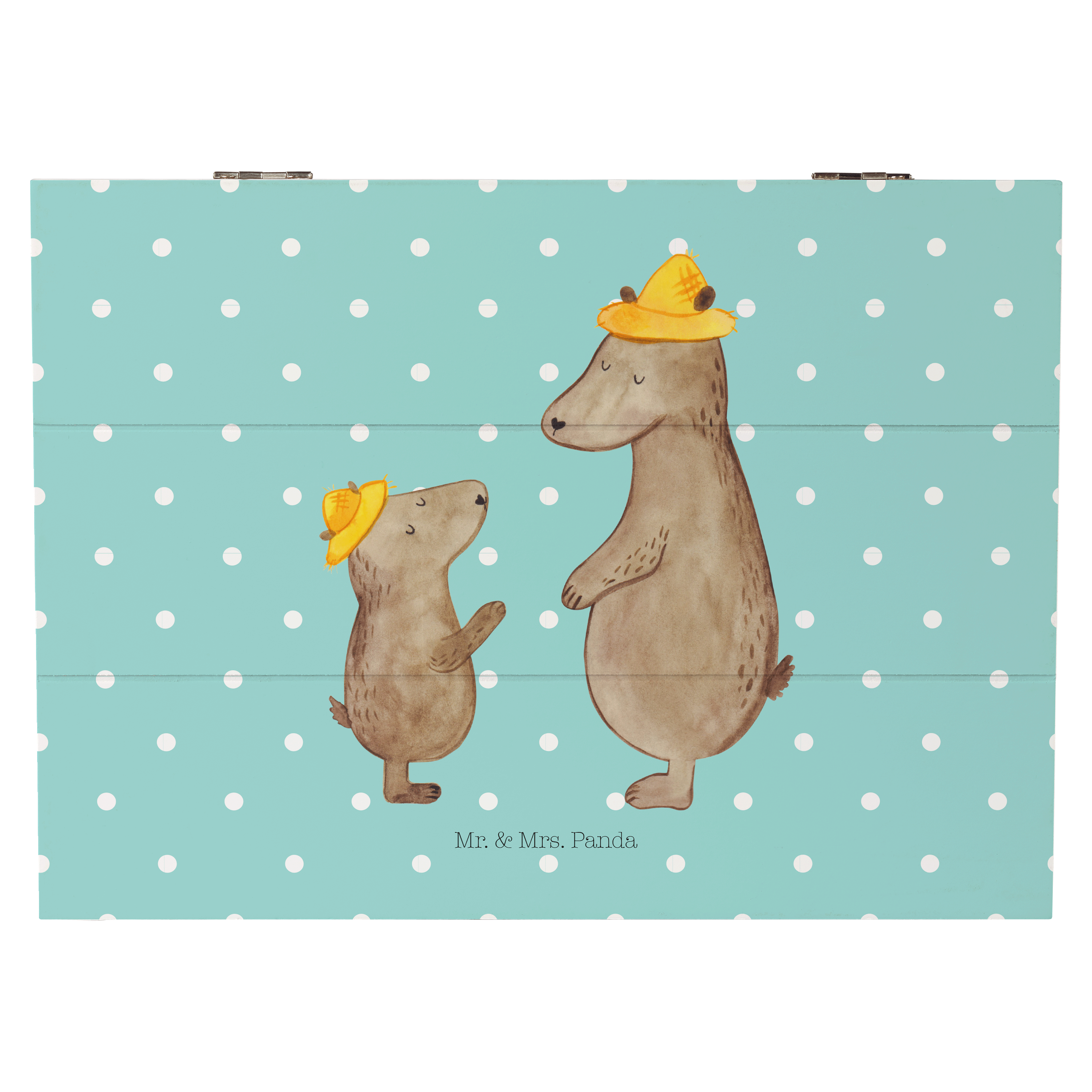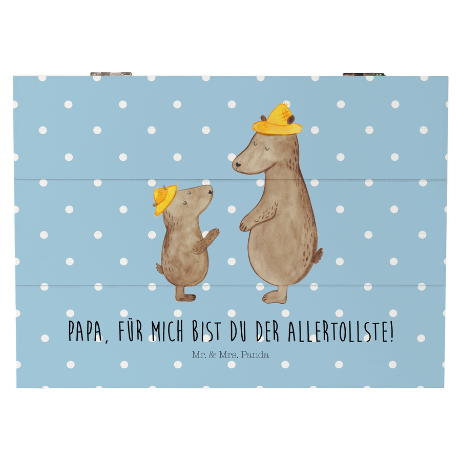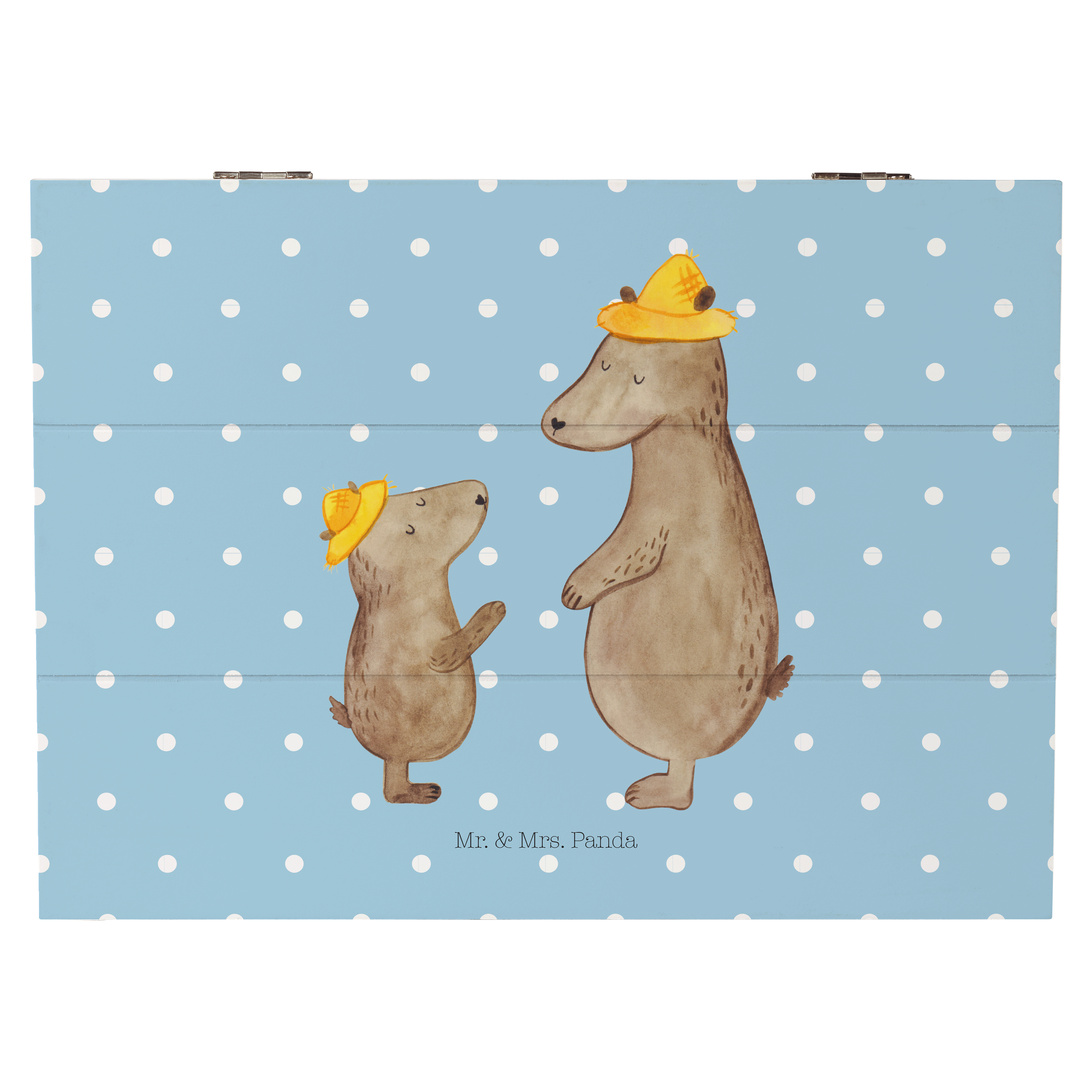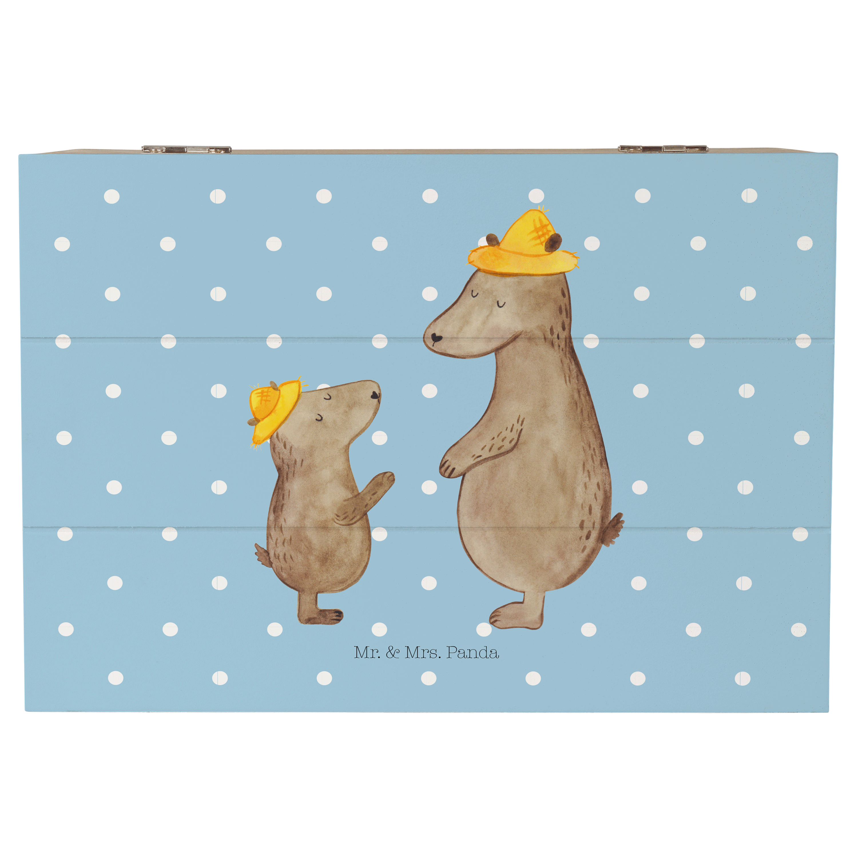 Holzkiste Bären mit Hut - 25 x 18 cm - mit Spruch - Blau Pastell