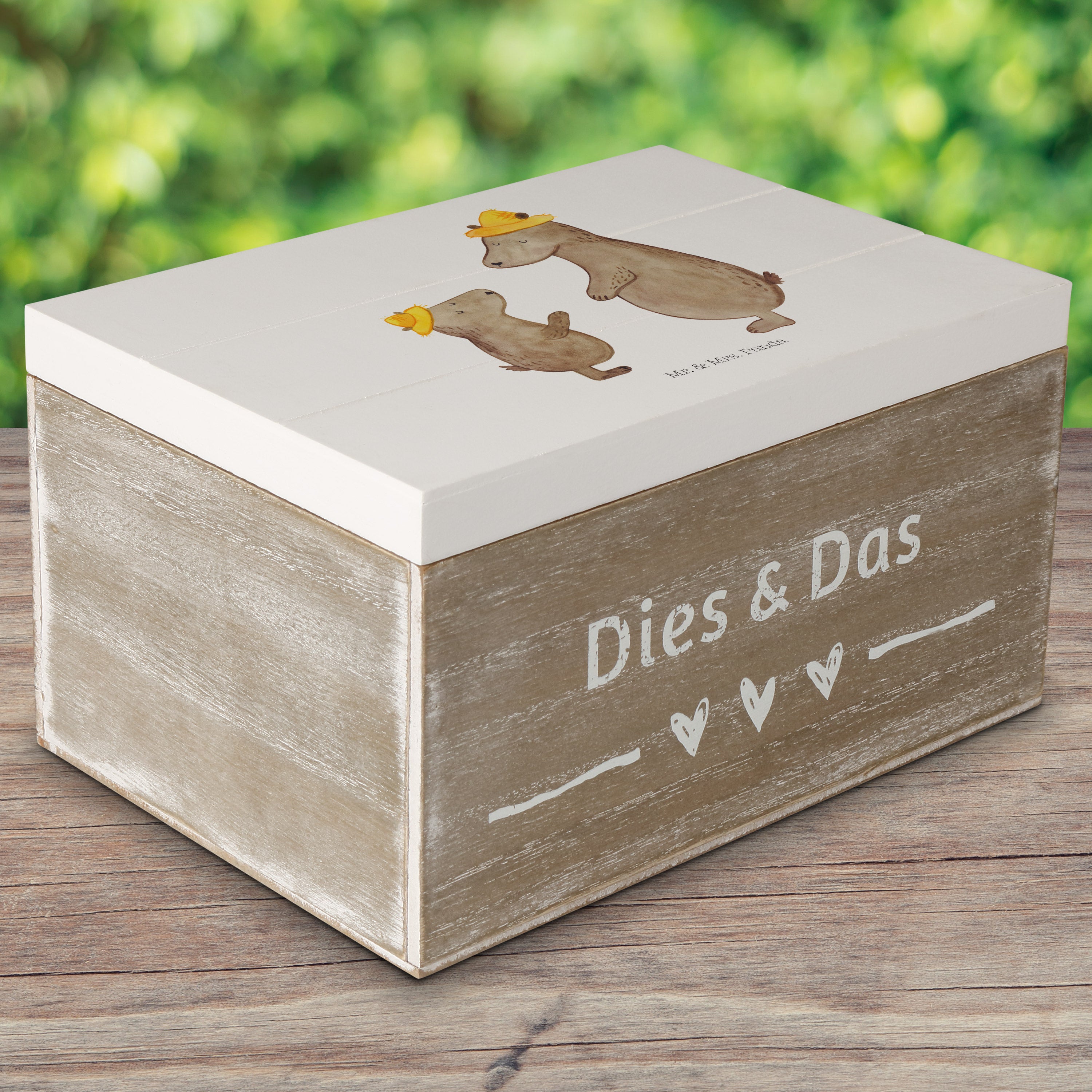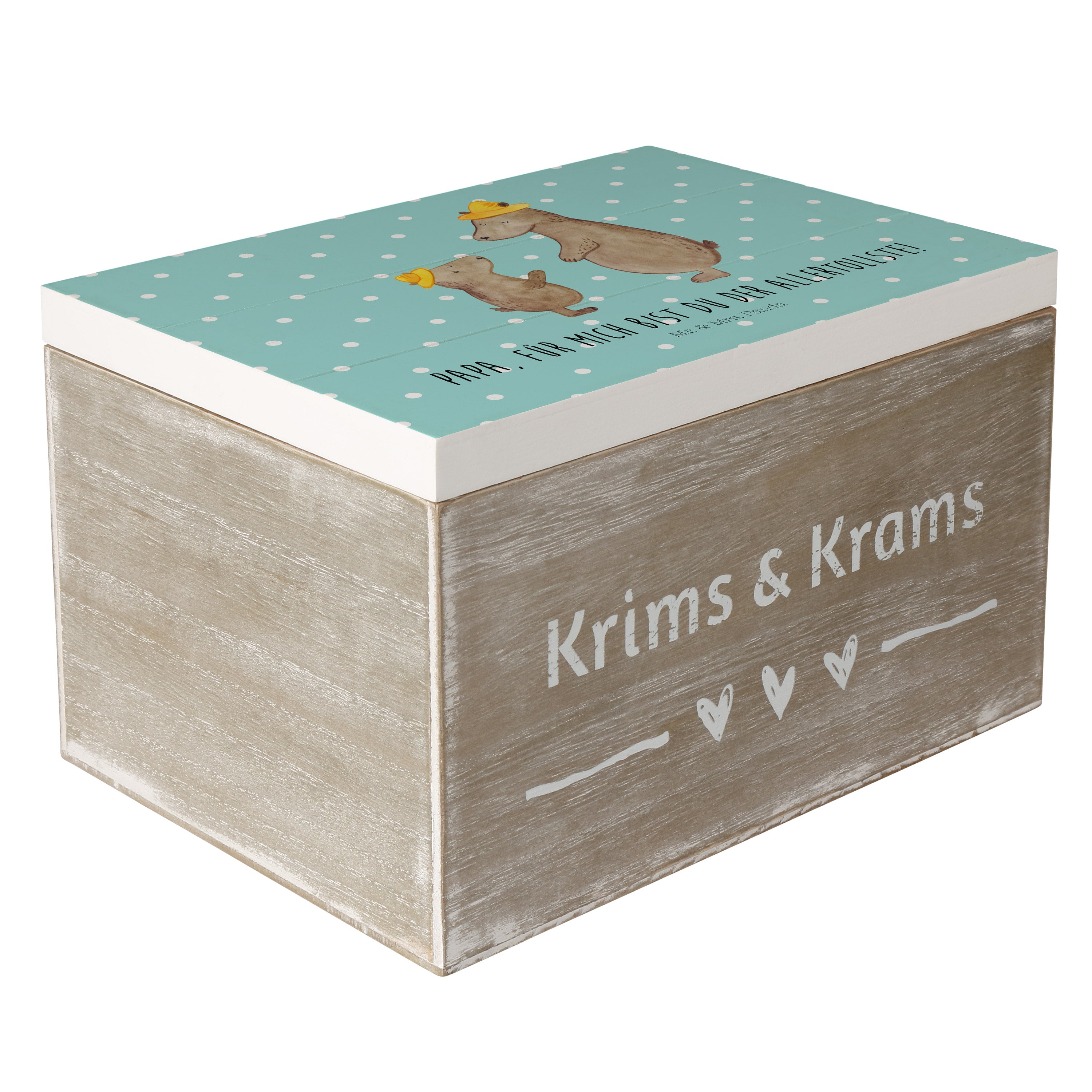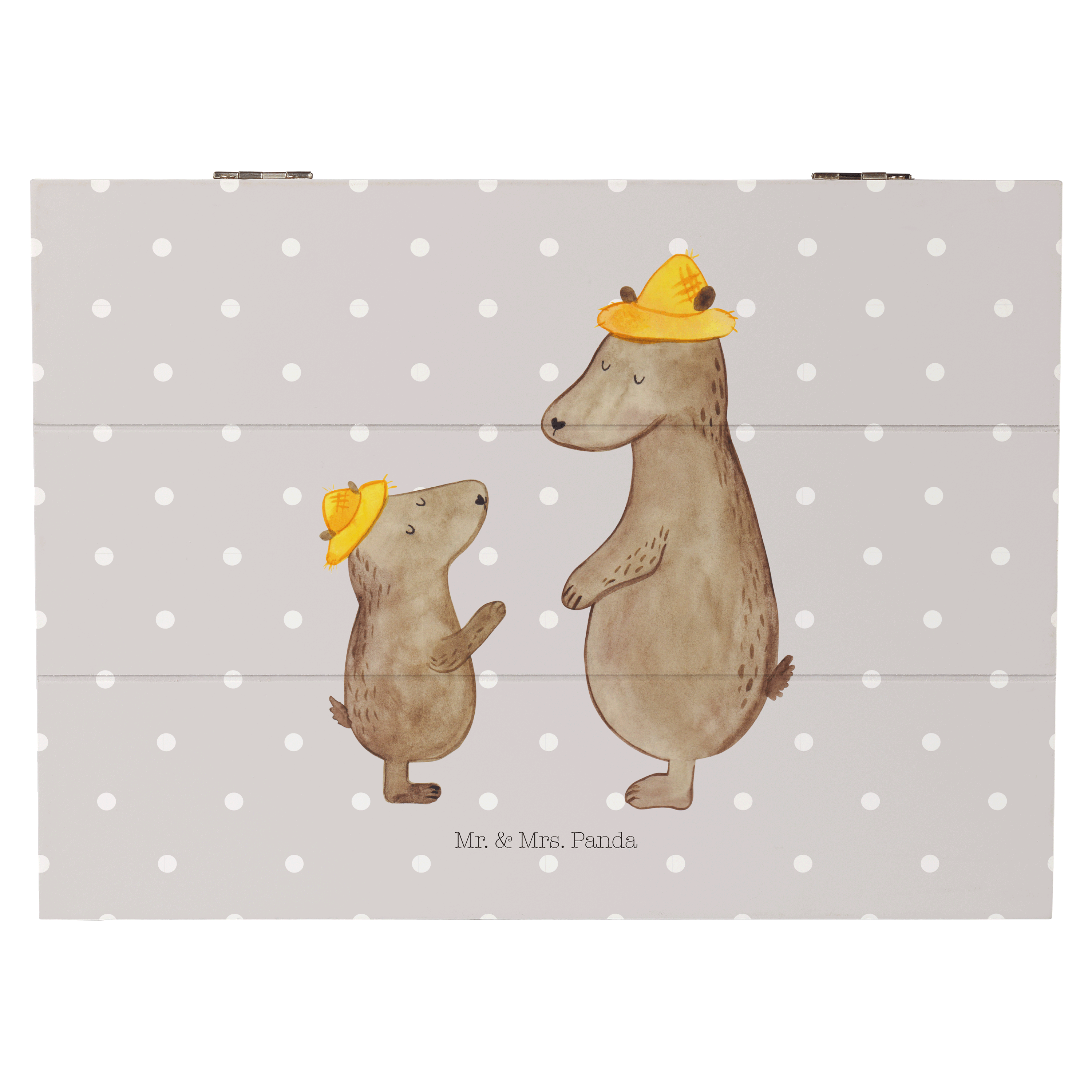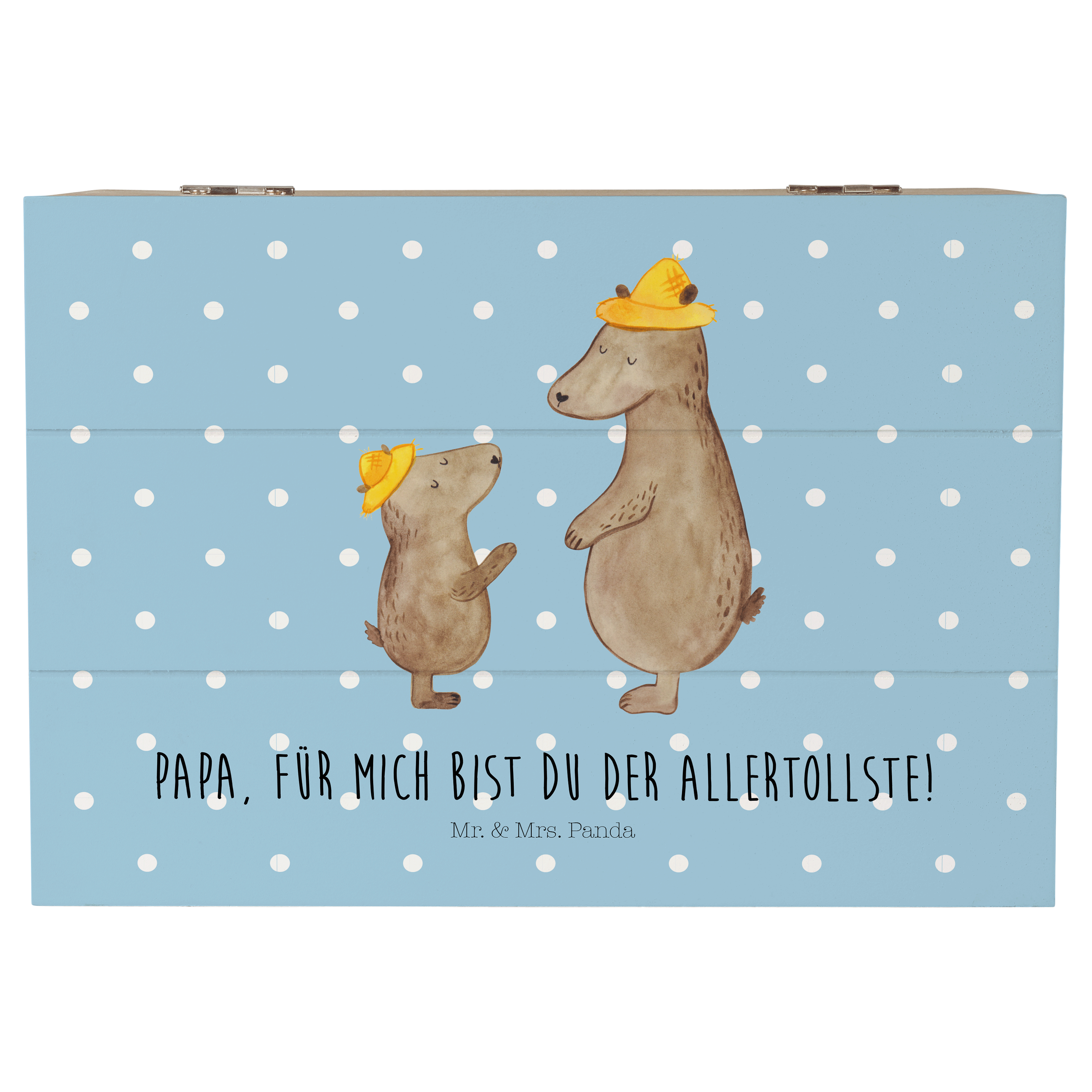 Holzkiste Bären mit Hut - 25 x 18 cm - mit Spruch - Blau Pastell