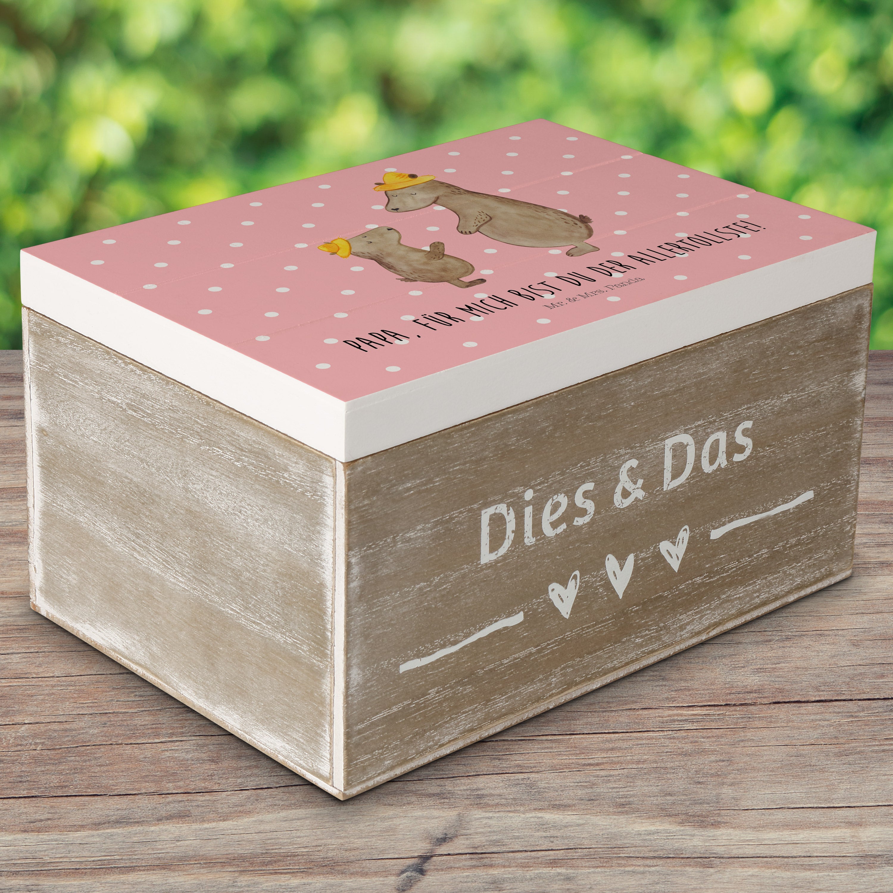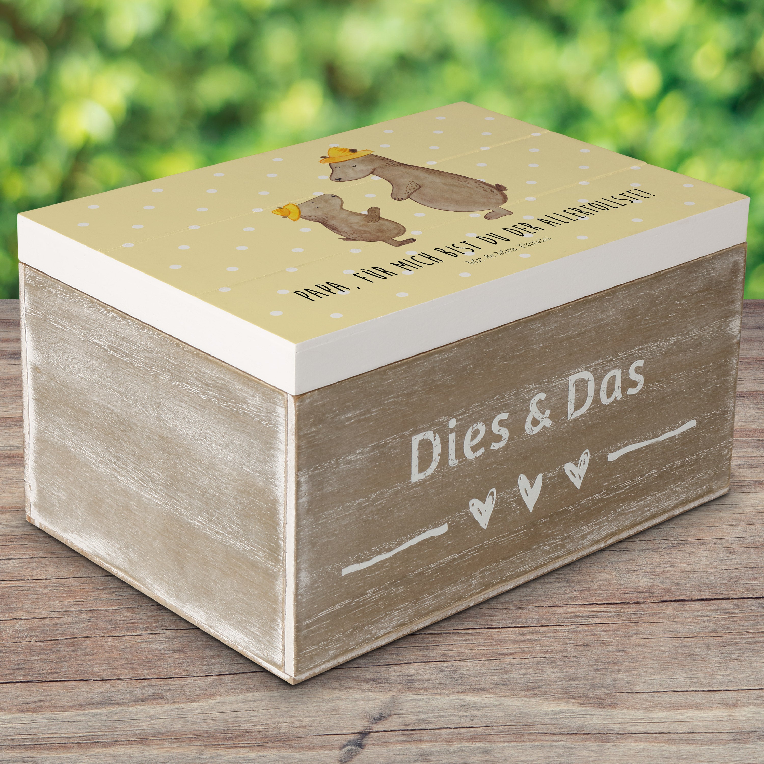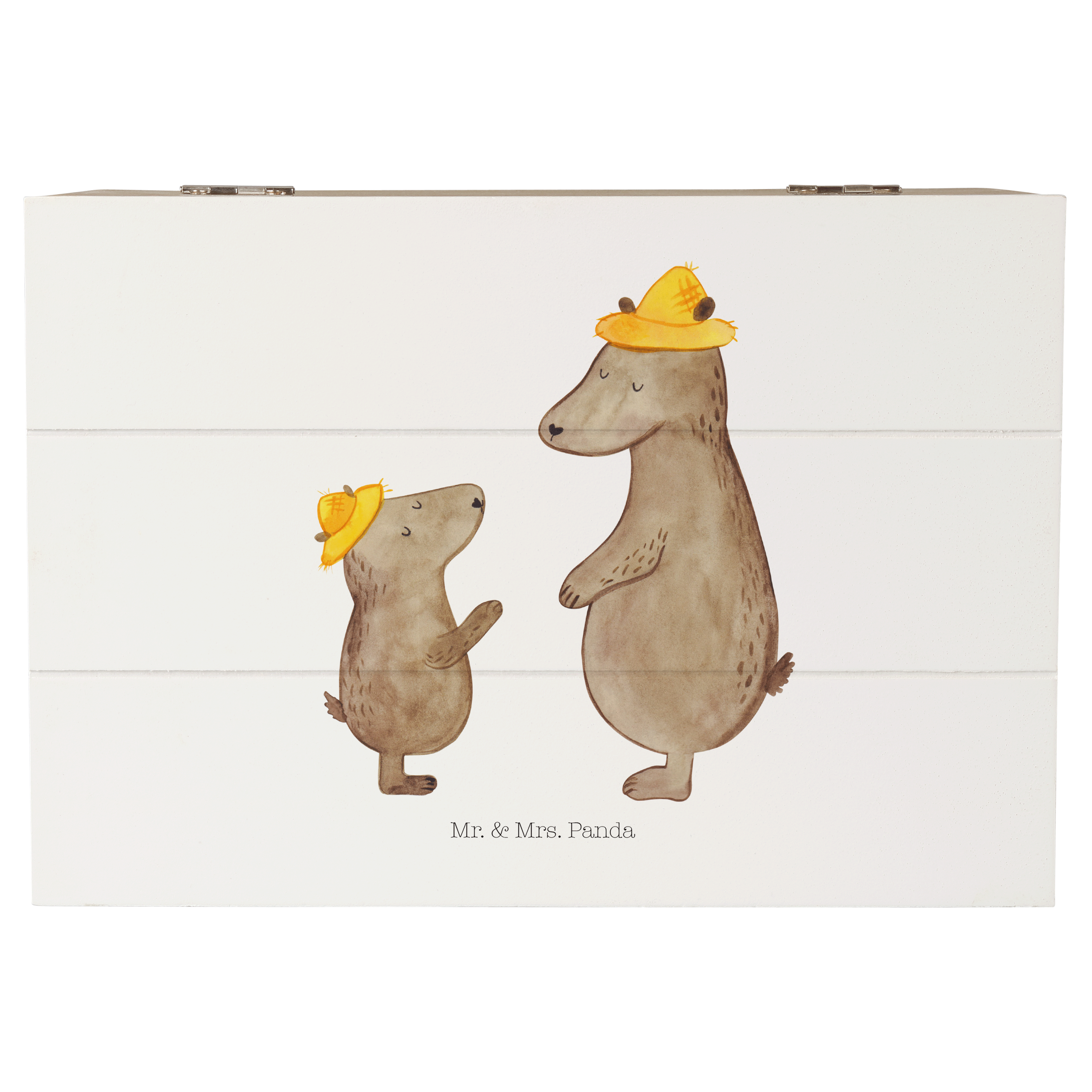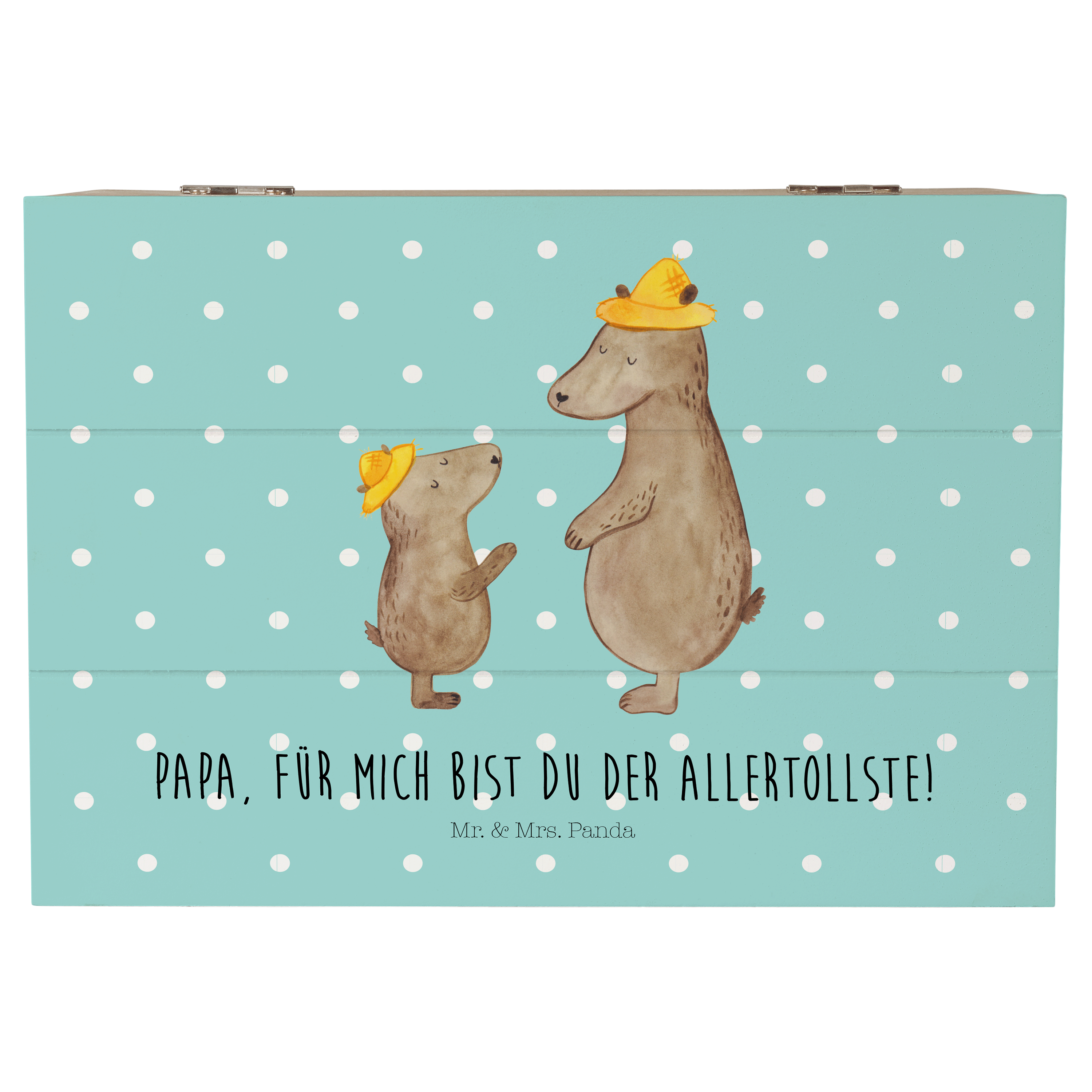 Holzkiste Bären mit Hut - 25 x 18 cm - mit Spruch - Blau Pastell