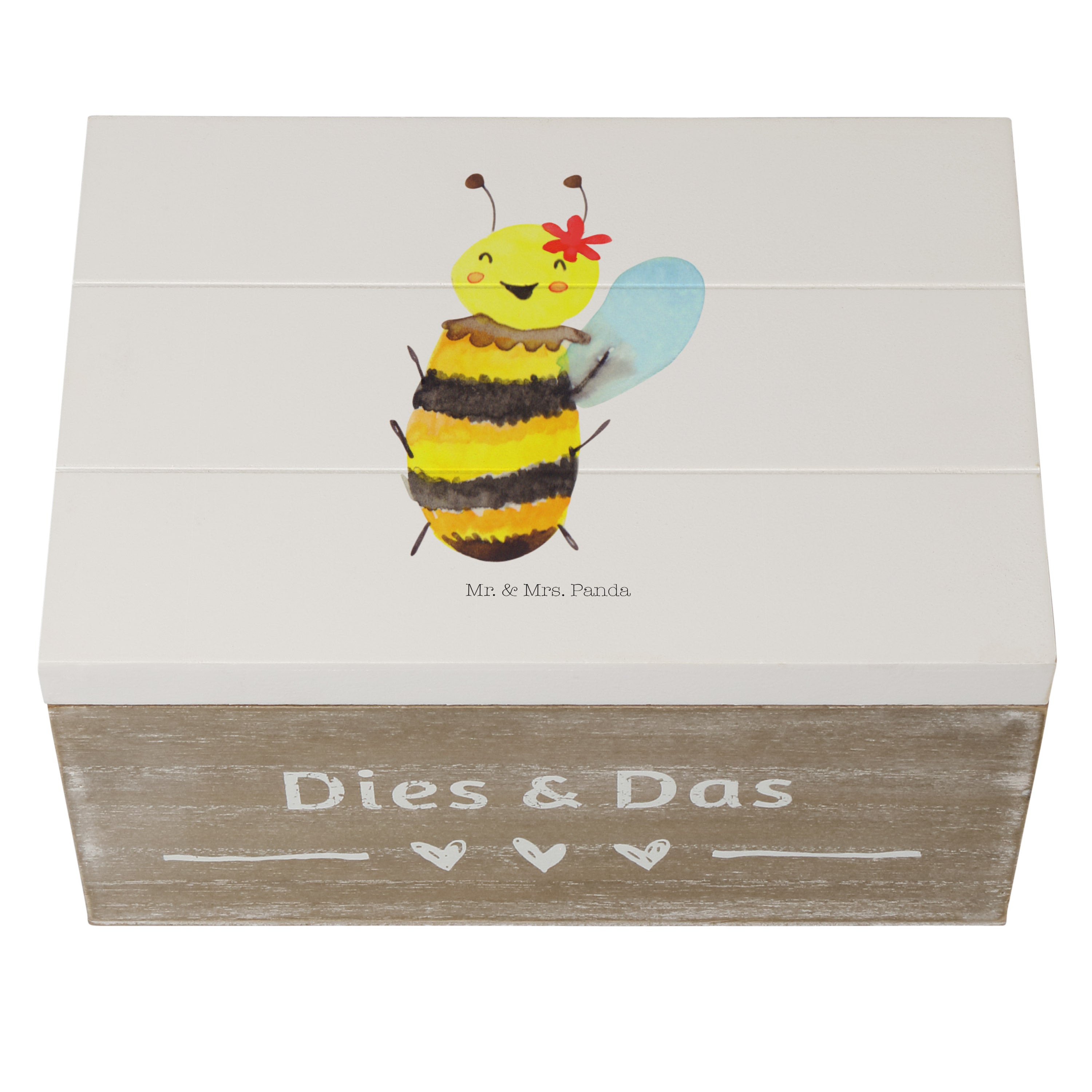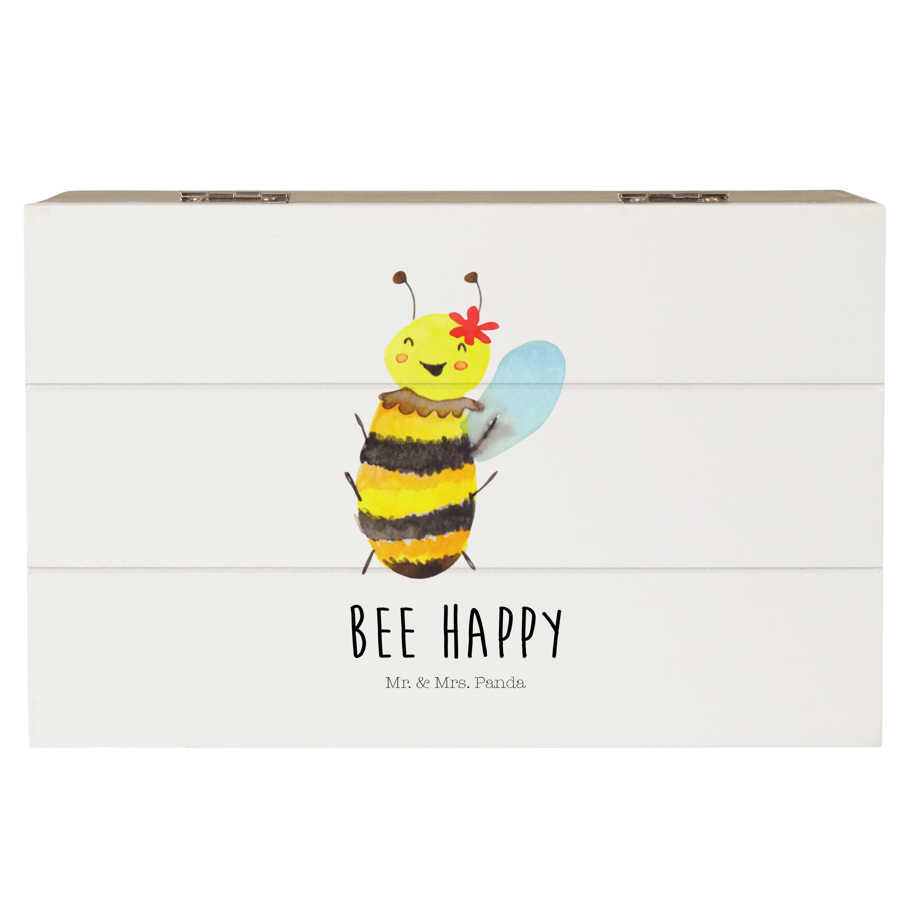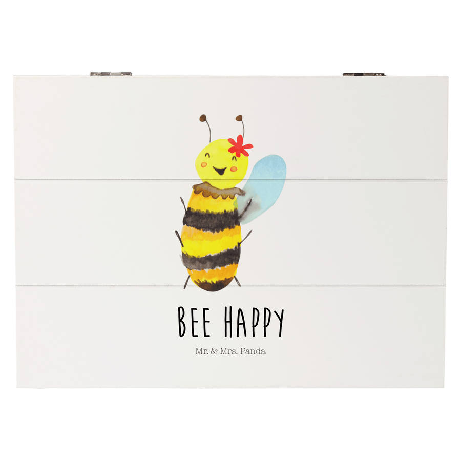 Holzkiste Biene Happy - 25 x 18 cm - mit Spruch