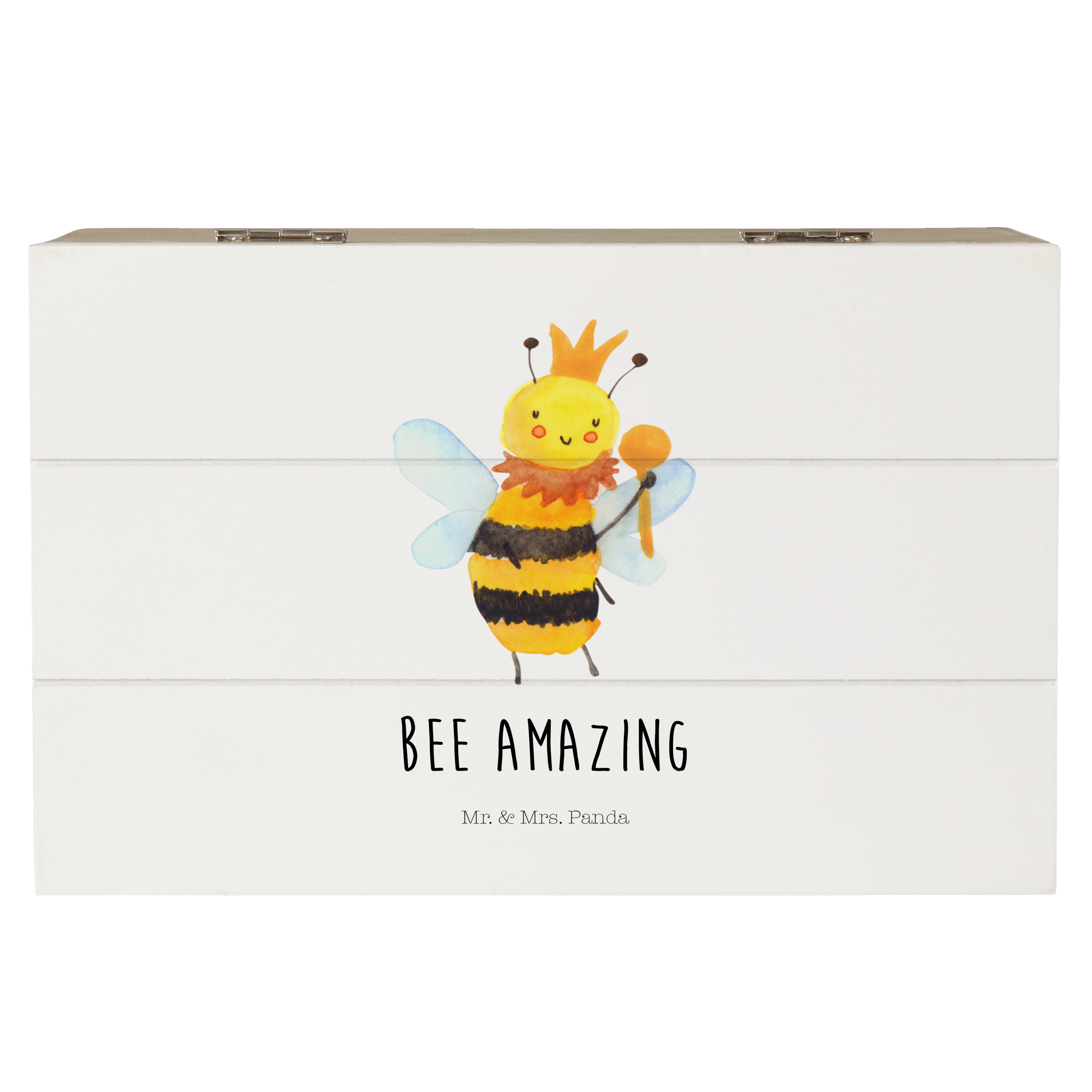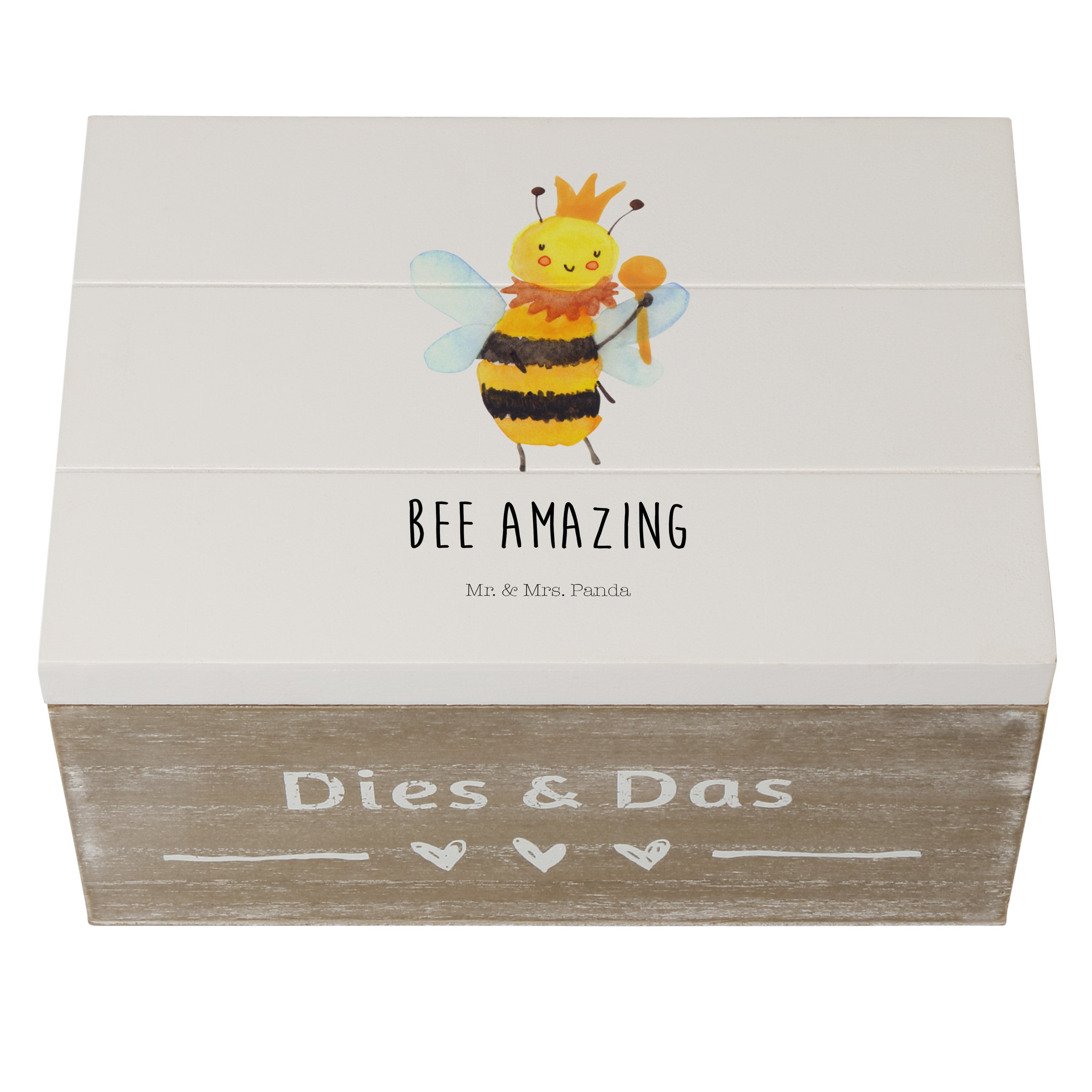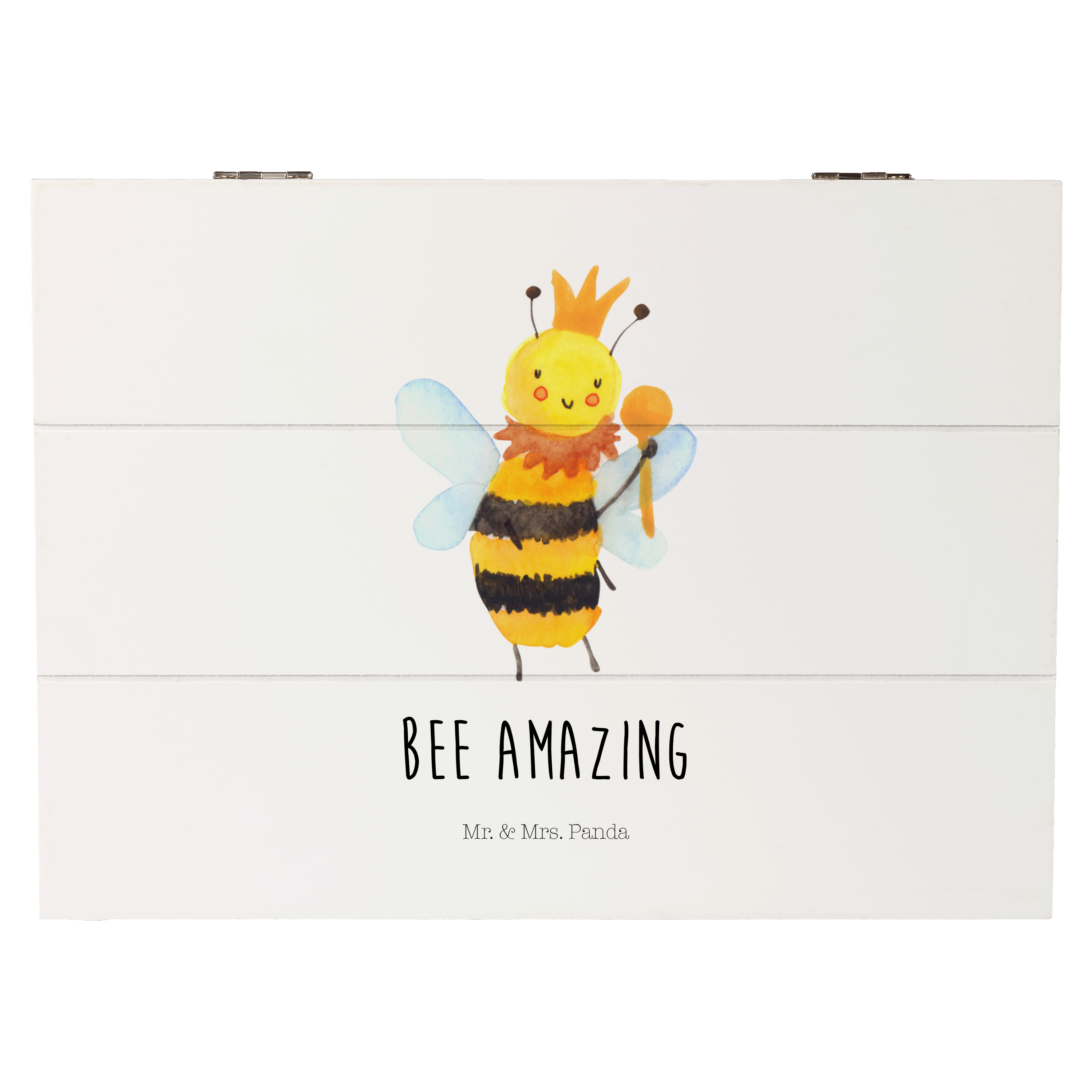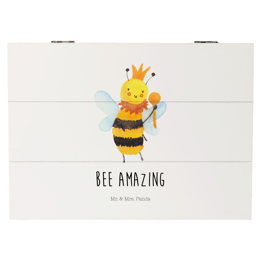 Holzkiste Biene König - 25 x 18 cm - mit Spruch - Weiß
