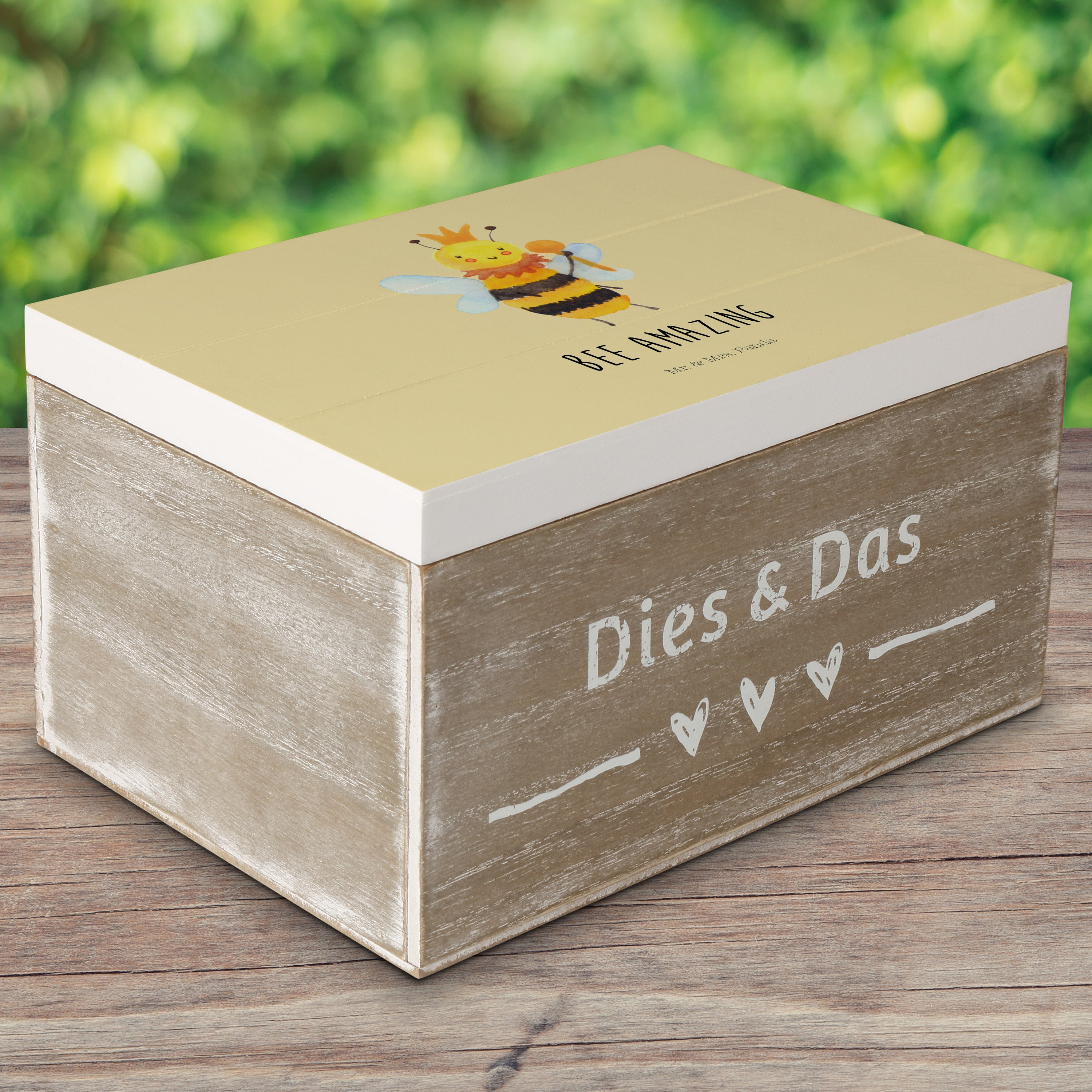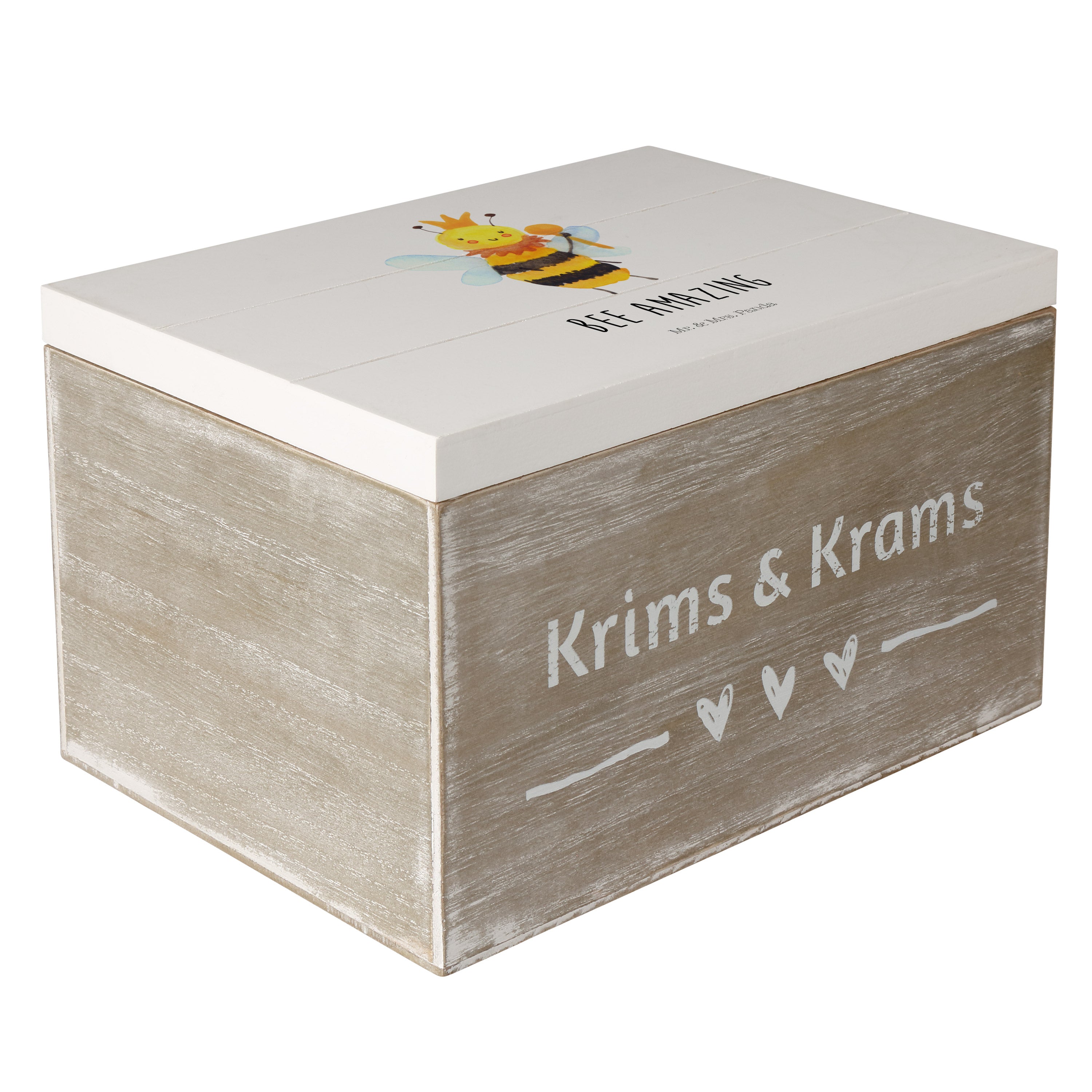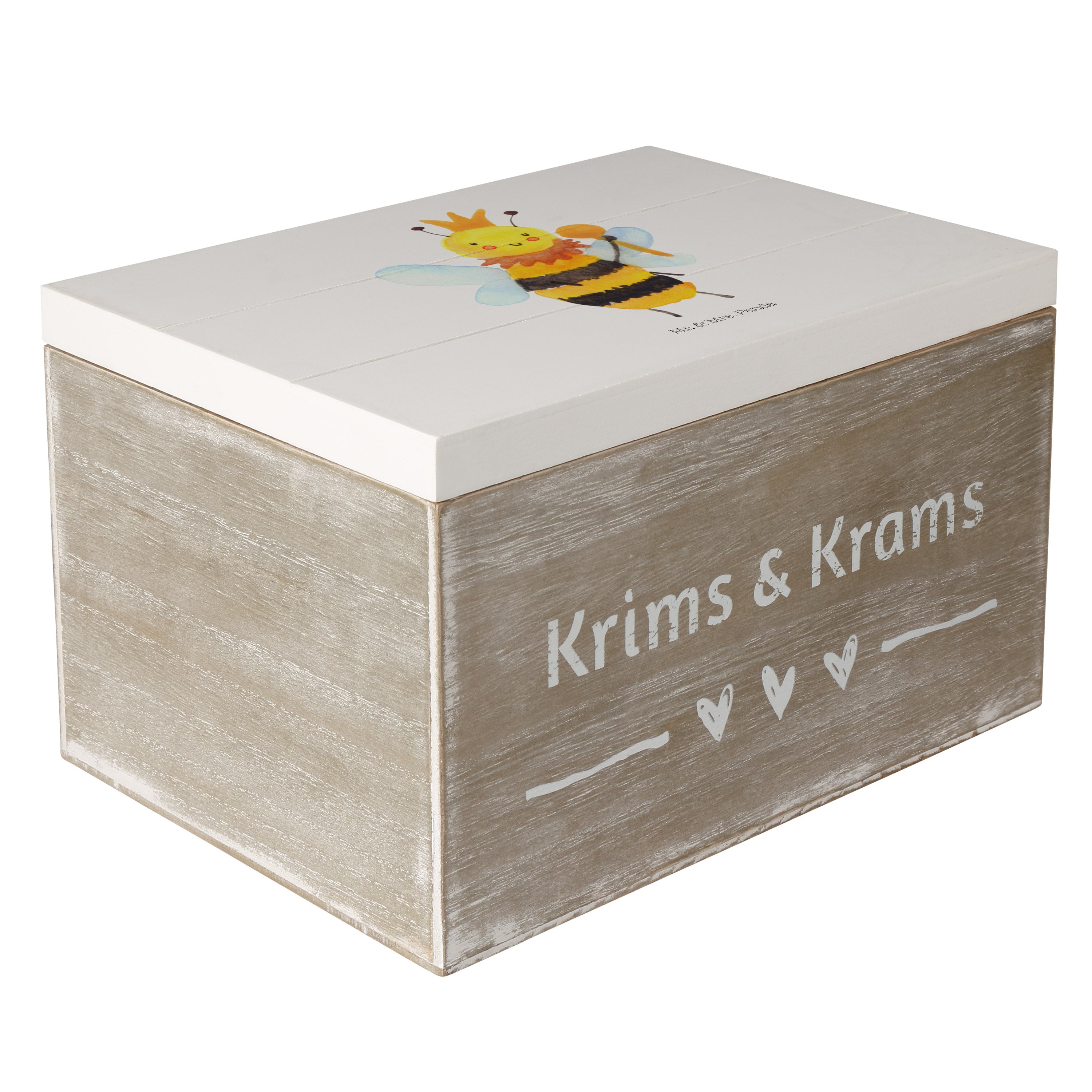 Holzkiste Biene König - 25 x 18 cm - mit Spruch - Weiß