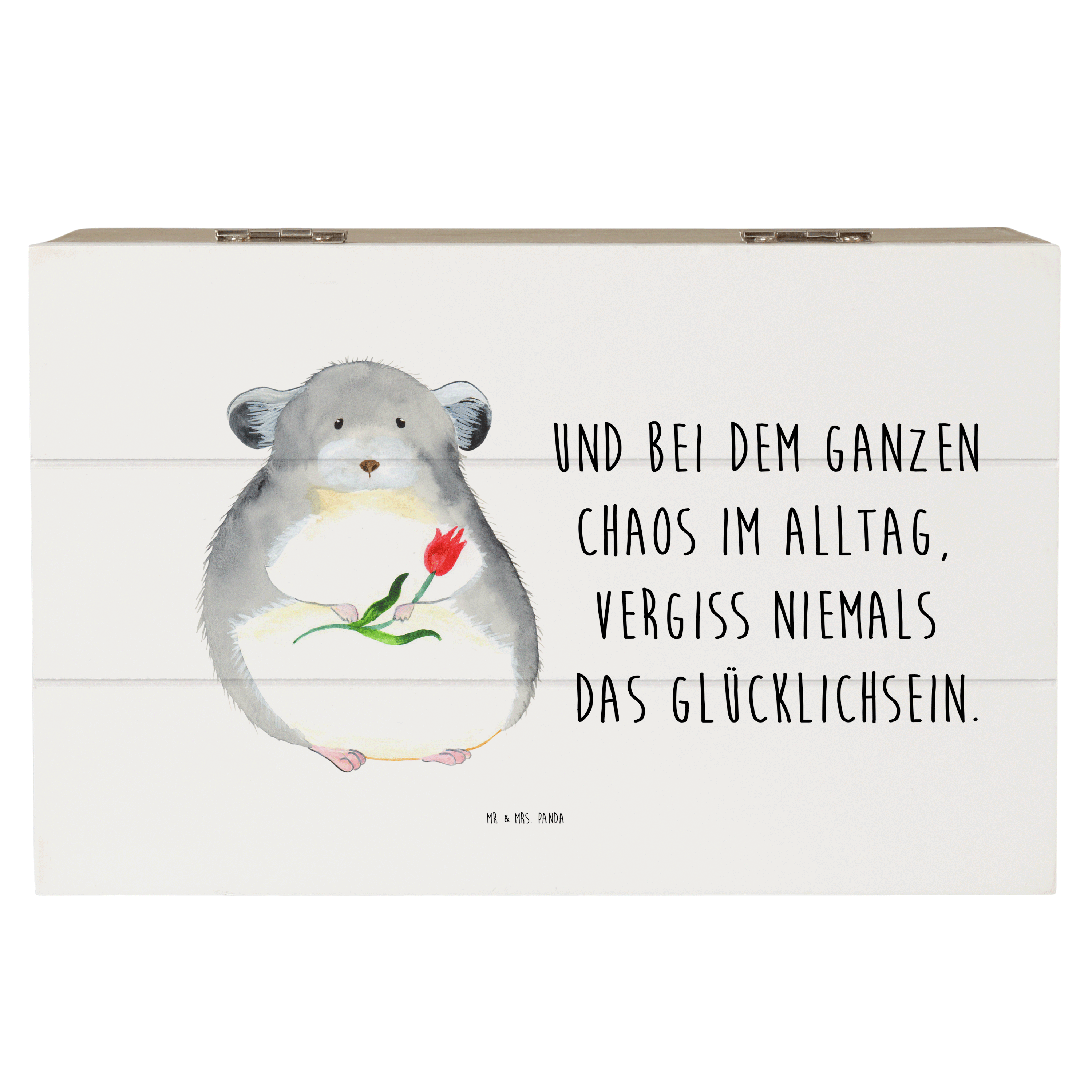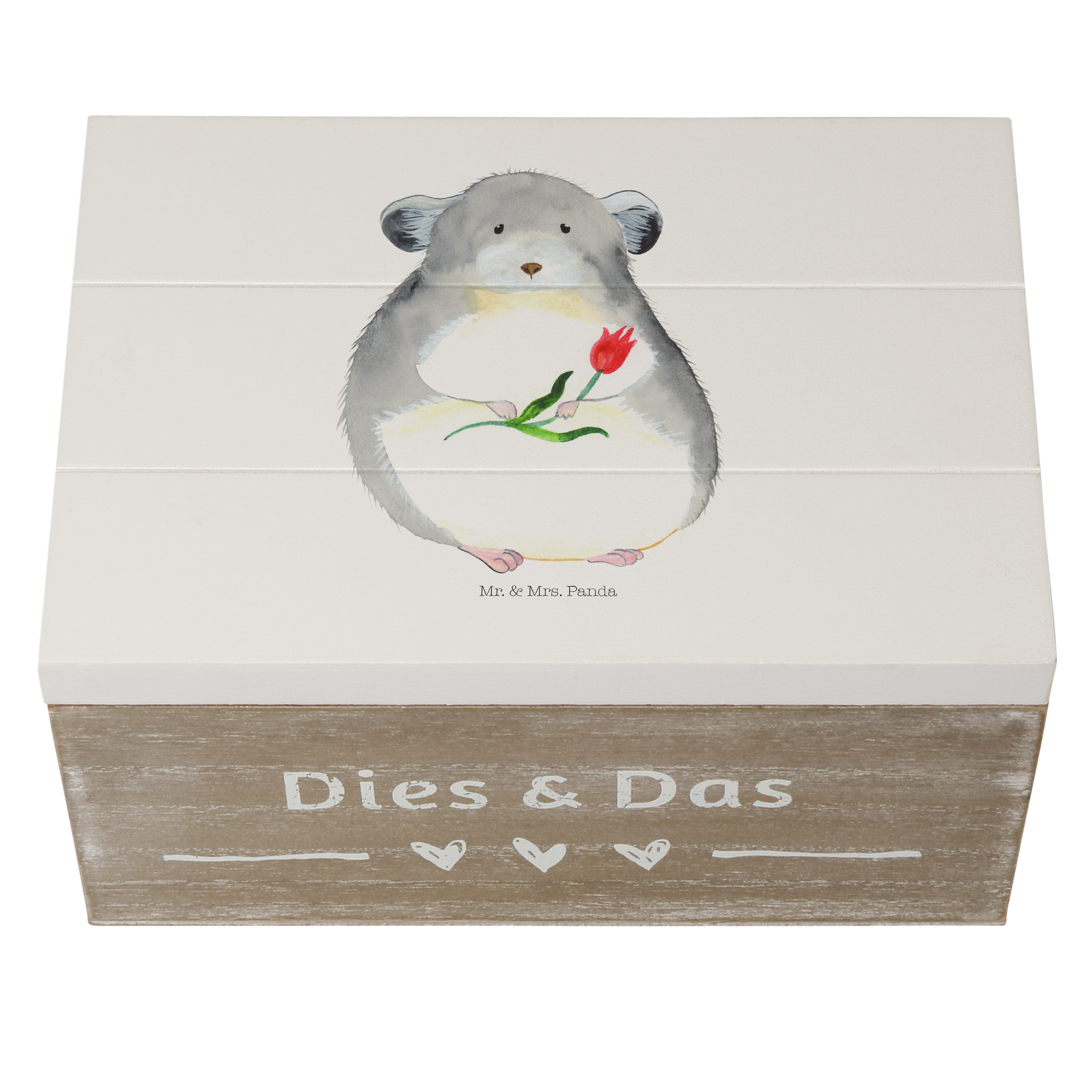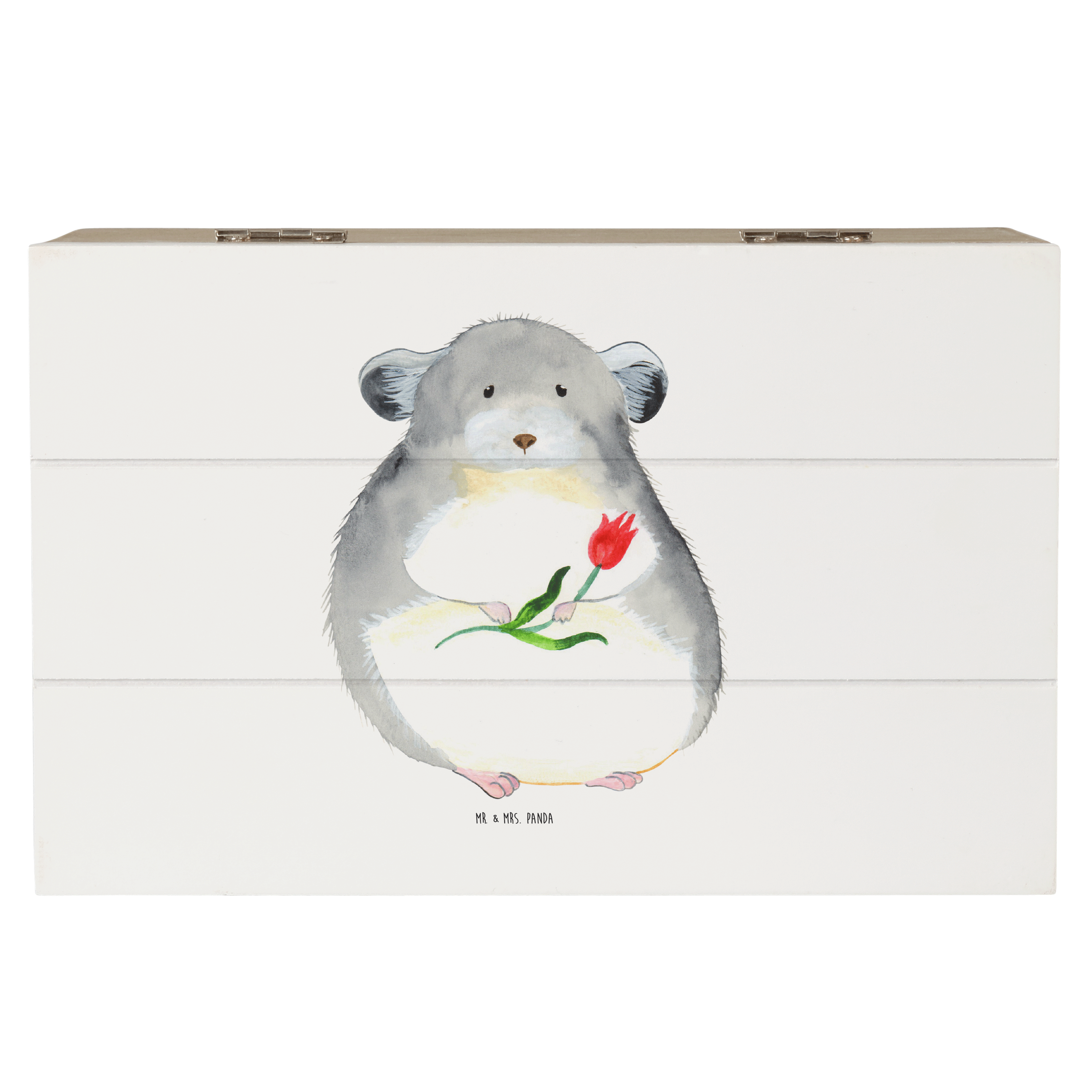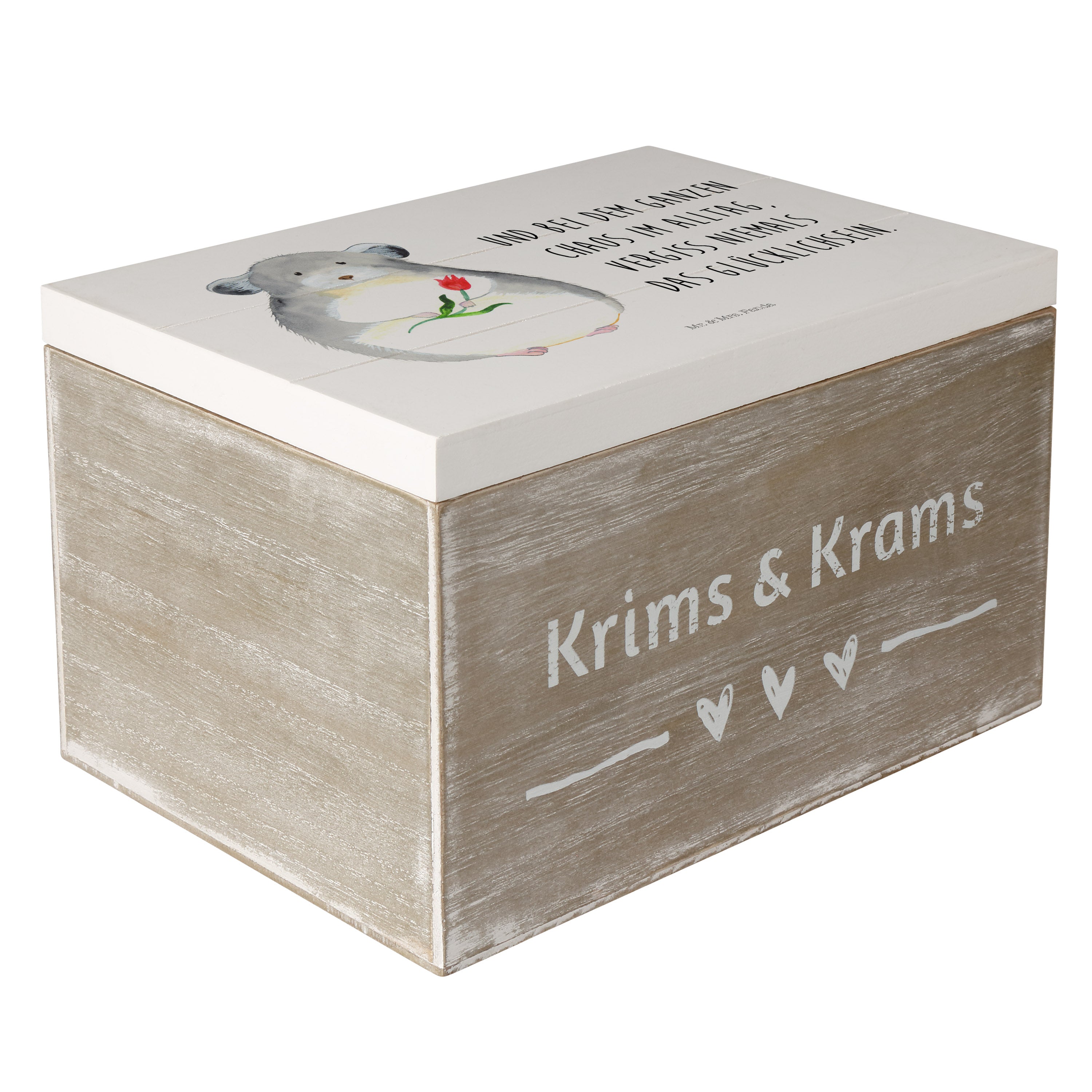 Holzkiste Chinchilla mit Blume - 25 x 18 cm - mit Spruch - Weiß