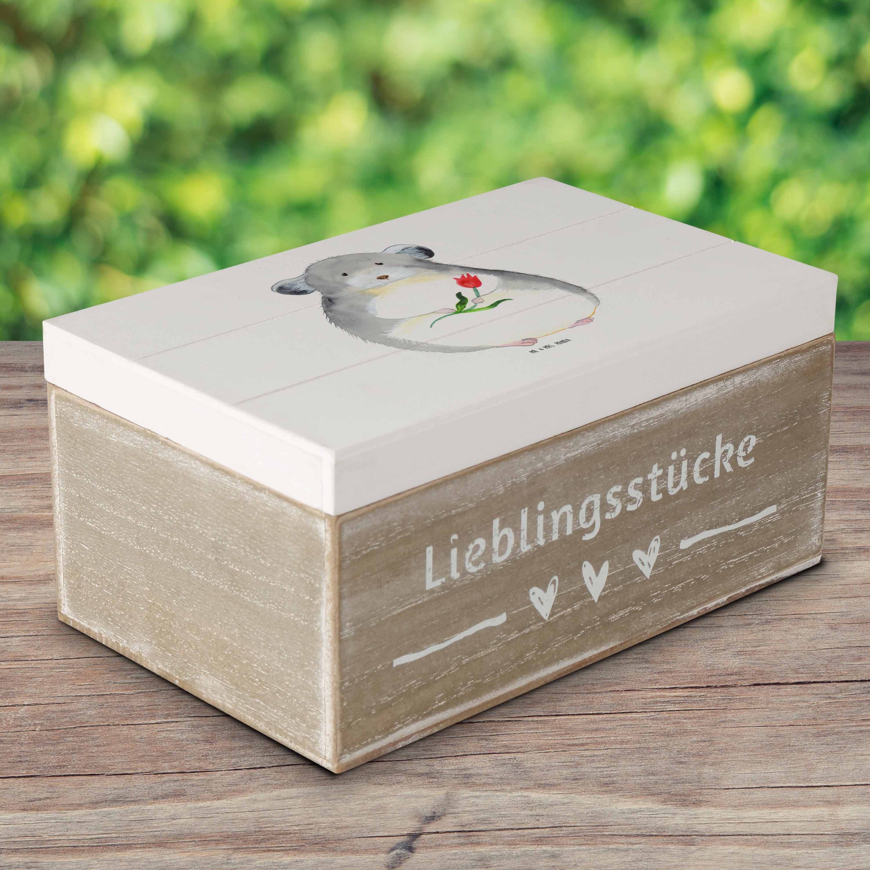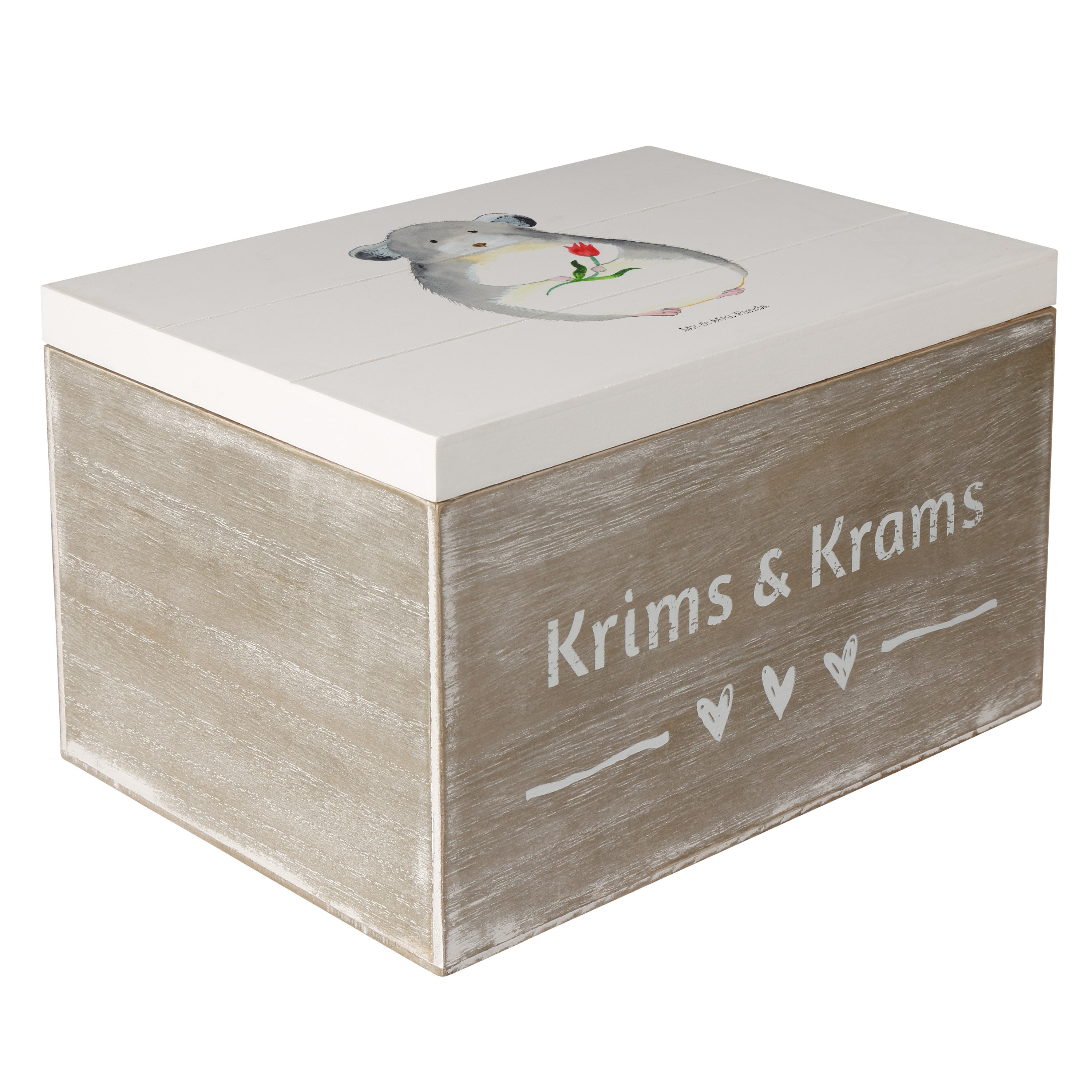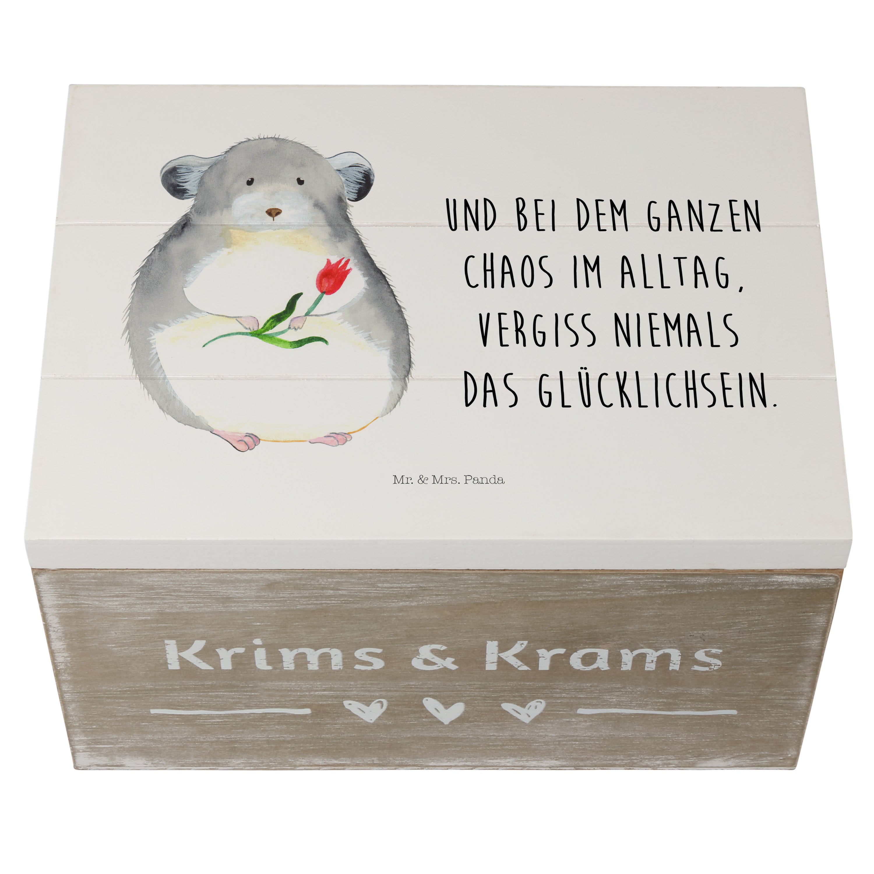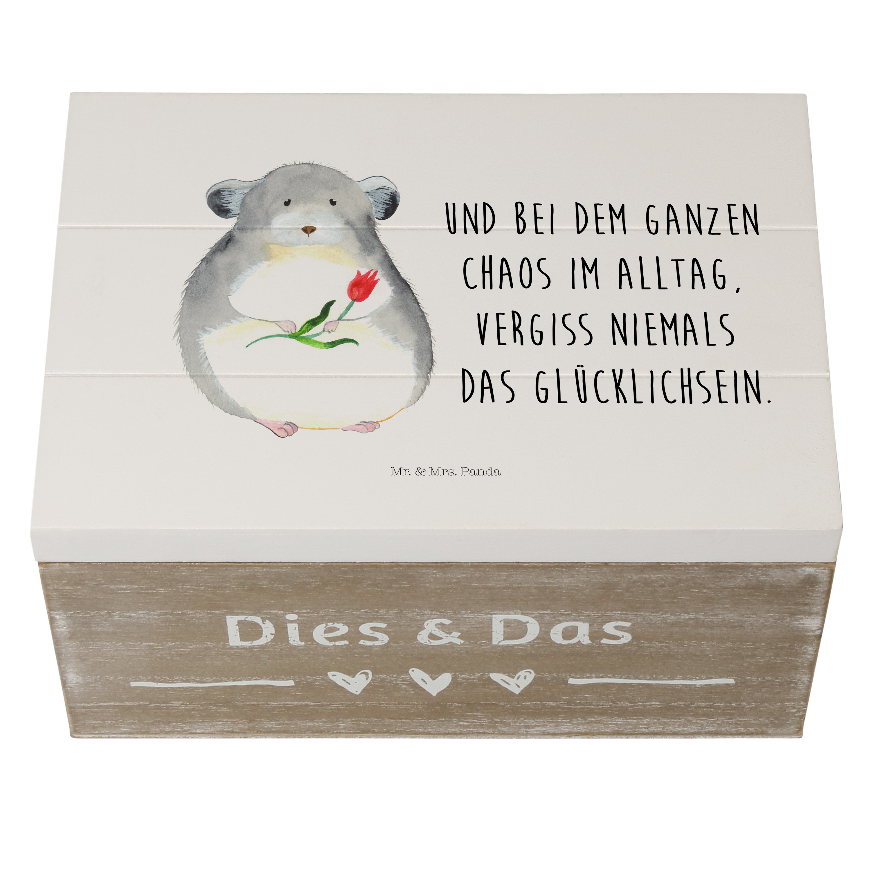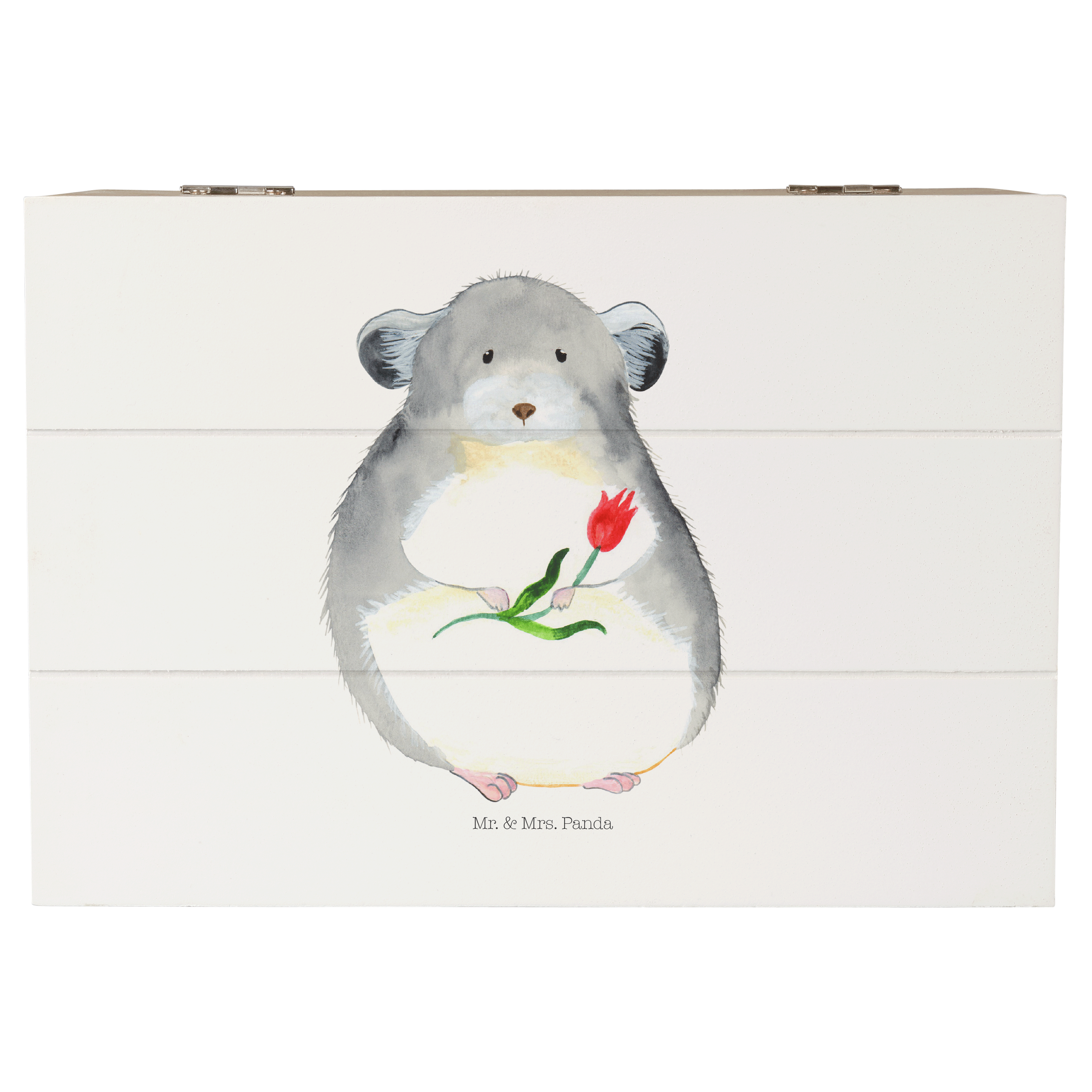 Holzkiste Chinchilla mit Blume - 25 x 18 cm - mit Spruch - Weiß