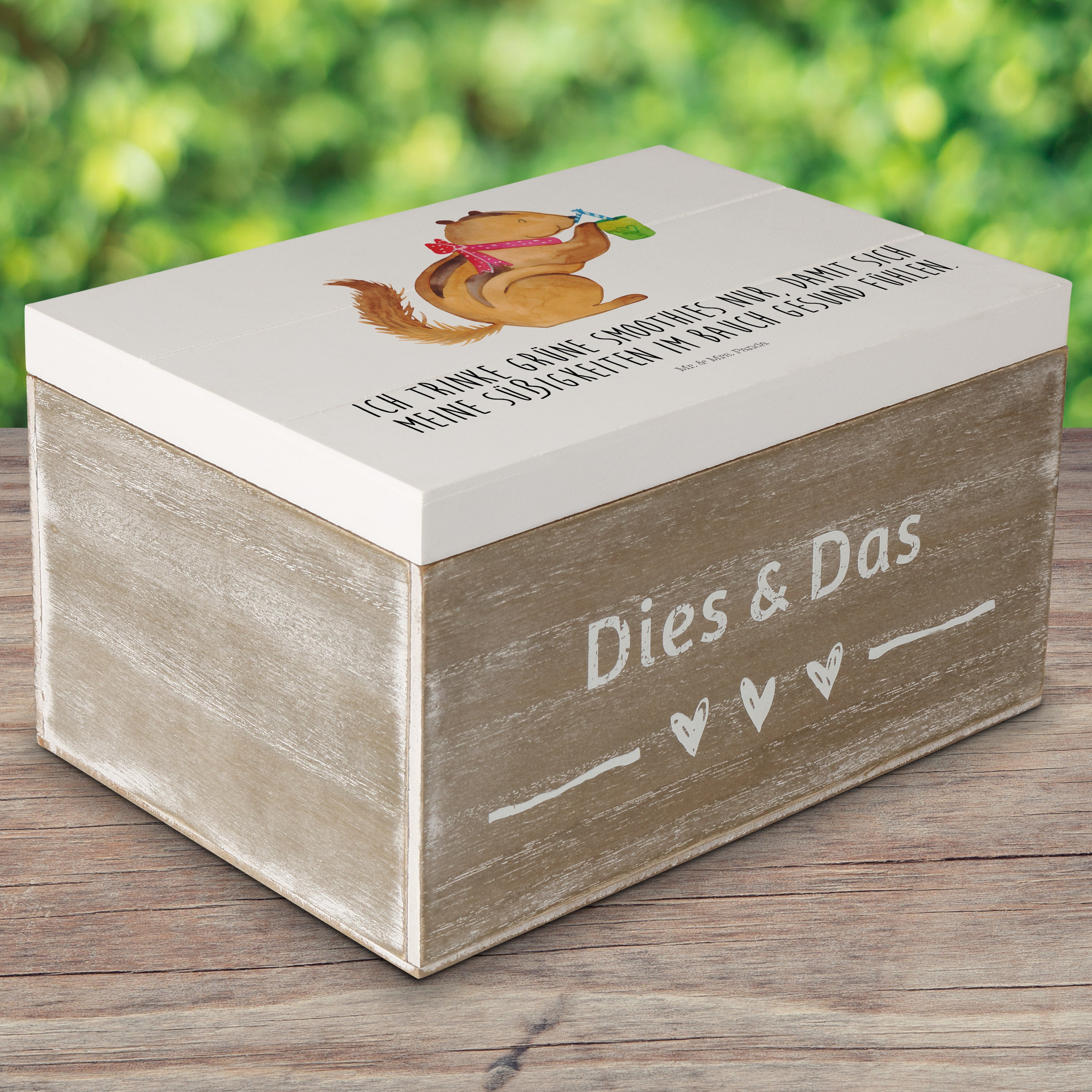 Holzkiste Eichhörnchen Smoothie Holzkiste, Kiste, Schatzkiste, Truhe, Schatulle, XXL, Erinnerungsbox, Erinnerungskiste, Dekokiste, Aufbewahrungsbox, Tiermotive, Gute Laune, lustige Sprüche, Tiere, Green Smoothies, Diät, Abnehmen, Streifenhörnchen, Eichhörnchen
