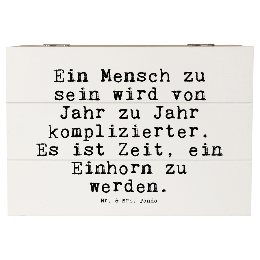Holzkiste Sprüche und Zitate Ein Mensch zu sein wird von Jahr zu Jahr komplizierter. Es ist Zeit, ein Einhorn zu werden.
