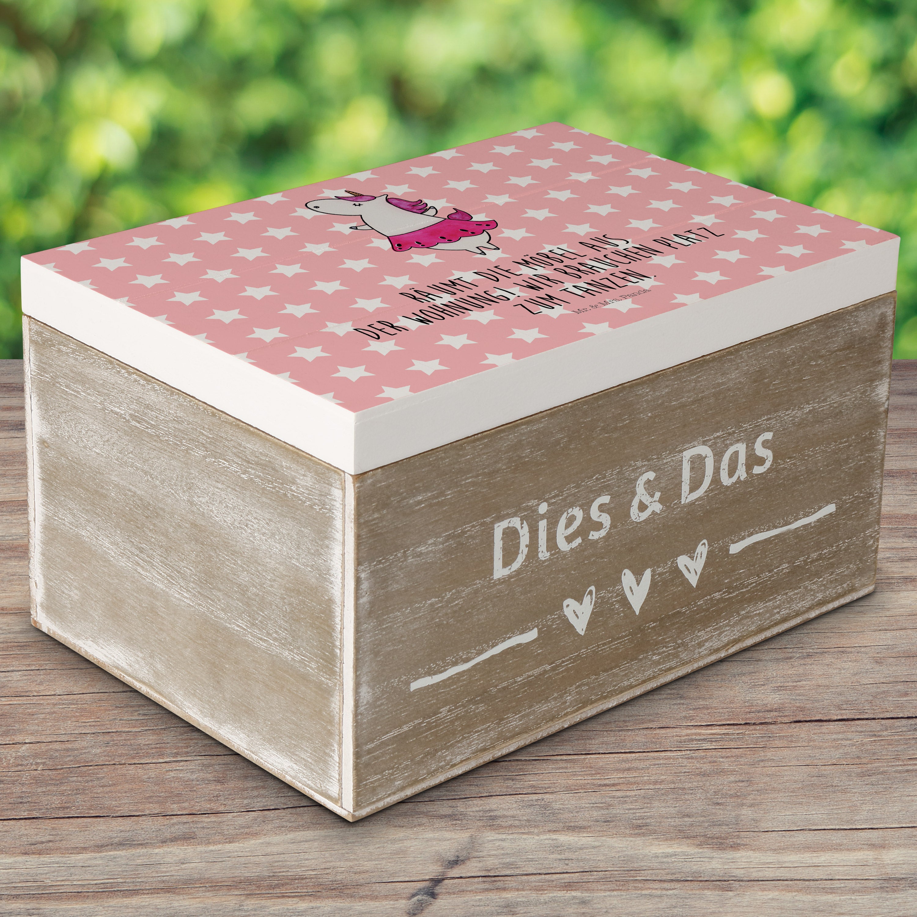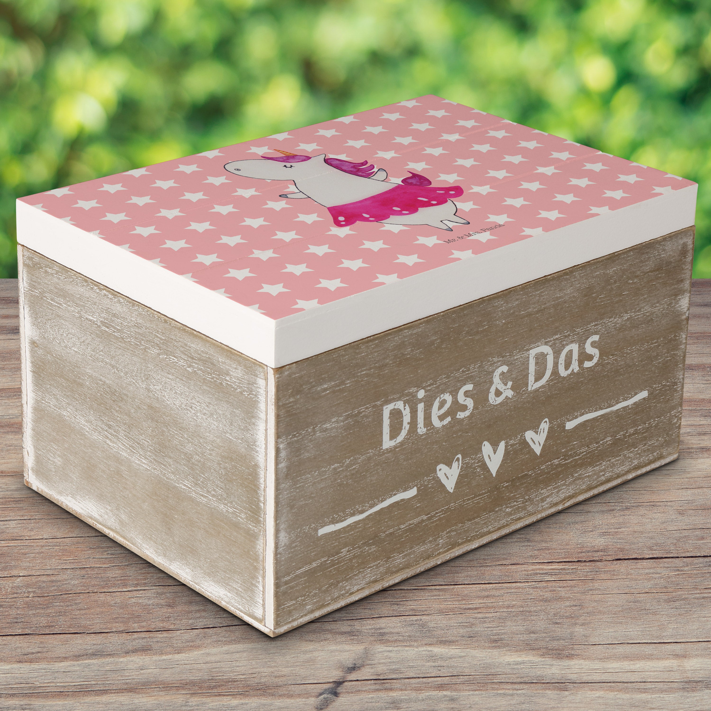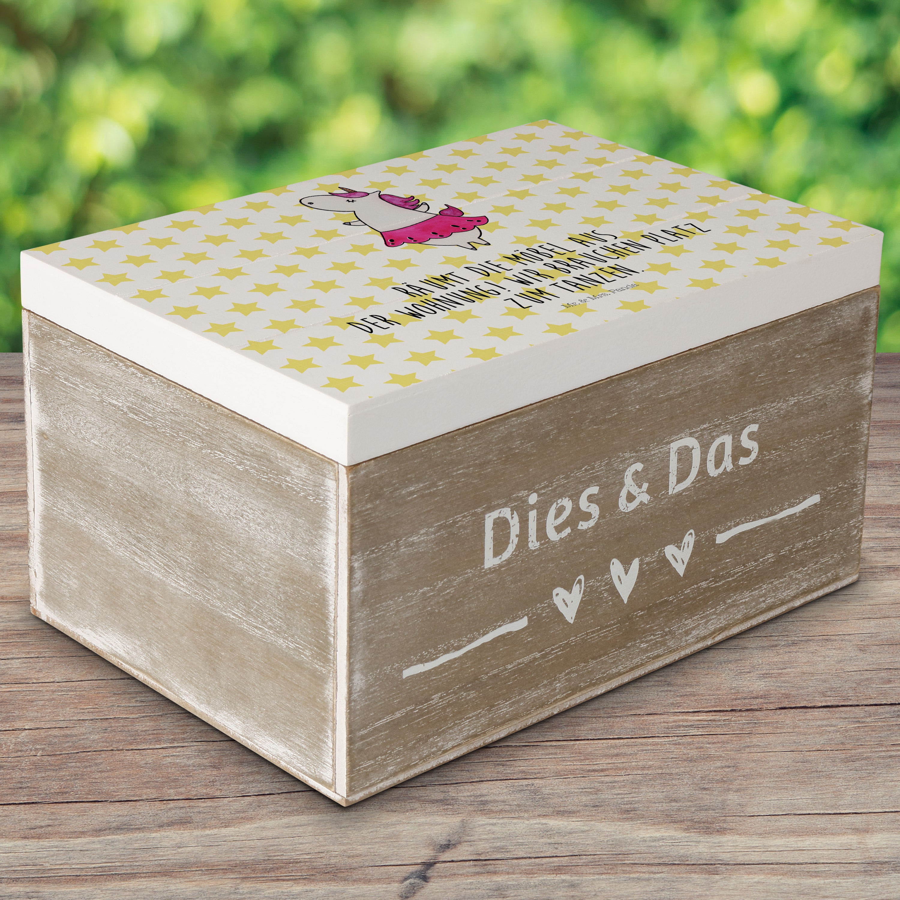 Holzkiste Einhorn Ballerina - 25 x 18 cm - mit Spruch - Weiß