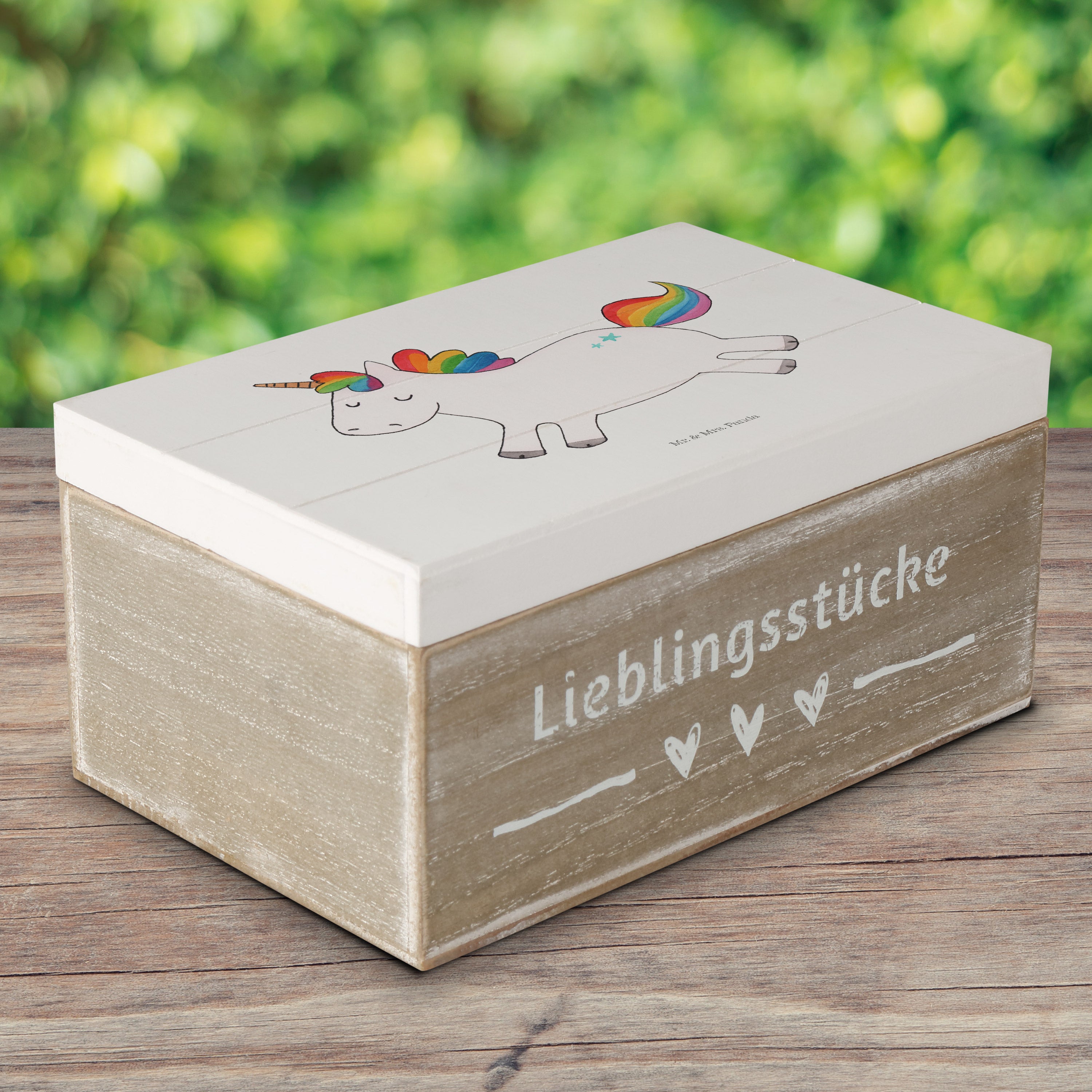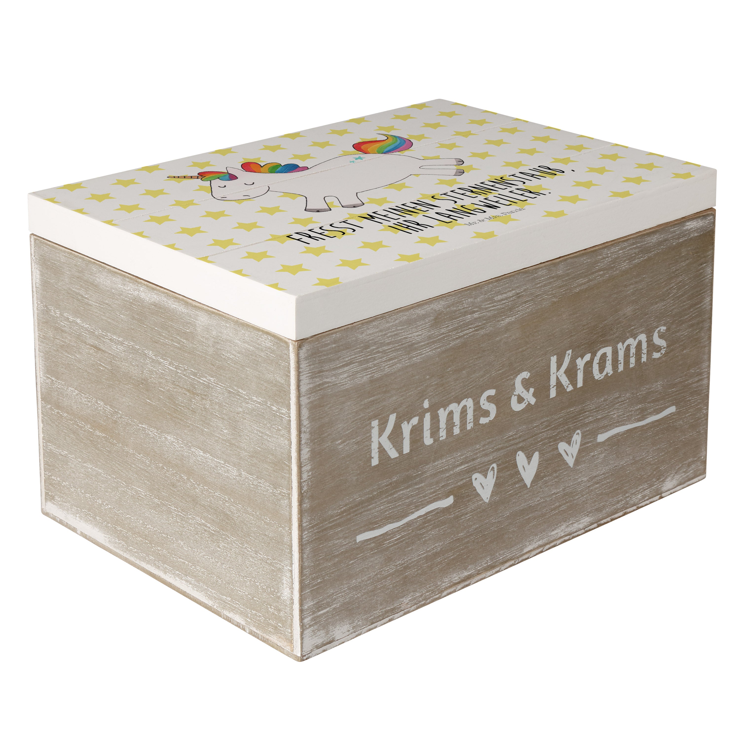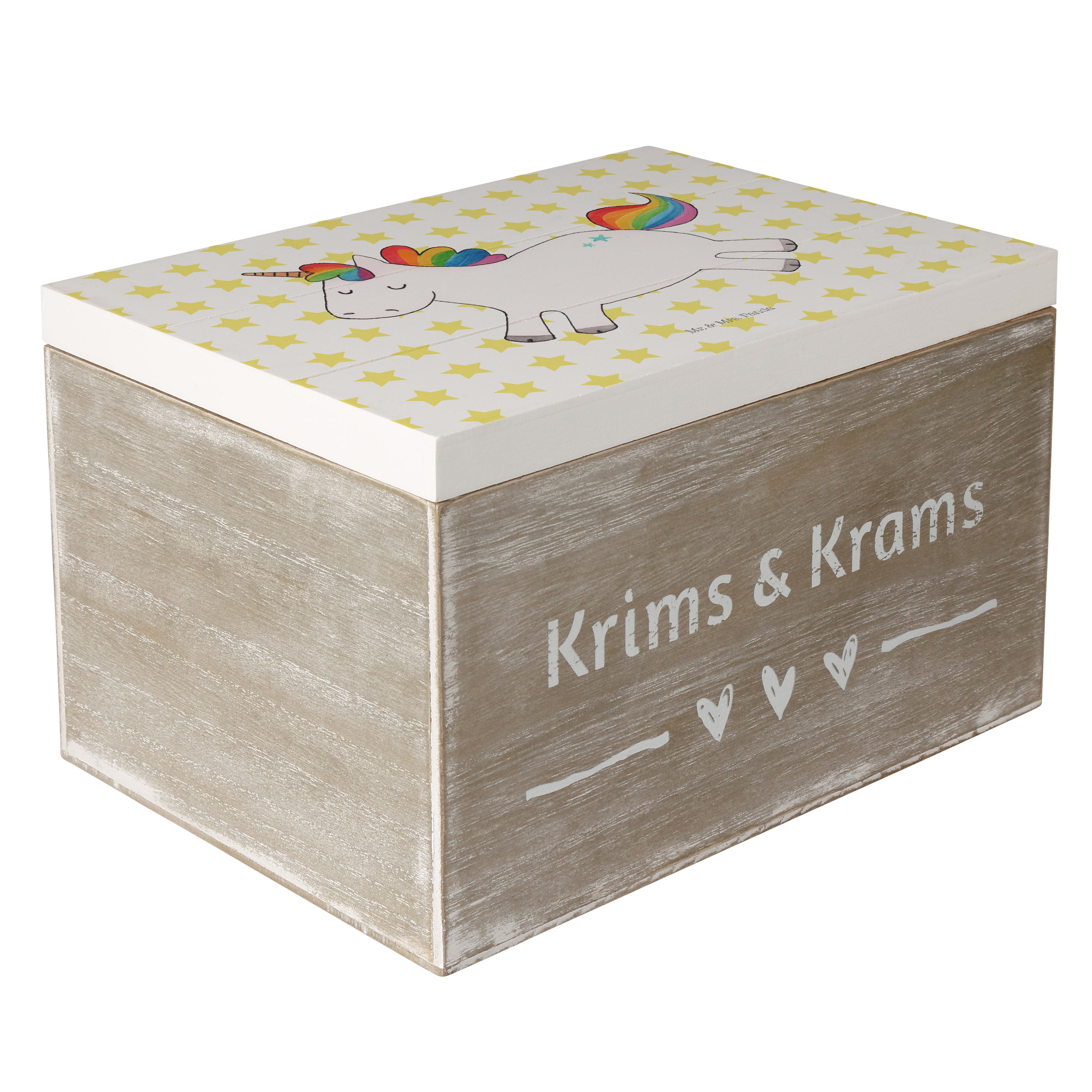 Holzkiste Einhorn Happy - 25 x 18 cm - mit Spruch - Weiß