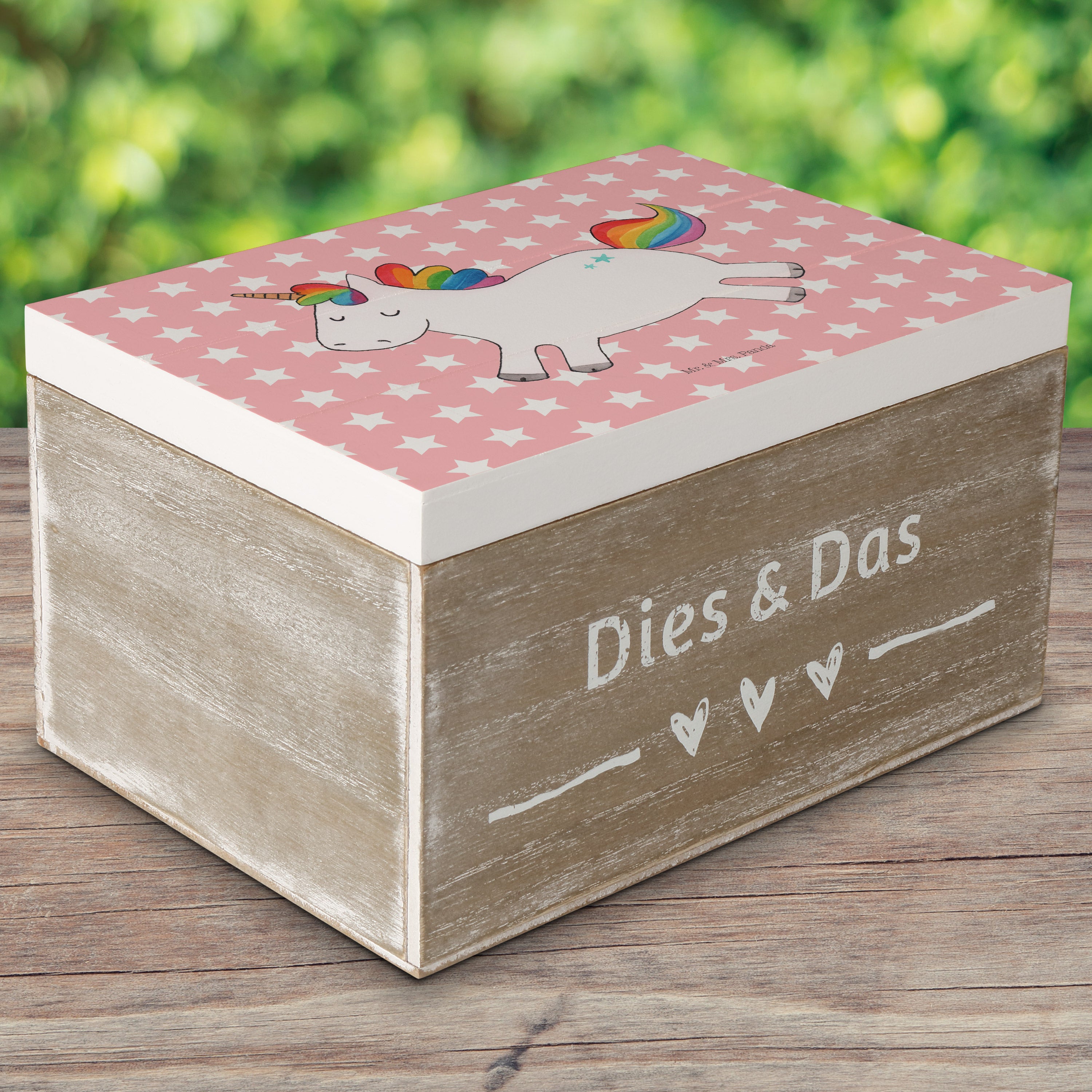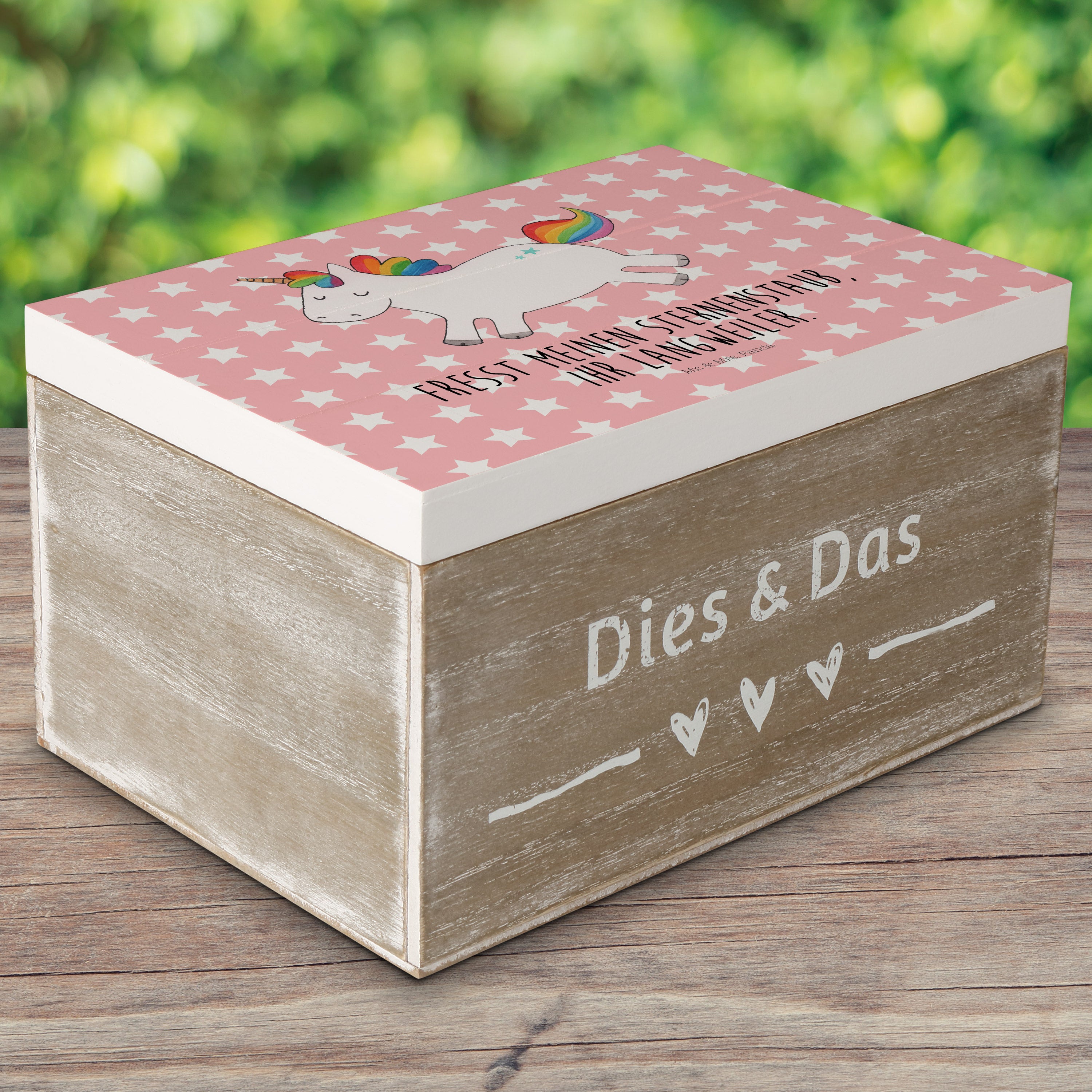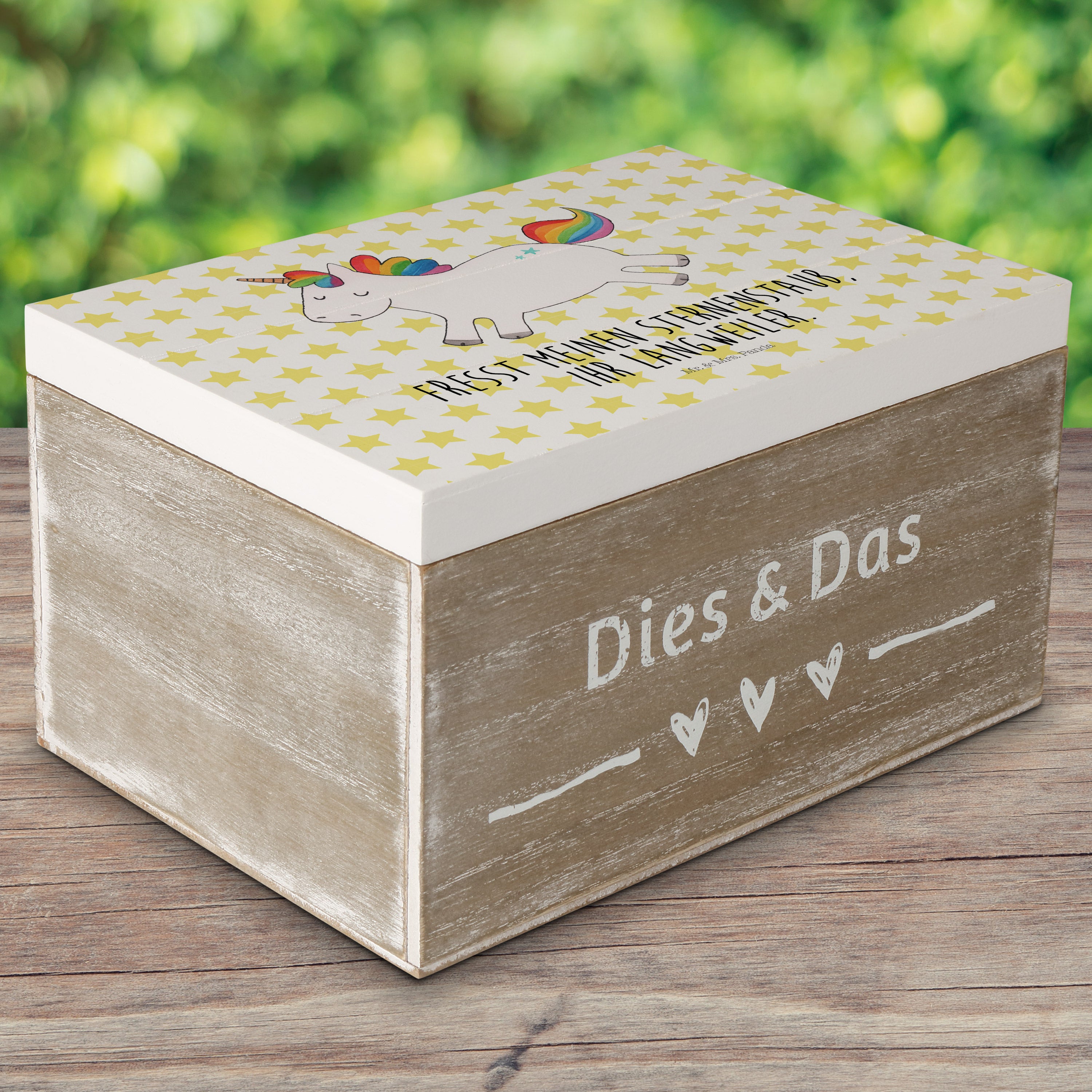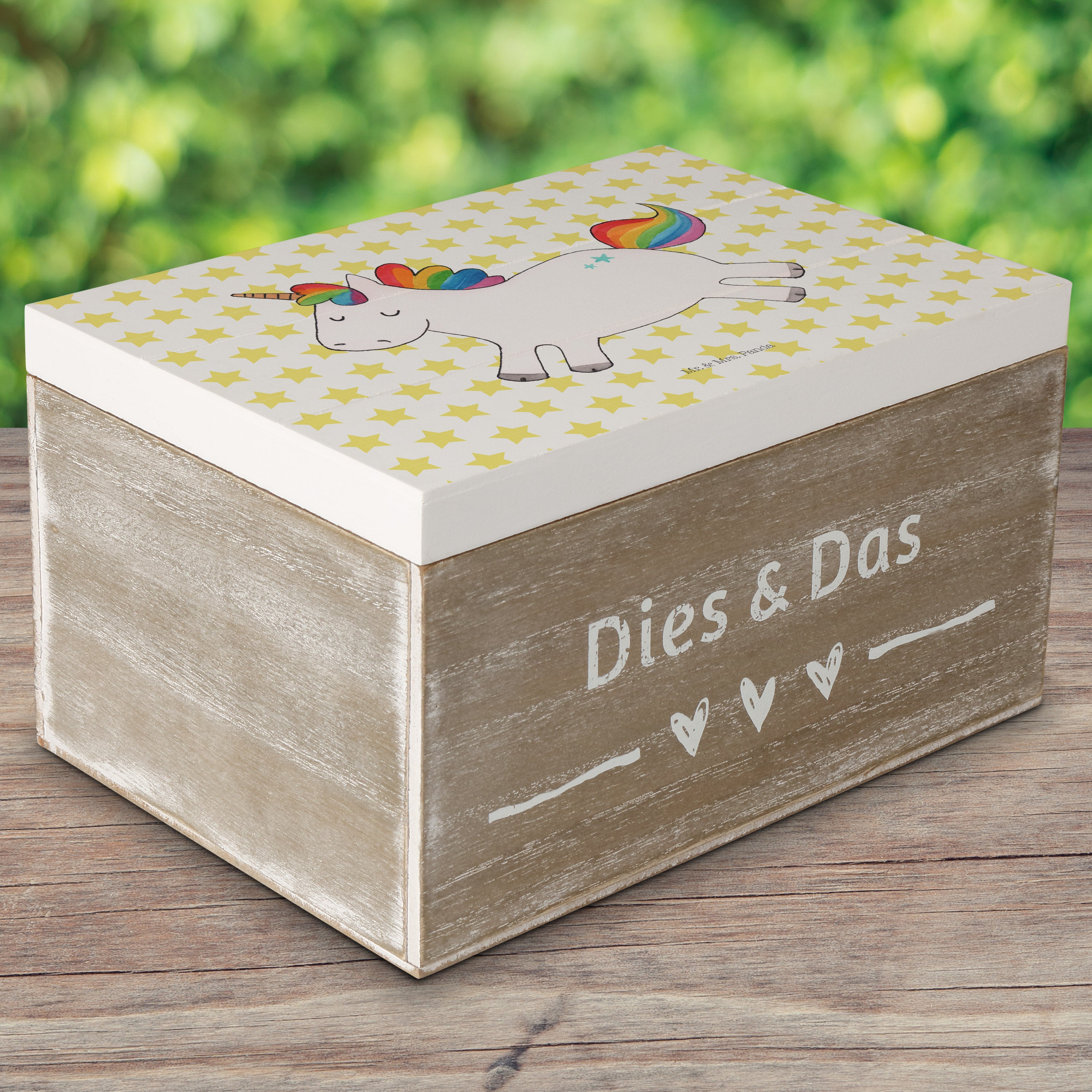 Holzkiste Einhorn Happy - 25 x 18 cm - mit Spruch - Weiß