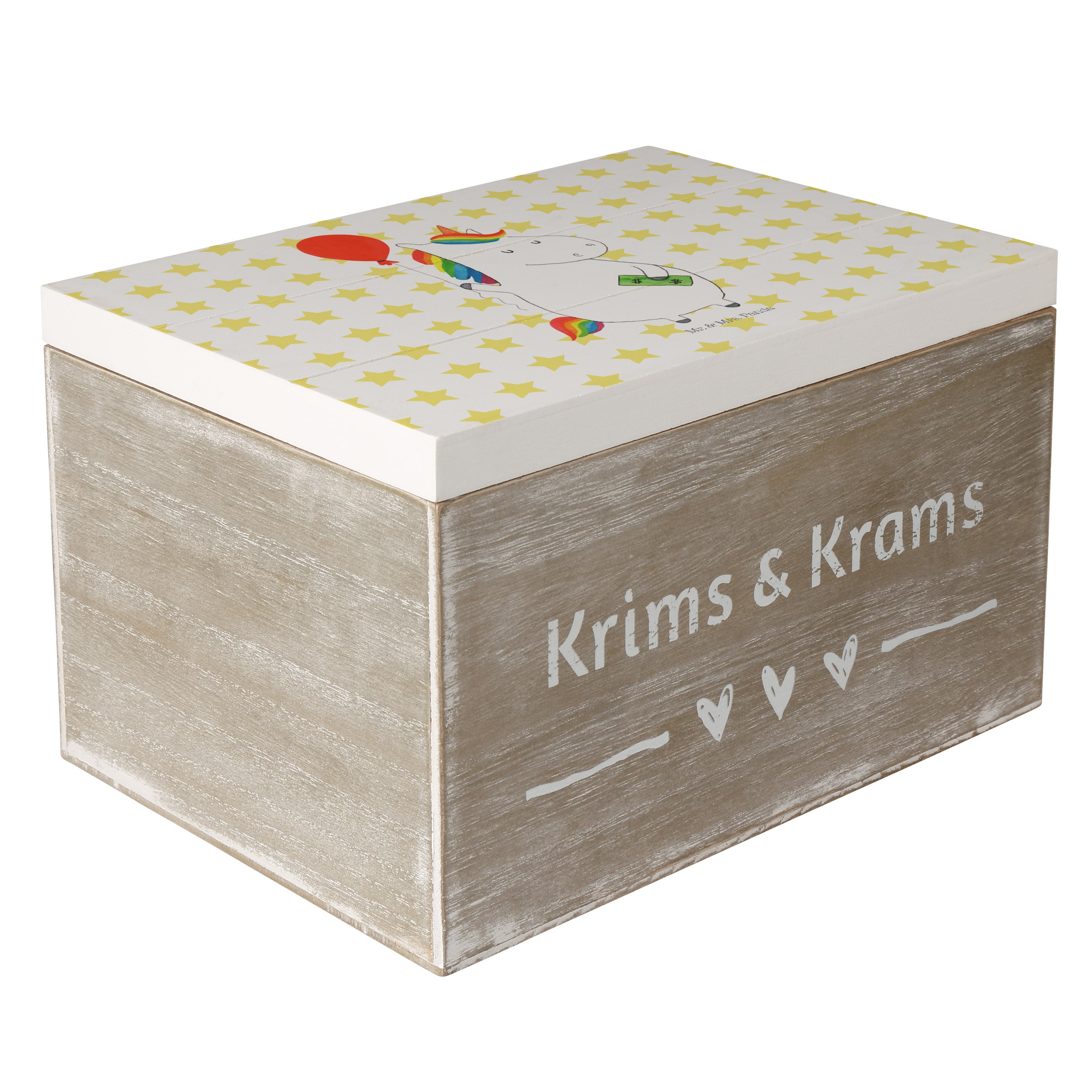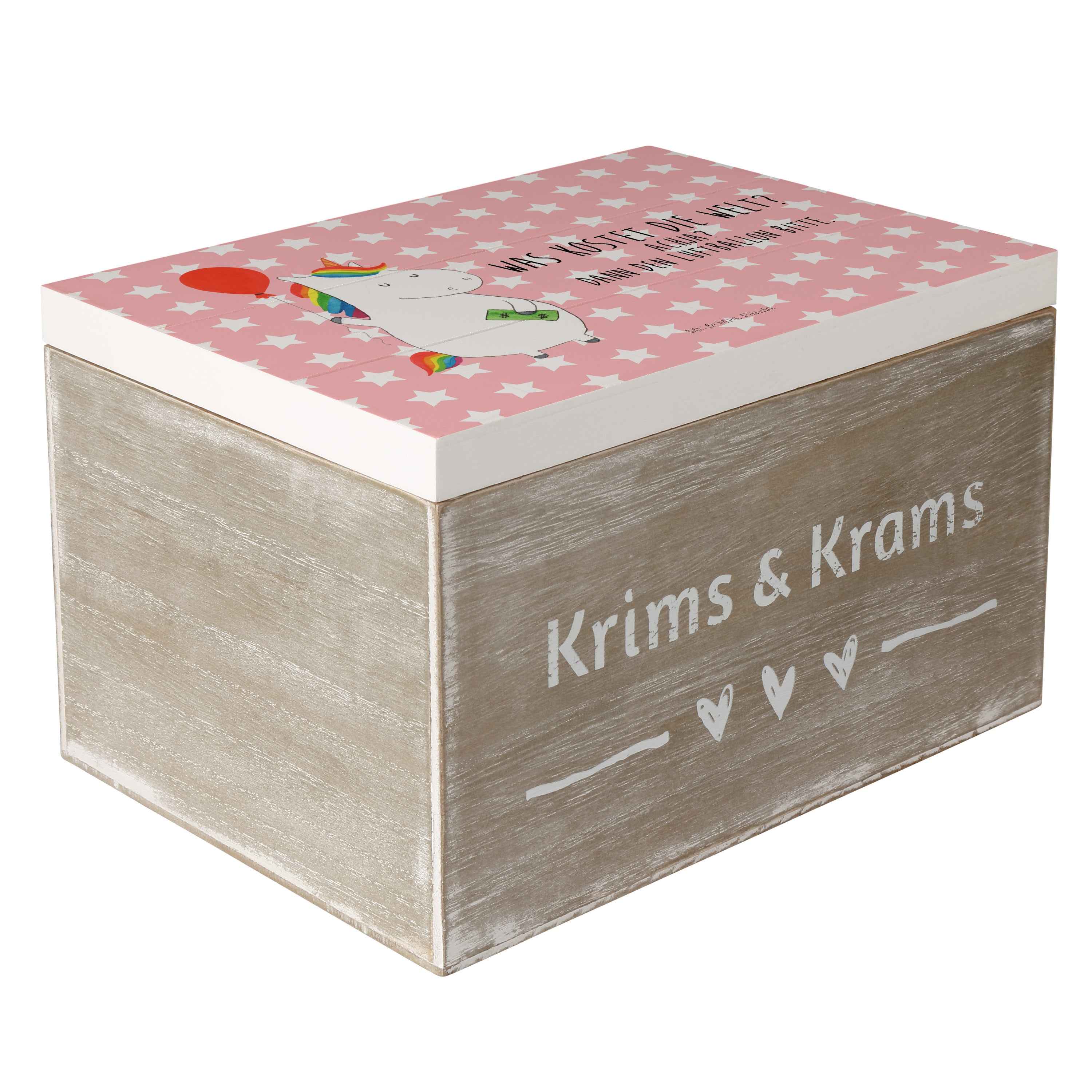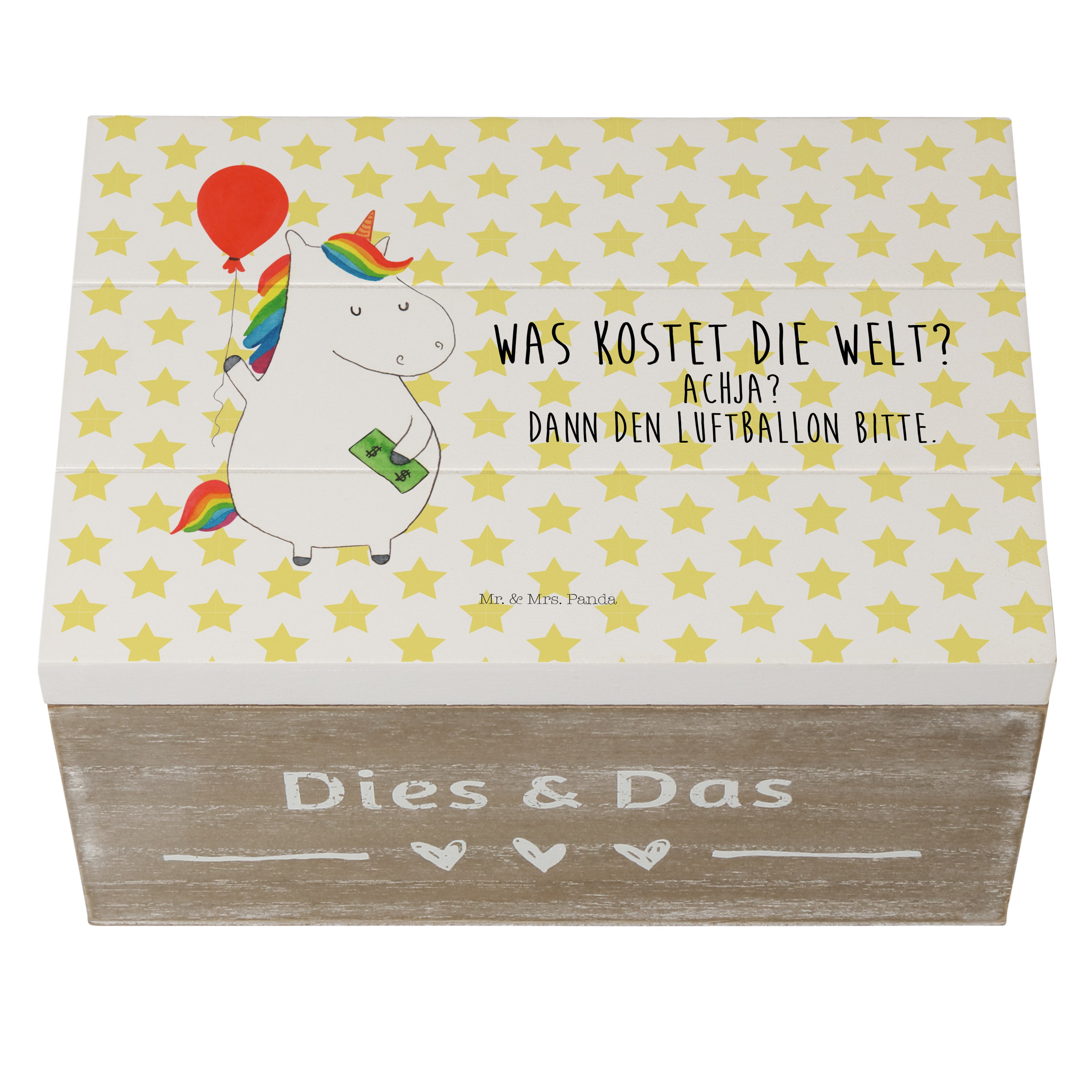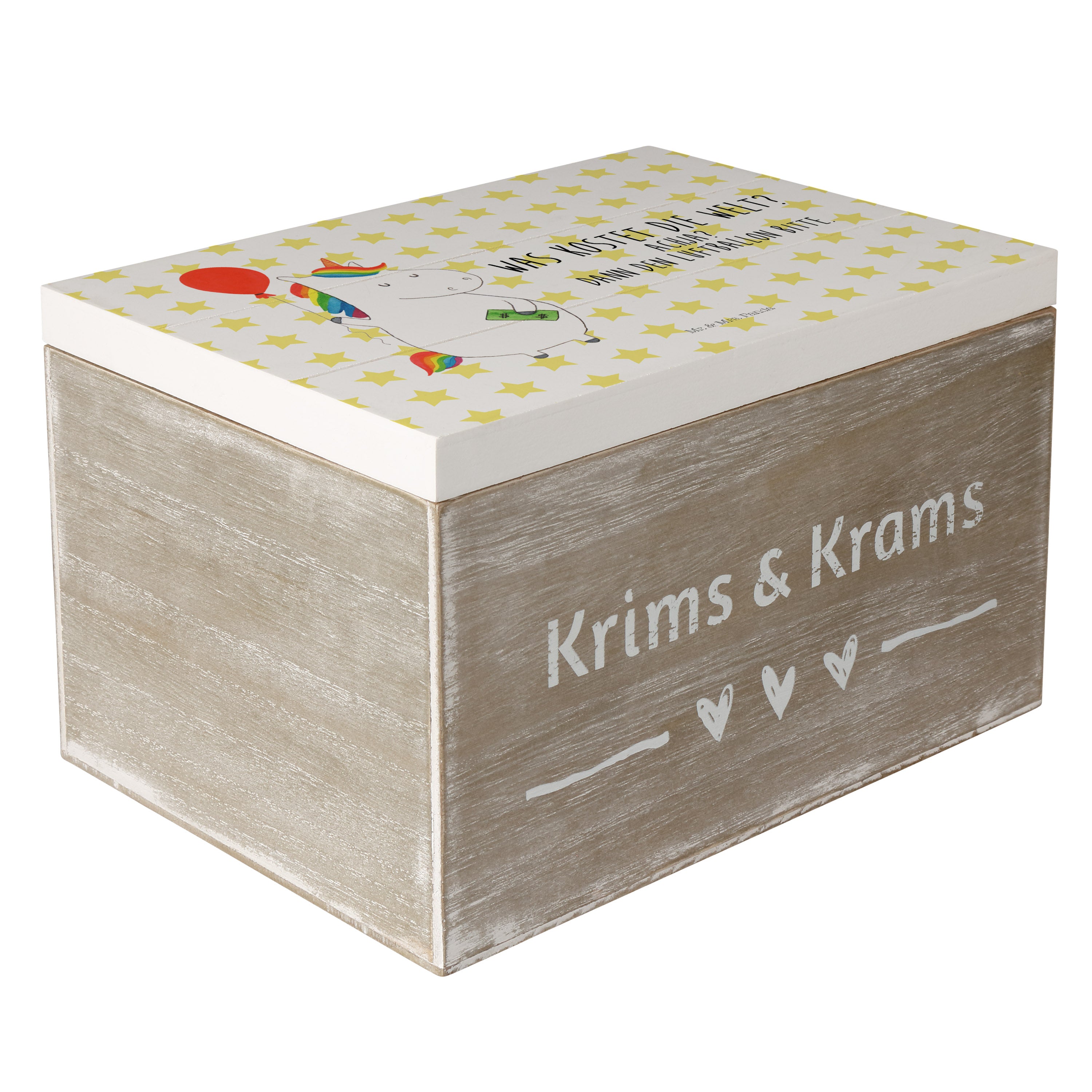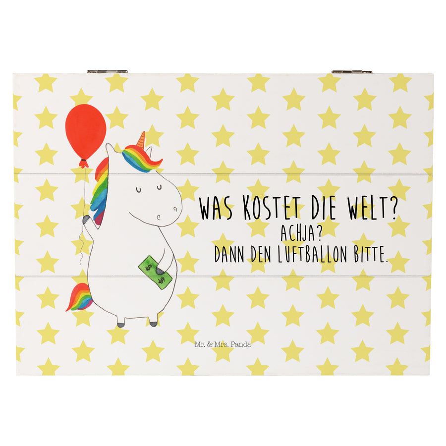 Holzkiste Einhorn Luftballon - 25 x 18 cm - mit Spruch - Weiß