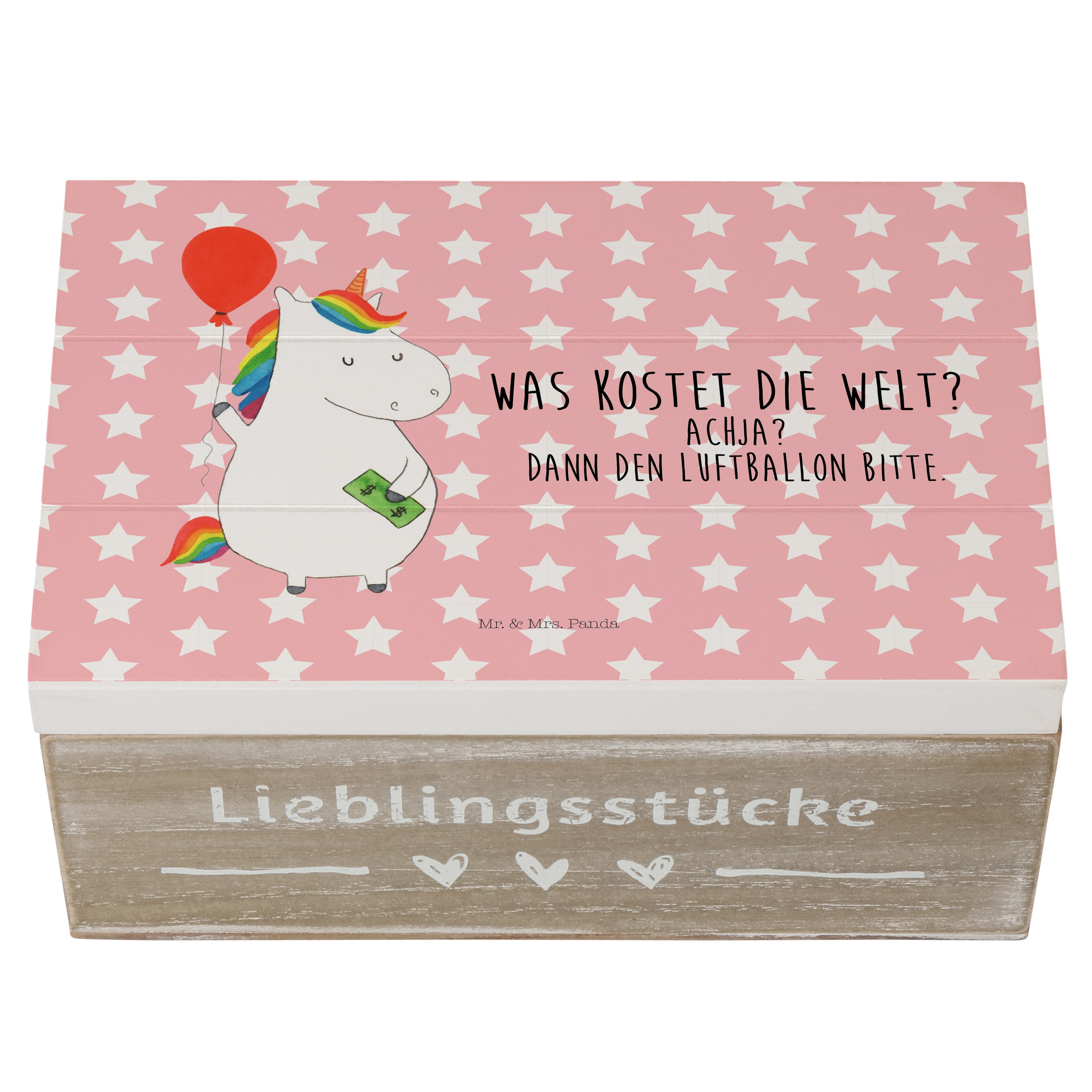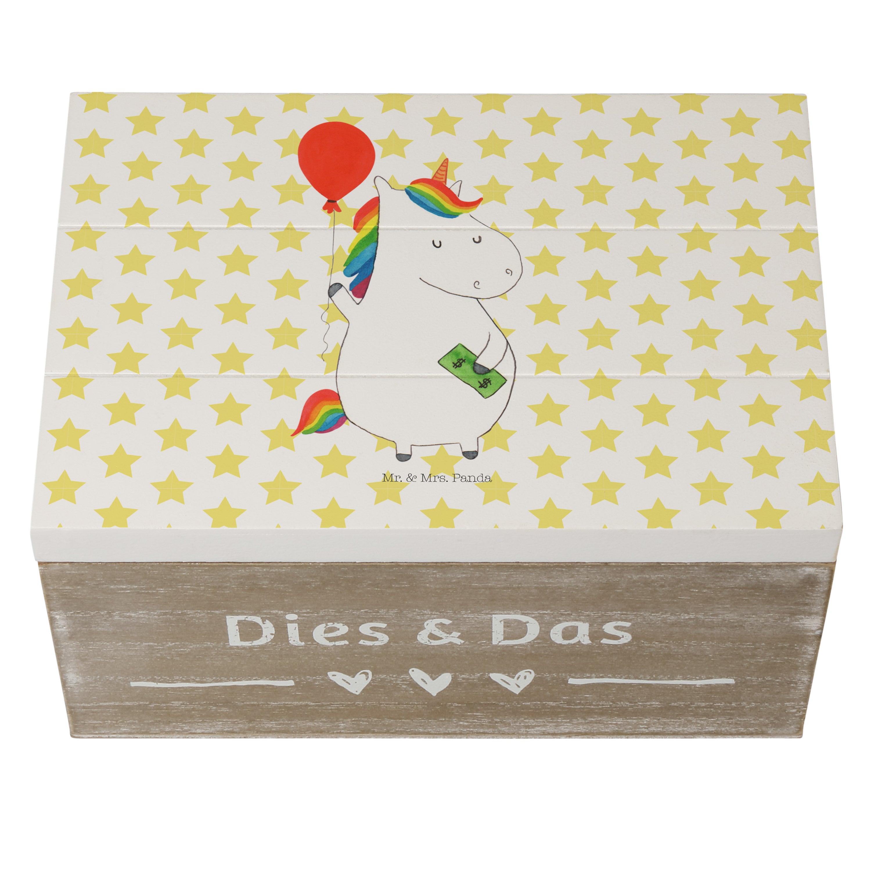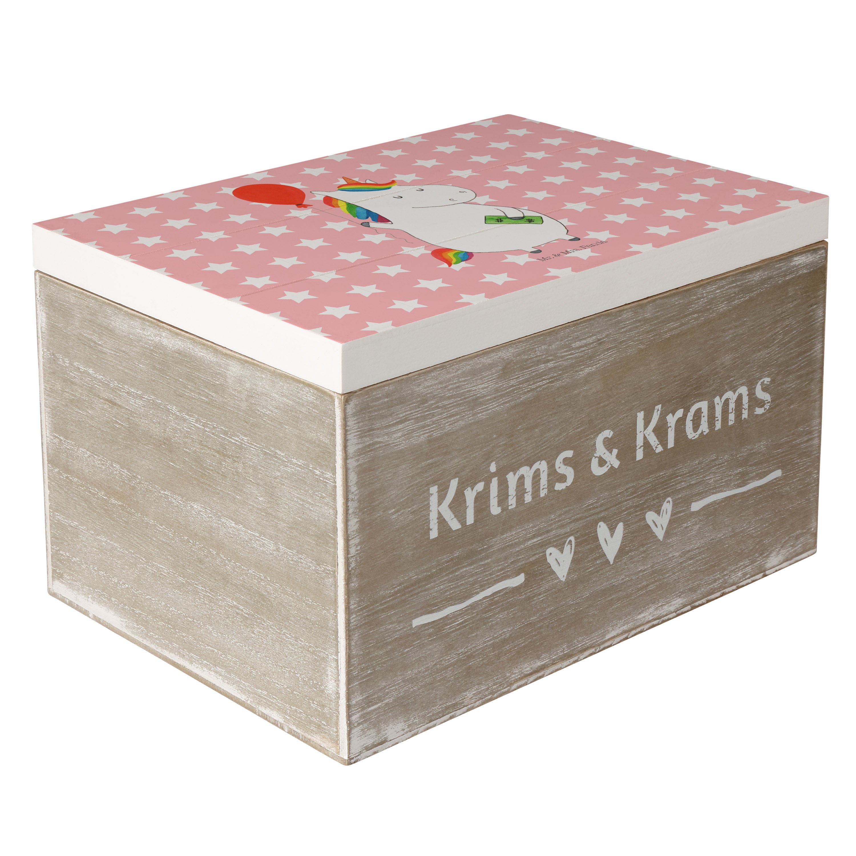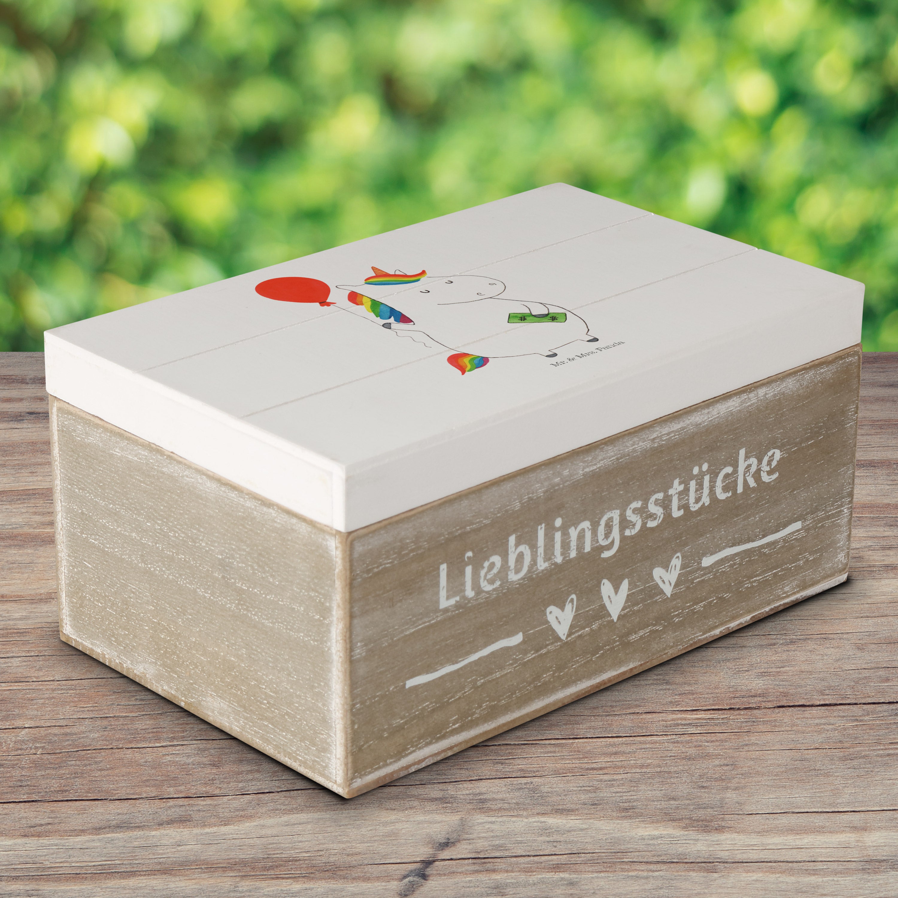 Holzkiste Einhorn Luftballon - 25 x 18 cm - mit Spruch - Weiß