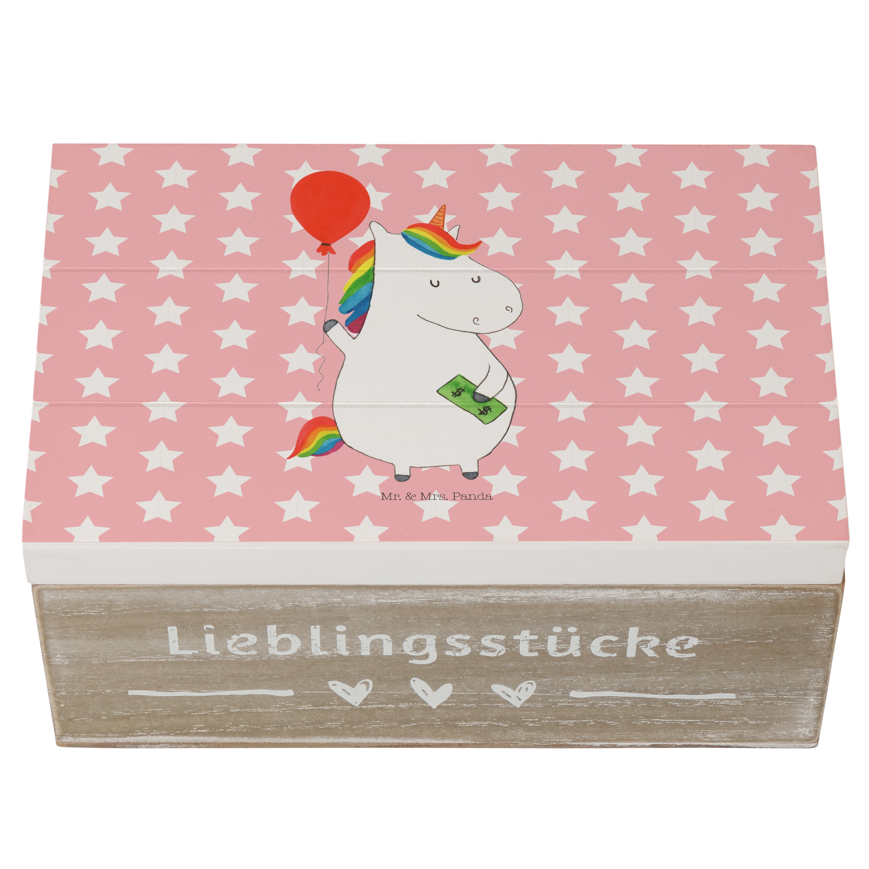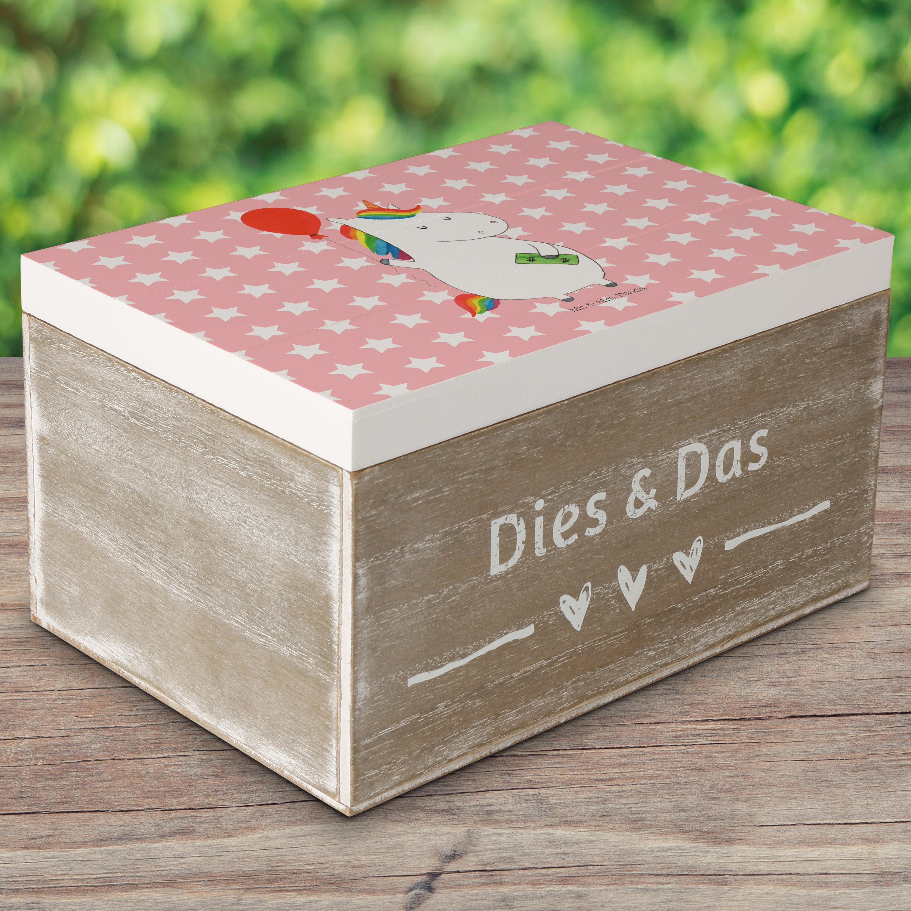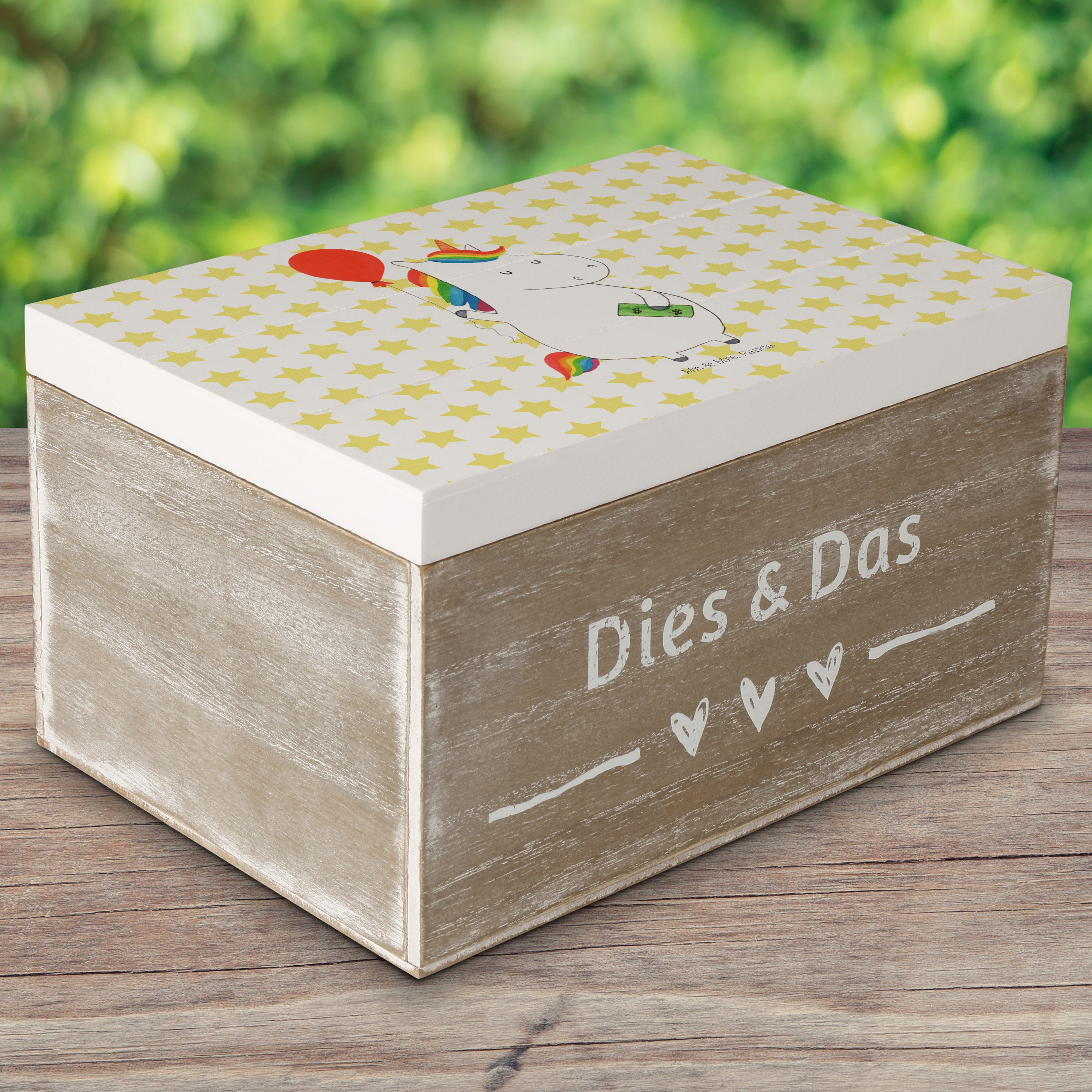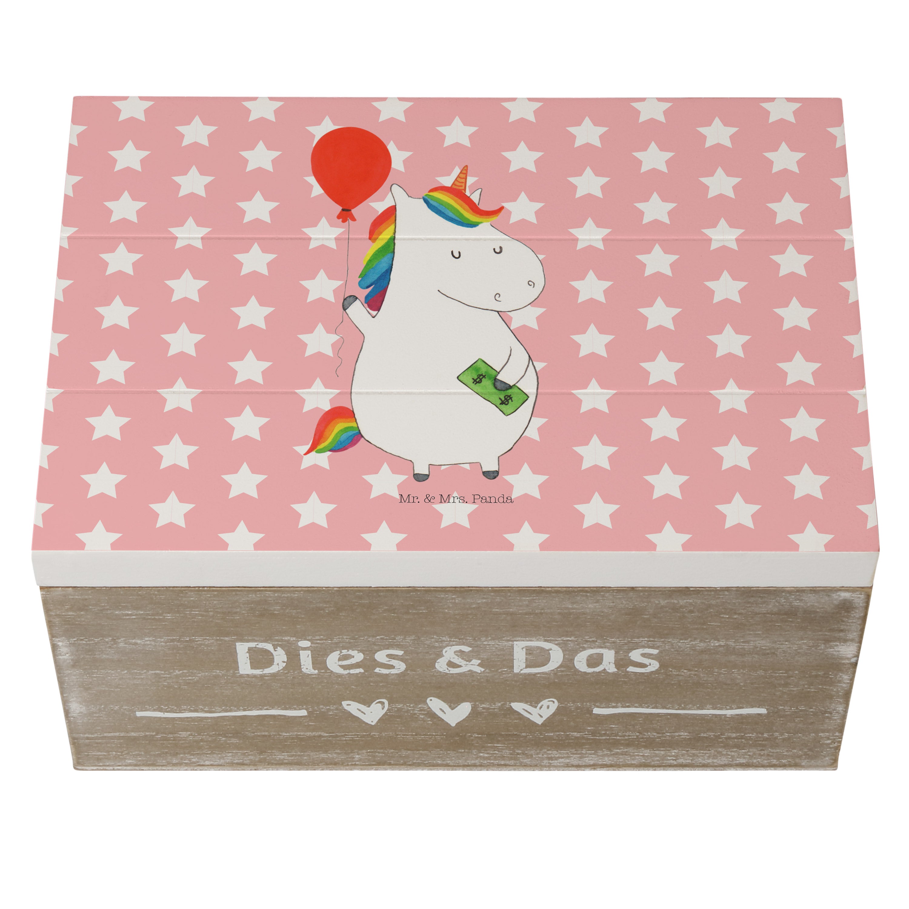 Holzkiste Einhorn Luftballon - 25 x 18 cm - mit Spruch - Weiß