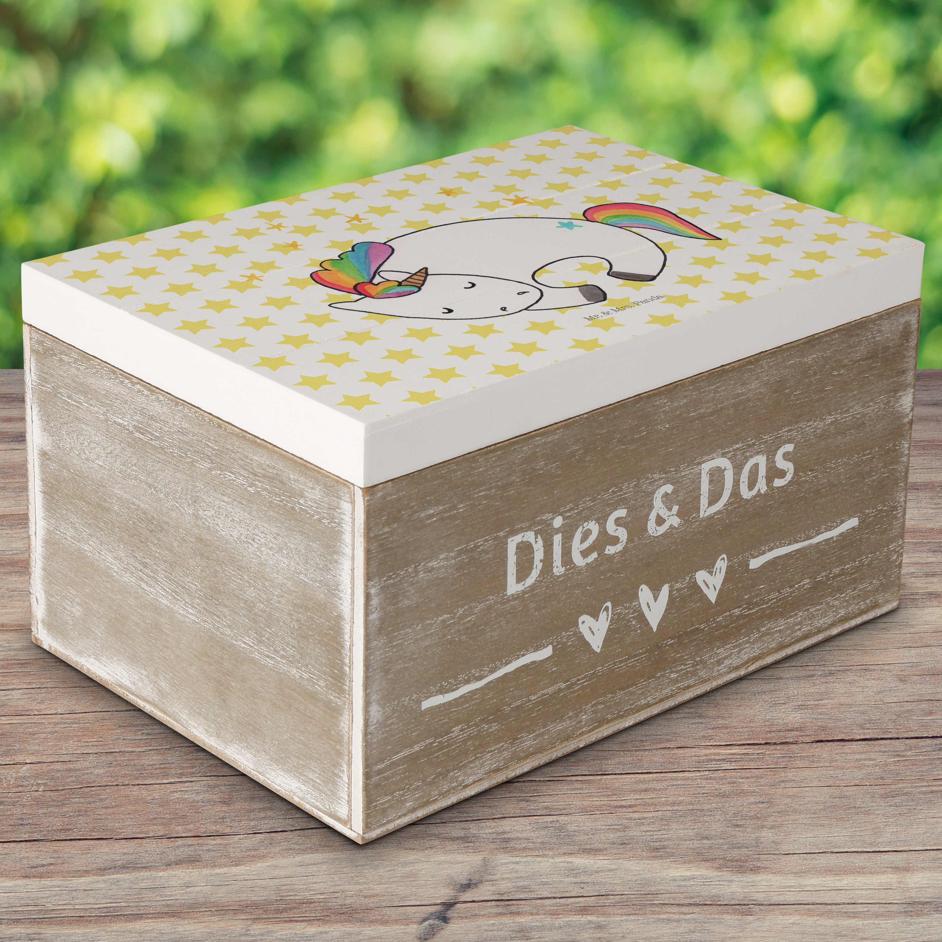 Holzkiste Einhorn Nacht - 25 x 18 cm - mit Spruch - Weiß