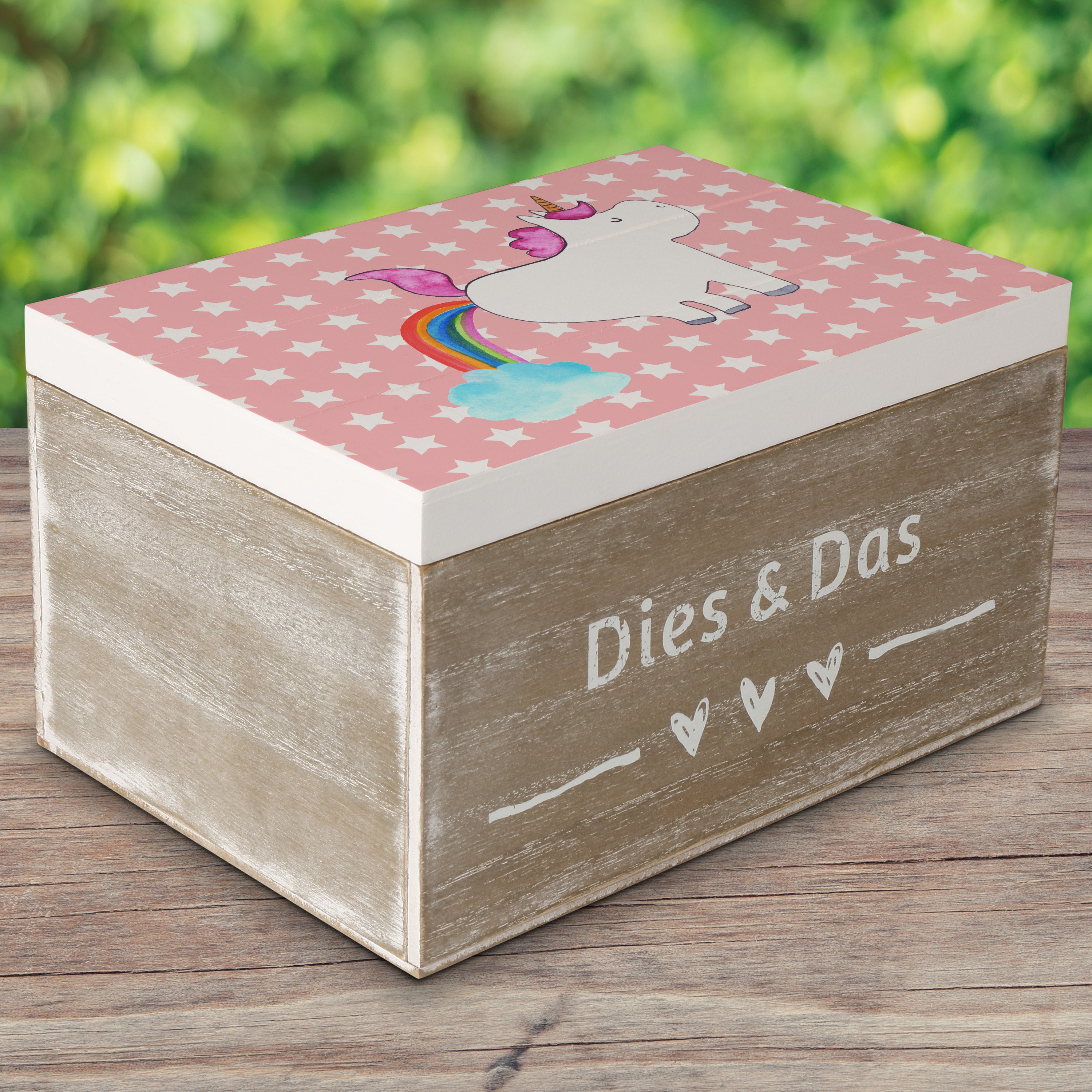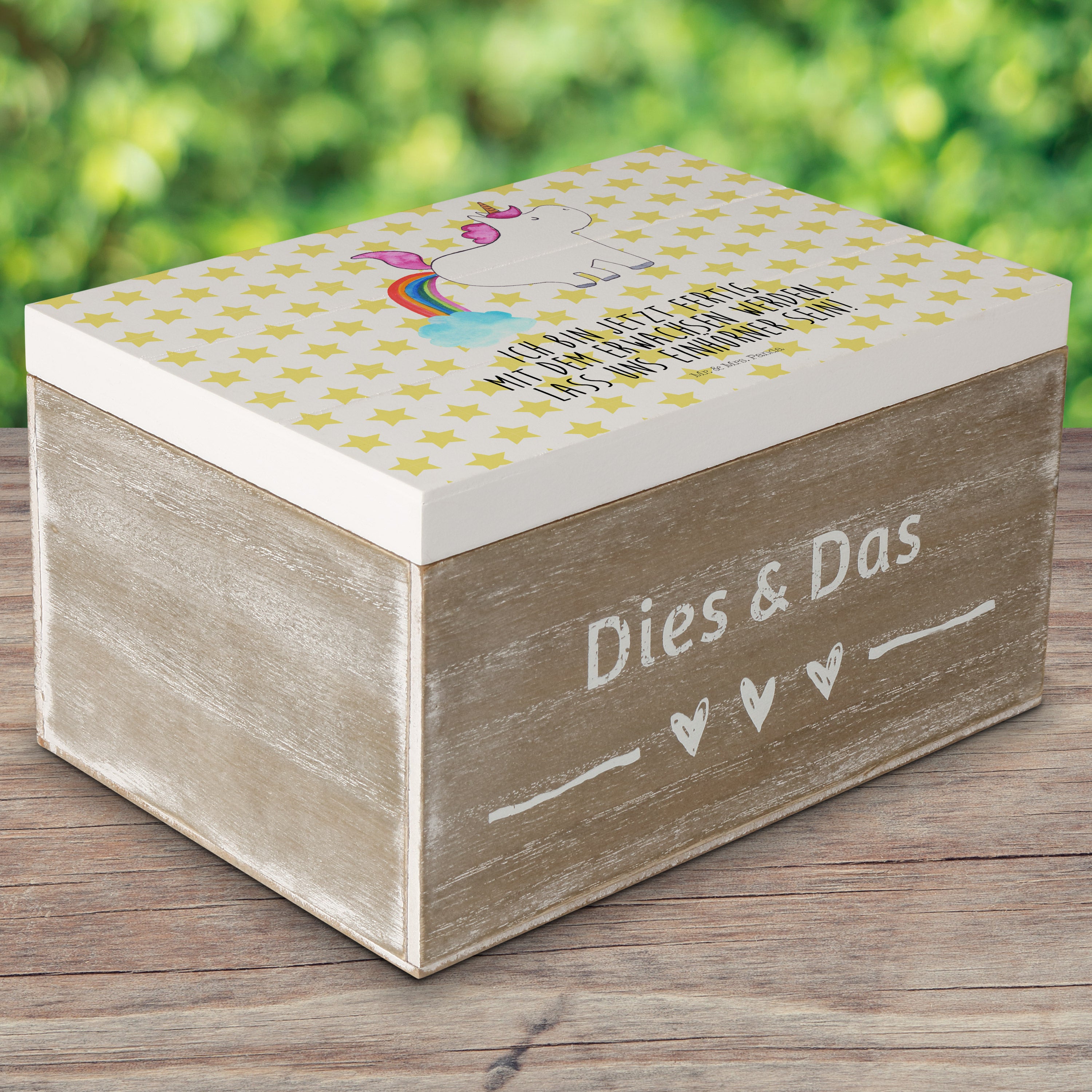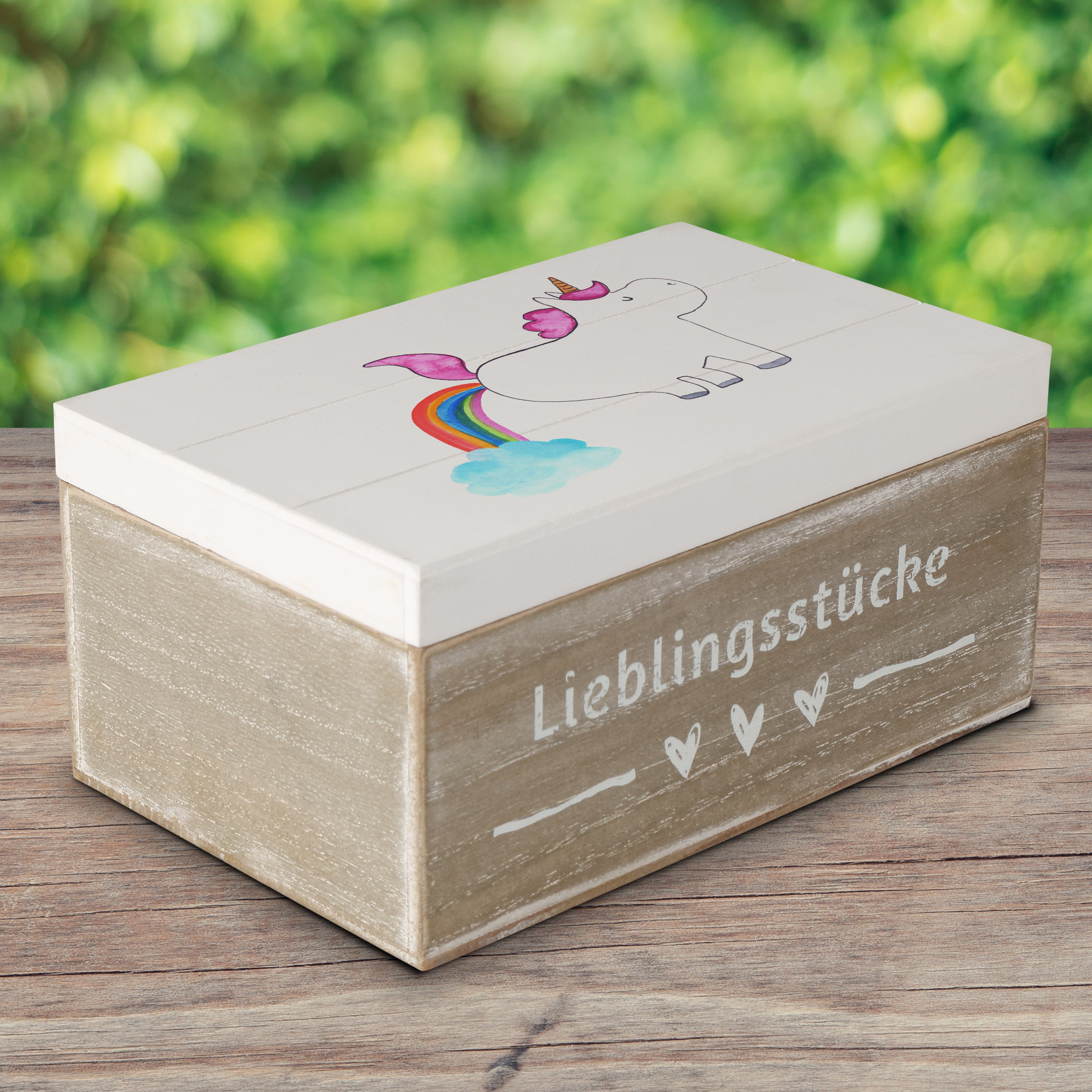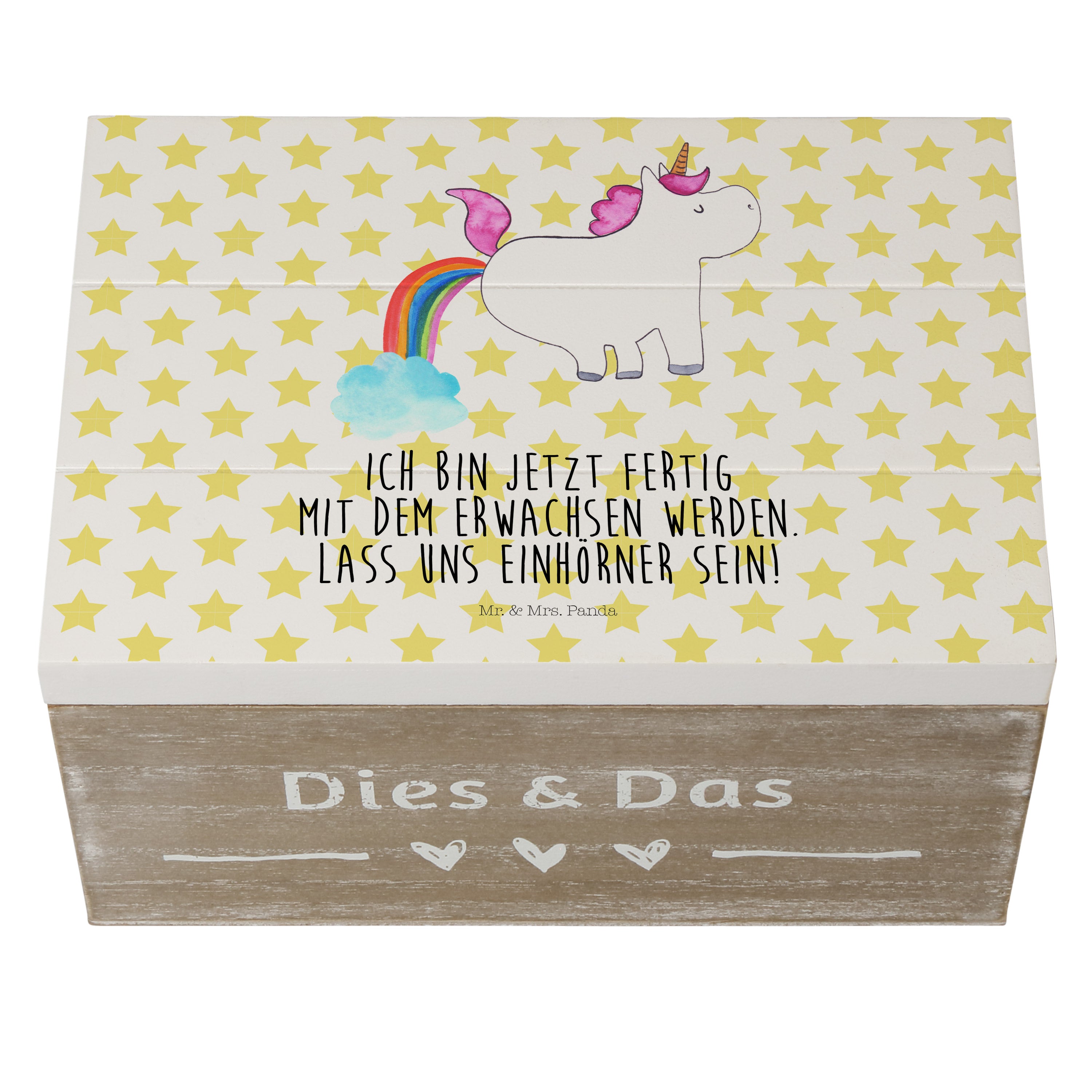 Holzkiste Einhorn Pupsend - 25 x 18 cm - mit Spruch - Weiß
