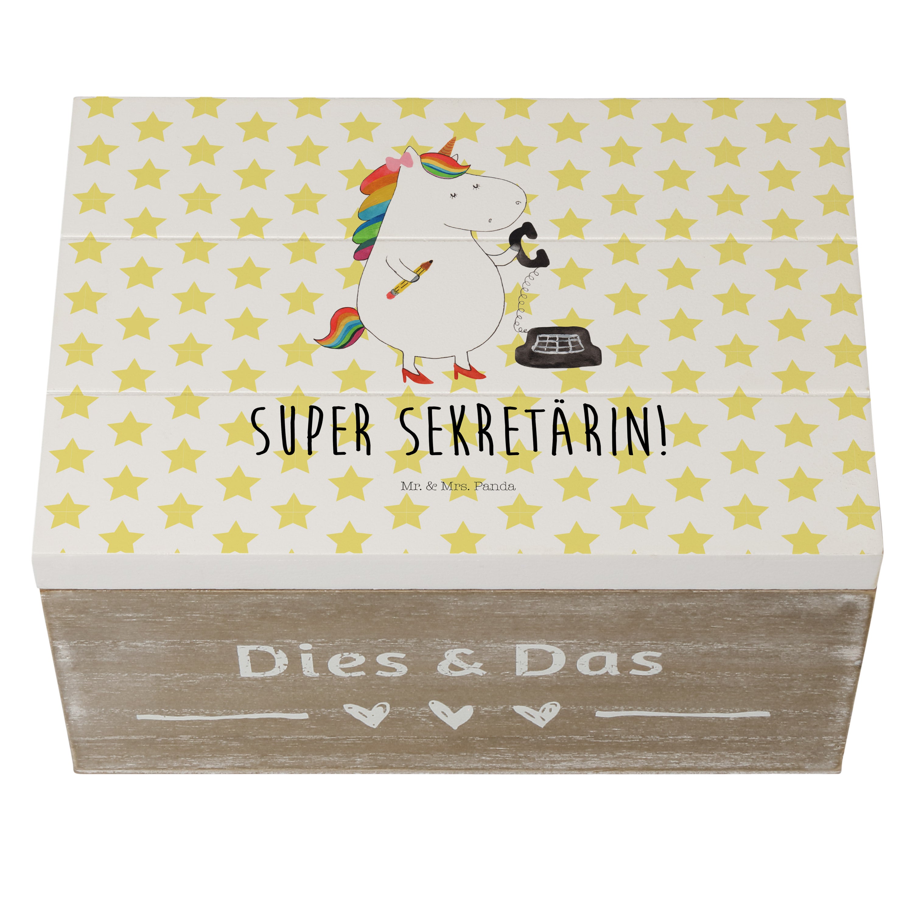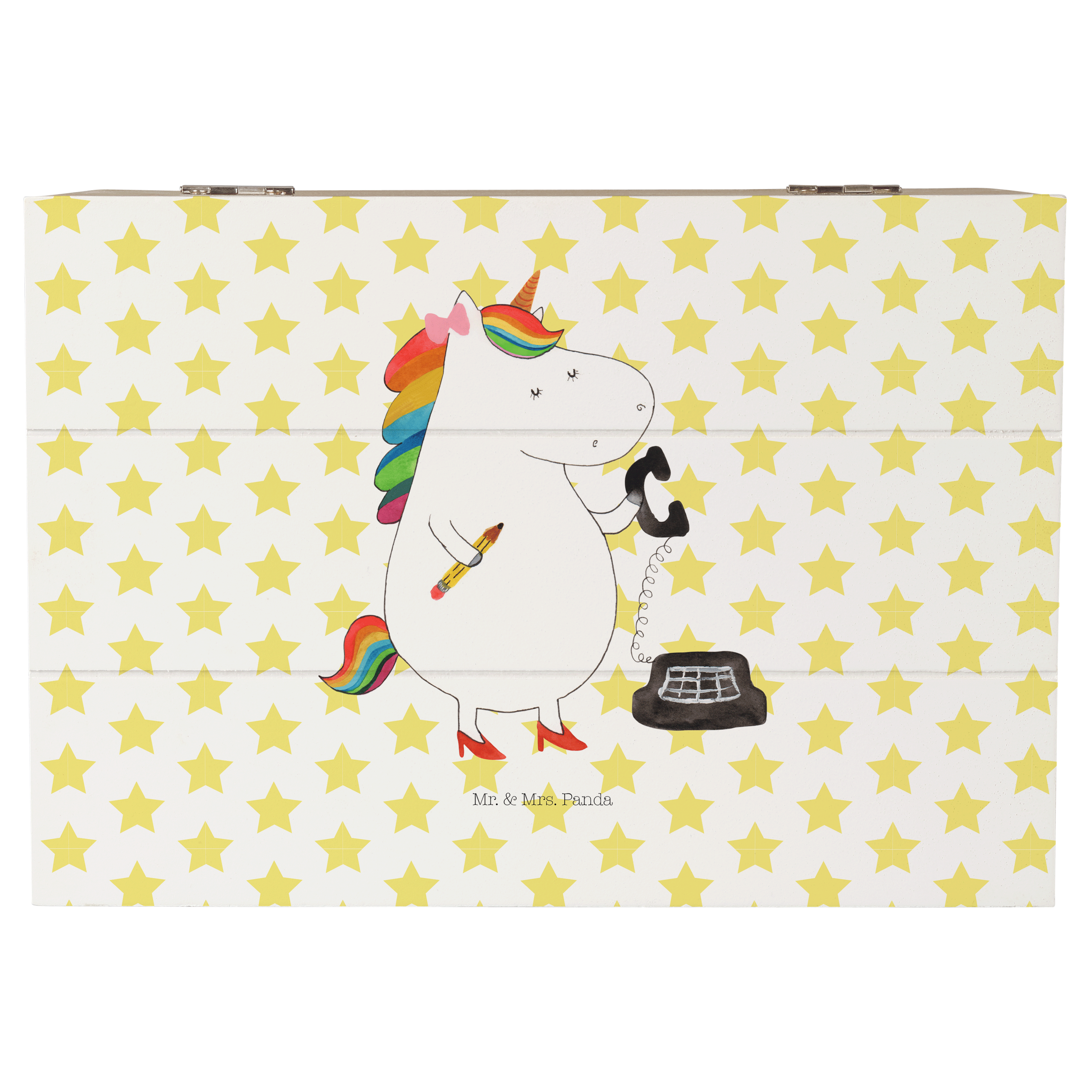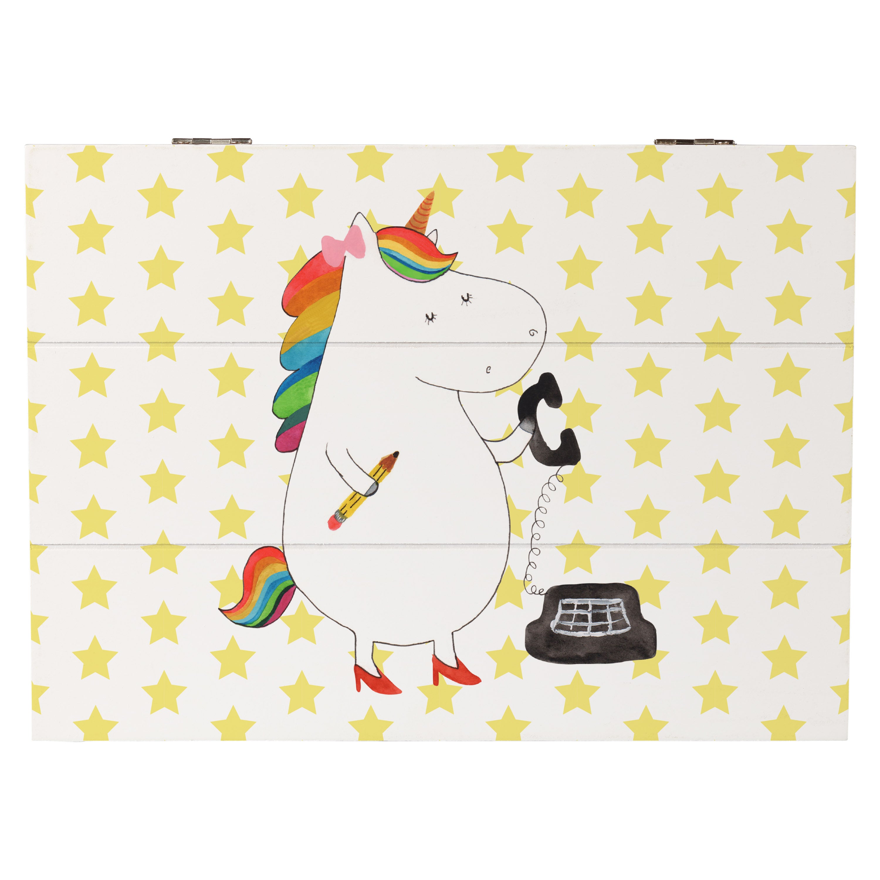 Holzkiste Einhorn Sekretärin - 25 x 18 cm - mit Spruch - Weiß
