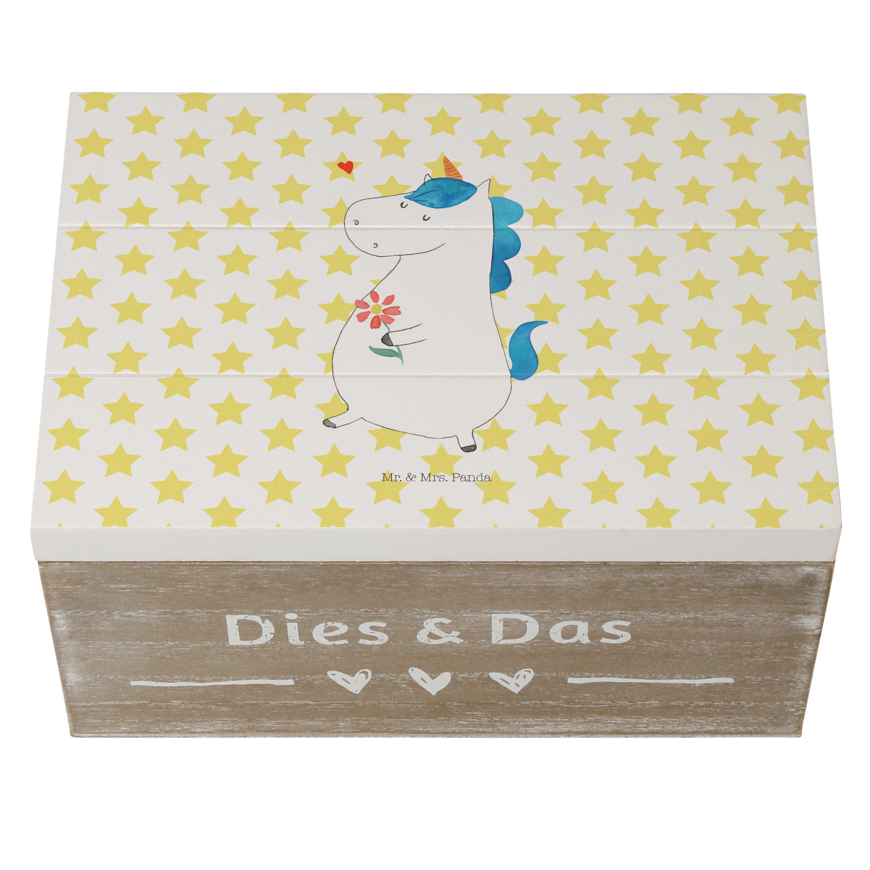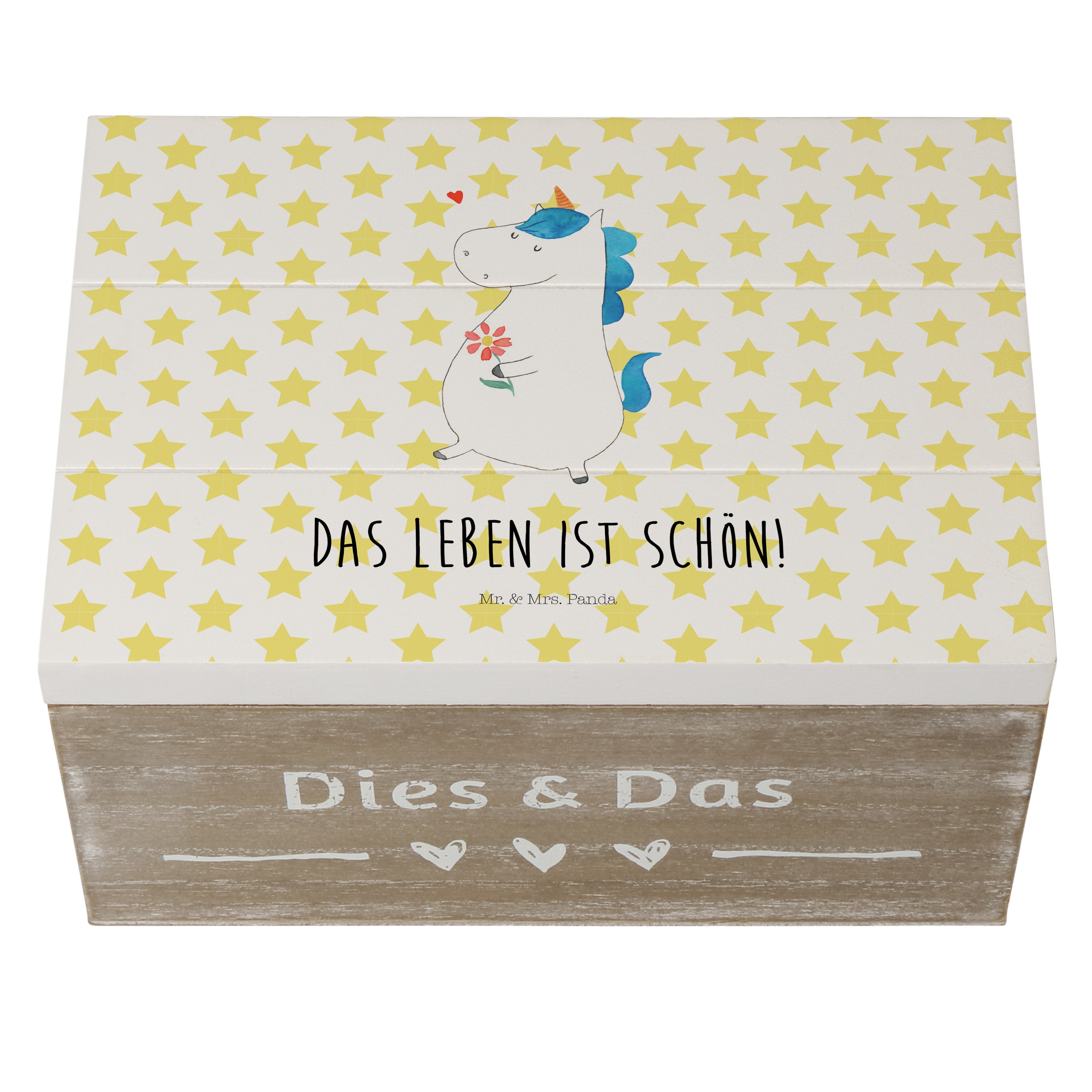 Holzkiste Einhorn Spaziergang - 25 x 18 cm - mit Spruch - Weiß
