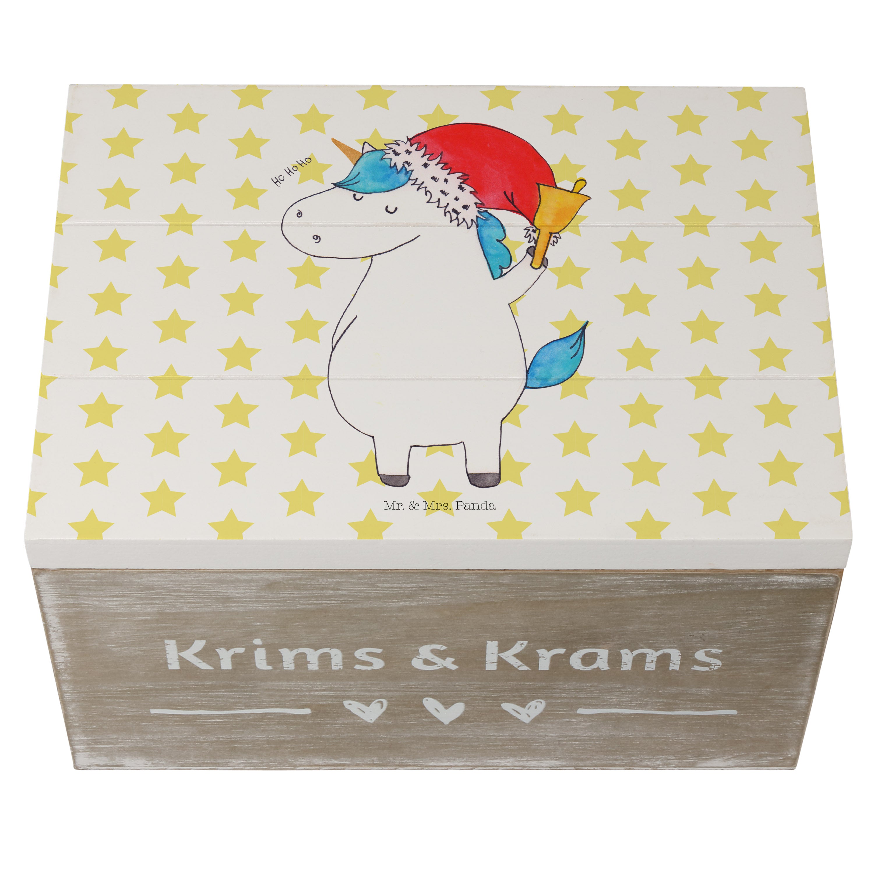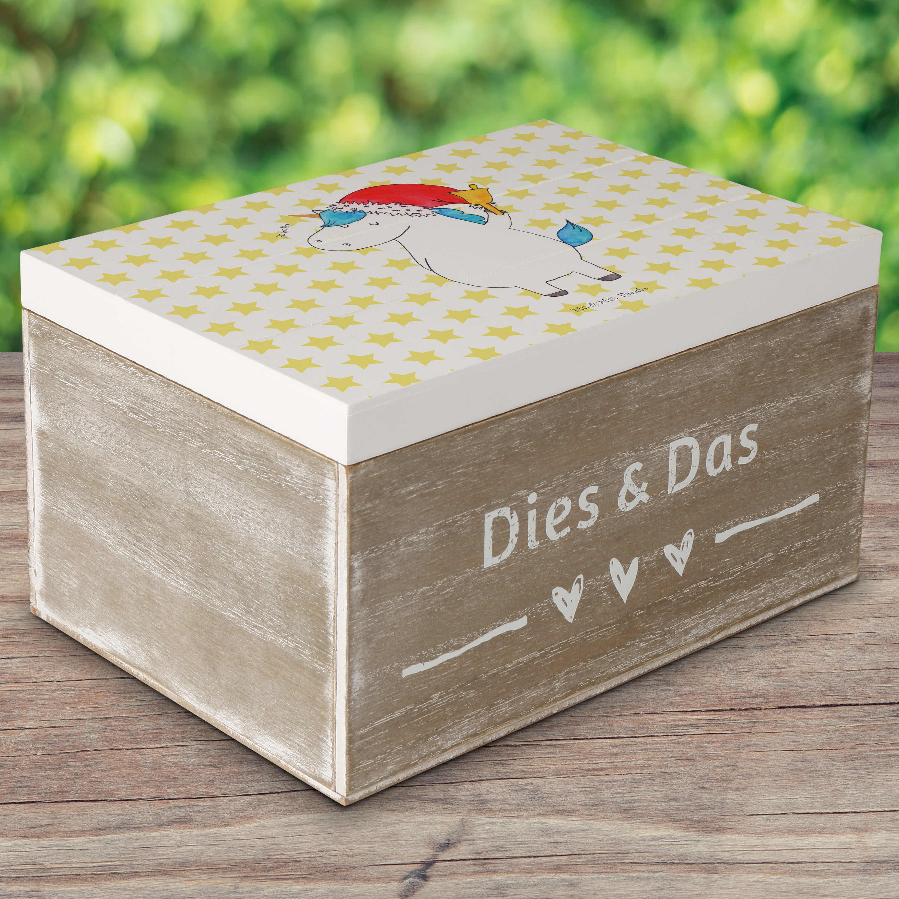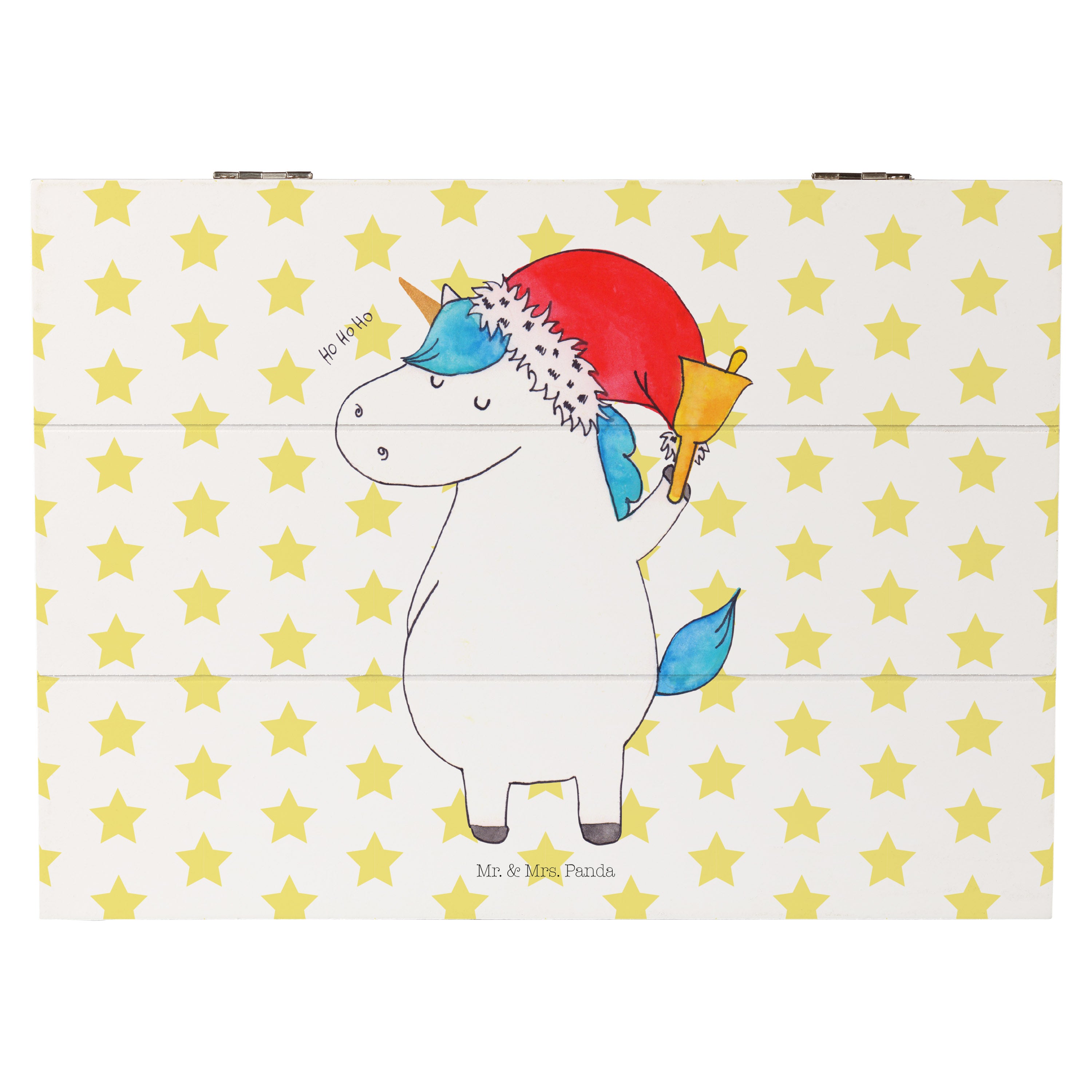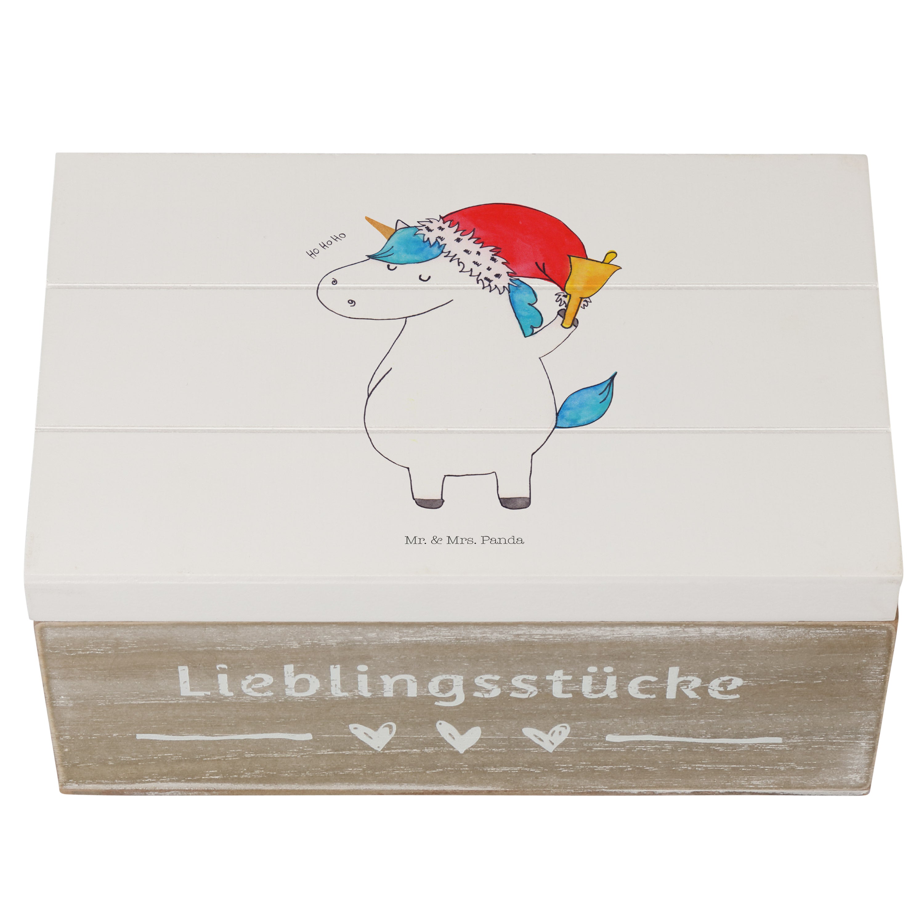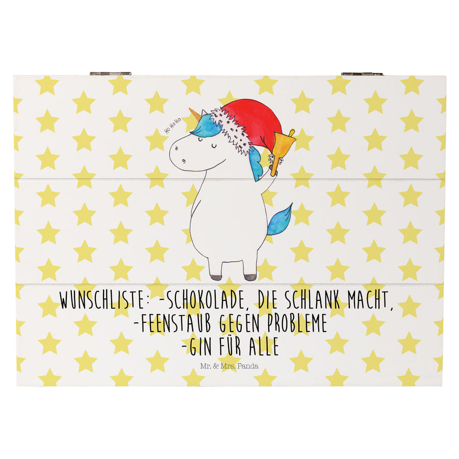 Holzkiste Einhorn Weihnachtsmann - 25 x 18 cm - mit Spruch - Weiß