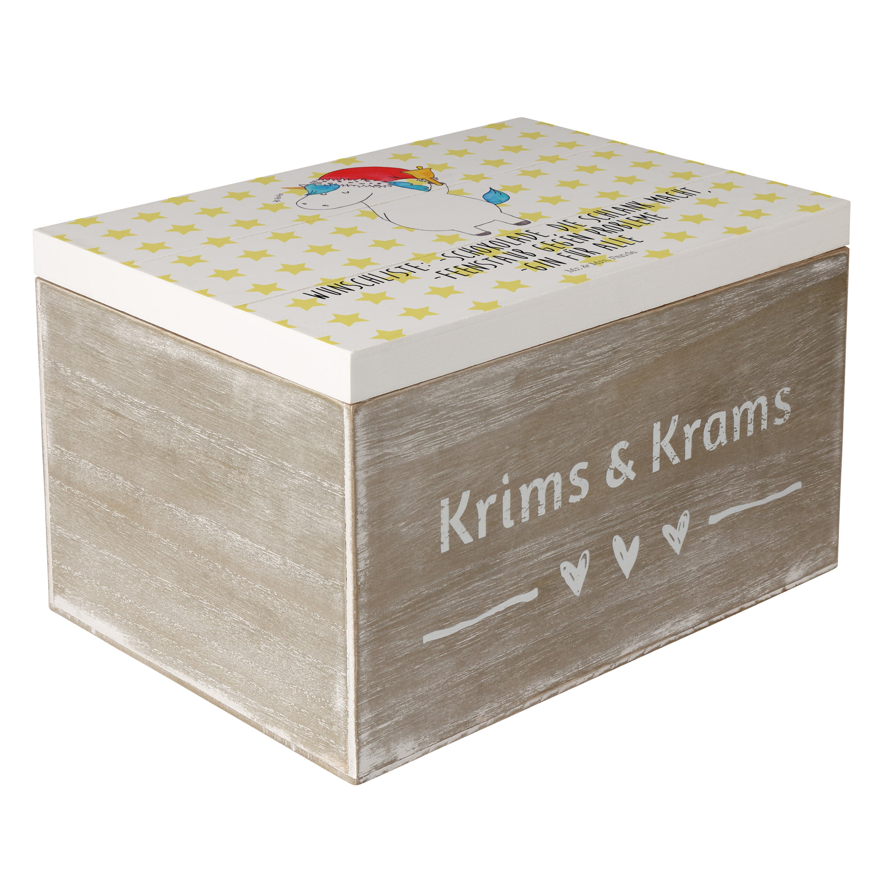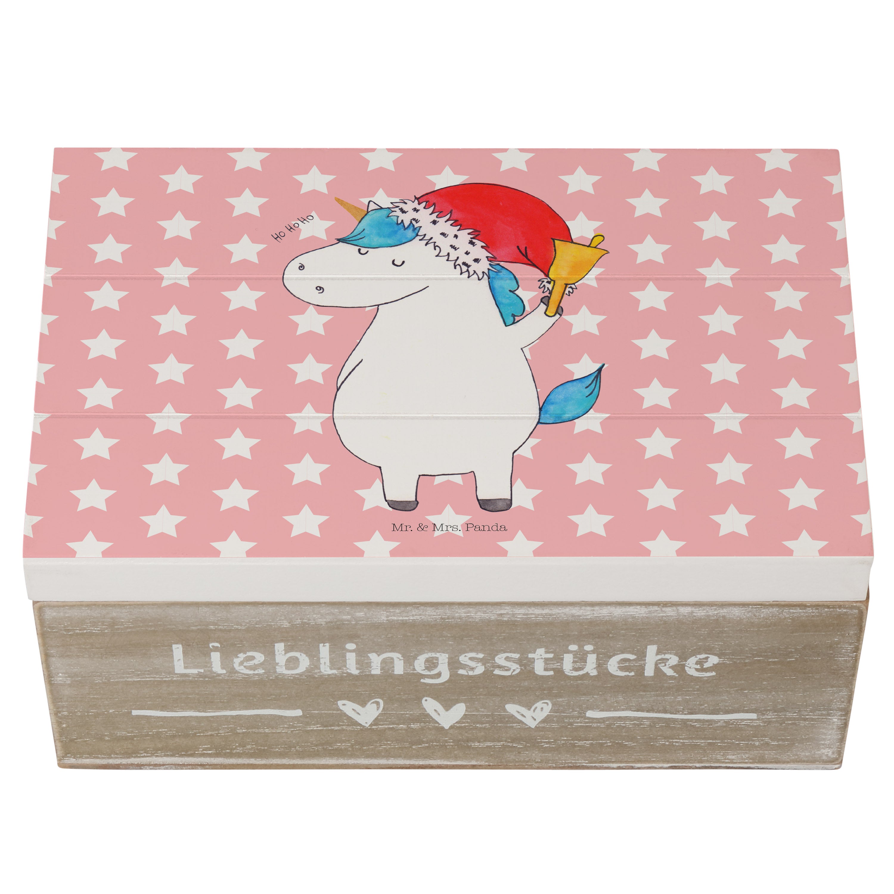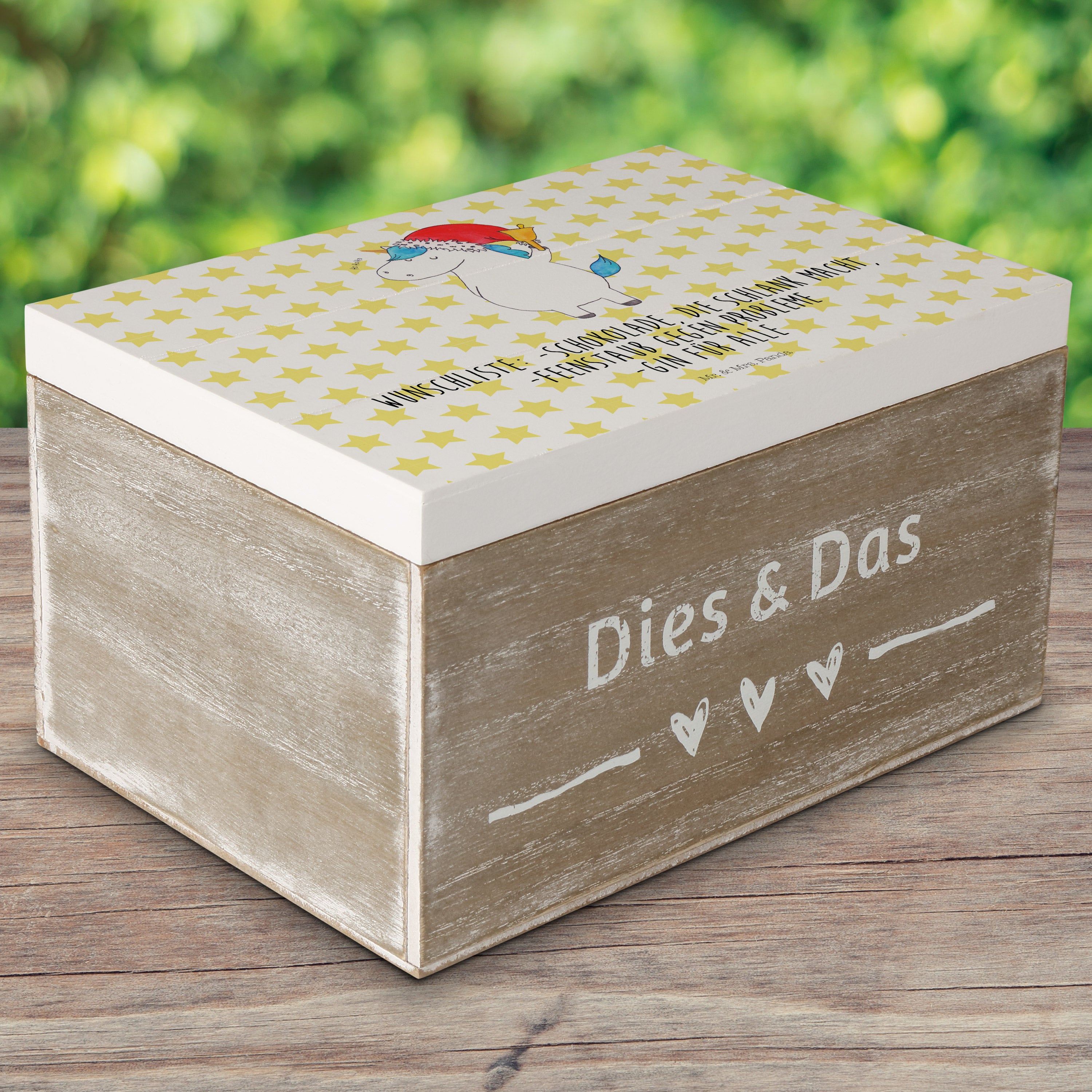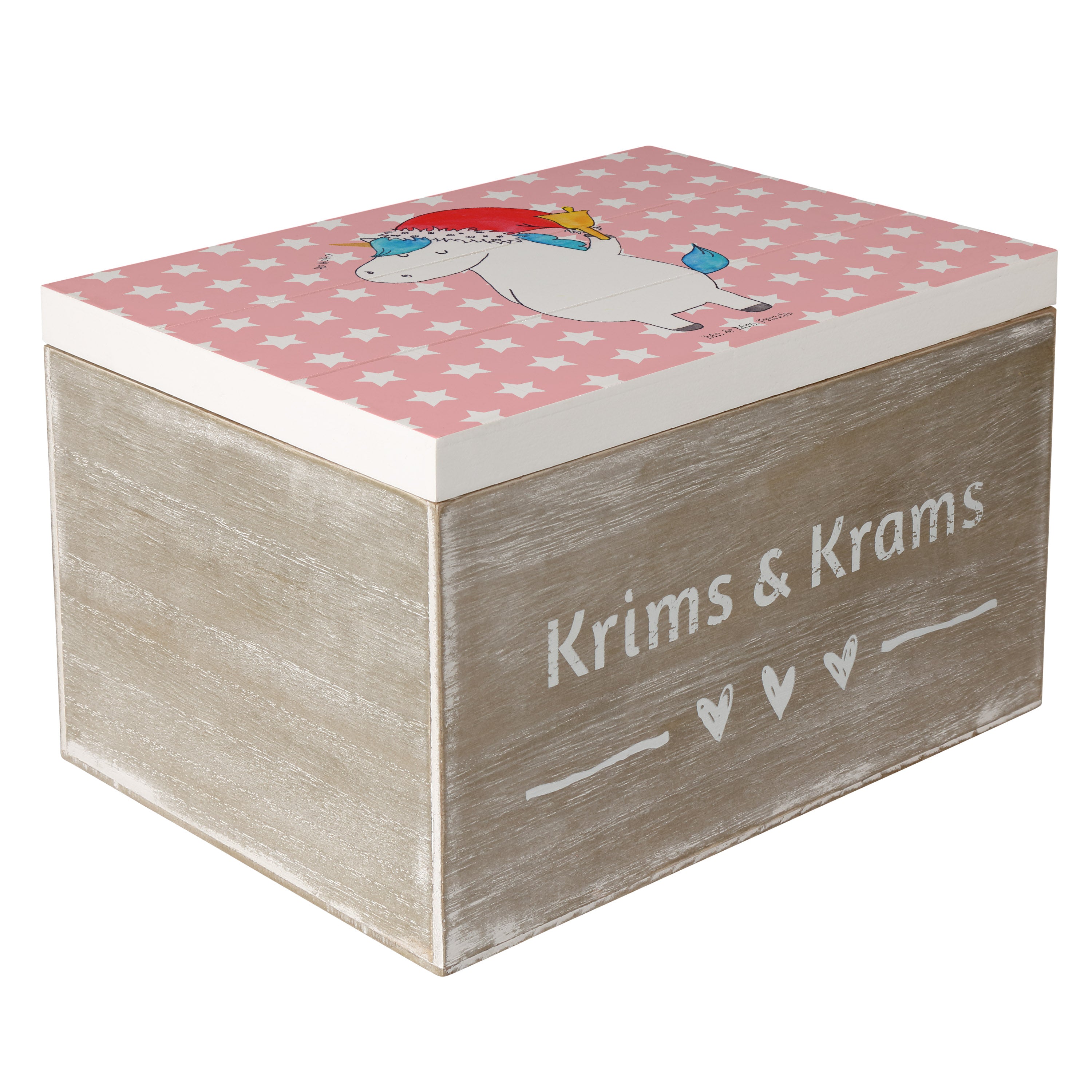 Holzkiste Einhorn Weihnachtsmann - 25 x 18 cm - mit Spruch - Weiß