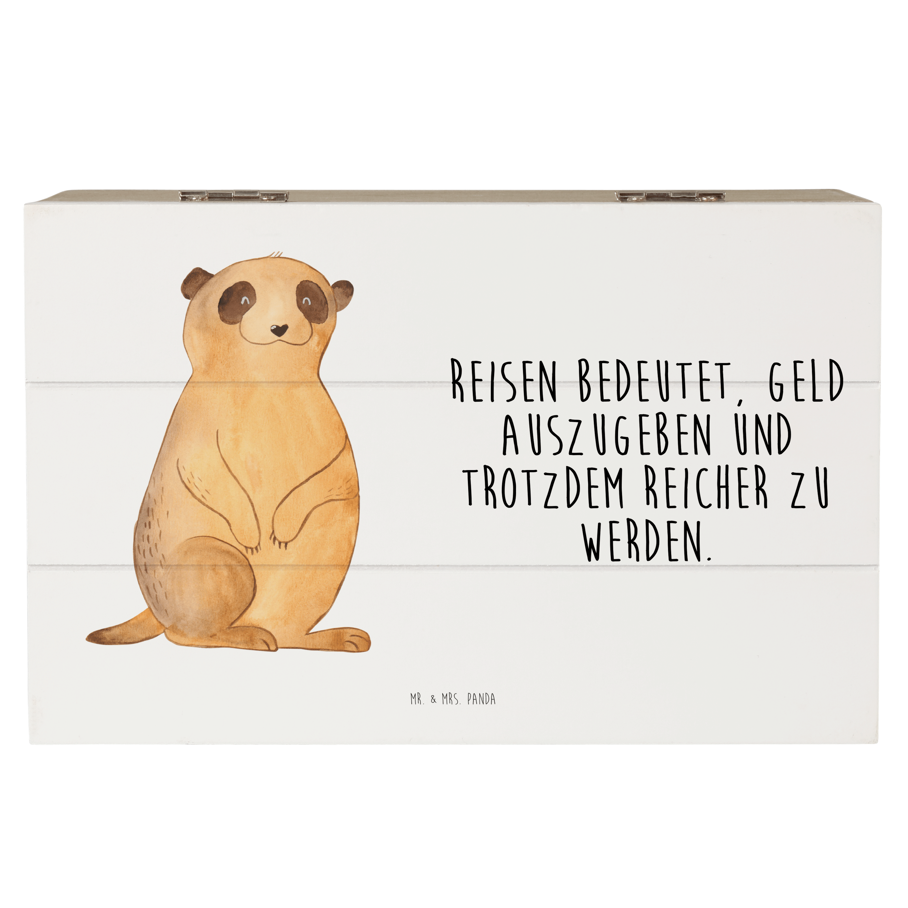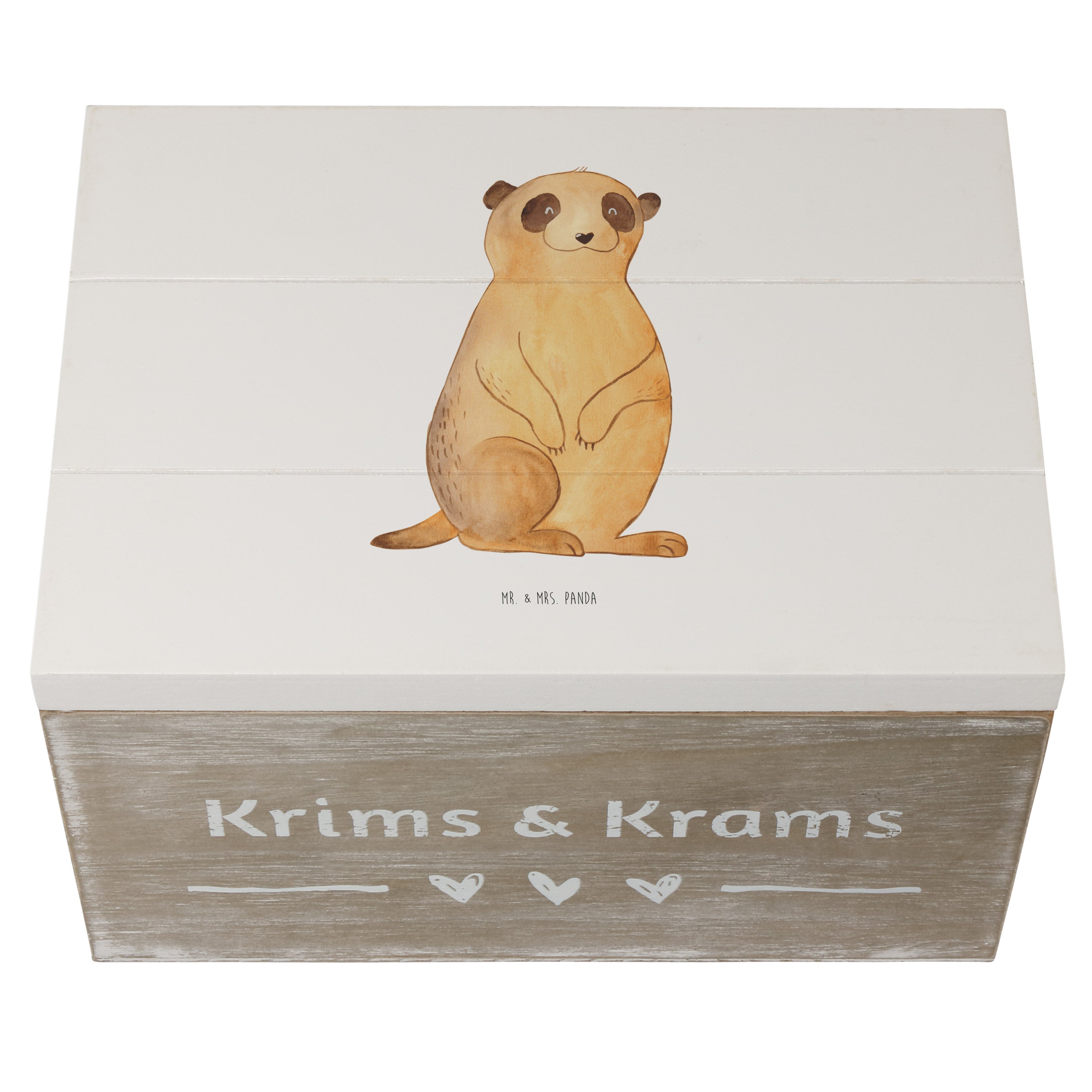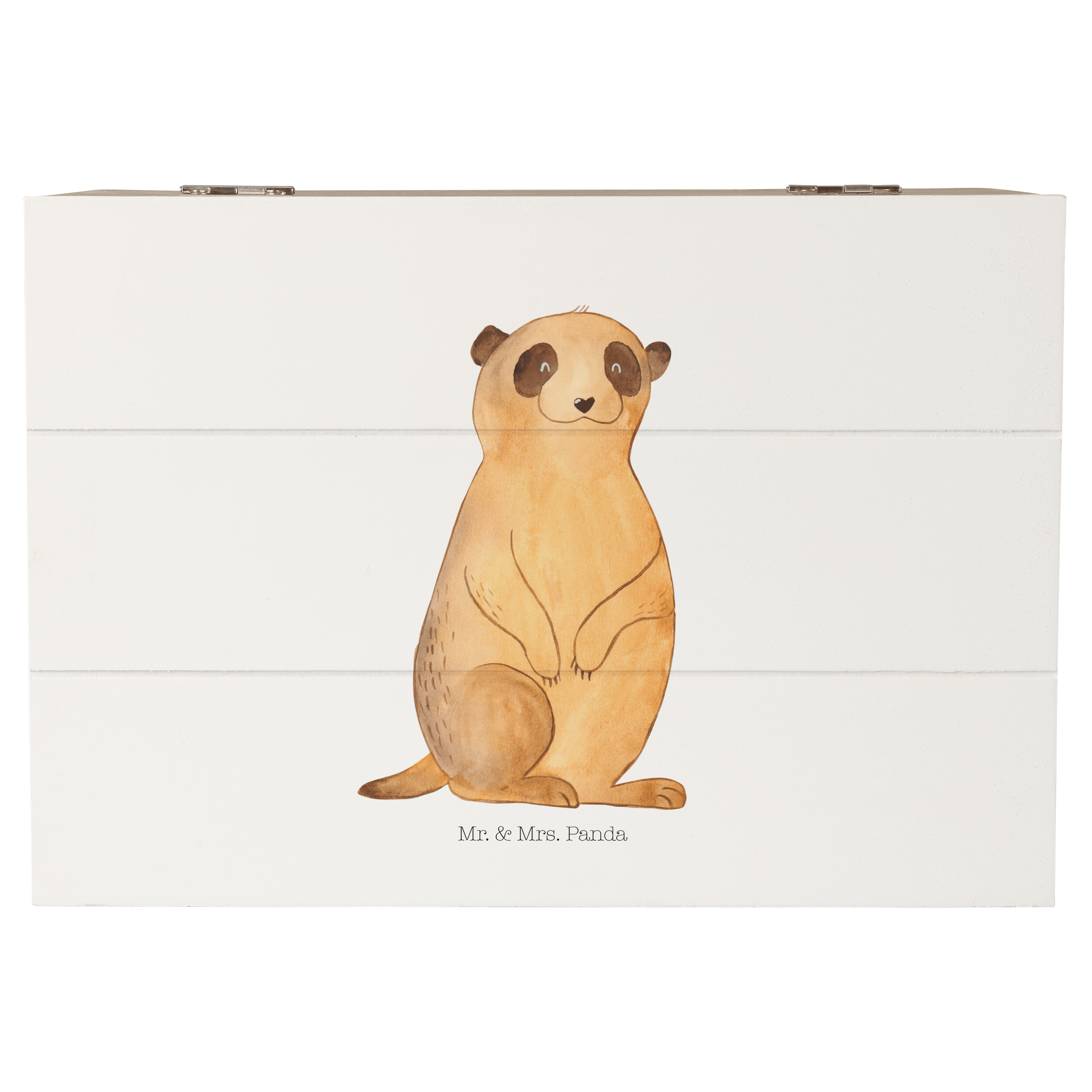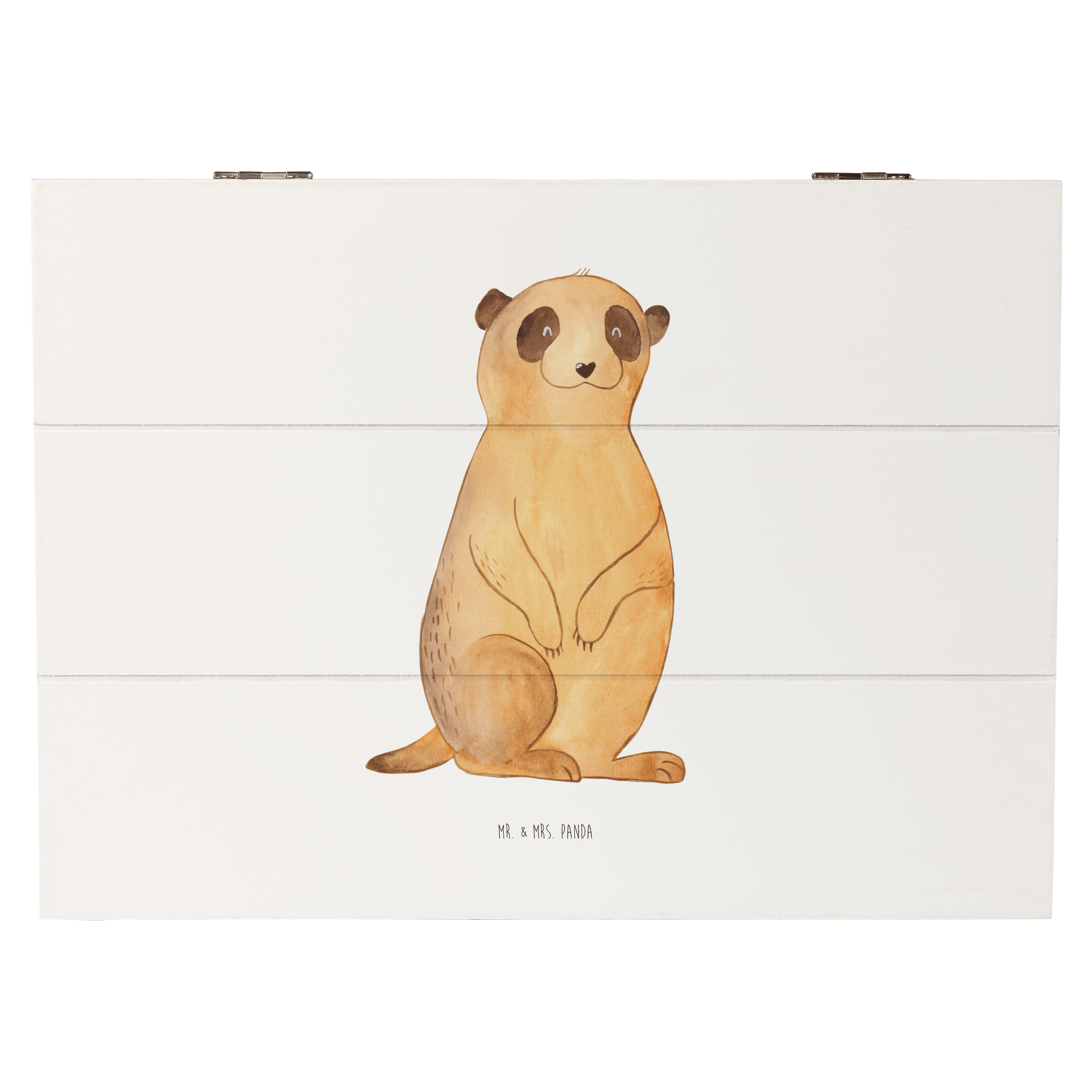 Holzkiste Erdmännchen - 25 x 18 cm - mit Spruch - Weiß