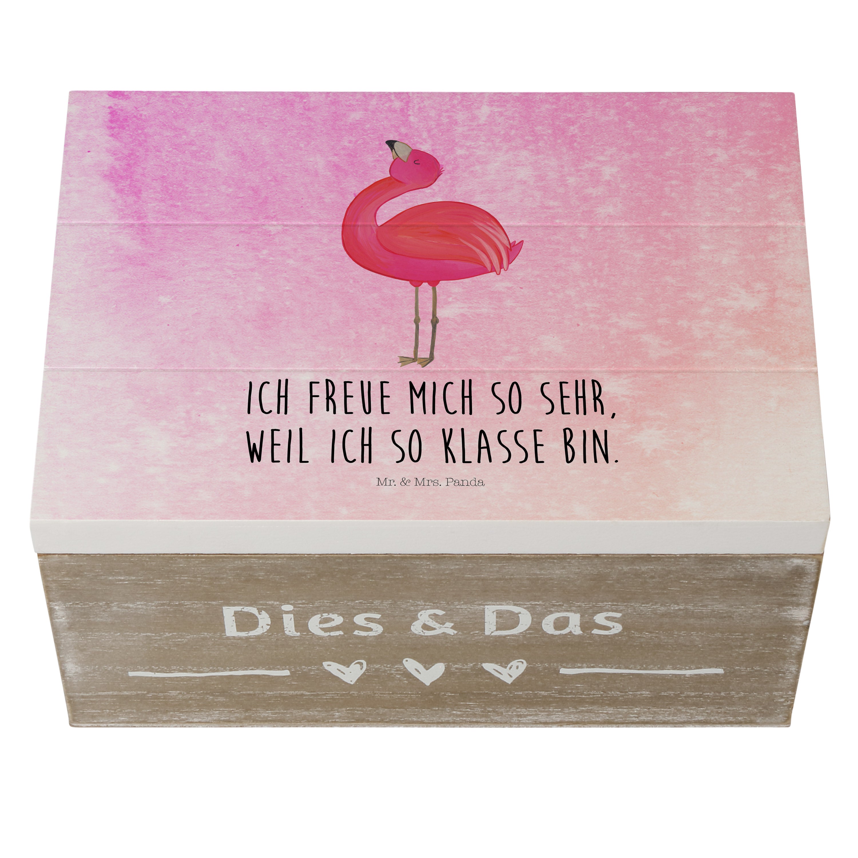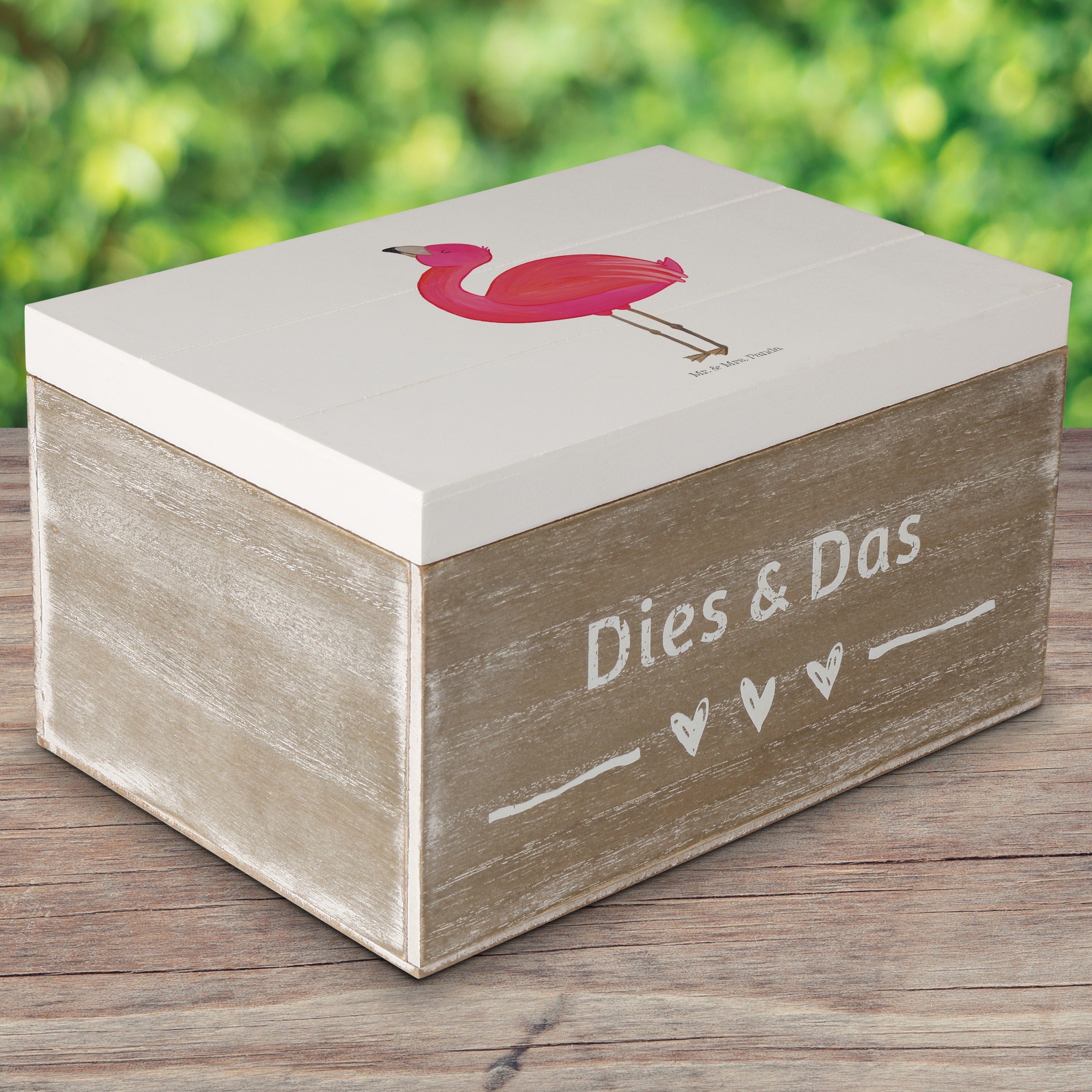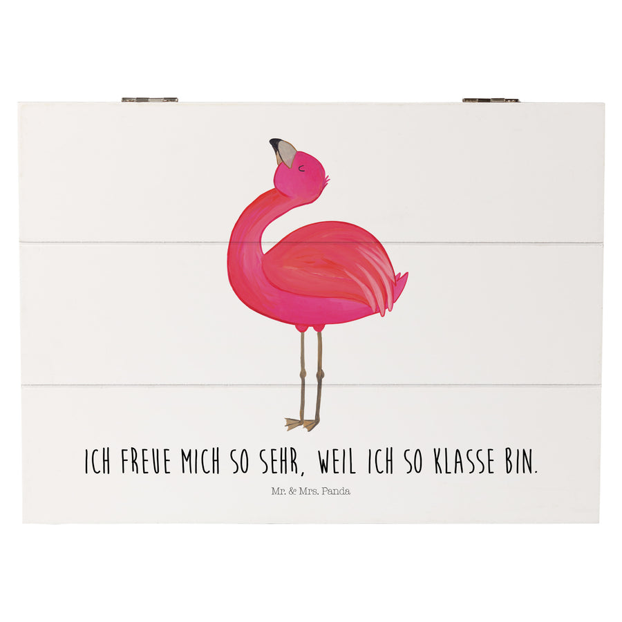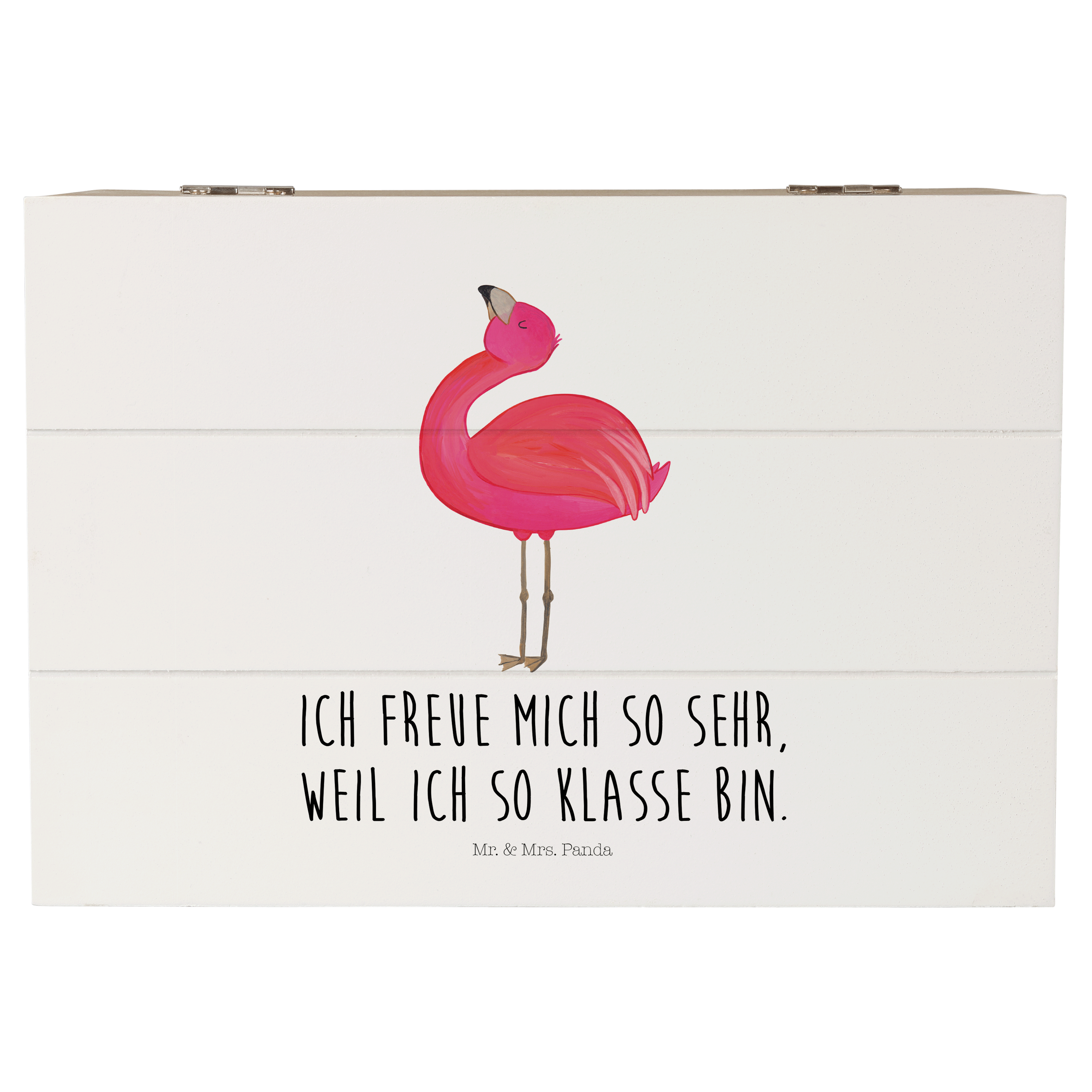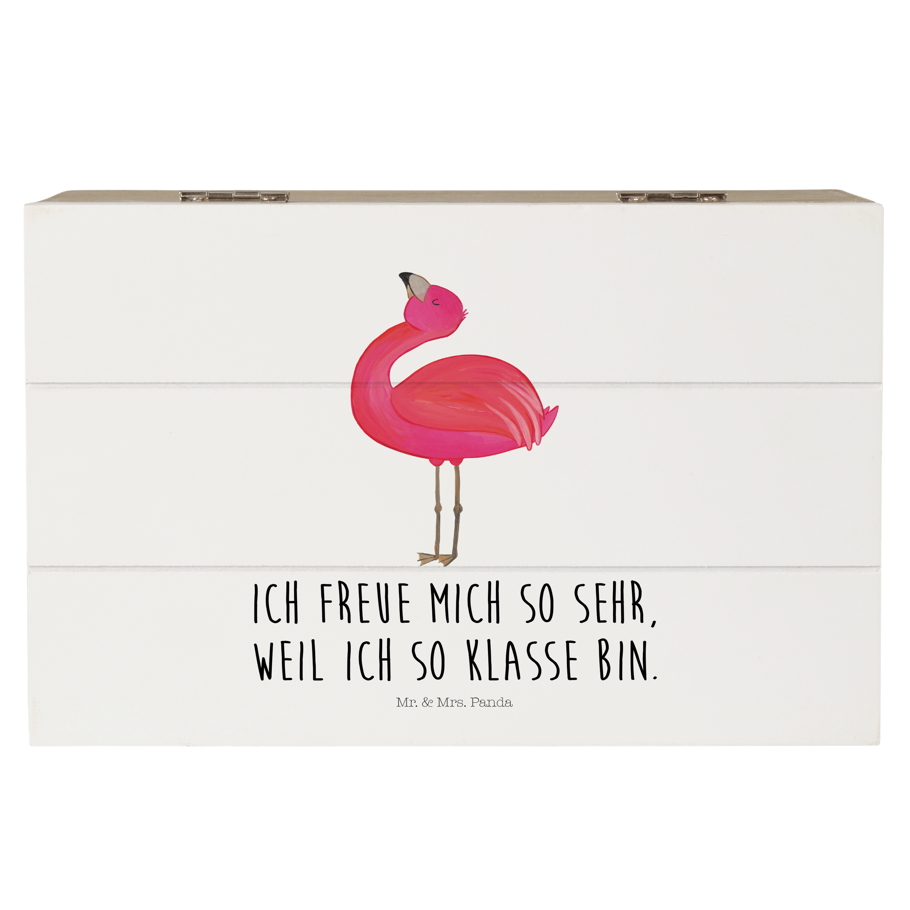 Holzkiste Flamingo stolz - 25 x 18 cm - mit Spruch - Weiß