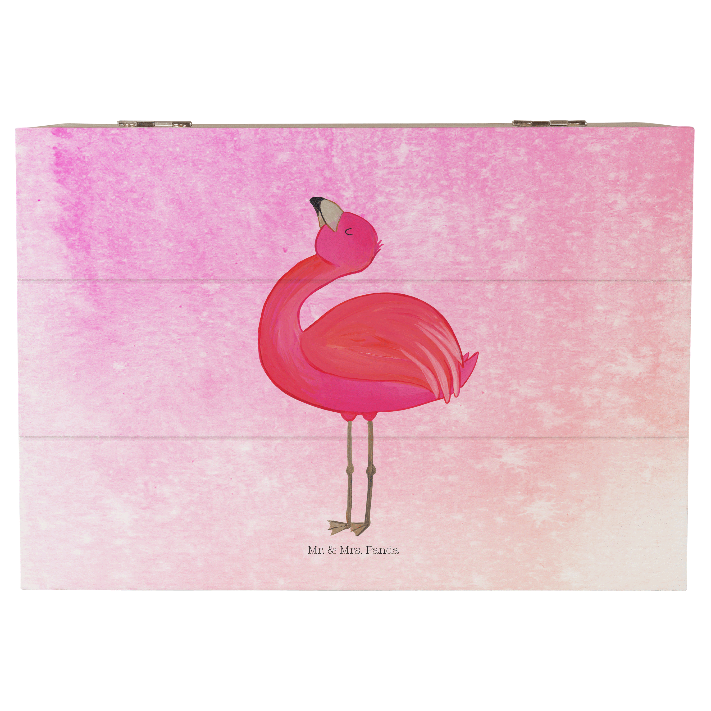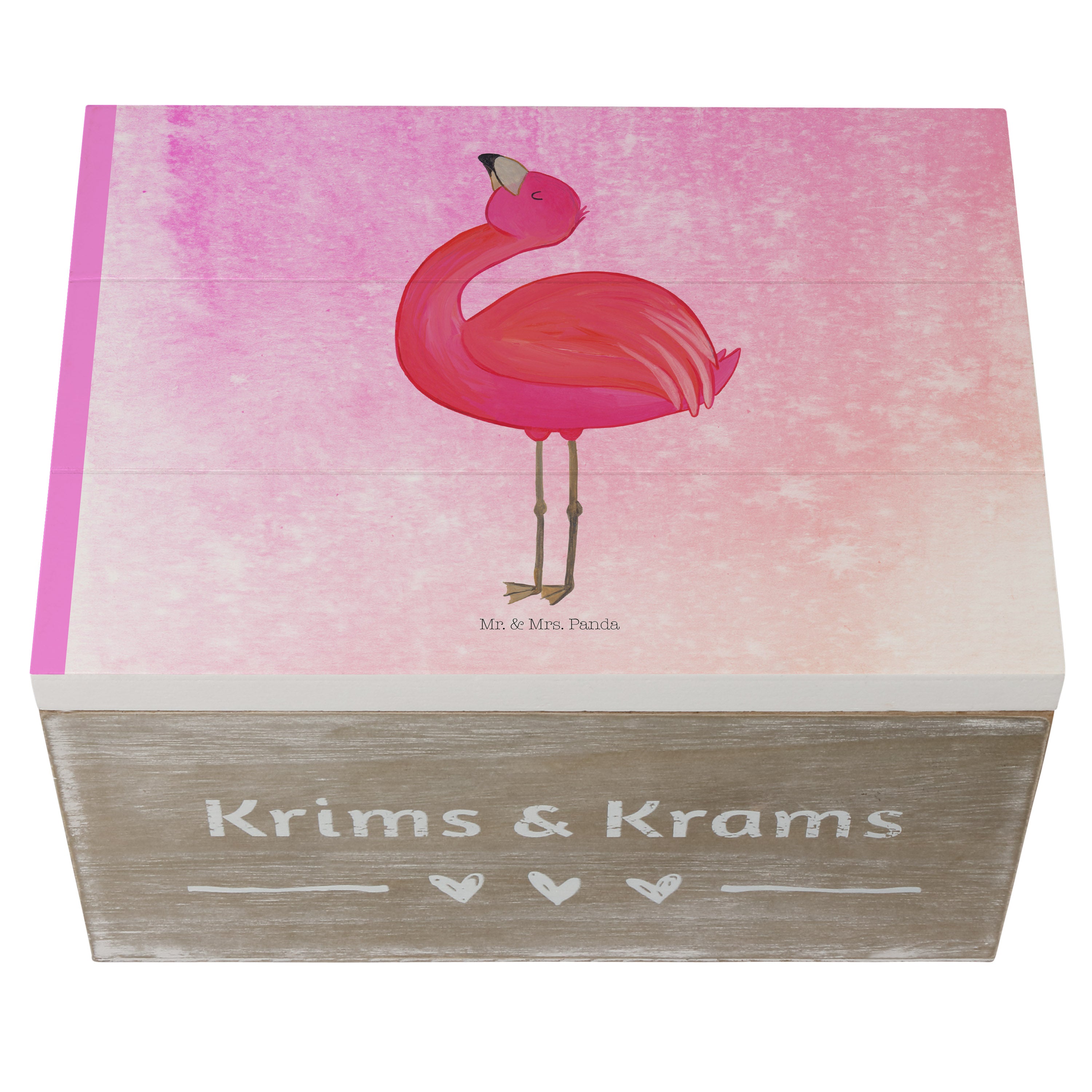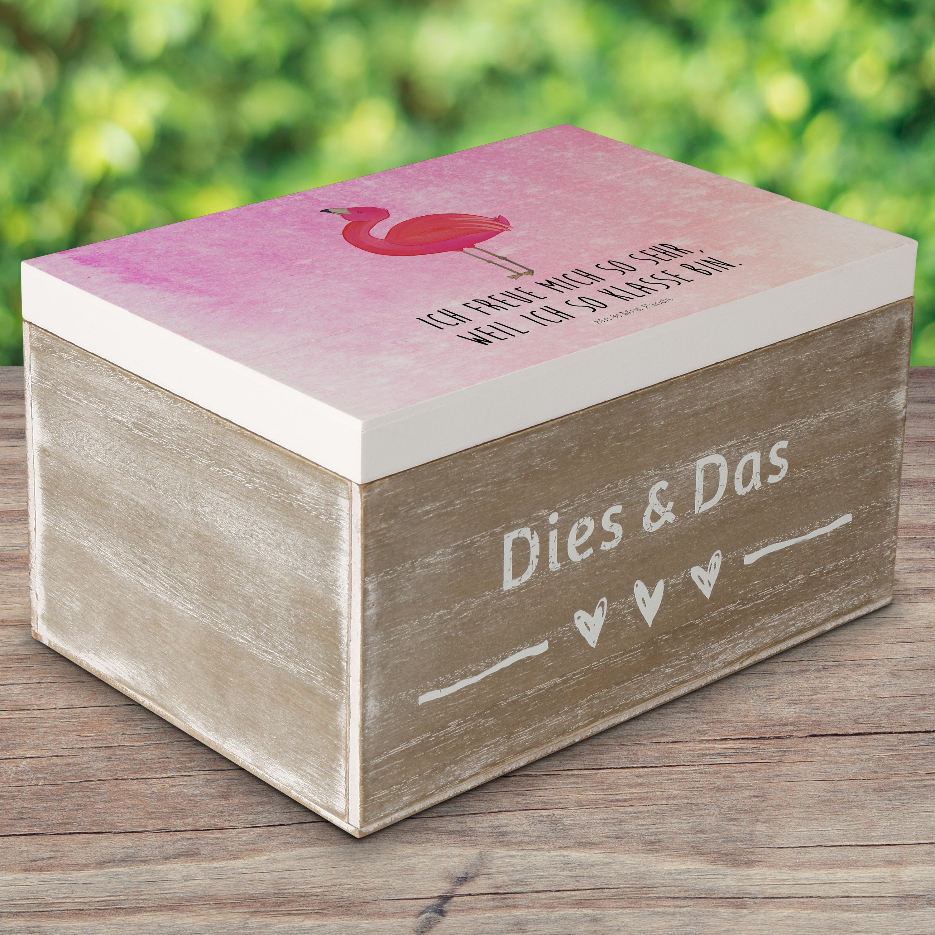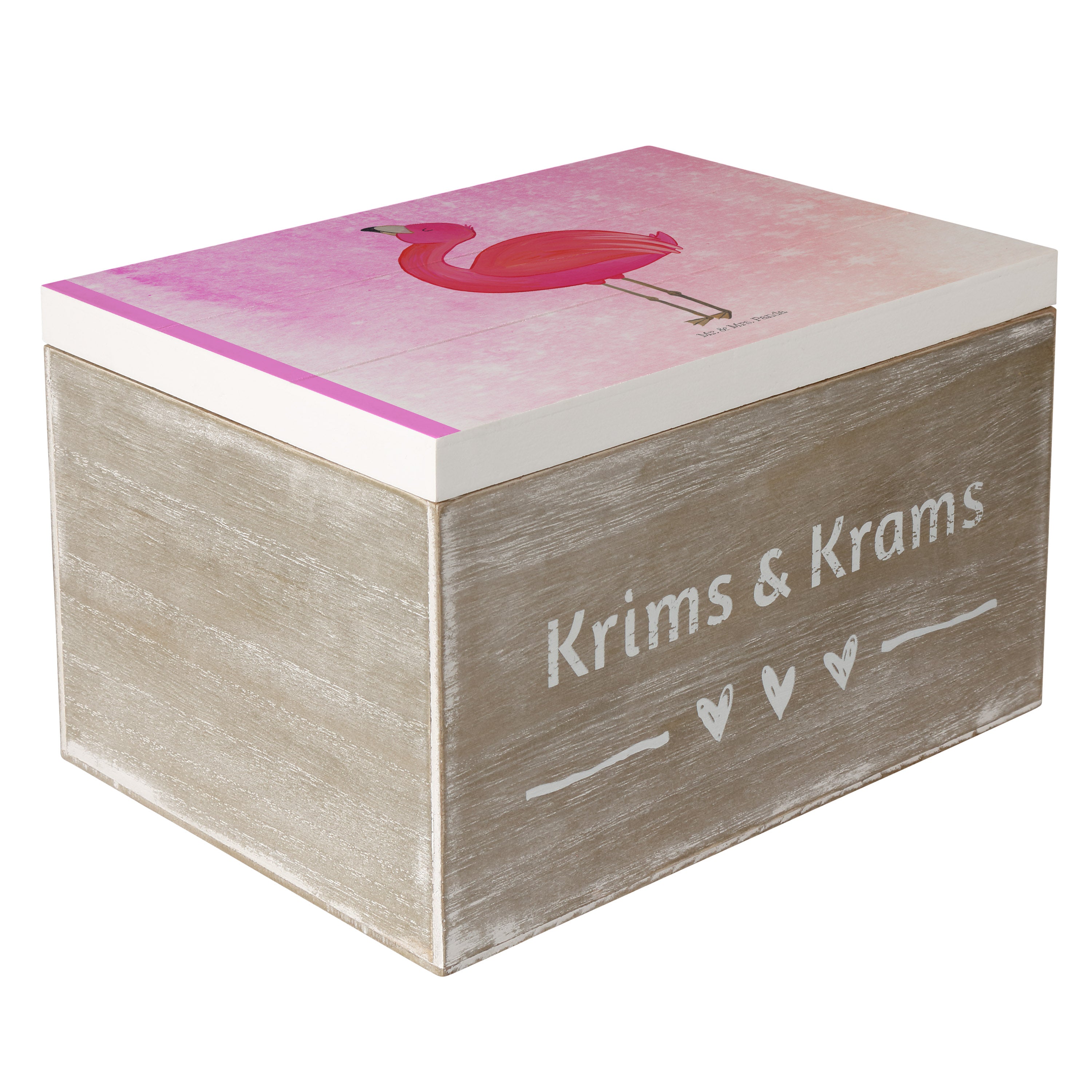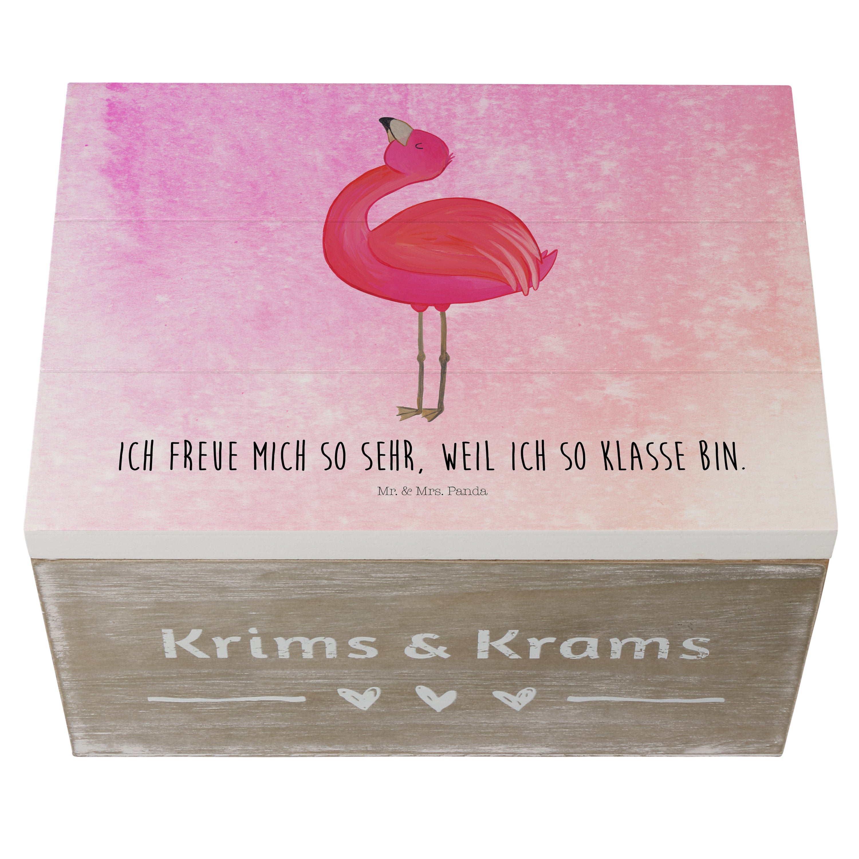 Holzkiste Flamingo stolz - 25 x 18 cm - mit Spruch - Weiß