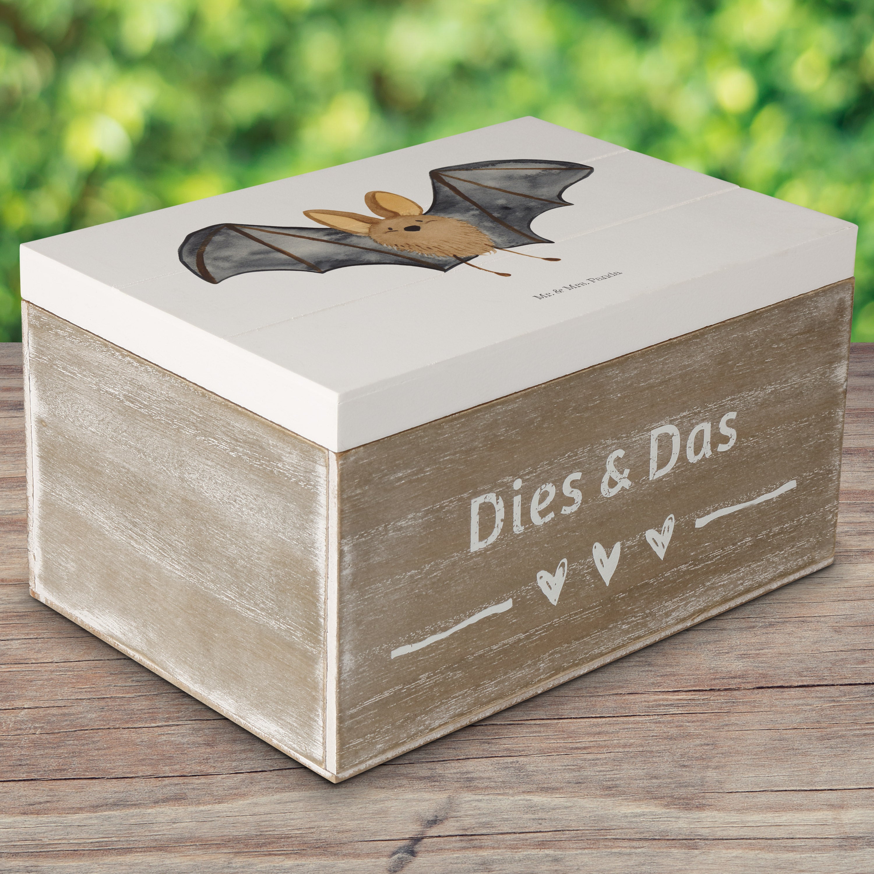 Holzkiste Fledermaus Flügel - 25 x 18 cm - mit Spruch - Weiß