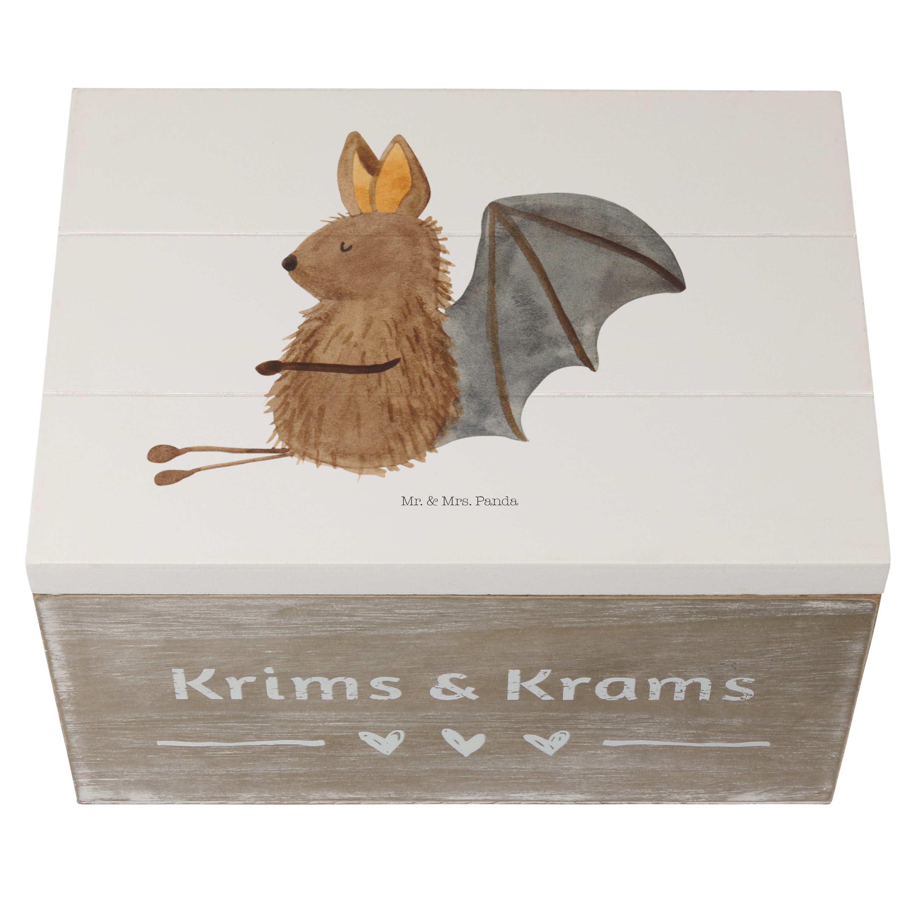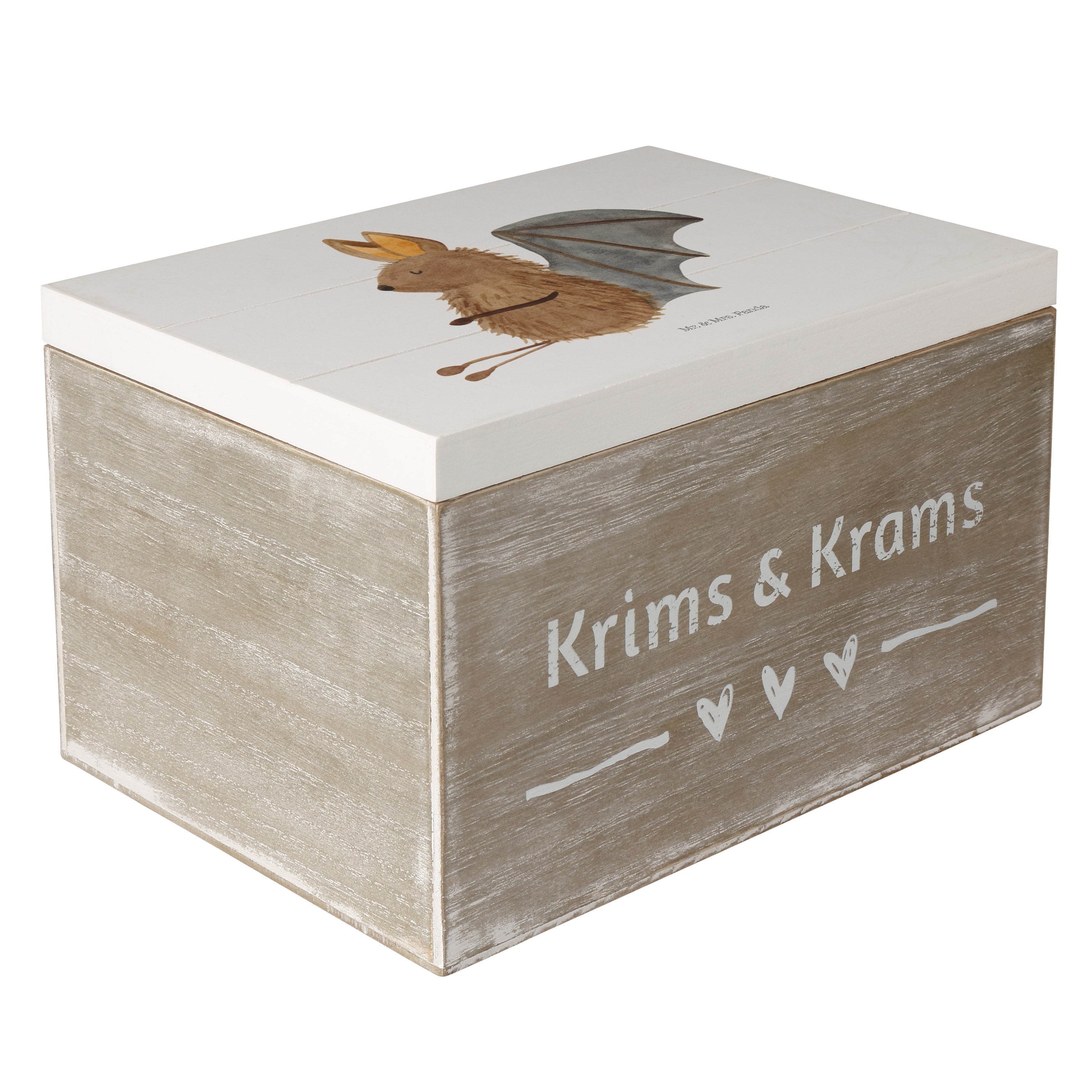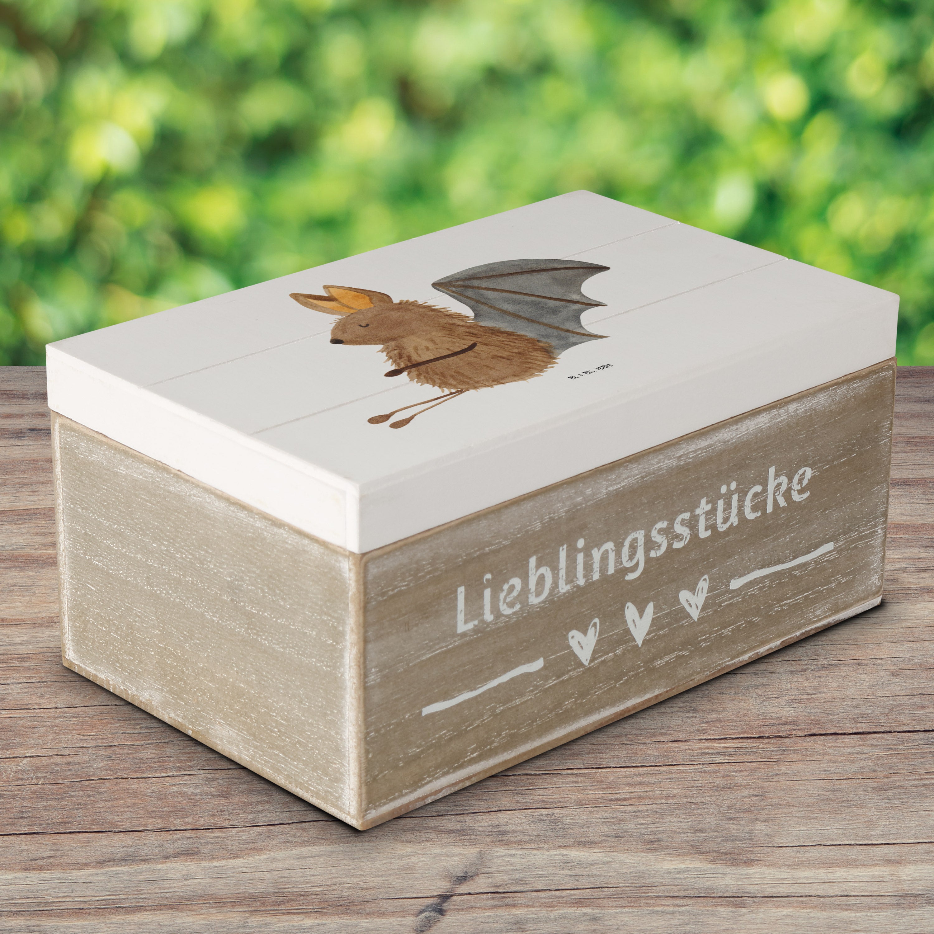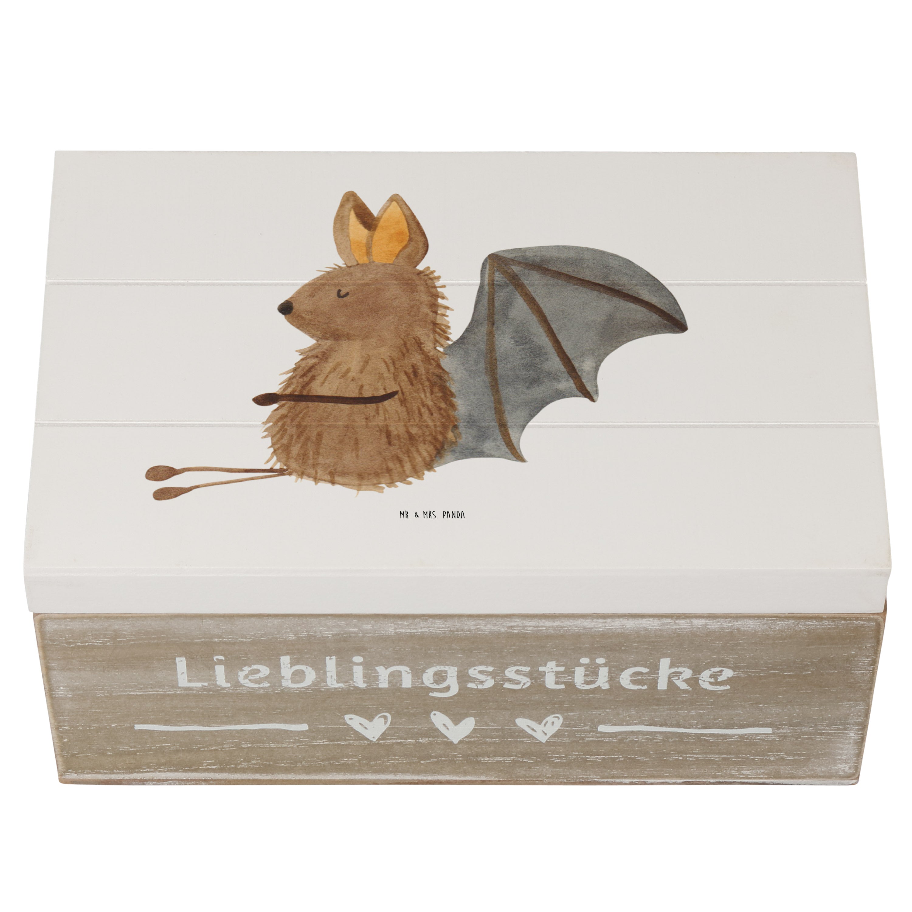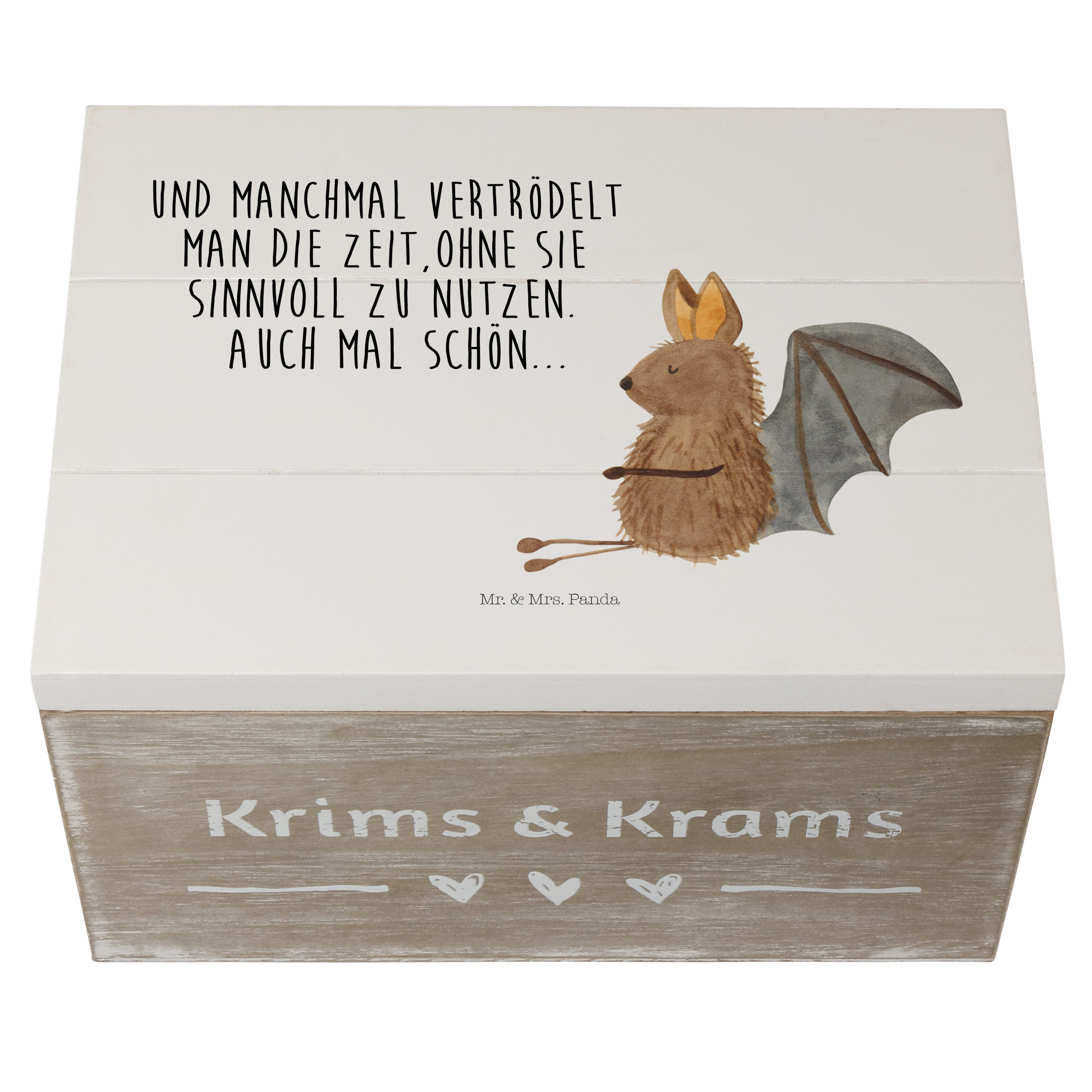 Holzkiste Fledermaus sitzend - 25 x 18 cm - mit Spruch - Weiß