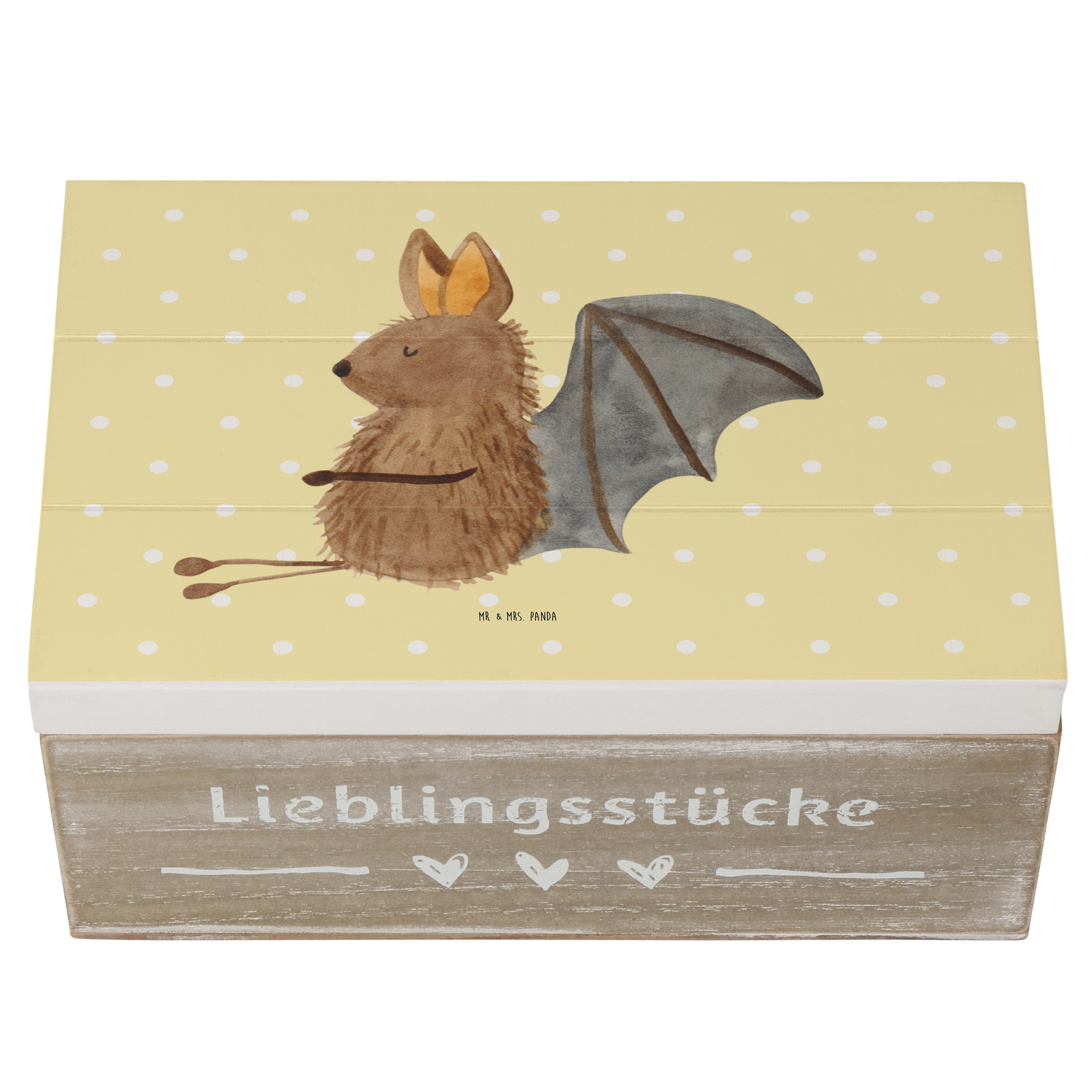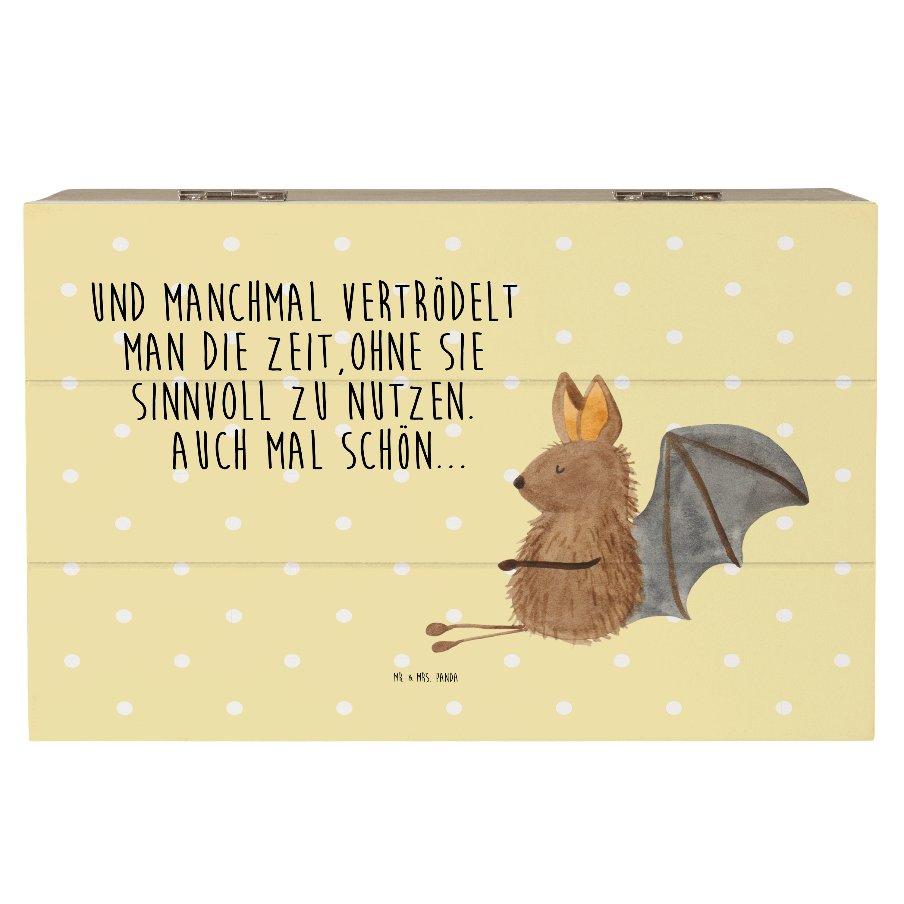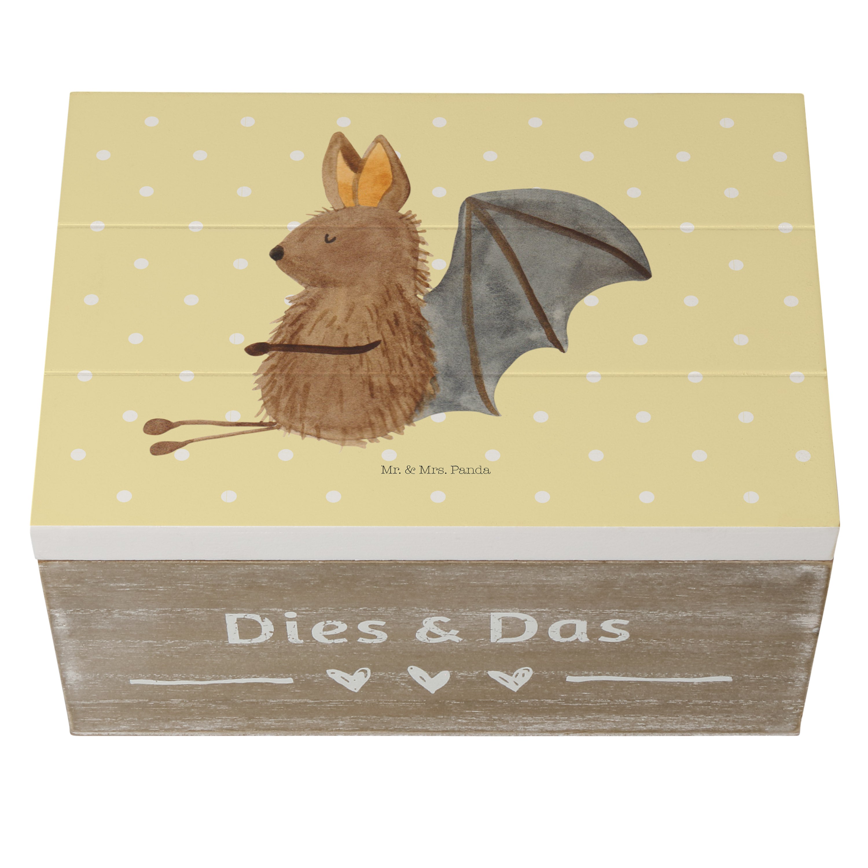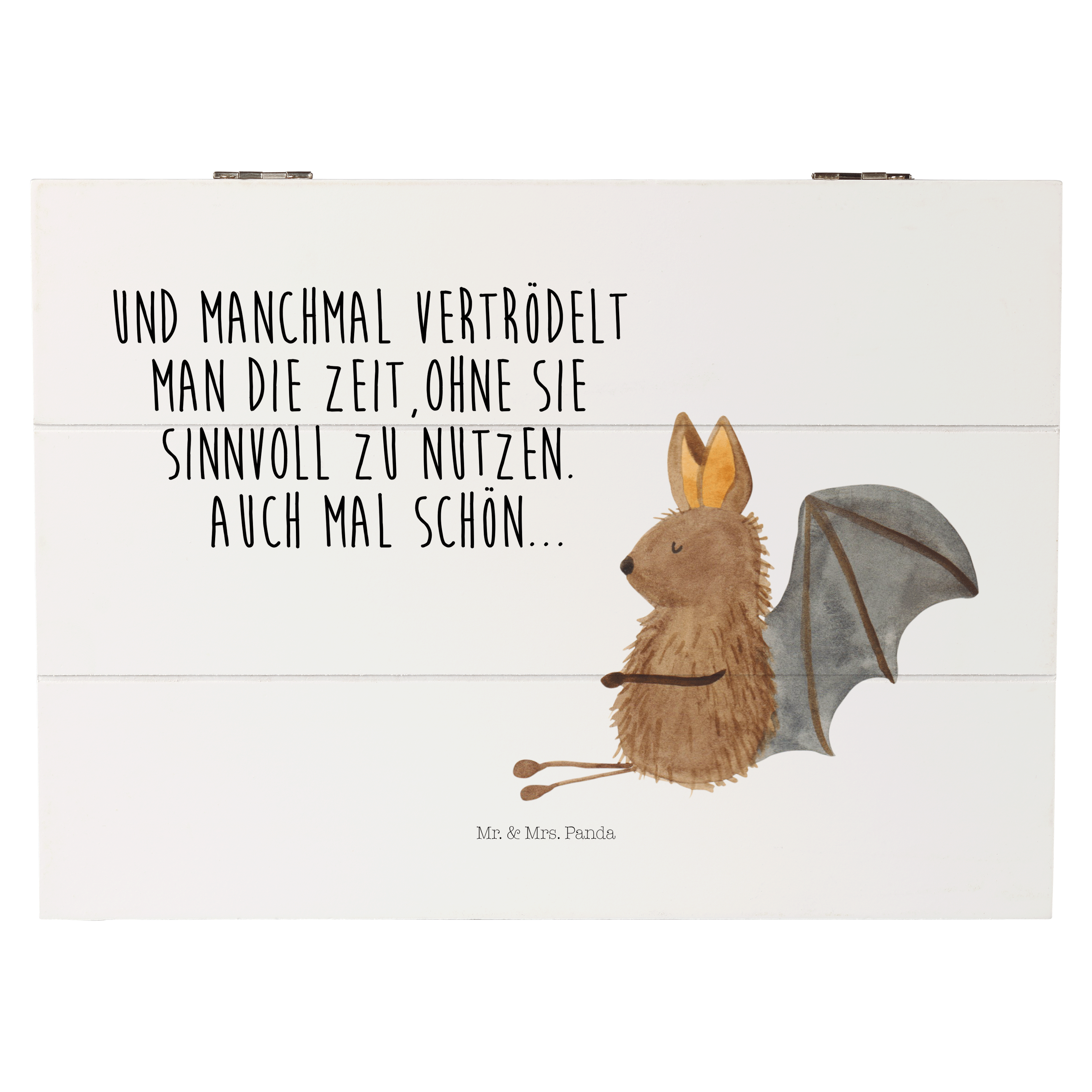 Die Fledermaus ist ein faszinierendes Tier und fasziniert nicht nur in der Natur, sondern auch auf unserem niedlichen Druck "Fledermaus sitzend". Die süße Fledermaus auf dem Motiv lächelt begeistert und verbreitet Freude und gute Laune. Der liebevoll gestaltete Druck ist ein echtes Highlight in jedem Raum und zugleich ein wunderschönes Geschenk für Tierliebhaber. Mr. & Mrs. Panda sind bekannt für ihre kreativen und charmanten Designs, die in höchster Qualität produziert werden.